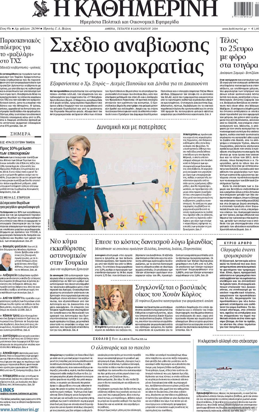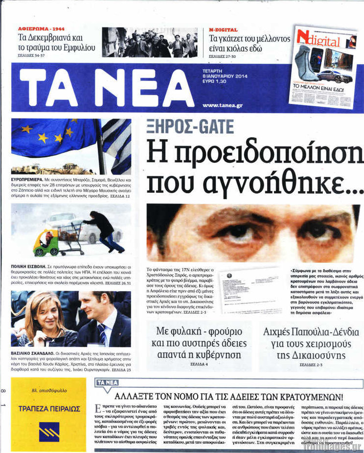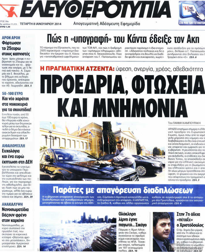 Οι πολιτικές εφημερίδες Enikos Newsroom 08:31, Τετάρτη 08 Ιανουαρίου 2014 Media Οι πολιτικές εφημερίδες Διαβάστε τα πρωτοσέλιδα των πολιτικών εφημερίδων: ΕΦΗΜΕΡΙΔΕΣ ΠΟΛΙΤΙΚΕΣ ΕΦΗΜΕΡΙΔΕΣ ΠΡΩΤΟΣΕΛΙΔΑ Μοιράσου το: σχολίασε κι εσύ (0 σχόλια) Ακολουθήστε το enikos.gr στο Google News και μάθετε πρώτοι όλες τις ειδήσεις Δείτε όλες τις τελευταίες ειδήσεις από την Ελλάδα και τον Κόσμο στο enikos.gr Ειδήσεις Ροή Ειδήσεων 7 ώρες πριν Εκτός ευρωομάδας ΣΥΡΙΖΑ ο Νίκος Παππάς μετά την επίθεση στον δημοσιογράφο Νίκο Γιαννόπουλο – Η μήνυση και οι νέες δηλώσεις 7 ώρες πριν «Αγριεύουν» οι αγρότες: «Δεν συντρέχει λόγος συνάντησης με τον πρωθυπουργό» – Ώρα αποφάσεων στη σύσκεψη της Πέμπτης 7 ώρες πριν Κυψέλη: Χωρίς την οικογένειά της δίπλα της απολογήθηκε η 16χρονη – «Της είχε επιτεθεί κάποιος για να την βιάσει, φοβήθηκε και κυκλοφορούσε με μαχαίρι» 6 ώρες πριν Politico: Το πρόβλημα της Ευρώπης δεν είναι το Βέλγιο αλλά ο Ντόναλντ Τραμπ 8 ώρες πριν Αλεξανδρούπολη: Πολυοργανική ανεπάρκεια λόγω υποσιτισμού η αιτία θανάτου του 3χρονου αγοριού 7 ώρες πριν Μυστήριο με τεράστιες κυκλικές πέτρες 200 κιλών – Ανακαλύφθηκαν τυχαία κατά τη διάρκεια οδικών έργων και κανείς δεν ξέρει από πού προέρχονται 8 ώρες πριν Ύπνος: Ειδικός εξηγεί τον πραγματικό λόγο που ξυπνάτε στις 4 τα ξημερώματα – Ο ρόλος των ορμονών και του κιρκάδιου ρυθμού 9 ώρες πριν Αριθμολογία: Οι άνθρωποι που έχουν γεννηθεί αυτές τις 4 ημερομηνίες, είναι τρυφεροί και αγαπούν ανιδιοτελώς 20 ώρες πριν 20 χρόνια τα Χριστούγεννα ξεκινούν στα Public με μεγάλη ποικιλία σε δώρα! 4 δευτερόλεπτα πριν Οι οικονομικές εφημερίδες 18/12/2025 5 λεπτά πριν Οι αθλητικές εφημερίδες 18/12/2025 9 λεπτά πριν Οι πολιτικές εφημερίδες 18/12/2025 18 λεπτά πριν Τα ζώδια σήμερα, Πέμπτη 18 Δεκεμβρίου: Λέοντες, η καρδιά σας θέλει να εκφραστεί 26 λεπτά πριν Το Ποντίκι σήμερα Πέμπτη 18/12/2025 ENIKOS NETWORK Αϋπνία: Το κόλπο που θα σας βοηθήσει να κοιμηθείτε απόψε – Είναι απλό και έχει αποτέλεσμα 2,6 εκατομμύρια πολίτες έχουν ήδη εμβολιαστεί κατά της γρίπης ΕΛΣΤΑΤ: Τι δείχνουν τα νέα στοιχεία για τις ηλεκτρονικές παραγγελίες των επιχειρήσεων ΚΕΠΕ: Οι 3 διακριτές συμβολές των ΜμΕ και της μεταποίησης στην ελληνική οικονομία Χαρτογραφώντας το «σημείο χωρίς επιστροφή»: Για πρώτη φορά αποκαλύπτεται με λεπτομέρεια το ακανθώδες όριο της ατμόσφαιρας τ... Η Google καταργεί τη λειτουργία «dark web report» – Πώς θα μπορούν οι χρήστες να διαγράφουν τα δεδομένα τους περισσότερα 05:48 , Πέμπτη 18 Δεκεμβρίου 2025 Οι οικονομικές εφημερίδες 18/12/2025 Διαβάστε τα πρωτοσέλιδα από τις οικονομικές εφημερίδες, σήμερα 18/12/2025. 05:43 , Πέμπτη 18 Δεκεμβρίου 2025 Οι αθλητικές εφημερίδες 18/12/2025 Διαβάστε τα πρωτοσέλιδα από τις αθλητικές εφημερίδες, σήμερα 18/12/2025. 05:38 , Πέμπτη 18 Δεκεμβρίου 2025 Οι πολιτικές εφημερίδες 18/12/2025 Διαβάστε τα πρωτοσέλιδα από τις πολιτικές εφημερίδες, σήμερα 18/12/2025. 05:22 , Πέμπτη 18 Δεκεμβρίου 2025 Το Ποντίκι σήμερα Πέμπτη 18/12/2025 Διαβάστε το πρωτοσέλιδο της εφημερίδας «Το Ποντίκι» σήμερα 18/12/2025. ΤΕΛΕΥΤΑΙΕΣ ΕΙΔΗΣΕΙΣ 4 δευτερόλεπτα πριν Οι οικονομικές εφημερίδες 18/12/2025 5 λεπτά πριν Οι αθλητικές εφημερίδες 18/12/2025 9 λεπτά πριν Οι πολιτικές εφημερίδες 18/12/2025 18 λεπτά πριν Τα ζώδια σήμερα, Πέμπτη 18 Δεκεμβρίου: Λέοντες, η καρδιά... 26 λεπτά πριν Το Ποντίκι σήμερα Πέμπτη 18/12/2025 30 λεπτά πριν Εφημερεύοντα φαρμακεία σε Αθήνα και Θεσσαλονίκη (18/12) 33 λεπτά πριν Αλεξάνδρα Ούστα: «Αυτό που με τρέλανε στον σύζυγό μου... 40 λεπτά πριν Μιχάλης Αεράκης: «Της είπα “θέλ