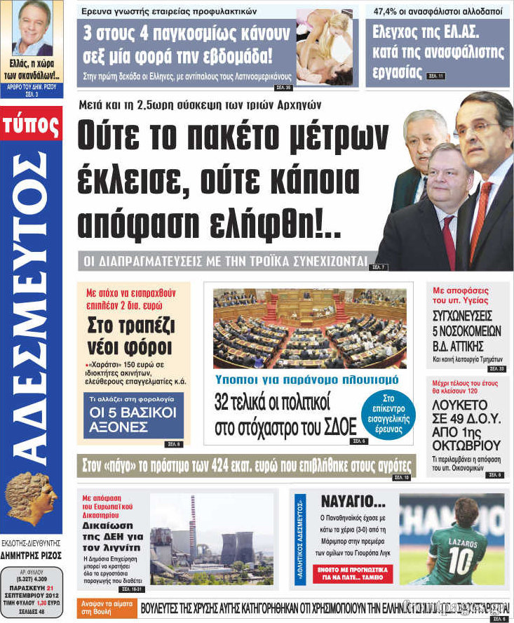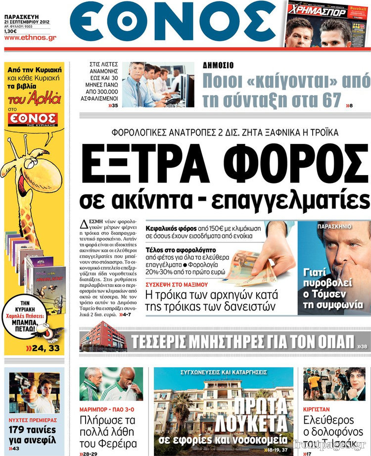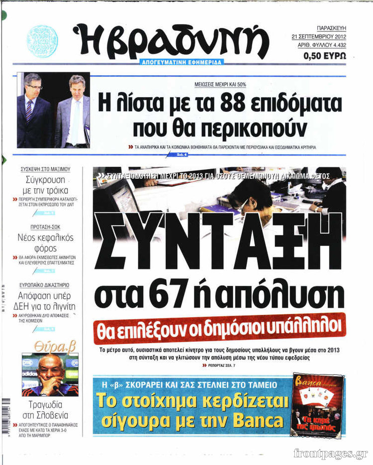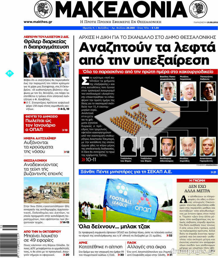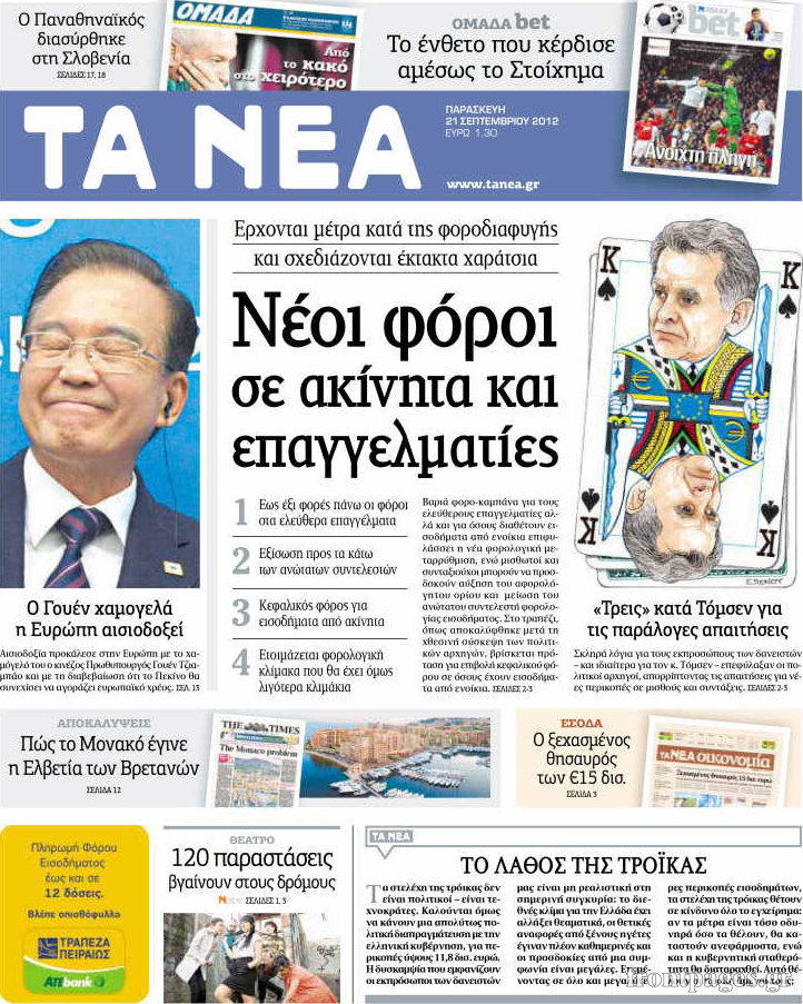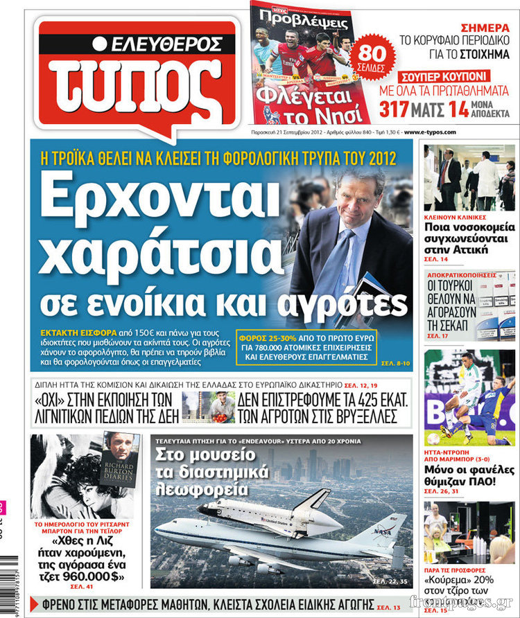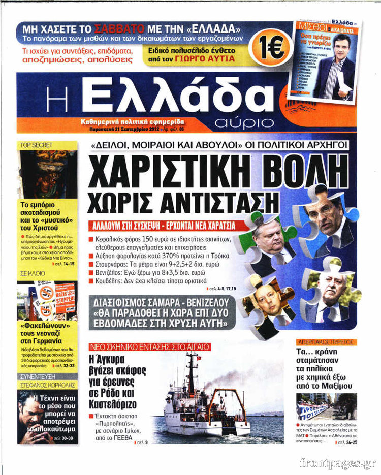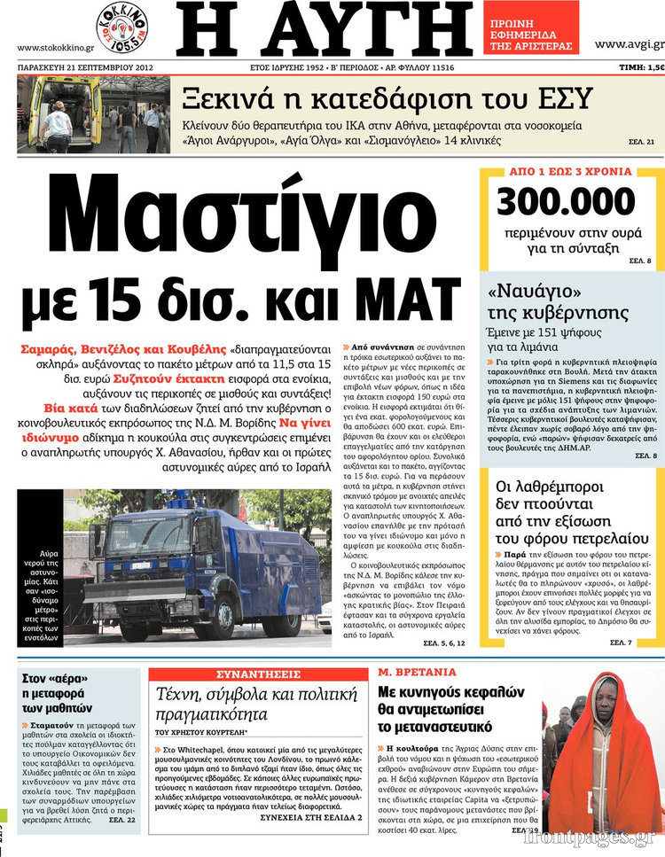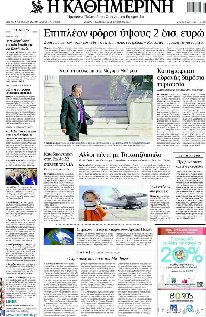 Διαβάστε τα πρωτοσέλιδα των σημερινών πολιτικών εφημερίδων.