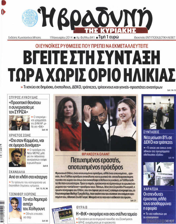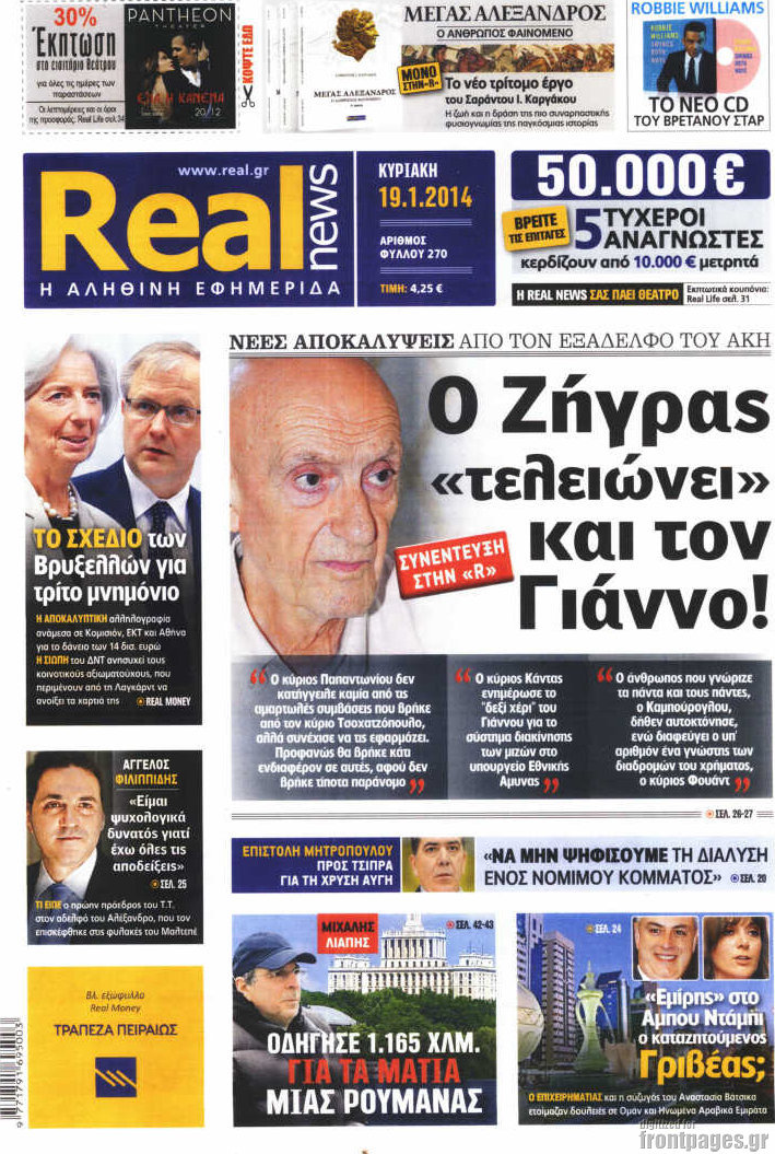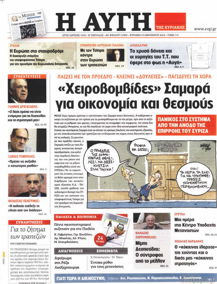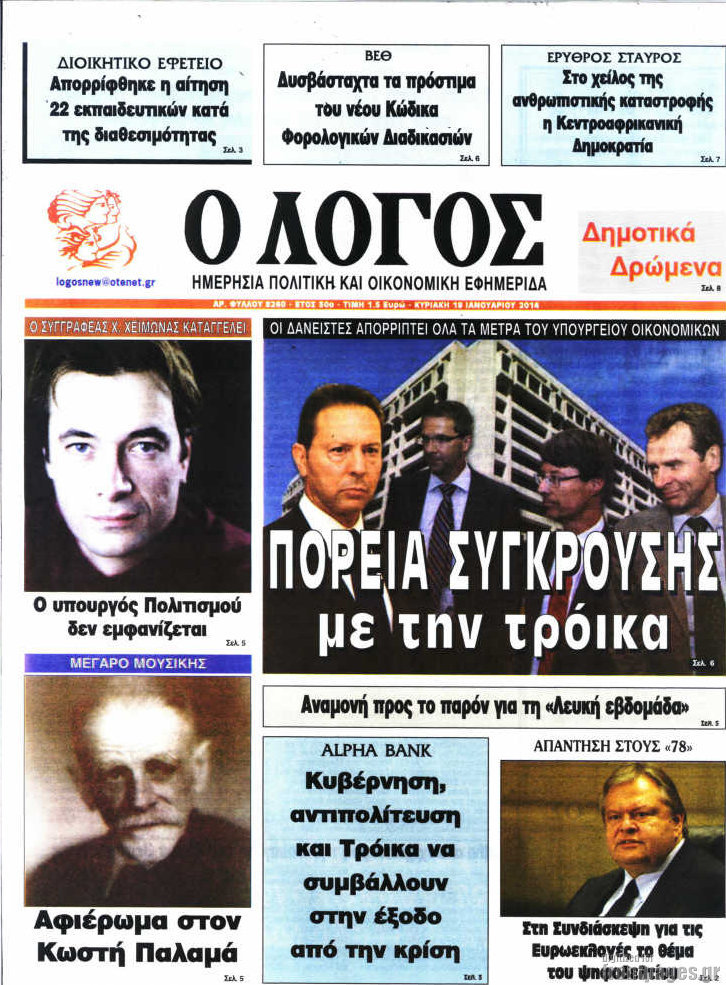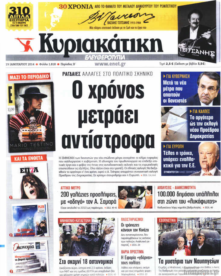 Οι πολιτικές εφημερίδες Enikos Newsroom 08:10, Κυριακή 19 Ιανουαρίου 2014 Media Οι πολιτικές εφημερίδες Διαβάστε τα πρωτοσέλιδα των πολιτικών εφημερίδων: ΕΦΗΜΕΡΙΔΕΣ ΠΟΛΙΤΙΚΕΣ ΕΦΗΜΕΡΙΔΕΣ ΠΡΩΤΟΣΕΛΙΔΑ Μοιράσου το: σχολίασε κι εσύ (0 σχόλια) Ακολουθήστε το enikos.gr στο Google News και μάθετε πρώτοι όλες τις ειδήσεις Δείτε όλες τις τελευταίες ειδήσεις από την Ελλάδα και τον Κόσμο στο enikos.gr Ειδήσεις Ροή Ειδήσεων 6 ώρες πριν Εκτός ευρωομάδας ΣΥΡΙΖΑ ο Νίκος Παππάς μετά την επίθεση στον δημοσιογράφο Νίκο Γιαννόπουλο – Η μήνυση και οι νέες δηλώσεις 6 ώρες πριν «Αγριεύουν» οι αγρότες: «Δεν συντρέχει λόγος συνάντησης με τον πρωθυπουργό» – Ώρα αποφάσεων στη σύσκεψη της Πέμπτης 6 ώρες πριν Κυψέλη: Χωρίς την οικογένειά της δίπλα της απολογήθηκε η 16χρονη – «Της είχε επιτεθεί κάποιος για να την βιάσει, φοβήθηκε και κυκλοφορούσε με μαχαίρι» 6 ώρες πριν Politico: Το πρόβλημα της Ευρώπης δεν είναι το Βέλγιο αλλά ο Ντόναλντ Τραμπ 8 ώρες πριν Αλεξανδρούπολη: Πολυοργανική ανεπάρκεια λόγω υποσιτισμού η αιτία θανάτου του 3χρονου αγοριού 6 ώρες πριν Μυστήριο με τεράστιες κυκλικές πέτρες 200 κιλών – Ανακαλύφθηκαν τυχαία κατά τη διάρκεια οδικών έργων και κανείς δεν ξέρει από πού προέρχονται 7 ώρες πριν Ύπνος: Ειδικός εξηγεί τον πραγματικό λόγο που ξυπνάτε στις 4 τα ξημερώματα – Ο ρόλος των ορμονών και του κιρκάδιου ρυθμού 8 ώρες πριν Αριθμολογία: Οι άνθρωποι που έχουν γεννηθεί αυτές τις 4 ημερομηνίες, είναι τρυφεροί και αγαπούν ανιδιοτελώς 20 ώρες πριν 20 χρόνια τα Χριστούγεννα ξεκινούν στα Public με μεγάλη ποικιλία σε δώρα! 3 λεπτά πριν Αυστραλία: Κυβερνητική δέσμευση για αυστηρότερα μέτρα κατά της υποκίνησης μίσους 19 λεπτά πριν Ντόναλντ Τραμπ: Παρουσίασε τα επιτεύγματα της διακυβέρνησής του – Σκληρή κριτική στον Τζο Μπάιντεν 33 λεπτά πριν Κτηνοτρόφοι: Με δάκρυα στα μάτια ζουν τον εφιάλτη των άδειων στάβλων – «Καταστράφηκαν οι ζωές μας» 48 λεπτά πριν Νέο αμερικανικό πλήγμα σε σκάφος που φέρεται να μετέφερε ναρκωτικά στον Ειρηνικό – Τέσσερις νεκροί 1 ώρα πριν Αλ Τσαντίρι Νιουζ: «Λύγισε» ο Δημήτρης Λάλος για τον Δημήτρη Ήμελλο – «Τον μνημονεύω, να ‘ναι καλά εκεί που είναι» ENIKOS NETWORK Αϋπνία: Το κόλπο που θα σας βοηθήσει να κοιμηθείτε απόψε – Είναι απλό και έχει αποτέλεσμα 2,6 εκατομμύρια πολίτες έχουν ήδη εμβολιαστεί κατά της γρίπης ΕΛΣΤΑΤ: Τι δείχνουν τα νέα στοιχεία για τις ηλεκτρονικές παραγγελίες των επιχειρήσεων ΚΕΠΕ: Οι 3 διακριτές συμβολές των ΜμΕ και της μεταποίησης στην ελληνική οικονομία Χαρτογραφώντας το «σημείο χωρίς επιστροφή»: Για πρώτη φορά αποκαλύπτεται με λεπτομέρεια το ακανθώδες όριο της ατμόσφαιρας τ... Η Google καταργεί τη λειτουργία «dark web report» – Πώς θα μπορούν οι χρήστες να διαγράφουν τα δεδομένα τους περισσότερα 02:30 , Πέμπτη 18 Δεκεμβρίου 2025 Αλ Τσαντίρι Νιουζ: Η κόρη της Πάολα στο κοινό – Η ατάκα Λαζόπουλου που την έκανε να «κοκκινήσει» Γιορτινή διάθεση και ευχάριστες στιγμές γέμισε η αποψινή, τελευταία για το 2025, εκπομπή του «... 22:24 , Τετάρτη 17 Δεκεμβρίου 2025 Το Σπίτι Δίπλα Στο Ποτάμι: Σε κίνδυνο η υγεία του Απόστολου – Τι θα δούμε απόψε “Το Σπίτι Δίπλα στο Ποτάμι” ξετυλίγει το νήμα της ζωής των πέντε αδελφών με καταισ... 21:14 , Τετάρτη 17 Δεκεμβρίου 2025 Παιχνίδια Εκδίκησης: Θα καταφέρει ο Χρήστος να κλονίσει την εμπιστοσύνη της Μάγιας απέναντι στον Άγη; Τα «Παιχνίδια Εκδίκησης» έρχονται απόψε στις 22:30, στον Αντ1, με το τελευταίο επεισόδιο της χ... 20:57 , Τετάρτη 17 Δεκεμβρίου 2025 Άγιος Έρω