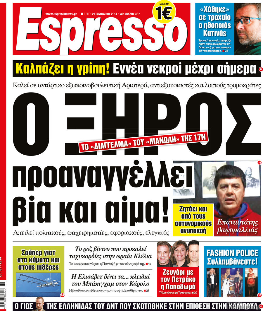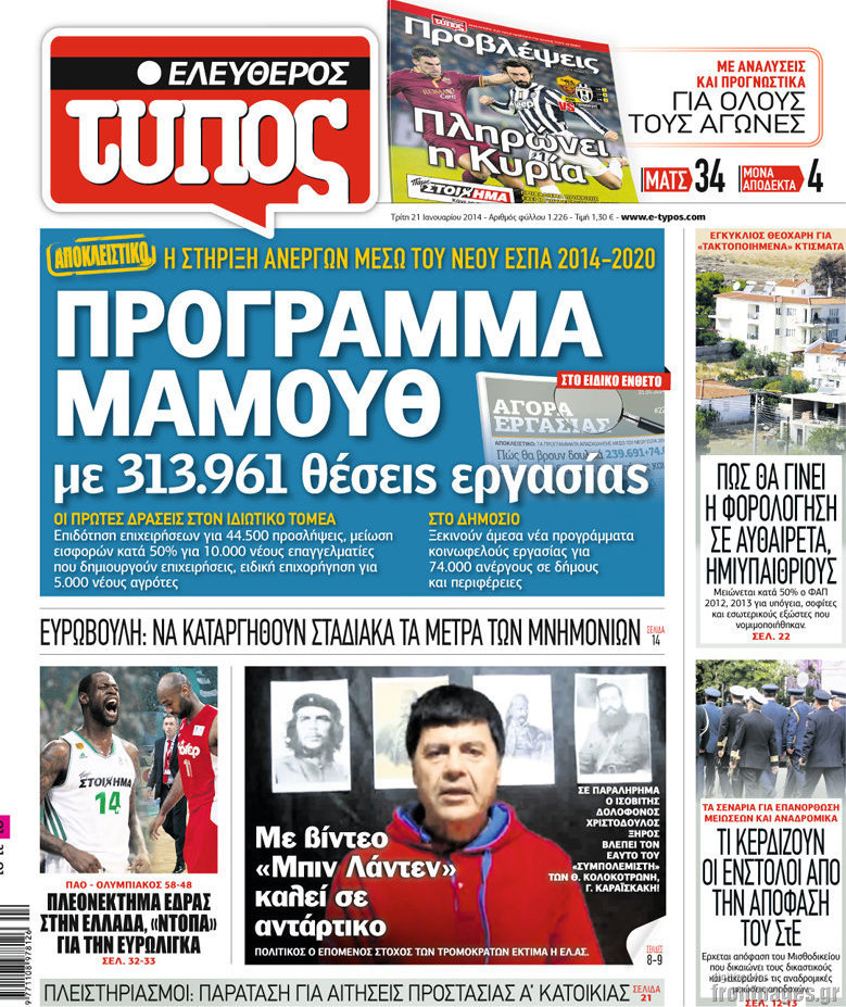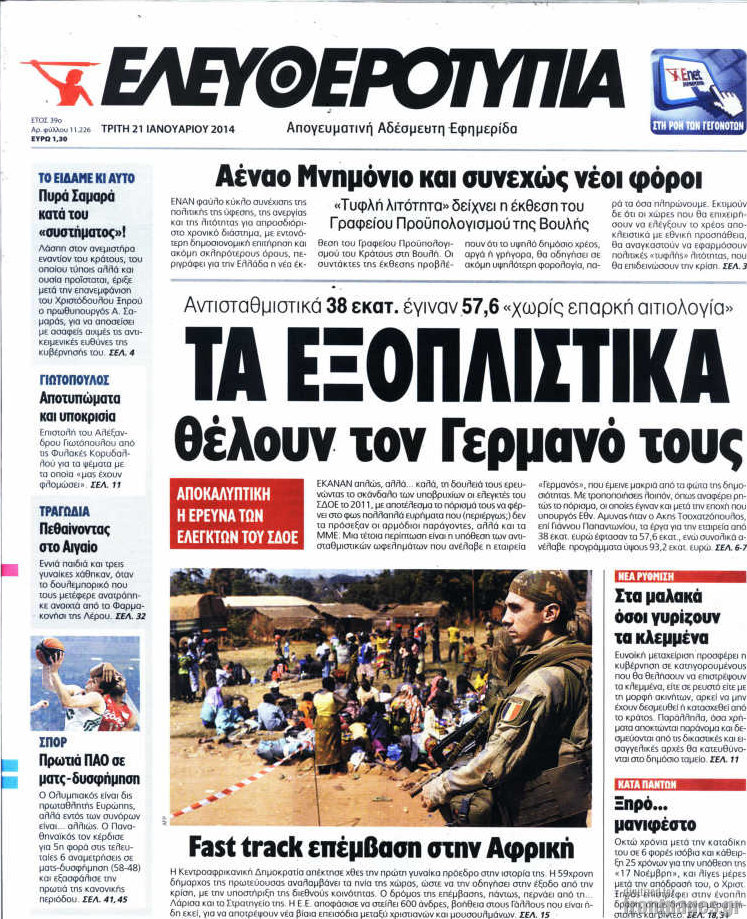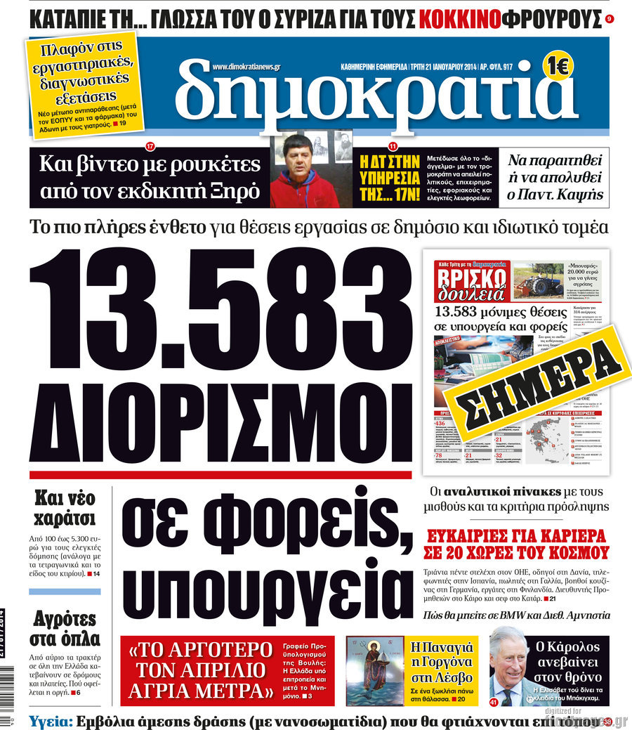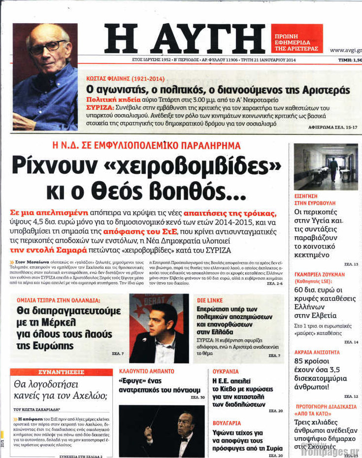 Οι πολιτικές εφημερίδες Enikos Newsroom 08:20, Τρίτη 21 Ιανουαρίου 2014 Media Οι πολιτικές εφημερίδες Διαβάστε τα πρωτοσέλιδα των πολιτικών εφημερίδων: ΕΦΗΜΕΡΙΔΕΣ ΠΟΛΙΤΙΚΕΣ ΕΦΗΜΕΡΙΔΕΣ ΠΡΩΤΟΣΕΛΙΔΑ Μοιράσου το: σχολίασε κι εσύ (0 σχόλια) Ακολουθήστε το enikos.gr στο Google News και μάθετε πρώτοι όλες τις ειδήσεις Δείτε όλες τις τελευταίες ειδήσεις από την Ελλάδα και τον Κόσμο στο enikos.gr Ειδήσεις Ροή Ειδήσεων 4 ώρες πριν Εκτός ευρωομάδας ΣΥΡΙΖΑ ο Νίκος Παππάς μετά την επίθεση στον δημοσιογράφο Νίκο Γιαννόπουλο – Η μήνυση και οι νέες δηλώσεις 4 ώρες πριν «Αγριεύουν» οι αγρότες: «Δεν συντρέχει λόγος συνάντησης με τον πρωθυπουργό» – Ώρα αποφάσεων στη σύσκεψη της Πέμπτης 4 ώρες πριν Κυψέλη: Χωρίς την οικογένειά της δίπλα της απολογήθηκε η 16χρονη – «Της είχε επιτεθεί κάποιος για να την βιάσει, φοβήθηκε και κυκλοφορούσε με μαχαίρι» 4 ώρες πριν Politico: Το πρόβλημα της Ευρώπης δεν είναι το Βέλγιο αλλά ο Ντόναλντ Τραμπ 6 ώρες πριν Αλεξανδρούπολη: Πολυοργανική ανεπάρκεια λόγω υποσιτισμού η αιτία θανάτου του 3χρονου αγοριού 4 ώρες πριν Μυστήριο με τεράστιες κυκλικές πέτρες 200 κιλών – Ανακαλύφθηκαν τυχαία κατά τη διάρκεια οδικών έργων και κανείς δεν ξέρει από πού προέρχονται 5 ώρες πριν Ύπνος: Ειδικός εξηγεί τον πραγματικό λόγο που ξυπνάτε στις 4 τα ξημερώματα – Ο ρόλος των ορμονών και του κιρκάδιου ρυθμού 6 ώρες πριν Αριθμολογία: Οι άνθρωποι που έχουν γεννηθεί αυτές τις 4 ημερομηνίες, είναι τρυφεροί και αγαπούν ανιδιοτελώς 18 ώρες πριν 20 χρόνια τα Χριστούγεννα ξεκινούν στα Public με μεγάλη ποικιλία σε δώρα! 27 λεπτά πριν Σουδάν: Επιδρομή drone σε χωριό του Νότιου Κορντοφάν – Οκτώ νεκροί 43 λεπτά πριν Αλ Τσαντίρι Νιουζ: Η κόρη της Πάολα στο κοινό – Η ατάκα Λαζόπουλου που την έκανε να «κοκκινήσει» 57 λεπτά πριν Ρωσία: Ουκρανικές δυνάμεις έπληξαν πλοίο στο λιμάνι του Ροστόφ – Αναφορές για θύματα 1 ώρα πριν Βρυξέλλες: Νυχτερινό… μπλόκο αγροτών μπροστά από το κτίριο της Ευρωπαϊκής Επιτροπής – Πάνω από 100 τρακτέρ απέκλεισαν την λεωφόρο 1 ώρα πριν Euroleague: Απρόσμενη ήττα για την Μονακό του Βασίλη Σπανούλη – Η βαθμολογία μετά το τέλος της 16ης αγωνιστικής ENIKOS NETWORK Αϋπνία: Το κόλπο που θα σας βοηθήσει να κοιμηθείτε απόψε – Είναι απλό και έχει αποτέλεσμα 2,6 εκατομμύρια πολίτες έχουν ήδη εμβολιαστεί κατά της γρίπης ΕΛΣΤΑΤ: Τι δείχνουν τα νέα στοιχεία για τις ηλεκτρονικές παραγγελίες των επιχειρήσεων ΚΕΠΕ: Οι 3 διακριτές συμβολές των ΜμΕ και της μεταποίησης στην ελληνική οικονομία Χαρτογραφώντας το «σημείο χωρίς επιστροφή»: Για πρώτη φορά αποκαλύπτεται με λεπτομέρεια το ακανθώδες όριο της ατμόσφαιρας τ... Η Google καταργεί τη λειτουργία «dark web report» – Πώς θα μπορούν οι χρήστες να διαγράφουν τα δεδομένα τους περισσότερα 02:30 , Πέμπτη 18 Δεκεμβρίου 2025 Αλ Τσαντίρι Νιουζ: Η κόρη της Πάολα στο κοινό – Η ατάκα Λαζόπουλου που την έκανε να «κοκκινήσει» Γιορτινή διάθεση και ευχάριστες στιγμές γέμισε η αποψινή, τελευταία για το 2025, εκπομπή του «... 22:24 , Τετάρτη 17 Δεκεμβρίου 2025 Το Σπίτι Δίπλα Στο Ποτάμι: Σε κίνδυνο η υγεία του Απόστολου – Τι θα δούμε απόψε “Το Σπίτι Δίπλα στο Ποτάμι” ξετυλίγει το νήμα της ζωής των πέντε αδελφών με καταισ... 21:14 , Τετάρτη 17 Δεκεμβρίου 2025 Παιχνίδια Εκδίκησης: Θα καταφέρει ο Χρήστος να κλονίσει την εμπιστοσύνη της Μάγιας απέναντι στον Άγη; Τα «Παιχνίδια Εκδίκησης» έρχονται απόψε στις 22:30, στον Αντ1, με το τελευταίο επεισόδιο της χ... 20:57 , Τετάρτη 17 Δεκεμβρίου 2025 Άγιος Έρωτας: Η Χλόη καταθέτε