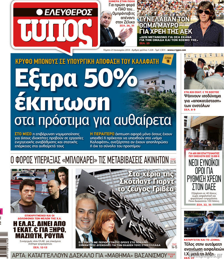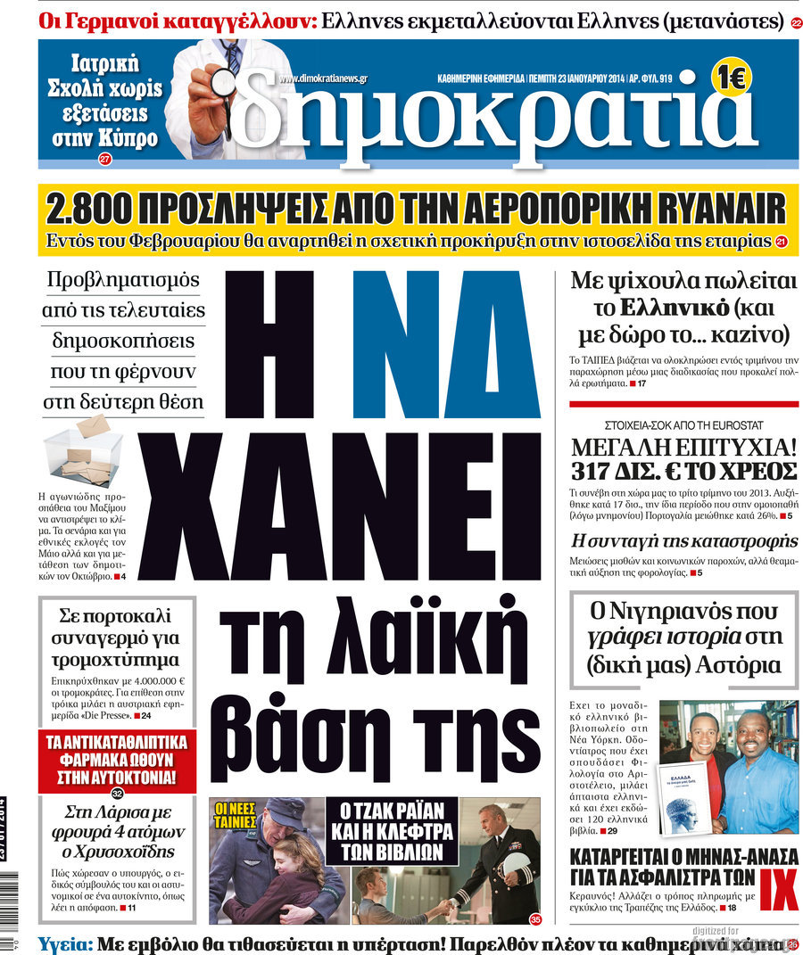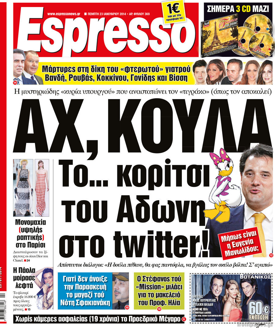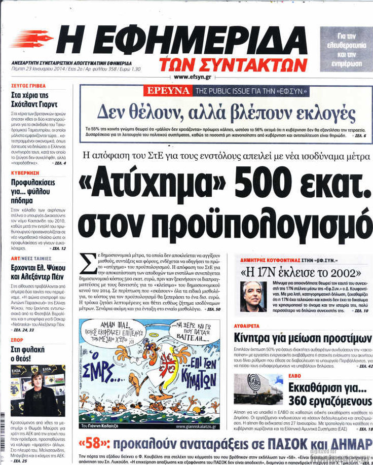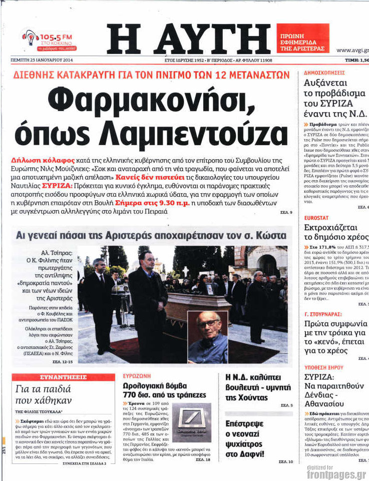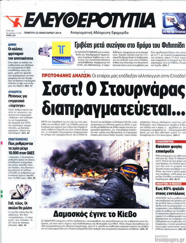 Οι πολιτικές εφημερίδες Enikos Newsroom 08:09, Πέμπτη 23 Ιανουαρίου 2014 Media Οι πολιτικές εφημερίδες Διαβάστε τα πρωτοσέλιδα των πολιτικών εφημερίδων: ΕΦΗΜΕΡΙΔΕΣ ΠΟΛΙΤΙΚΕΣ ΕΦΗΜΕΡΙΔΕΣ ΠΡΩΤΟΣΕΛΙΔΑ Μοιράσου το: σχολίασε κι εσύ (0 σχόλια) Ακολουθήστε το enikos.gr στο Google News και μάθετε πρώτοι όλες τις ειδήσεις Δείτε όλες τις τελευταίες ειδήσεις από την Ελλάδα και τον Κόσμο στο enikos.gr Ειδήσεις Ροή Ειδήσεων 8 ώρες πριν Χριστούγεννα στα μπλόκα: Επιμένουν στις κινητοποιήσεις τους οι αγρότες – Ανοίγουν τα διόδια το Σαββατοκύριακο 8 ώρες πριν Ουκρανία: Η άνευ προηγουμένου επίθεση σε ρωσικό τάνκερ στη Μεσόγειο και το μήνυμα προς στον Πούτιν – Το «μακρύ χέρι» του Κιέβου 8 ώρες πριν Πούτιν: Τα μηνύματα σε Ευρώπη και ΝΑΤΟ από το μαραθώνιο «σόου» του – Η απαίτηση για «σεβασμό» και η ειρήνη «με τους όρους» της Μόσχας 7 ώρες πριν ΗΠΑ: Η κυβέρνηση του Ντόναλντ Τραμπ άρχισε να δημοσιοποιεί τα αρχεία Έπσταϊν 7 ώρες πριν Άνω Λιόσια: Πυροβολισμοί σε επιχείρηση με χαλιά – Εντοπίστηκαν 10 κάλυκες 31 λεπτά πριν Αυγά: Πόσα μπορείτε να τρώτε την ημέρα με ασφάλεια για μέγιστη πρόσληψη πρωτεΐνης 1 ώρα πριν Τα ζώδια σήμερα, Σάββατο 20 Δεκεμβρίου: Παρθένοι, το σύμπαν σας δίνει το κλειδί 8 ώρες πριν Ανακαλύφθηκαν αρχαία χρυσά νομίσματα 2.200 ετών που απεικονίζουν τον θεό Απόλλωνα – Η άγνωστη σύνδεση με τον Φίλιππο Β΄ της Μακεδονίας 9 ώρες πριν Ύπνος: Μια κρυφή κατάσταση του εγκεφάλου πριν από τον ύπνο μπορεί να είναι το “κλειδί” για υψηλή ευφυΐα και δημιουργικότητα 8 λεπτά πριν Κολομβία: Είκοσι χρόνια κάθειρξη σε πρώην ανώτερο αξιωματικό για 72 εκτελέσεις αμάχων 16 λεπτά πριν Οπτική ψευδαίσθηση: Μόνο αν είσαι ο Σέρλοκ Χολμς θα βρεις τον αριθμό «87» σε 7 δευτερόλεπτα 23 λεπτά πριν Σαρωτικοί οι έλεγχοι στους δρόμους ενόψει εορτών – Μπλόκα της τροχαίας σε κεντρικές αρτηρίες της Αττικής 31 λεπτά πριν Αυγά: Πόσα μπορείτε να τρώτε την ημέρα με ασφάλεια για μέγιστη πρόσληψη πρωτεΐνης 38 λεπτά πριν Σαν σήμερα 20 Δεκεμβρίου: Τα σημαντικότερα γεγονότα της ημέρας ENIKOS NETWORK Το ΕΚΑΒ τιμήθηκε από την Ακαδημία Αθηνών για τα 40 χρόνια προσφοράς του Έχετε πραγματικά μεγάλη καρδιά; 10 χαρακτηριστικά όσων έχουν καλοσύνη Αναστολή μέτρων αναγκαστικής εκτέλεσης για κτηνοτρόφους που πλήττονται από την ευλογιά των αιγοπροβάτων Πλήρης επάρκεια προϊόντων στις λαϊκές της Αττικής, παρά τις αγροτικές κινητοποιήσεις – Τι απαντούν οι πωλητές Χαρτογραφώντας το «σημείο χωρίς επιστροφή»: Για πρώτη φορά αποκαλύπτεται με λεπτομέρεια το ακανθώδες όριο της ατμόσφαιρας τ... Η Google καταργεί τη λειτουργία «dark web report» – Πώς θα μπορούν οι χρήστες να διαγράφουν τα δεδομένα τους περισσότερα 05:48 , Σάββατο 20 Δεκεμβρίου 2025 Οι οικονομικές εφημερίδες 20/12/2025 Διαβάστε τα πρωτοσέλιδα από τις οικονομικές εφημερίδες, σήμερα 20/12/2025. 05:43 , Σάββατο 20 Δεκεμβρίου 2025 Οι αθλητικές εφημερίδες 20/12/2025 Διαβάστε τα πρωτοσέλιδα από τις αθλητικές εφημερίδες, σήμερα 20/12/2025. 05:38 , Σάββατο 20 Δεκεμβρίου 2025 Οι πολιτικές εφημερίδες 20/12/2025 Διαβάστε τα πρωτοσέλιδα από τις πολιτικές εφημερίδες, σήμερα 20/12/2025. 04:20 , Σάββατο 20 Δεκεμβρίου 2025 Αγγελική Νικολούλη: Τα συλλυπητήρια για την απώλεια της Ειρήνης Μαρινάκη Τα συλληπητήρια στον πρόεδρο του Mega, τον Βαγγέλη Μαρινάκη, για την απώλεια της μητέρας του Ε... ΤΕΛΕΥΤΑΙΕΣ ΕΙΔΗΣΕΙΣ 8 λεπτά πριν Κολομβία: Είκοσι χρόνια κάθειρξη σε πρώην ανώτερο... 16 λεπτά πριν Οπτική ψευδαίσθηση: Μόνο αν είσαι ο Σέρλοκ Χολμς θα... 23 λεπτά πριν Σαρωτικοί οι 