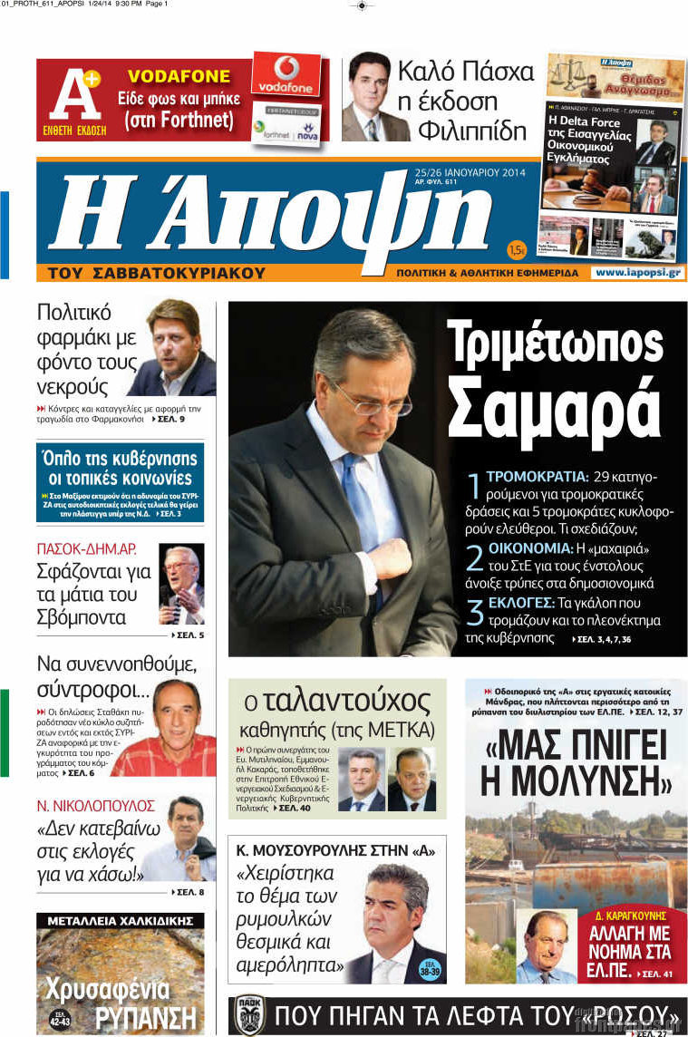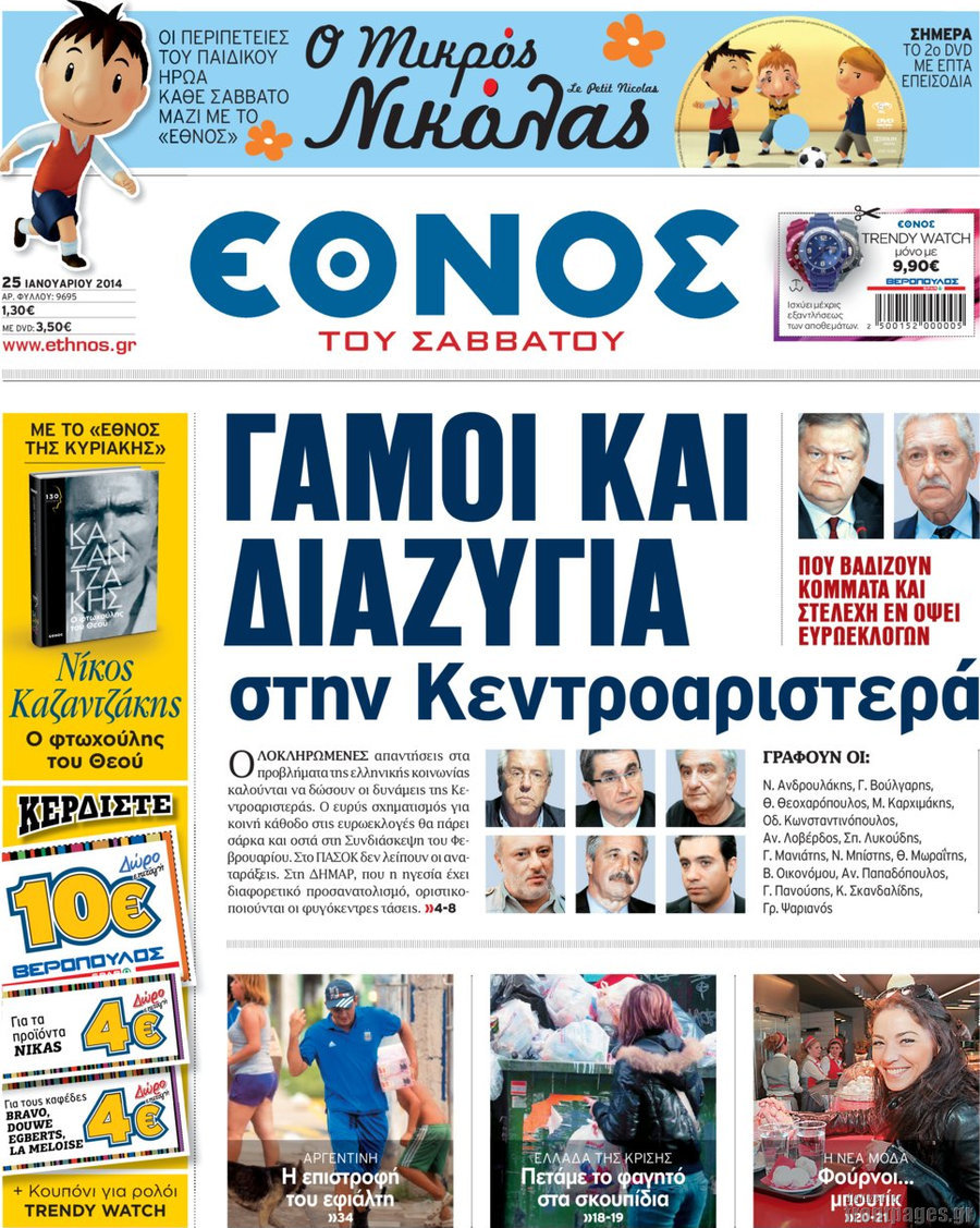Οι πολιτικές εφημερίδες Enikos Newsroom 08:13, Σάββατο 25 Ιανουαρίου 2014 Media Οι πολιτικές εφημερίδες Διαβάστε τα πρωτοσέλιδα των πολιτικών εφημερίδων: ΕΦΗΜΕΡΙΔΕΣ ΠΟΛΙΤΙΚΕΣ ΕΦΗΜΕΡΙΔΕΣ ΠΡΩΤΟΣΕΛΙΔΑ Μοιράσου το: σχολίασε κι εσύ (0 σχόλια) Ακολουθήστε το enikos.gr στο Google News και μάθετε πρώτοι όλες τις ειδήσεις Δείτε όλες τις τελευταίες ειδήσεις από την Ελλάδα και τον Κόσμο στο enikos.gr Ειδήσεις Ροή Ειδήσεων 3 ώρες πριν Πώς δρούσε το κύκλωμα που διακινούσε ναρκωτικά σε σχολεία – Υπέβαλαν σε βασανιστήρια όσους δεν τηρούσαν τους «κανόνες πειθαρχίας» 3 ώρες πριν Αγρότες: Γιορτές στα μπλόκα με ανοιχτά διόδια – Δικογραφία στα Ιωάννινα για το σήκωμα των μπαρών 2 ώρες πριν Ζελένσκι: Οι Αμερικανοί πρότειναν συνάντηση Ουκρανίας, ΗΠΑ, Ρωσίας στο Μαϊάμι 43 λεπτά πριν Τραμπ: Πώς περνάει τις γιορτές των Χριστουγέννων – Τα δώρα που κάνει στα εγγόνια του 2 ώρες πριν Μικαέλα Μπέντχαους: Ο πρώτος άνθρωπος σε αναπηρικό αμαξίδιο που ταξίδεψε στο διάστημα – ΒΙΝΤΕΟ 3 ώρες πριν Η τύχη χαμογελά σε 3 ζώδια έως τις 28 Δεκεμβρίου – «Προσέξτε τις επιλογές σας και η επιμονή σας θα ανταμειφθεί» 4 ώρες πριν Μία ανεκμετάλλευτη πηγή θα μπορούσε να προσφέρει ανεξάντλητη ενέργεια – Οι επιστήμονες ίσως γνωρίζουν πώς να την ξεκλειδώσουν 15 λεπτά πριν Μήπως οι γιορτές σας δεν είναι τόσο τέλειες; 7 χριστουγεννιάτικες συνήθειες που μαρτυρούν ότι μια οικογένεια είναι δυσλειτουργική 10 ώρες πριν Enerwave: Το νέο «ρεύμα» στη λιανική ενέργειας που αλλάζει την εμπειρία του καταναλωτή 4 λεπτά πριν Αστέρας Τρίπολης – Άρης 0-1: Με «κέρβερο» Αθανασιάδη «άλωσε» το «Θεόδωρος Κολοκοτρώνης» 15 λεπτά πριν Μήπως οι γιορτές σας δεν είναι τόσο τέλειες; 7 χριστουγεννιάτικες συνήθειες που μαρτυρούν ότι μια οικογένεια είναι δυσλειτουργική 19 λεπτά πριν Φωτιά σε αυτοκίνητο στην Λεωφόρο Κηφισίας στο ύψος της Φιλοθέης – Μεγάλο μποτιλιάρισμα στο σημείο 23 λεπτά πριν Πηνελόπη Πλάκα: Η εξομολόγηση για την προσωπική της ζωή – «Γούσταρα πάρα πολύ την ελευθερία μου» 35 λεπτά πριν Λούλα: Προειδοποιεί πως μια επέμβαση των ΗΠΑ στη Βενεζουέλα θα μπορούσε να είναι καταστροφική ENIKOS NETWORK Οι γυναίκες αποκαλύπτουν το πιο ελκυστικό πράγμα που μπορεί να κάνει ένας άνδρας Ομορφιά και αντιγήρανση: Ειδικοί μιλούν για συσκευές περιποίησης του δέρματος Ολοκληρώθηκαν πληρωμές 22,16 εκατ. ευρώ για το μεταφορικό ισοδύναμο – Κικίλιας: Στηρίζουμε τη νησιωτικότητα Η Realnews στο www.pressreader.com Χαρτογραφώντας το «σημείο χωρίς επιστροφή»: Για πρώτη φορά αποκαλύπτεται με λεπτομέρεια το ακανθώδες όριο της ατμόσφαιρας τ... Η Google καταργεί τη λειτουργία «dark web report» – Πώς θα μπορούν οι χρήστες να διαγράφουν τα δεδομένα τους περισσότερα 18:19 , Σάββατο 20 Δεκεμβρίου 2025 HOTΕΛ ΕΛVIRA: Η Ελβίρα μαθαίνει πως ο Χάρι μένει κρυφά στο ξενοδοχείο του Παντελή Συνεχίζονται οι εκλογές για πρόεδρο, στο νέο επεισόδιο της κωμικής σειράς του MEGA, HOTΕΛ ΕΛVI... 14:04 , Σάββατο 20 Δεκεμβρίου 2025 Η Realnews αυτής της Κυριακής (21/12/2025) Με τίτλο: «Ασπίδα προστασίας για την Ελλάδα» κυκλοφορεί, αυτήν την Κυριακή, η Realnews. Σημαντ... 12:53 , Σάββατο 20 Δεκεμβρίου 2025 Να μ’ αγαπάς: Το παρελθόν έρχεται στο φως – Καταιγιστικές εξελίξεις στα τελευταία επεισόδια του 2025 Ο Άγγελος αποκαλύπτεται, η Φωτεινή ανησυχεί για τον Λευτέρη και η Ζωή έρχεται αντιμέτωπη με το... 11:41 , Σάββατο 20 Δεκεμβρίου 2025 «Η αγάπη δεν χάνεται ποτέ»: Η μικρού μήκους ταινία κινουμένων σχεδίων που θέτει ερωτήματα για τη ζωή και τον θάνατο Ο θάνατος είναι ένα απ