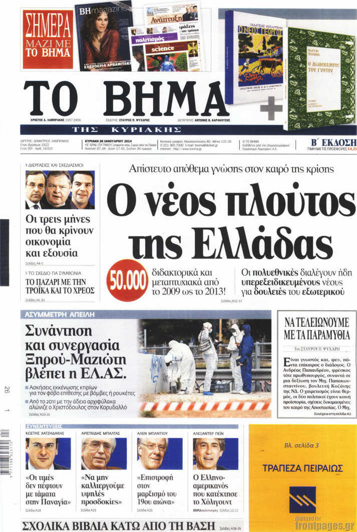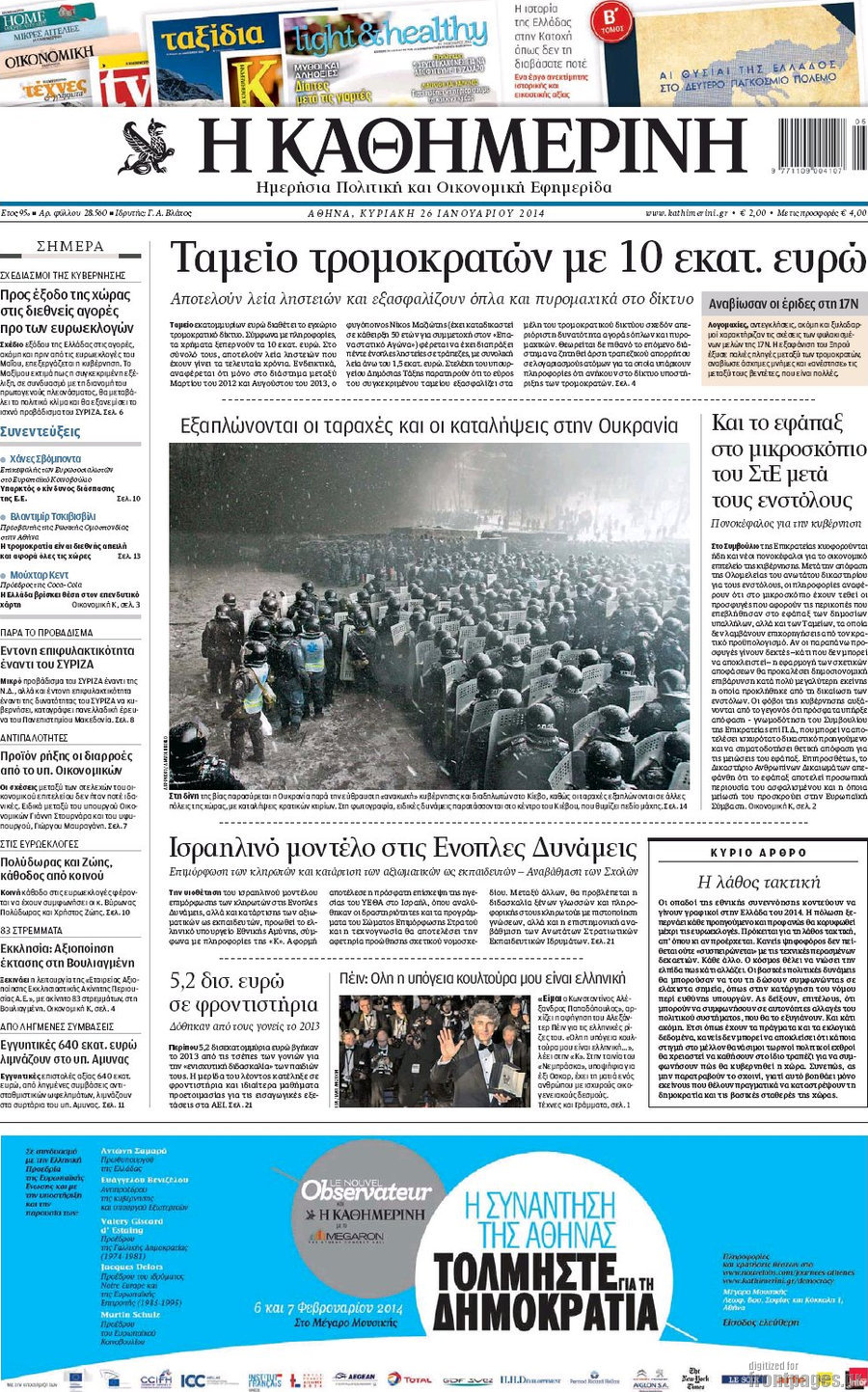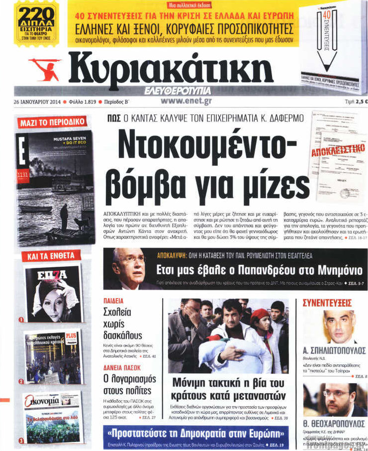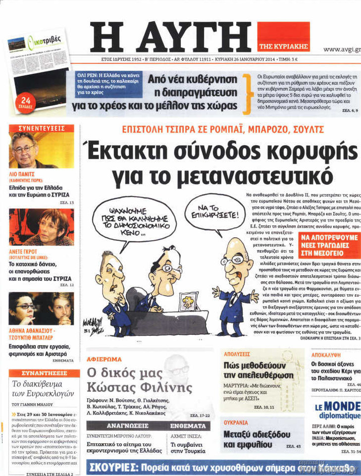 Οι πολιτικές εφημερίδες Enikos Newsroom 08:08, Κυριακή 26 Ιανουαρίου 2014 Media Οι πολιτικές εφημερίδες Διαβάστε τα πρωτοσέλιδα των πολιτικών εφημερίδων: ΕΦΗΜΕΡΙΔΕΣ ΠΟΛΙΤΙΚΕΣ ΕΦΗΜΕΡΙΔΕΣ ΠΡΩΤΟΣΕΛΙΔΑ Μοιράσου το: σχολίασε κι εσύ (0 σχόλια) Ακολουθήστε το enikos.gr στο Google News και μάθετε πρώτοι όλες τις ειδήσεις Δείτε όλες τις τελευταίες ειδήσεις από την Ελλάδα και τον Κόσμο στο enikos.gr Ειδήσεις Ροή Ειδήσεων 3 ώρες πριν Η κοινή διακήρυξη Ελλάδας – Κύπρου – Ισραήλ: Ενίσχυση αμυντικής συνεργασίας, δέσμευση για τον Great Sea Inteconnector – Τα μηνύματα της τριμερούς Συνόδου 2 ώρες πριν Αγρότες: Bάζουν στην άκρη τα τρακτέρ ενόψει Χριστουγέννων, θέμα ασφαλείας εγείρει η αστυνομία – Οι αναδιατάξεις που θα γίνουν από την Τρίτη 3 ώρες πριν Νεκρός ο άνδρας που έπεσε στις ράγες του Ηλεκτρικού στα Κάτω Πατήσια 5 ώρες πριν Αλεξανδρούπολη: Μήνυση υπέβαλε ο παππούς του 3χρονου που πέθανε από ασιτία – Αναζητούνται οι δράστες που τον ξυλοκόπησαν 60 λεπτά πριν Ολλανδία: Αυτοκίνητο έπεσε σε πλήθος στην πόλη Νούνσπετ – Τουλάχιστον εννέα τραυματίες – ΦΩΤΟ και ΒΙΝΤΕΟ 2 ώρες πριν Το «μαγικό» υλικό της Αρχαιότητας βρίσκεται ακόμα ανάμεσά μας – Η επιστήμη έλυσε το μυστήριο 4 ώρες πριν Αριθμολογία: Η λέξη που σας χαρακτηρίζει, με βάση την ημερομηνία γέννησής σας – «Είναι η αύρα που εκπέμπετε πριν καν μιλήσετε» 3 ώρες πριν Ύπνος: Γιατρός μοιράζεται τα σημάδια που δείχνουν ότι μπορεί να πάσχετε από «ορμονική αϋπνία» 3 ημέρες πριν Enerwave: Το νέο «ρεύμα» στη λιανική ενέργειας που αλλάζει την εμπειρία του καταναλωτή 8 λεπτά πριν Σωκράτης Πατσίκας: «Είχαμε σβήσει μια τούρτα στην παράσταση που έλεγε “4 – 400” – Το “4” ήταν τα εισιτήρια που είχαμε το πρώτο Σάββατο» 22 λεπτά πριν Παναθηναϊκός: Η «σκληρή» ομιλία και τα «μηνύματα» του Μπενίτεθ στους παίκτες μετά την ήττα από τον ΠΑΟΚ 38 λεπτά πριν ΟΗΕ: Η Ελλάδα και 8 ακόμη χώρες κρούουν τον κώδωνα του κινδύνου για τα δεινά που υφίστανται γυναίκες και κορίτσια στο Σουδάν 50 λεπτά πριν Ανδρέας Μικρούτσικος για την υγεία του: «Κάνω τα σέρβις στο σπίτι με το οξυγόνο, αλλά έχω έναν διάολο μέσα μου» 60 λεπτά πριν Ολλανδία: Αυτοκίνητο έπεσε σε πλήθος στην πόλη Νούνσπετ – Τουλάχιστον εννέα τραυματίες – ΦΩΤΟ και ΒΙΝΤΕΟ ENIKOS NETWORK Στέλνετε ακόμα Χριστουγεννιάτικες κάρτες; Τι μπορεί να δείχνει για την προσωπικότητά σας Ενεργειακή αναβάθμιση του νοσοκομείου Πατρών «Ο Άγιος Ανδρέας» ΔΕΔΔΗΕ: Τάσεις αποκλιμάκωσης των ρευματοκλοπών αλλά παραμένουν σε υψηλά επίπεδα – Τι δείχνουν τα τελευταία στοιχεία ΥΠΑΑΤ – Ελληνική Αναπτυξιακή Τράπεζα: Συμφωνία για 3 νέα χρηματοδοτικά εργαλεία με μόχλευση πόρων 365 εκατ. ευρώ Ο Google Assistant θα παραμείνει λίγο περισσότερο για ορισμένους χρήστες Android Τεστ προσωπικότητας: Το βάζο που θα επιλέξετε αποκαλύπτει πώς λύνετε προβλήματα στη ζωή σας περισσότερα 20:16 , Δευτέρα 22 Δεκεμβρίου 2025 «Το παιδί από την αρχή»: Special edition επεισόδια της επιτυχημένης σειράς αρχίζουν από σήμερα στην ΕΡΤ1 «Το παιδί», η ξεχωριστή σειρά της ΕΡΤ1 με στοιχεία μαύρης κωμωδίας, που φέρει την υπογραφή του... 19:41 , Δευτέρα 22 Δεκεμβρίου 2025 Porto Leone: Στη γειτονιά με τα κόκκινα φανάρια – Η Αλεξάνδρα ανακαλύπτει το μυστικό της Γαλήνης και της στήνει παγίδα Απόψε στις 22:30 στον Alpha η συγκλονιστική συνέχεια της δραματικής σειράς του Apha «Porto Leo... 19:16 , Δευτέρα 22 Δεκεμβρίου 2025 Άγιος έρωτας: Η Πετρούλα αφήνει την τελευταία της πνοή Καθηλώνει το προτελευταίο επεισόδιο της χρονιάς της σειράς “Άγιος Έ