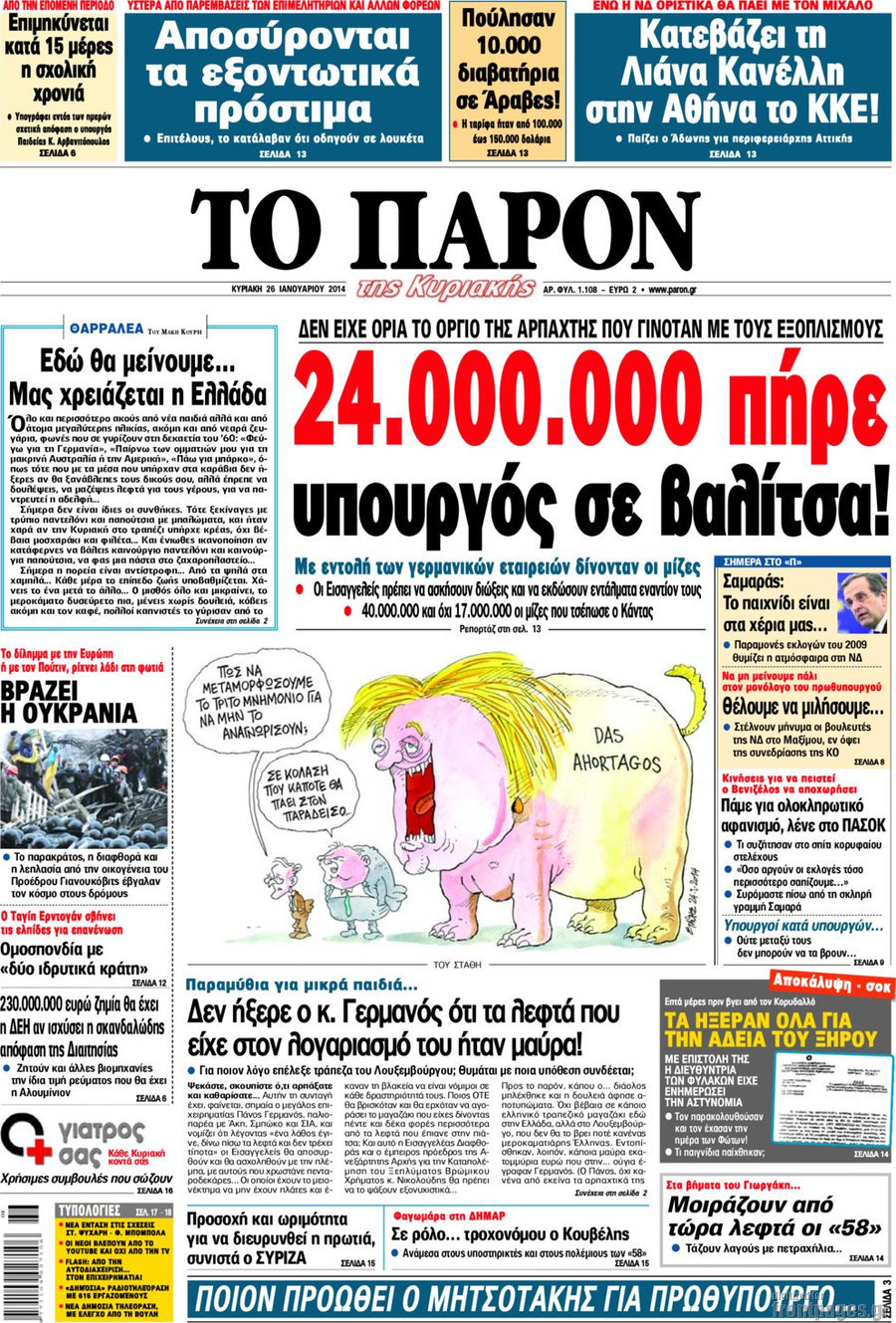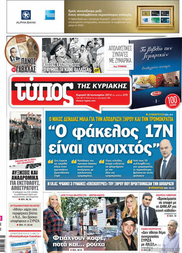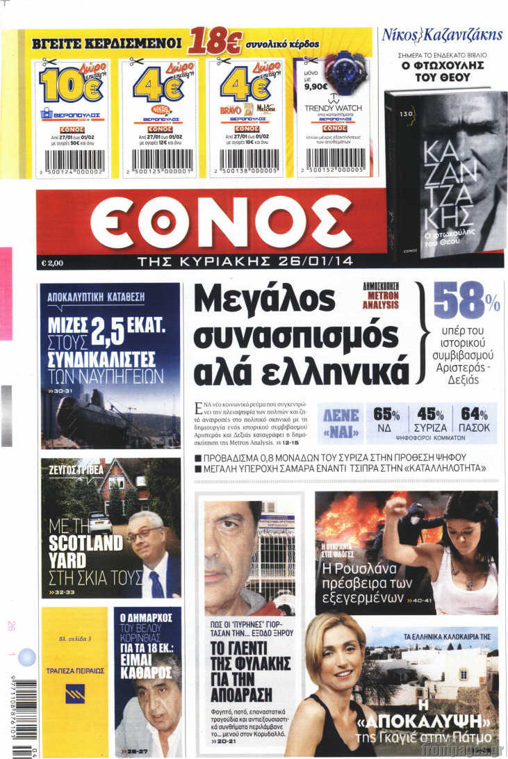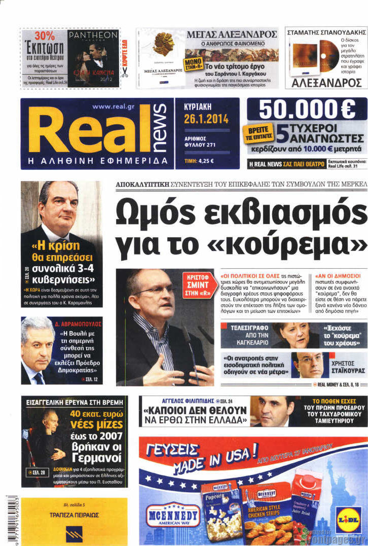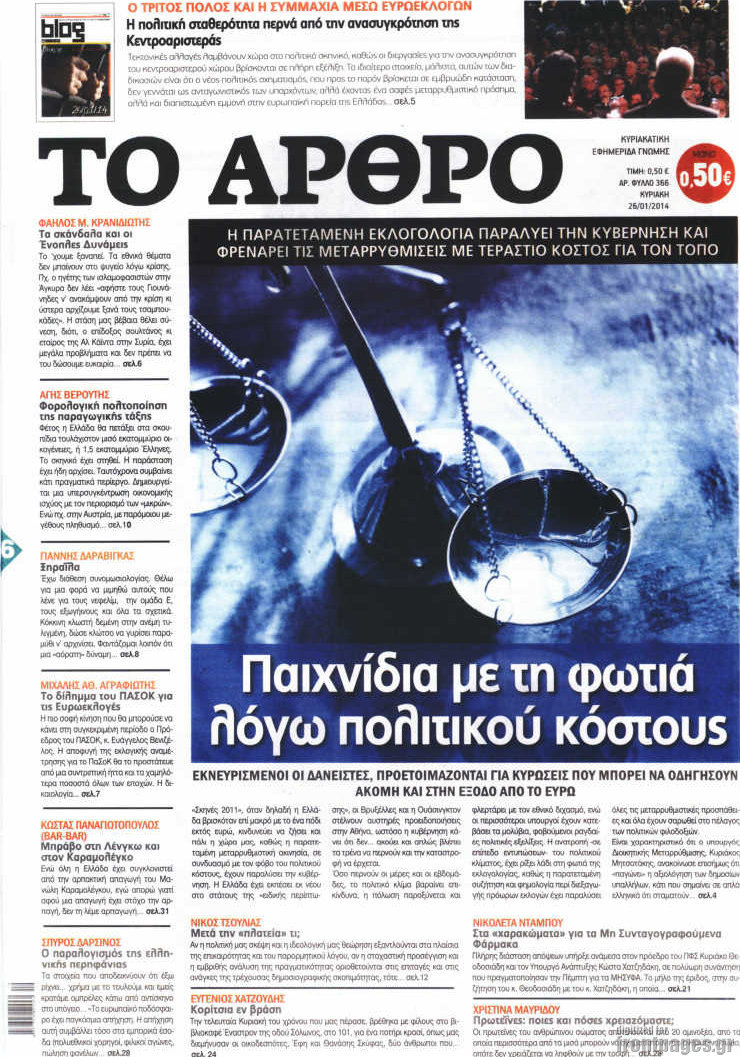 Οι πολιτικές εφημερίδες Enikos Newsroom 08:08, Κυριακή 26 Ιανουαρίου 2014 Media Οι πολιτικές εφημερίδες Διαβάστε τα πρωτοσέλιδα των πολιτικών εφημερίδων: ΕΦΗΜΕΡΙΔΕΣ ΠΟΛΙΤΙΚΕΣ ΕΦΗΜΕΡΙΔΕΣ ΠΡΩΤΟΣΕΛΙΔΑ Μοιράσου το: σχολίασε κι εσύ (0 σχόλια) Ακολουθήστε το enikos.gr στο Google News και μάθετε πρώτοι όλες τις ειδήσεις Δείτε όλες τις τελευταίες ειδήσεις από την Ελλάδα και τον Κόσμο στο enikos.gr Ειδήσεις Ροή Ειδήσεων 3 ώρες πριν Η κοινή διακήρυξη Ελλάδας – Κύπρου – Ισραήλ: Ενίσχυση αμυντικής συνεργασίας, δέσμευση για τον Great Sea Inteconnector – Τα μηνύματα της τριμερούς Συνόδου 2 ώρες πριν Αγρότες: Bάζουν στην άκρη τα τρακτέρ ενόψει Χριστουγέννων, θέμα ασφαλείας εγείρει η αστυνομία – Οι αναδιατάξεις που θα γίνουν από την Τρίτη 3 ώρες πριν Νεκρός ο άνδρας που έπεσε στις ράγες του Ηλεκτρικού στα Κάτω Πατήσια 5 ώρες πριν Αλεξανδρούπολη: Μήνυση υπέβαλε ο παππούς του 3χρονου που πέθανε από ασιτία – Αναζητούνται οι δράστες που τον ξυλοκόπησαν 60 λεπτά πριν Ολλανδία: Αυτοκίνητο έπεσε σε πλήθος στην πόλη Νούνσπετ – Τουλάχιστον εννέα τραυματίες – ΦΩΤΟ και ΒΙΝΤΕΟ 2 ώρες πριν Το «μαγικό» υλικό της Αρχαιότητας βρίσκεται ακόμα ανάμεσά μας – Η επιστήμη έλυσε το μυστήριο 4 ώρες πριν Αριθμολογία: Η λέξη που σας χαρακτηρίζει, με βάση την ημερομηνία γέννησής σας – «Είναι η αύρα που εκπέμπετε πριν καν μιλήσετε» 3 ώρες πριν Ύπνος: Γιατρός μοιράζεται τα σημάδια που δείχνουν ότι μπορεί να πάσχετε από «ορμονική αϋπνία» 3 ημέρες πριν Enerwave: Το νέο «ρεύμα» στη λιανική ενέργειας που αλλάζει την εμπειρία του καταναλωτή 8 λεπτά πριν Σωκράτης Πατσίκας: «Είχαμε σβήσει μια τούρτα στην παράσταση που έλεγε “4 – 400” – Το “4” ήταν τα εισιτήρια που είχαμε το πρώτο Σάββατο» 22 λεπτά πριν Παναθηναϊκός: Η «σκληρή» ομιλία και τα «μηνύματα» του Μπενίτεθ στους παίκτες μετά την ήττα από τον ΠΑΟΚ 38 λεπτά πριν ΟΗΕ: Η Ελλάδα και 8 ακόμη χώρες κρούουν τον κώδωνα του κινδύνου για τα δεινά που υφίστανται γυναίκες και κορίτσια στο Σουδάν 50 λεπτά πριν Ανδρέας Μικρούτσικος για την υγεία του: «Κάνω τα σέρβις στο σπίτι με το οξυγόνο, αλλά έχω έναν διάολο μέσα μου» 60 λεπτά πριν Ολλανδία: Αυτοκίνητο έπεσε σε πλήθος στην πόλη Νούνσπετ – Τουλάχιστον εννέα τραυματίες – ΦΩΤΟ και ΒΙΝΤΕΟ ENIKOS NETWORK Στέλνετε ακόμα Χριστουγεννιάτικες κάρτες; Τι μπορεί να δείχνει για την προσωπικότητά σας Ενεργειακή αναβάθμιση του νοσοκομείου Πατρών «Ο Άγιος Ανδρέας» ΔΕΔΔΗΕ: Τάσεις αποκλιμάκωσης των ρευματοκλοπών αλλά παραμένουν σε υψηλά επίπεδα – Τι δείχνουν τα τελευταία στοιχεία ΥΠΑΑΤ – Ελληνική Αναπτυξιακή Τράπεζα: Συμφωνία για 3 νέα χρηματοδοτικά εργαλεία με μόχλευση πόρων 365 εκατ. ευρώ Ο Google Assistant θα παραμείνει λίγο περισσότερο για ορισμένους χρήστες Android Τεστ προσωπικότητας: Το βάζο που θα επιλέξετε αποκαλύπτει πώς λύνετε προβλήματα στη ζωή σας περισσότερα 20:16 , Δευτέρα 22 Δεκεμβρίου 2025 «Το παιδί από την αρχή»: Special edition επεισόδια της επιτυχημένης σειράς αρχίζουν από σήμερα στην ΕΡΤ1 «Το παιδί», η ξεχωριστή σειρά της ΕΡΤ1 με στοιχεία μαύρης κωμωδίας, που φέρει την υπογραφή του... 19:41 , Δευτέρα 22 Δεκεμβρίου 2025 Porto Leone: Στη γειτονιά με τα κόκκινα φανάρια – Η Αλεξάνδρα ανακαλύπτει το μυστικό της Γαλήνης και της στήνει παγίδα Απόψε στις 22:30 στον Alpha η συγκλονιστική συνέχεια της δραματικής σειράς του Apha «Porto Leo... 19:16 , Δευτέρα 22 Δεκεμβρίου 2025 Άγιος έρωτας: Η Πετρούλα αφήνει την τελευταία της πνοή Καθηλώνει το προτελευταίο επεισόδιο της χρονιάς της σειράς “Άγιος Έ