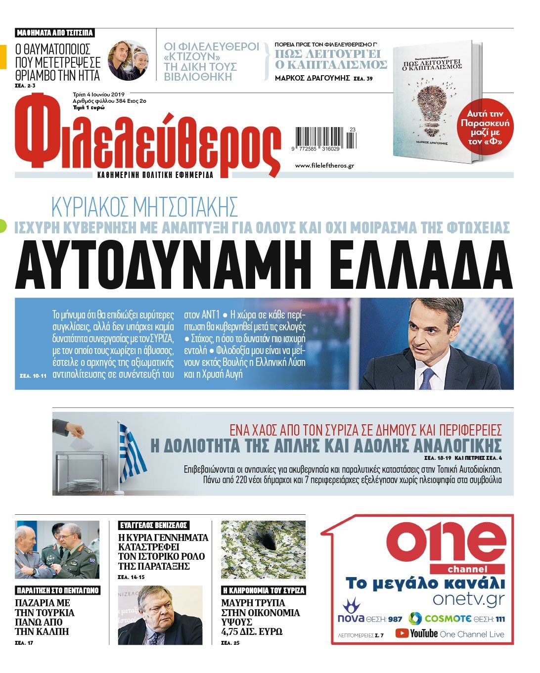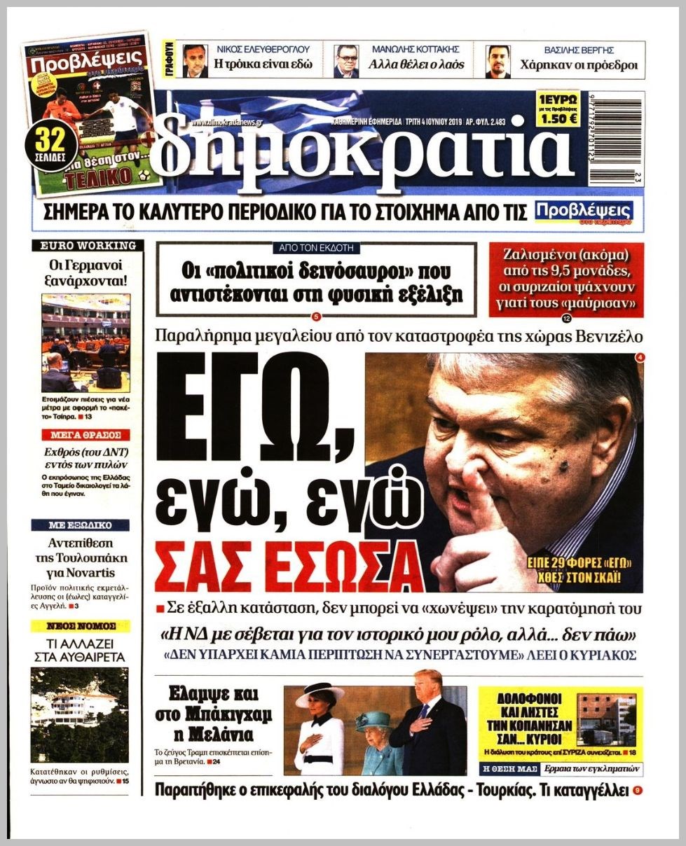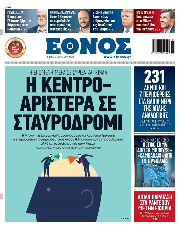 Οι πολιτικές εφημερίδες 4/6/2019 Κώστας Τεό 06:31, Τρίτη 04 Ιουνίου 2019 Media Διαβάστε τα πρωτοσέλιδα των πολιτικών εφημερίδων: ΠΟΛΙΤΙΚΕΣ ΕΦΗΜΕΡΙΔΕΣ ΠΡΩΤΟΣΕΛΙΔΑ Μοιράσου το: σχολίασε κι εσύ (0 σχόλια) Ακολουθήστε το enikos.gr στο Google News και μάθετε πρώτοι όλες τις ειδήσεις Δείτε όλες τις τελευταίες ειδήσεις από την Ελλάδα και τον Κόσμο στο enikos.gr Ειδήσεις Ροή Ειδήσεων 2 ώρες πριν Χριστούγεννα στα μπλόκα: Επιμένουν στις κινητοποιήσεις τους οι αγρότες – Ανοίγουν τα διόδια το Σαββατοκύριακο 2 ώρες πριν Ουκρανία: Η άνευ προηγουμένου επίθεση σε ρωσικό τάνκερ στη Μεσόγειο και το μήνυμα προς στον Πούτιν – Το «μακρύ χέρι» του Κιέβου 1 ώρα πριν Πούτιν: Τα μηνύματα σε Ευρώπη και ΝΑΤΟ από το μαραθώνιο «σόου» του – Η απαίτηση για «σεβασμό» και η ειρήνη «με τους όρους» της Μόσχας 2 ώρες πριν Τραμπ: Δεν αποκλείει την πιθανότητα ενός πολέμου στη Βενεζουέλα – «Ο Μαδούρο ξέρει καλύτερα από τον καθένα τι ακριβώς θέλω» 3 ώρες πριν Συνεχίζει να προκαλεί ο Μίτσκοσκι: «Για μένα το όνομα Μακεδονία είναι ιερό» 1 ώρα πριν Ανακαλύφθηκαν αρχαία χρυσά νομίσματα 2.200 ετών που απεικονίζουν τον θεό Απόλλωνα – Η άγνωστη σύνδεση με τον Φίλιππο Β΄ της Μακεδονίας 2 ώρες πριν Ύπνος: Μια κρυφή κατάσταση του εγκεφάλου πριν από τον ύπνο μπορεί να είναι το “κλειδί” για υψηλή ευφυΐα και δημιουργικότητα 3 ώρες πριν Αριθμολογία: Οι άνθρωποι που έχουν γεννηθεί αυτές τις 4 ημερομηνίες, συχνά παρεξηγούνται – «Η καλοσύνη τους κρύβει τεράστια δύναμη» 4 ώρες πριν Ξεχάστε το καθάρισμα το Σαββατοκύριακο: Ο «κανόνας των 20 λεπτών» που θα σας λύσει τα χέρια 10 λεπτά πριν Πόλεμος στην Ουκρανία: Εφτά νεκροί από ρωσική πυραυλική επίθεση στο λιμάνι της Οδησσού 14 λεπτά πριν ΗΠΑ: Η κυβέρνηση του Ντόναλντ Τραμπ άρχισε να δημοσιοποιεί τα αρχεία Έπσταϊν 26 λεπτά πριν Σάμος: Άνοιξε το μπλόκο των αγροτών στον κόμβο Κοκκαρίου – Σε νέα συνεδρίαση θα καθορίσουν την στάση τους 34 λεπτά πριν Άνω Λιόσια: Πυροβολισμοί σε επιχείρηση με χαλιά – Εντοπίστηκαν 10 κάλυκες 41 λεπτά πριν Γάζα: Ισραηλινό πλήγμα σε σχολείο που είχαν καταφύγει εκτοπισμένοι – Τουλάχιστον έξι νεκροί ENIKOS NETWORK Το ΕΚΑΒ τιμήθηκε από την Ακαδημία Αθηνών για τα 40 χρόνια προσφοράς του Έχετε πραγματικά μεγάλη καρδιά; 10 χαρακτηριστικά όσων έχουν καλοσύνη Αναστολή μέτρων αναγκαστικής εκτέλεσης για κτηνοτρόφους που πλήττονται από την ευλογιά των αιγοπροβάτων Πλήρης επάρκεια προϊόντων στις λαϊκές της Αττικής, παρά τις αγροτικές κινητοποιήσεις – Τι απαντούν οι πωλητές Χαρτογραφώντας το «σημείο χωρίς επιστροφή»: Για πρώτη φορά αποκαλύπτεται με λεπτομέρεια το ακανθώδες όριο της ατμόσφαιρας τ... Η Google καταργεί τη λειτουργία «dark web report» – Πώς θα μπορούν οι χρήστες να διαγράφουν τα δεδομένα τους περισσότερα 22:42 , Παρασκευή 19 Δεκεμβρίου 2025 Γιώργος Γιαννόπουλος για “Το σόι σου”: “Είναι ευτυχία και ευλογία αυτή η σειρά” «Είναι ευτυχία και ευλογία η συγκυρία αυτής της σειράς», θα πει ο Γιώργος Γιαννόπουλος -ο αγαπ... 20:37 , Παρασκευή 19 Δεκεμβρίου 2025 Don’t Forget The Lyrics: Η Έλλη Κοκκίνου υποδέχεται 4 παίκτες που θα κάνουν τα πάντα για να μη χάσουν ούτε… μισή λέξη από τους στίχους Το «Don’t Forget The Lyrics» επιστρέφει απόψε, Παρασκευή 19 Δεκεμβρίου, στις 21:00 με νέο επει... 19:31 , Παρασκευή 19 Δεκεμβρίου 2025 GNTM: Απόψε ο μεγάλος τελικός για τους 4 φιναλίστ Έπειτα από μήνες γεμάτους μόδα, δημιουργία και έντονες αναμετρήσεις, το GNTM 2025 κορυφώνεται,... 18:11 , Παρασκευή 19 Δεκεμβρίου 2025 Το σόι σου: Ο Άρης έρχετα