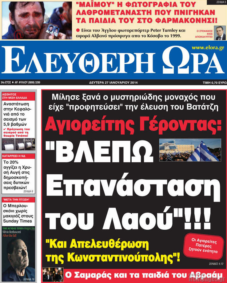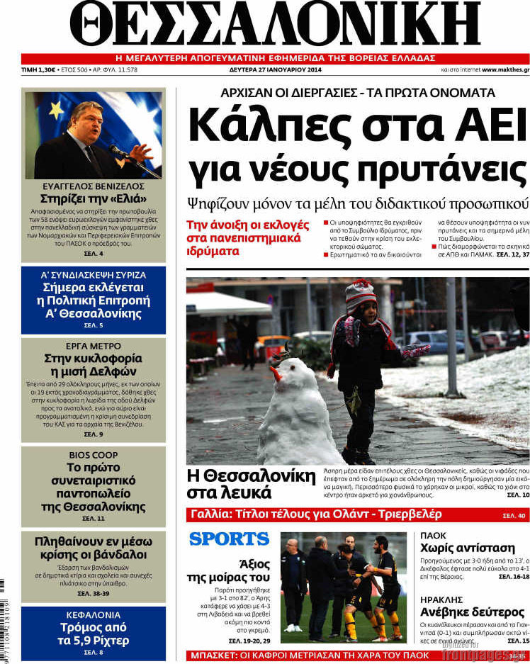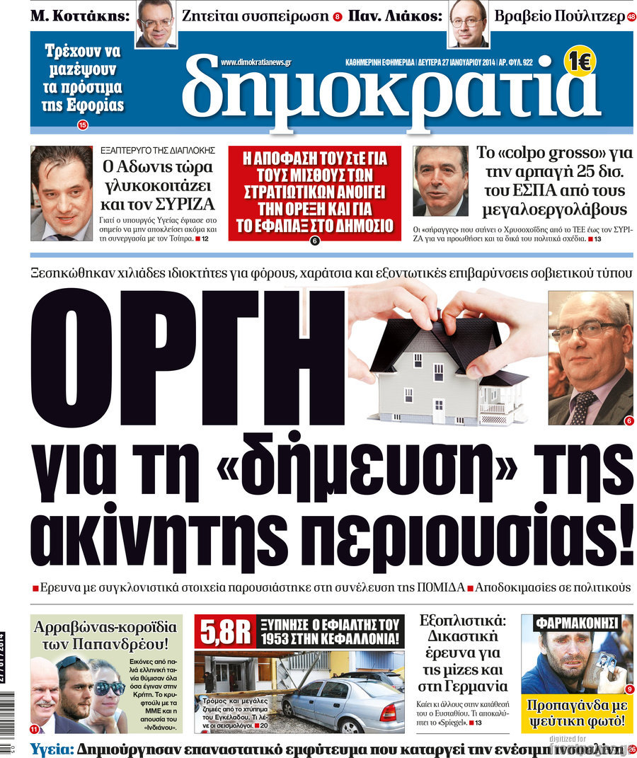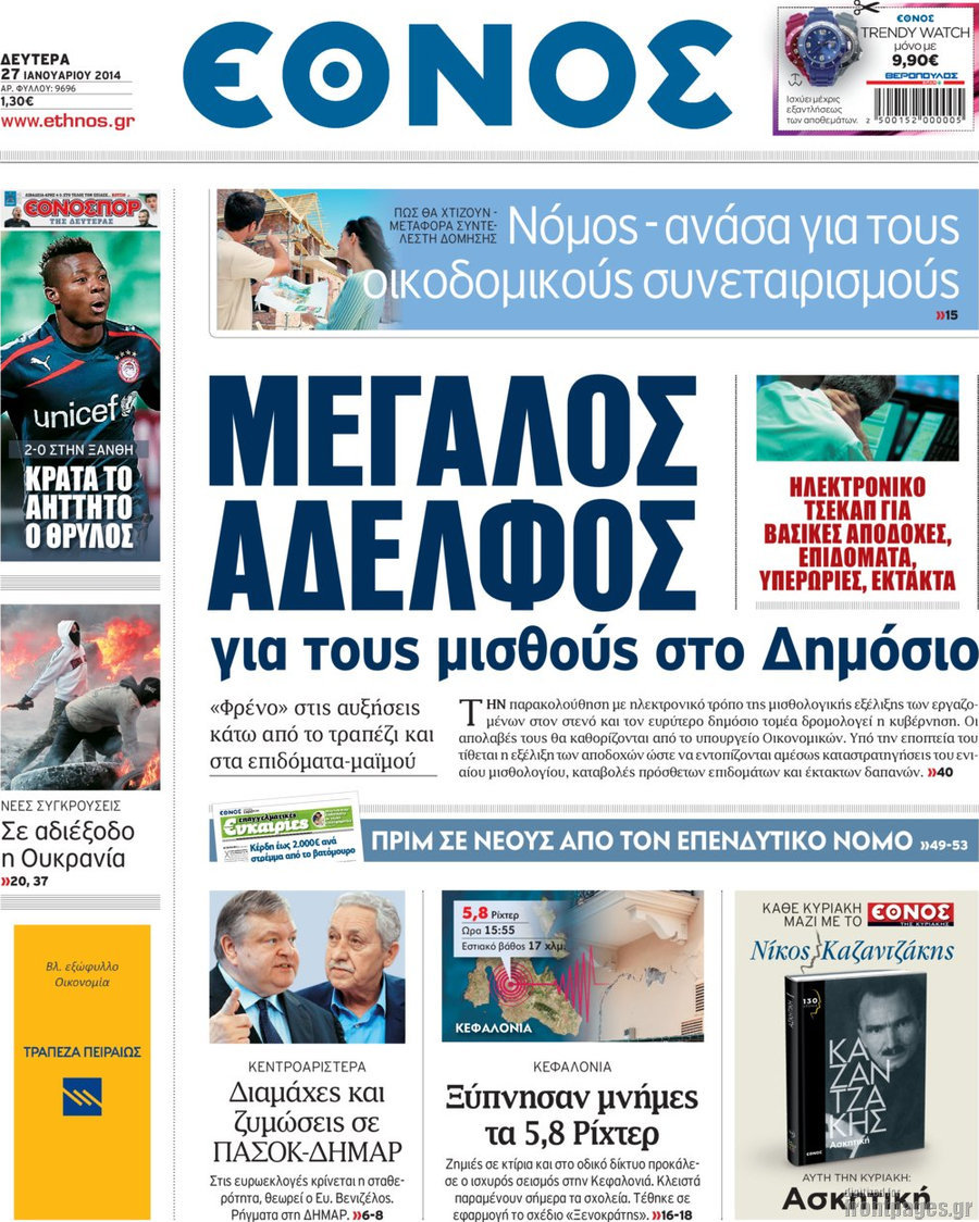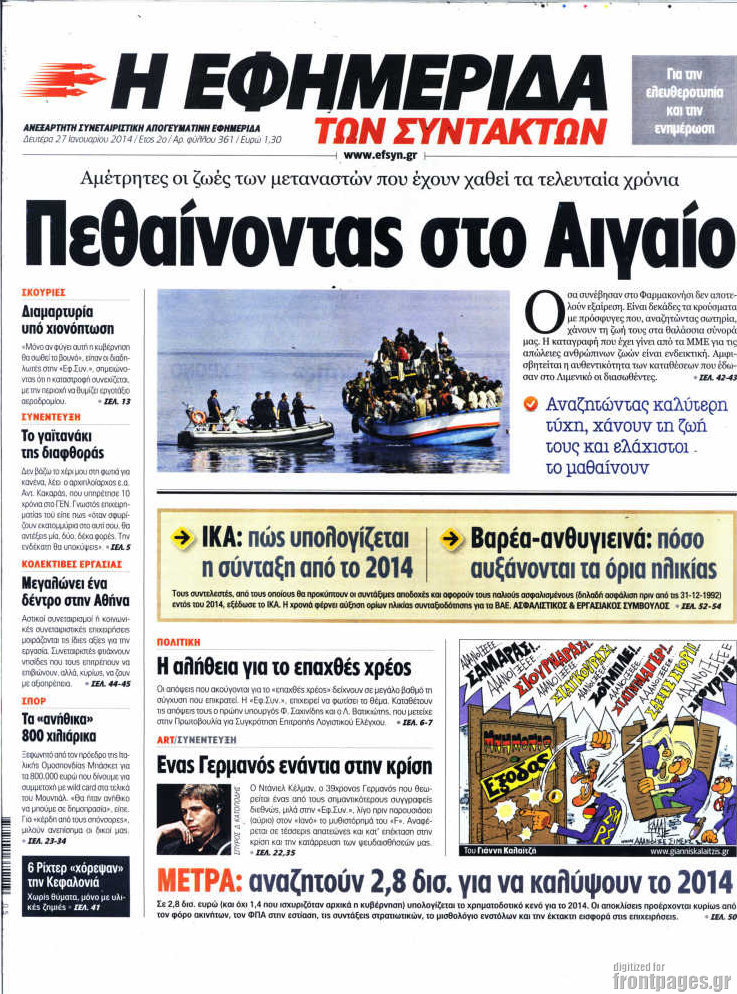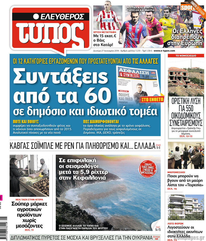 Οι πολιτικές εφημερίδες Enikos Newsroom 08:18, Δευτέρα 27 Ιανουαρίου 2014 Media Οι πολιτικές εφημερίδες Διαβάστε τα πρωτοσέλιδα των πολιτικών εφημερίδων: ΕΦΗΜΕΡΙΔΕΣ ΠΟΛΙΤΙΚΕΣ ΕΦΗΜΕΡΙΔΕΣ ΠΡΩΤΟΣΕΛΙΔΑ Μοιράσου το: σχολίασε κι εσύ (0 σχόλια) Ακολουθήστε το enikos.gr στο Google News και μάθετε πρώτοι όλες τις ειδήσεις Δείτε όλες τις τελευταίες ειδήσεις από την Ελλάδα και τον Κόσμο στο enikos.gr Ειδήσεις Ροή Ειδήσεων 2 ώρες πριν Καμία «ανακωχή» για τους αγρότες: Γενική συνέλευση σήμερα στο μπλόκο της Νίκαιας – Ο σχεδιασμός για ανοιχτούς δρόμους τα Χριστούγεννα 1 ώρα πριν Γαλλία: Έτοιμοι για Χριστούγεννα στους δρόμους οι αγρότες – «Οι δεσμεύσεις της κυβέρνησης δεν είναι αρκετές» 51 λεπτά πριν Επιχείρηση διάσωσης στον Όλυμπο – Ορειβάτης εγκλωβίστηκε και έδωσε στίγμα μέσω 112 2 ώρες πριν LEGEND: Ο διάδοχος της φρεγάτας Constellation έρχεται από την ακτοφυλακή των ΗΠΑ 2 ώρες πριν Τζορτζ Κλούνεϊ: Πέθανε η αδελφή του, Άντα Ζάιντλερ – «Η ηρωίδα μου» 4 ώρες πριν Μήλο vs μπανάνα: Ποιο φρούτο έχει περισσότερες φυτικές ίνες, σύμφωνα με διαιτολόγους – Τα οφέλη τους για την υγεία 50 λεπτά πριν Οι γονείς της θέλουν να έχουν πρόσβαση στον τραπεζικό της λογαριασμό – «Επιμένουν πως στις οικογένειες δεν υπάρχουν μυστικά» 1 ώρα πριν Αρχαιολόγοι ανακάλυψαν κάτι που δεν περίμεναν: Τα μαθηματικά υπήρχαν πριν από τους αριθμούς – Το μυστικό που κρύβεται πίσω από περίεργα αγγεία 8.000 ετών 1 ημέρα πριν Enerwave: Το νέο «ρεύμα» στη λιανική ενέργειας που αλλάζει την εμπειρία του καταναλωτή 9 λεπτά πριν Το λάθος στην ταινία Die Hard που άφησε άναυδους τους θαυμαστές του Μπρους Γουίλις 16 λεπτά πριν Κόντρα Τζάκρη – Μυλωνάκη: «Θα περίμενε κανείς να απολογείται για τον ΟΠΕΚΕΠΕ» – «Κάθε λέξη της και ένα νέο ψέμα, είναι γυρολόγος της πολιτικής» 24 λεπτά πριν Η οικογενειακή διαμάχη των Μπέκαμ: Το block από τον Μπρούκλιν και η απόφαση να περάσει τα Χριστούγεννα με τους δισεκατομμυριούχους γονείς της συζύγου του 33 λεπτά πριν Φοροδιαφυγή και «κενό ΦΠΑ»: Πώς τα ψηφιακά εργαλεία έφεραν δισεκατομμύρια στα ταμεία του Δημοσίου 43 λεπτά πριν Βρυξέλλες: Αντιδράσεις για το σχέδιο απαγόρευσης ποδηλάτων στους πεζόδρομους – «Είναι επικίνδυνο και παράλογο» ENIKOS NETWORK Η Danielle Fishel μετά τη διάγνωση καρκίνου του μαστού: «Είμαι καλά και νιώθω ευγνωμοσύνη» Το αγαπημένο πρωινό 25χρονου coach διατροφής που τον κρατά χορτάτο για ώρες – Μειώνει τις φλεγμονές και βοηθά τον εγκέφαλο Πρωτοχρονιά 2026: Πόσο θα κοστίσει φέτος η βασιλόπιτα – Οι τιμές σε ζαχαροπλαστεία, φούρνους και σούπερ μάρκετ «Πολεμική» προετοιμασία από την ευρωπαϊκή βιομηχανία ενέργειας – Η Eurelectric ζητεί «ομπρέλα» προστασίας για τις υποδομές Χαρτογραφώντας το «σημείο χωρίς επιστροφή»: Για πρώτη φορά αποκαλύπτεται με λεπτομέρεια το ακανθώδες όριο της ατμόσφαιρας τ... Η Google καταργεί τη λειτουργία «dark web report» – Πώς θα μπορούν οι χρήστες να διαγράφουν τα δεδομένα τους περισσότερα 09:43 , Κυριακή 21 Δεκεμβρίου 2025 Το λάθος στην ταινία Die Hard που άφησε άναυδους τους θαυμαστές του Μπρους Γουίλις Ένας φανατικός των ταινιών άφησε άναυδους τους θαυμαστές του Die Hard, επισημαίνοντας τρία βασ... 08:13 , Κυριακή 21 Δεκεμβρίου 2025 Άγιος έρωτας: Ένας καταστροφικός σεισμός χτυπά τη Στέρνα Καταιγιστικές είναι οι εξελίξεις στα δυο τελευταία, συγκλονιστικά επεισόδια του 2025 της σειρά... 08:00 , Κυριακή 21 Δεκεμβρίου 2025 Σήμερα με τη Realnews: Ό,τι και αν αγοράσεις, σκανάρεις και κερδίζεις! Σήμερα με τη Realnews: Ό,τι και αν αγοράσεις, σκ