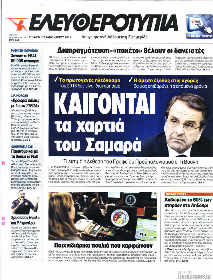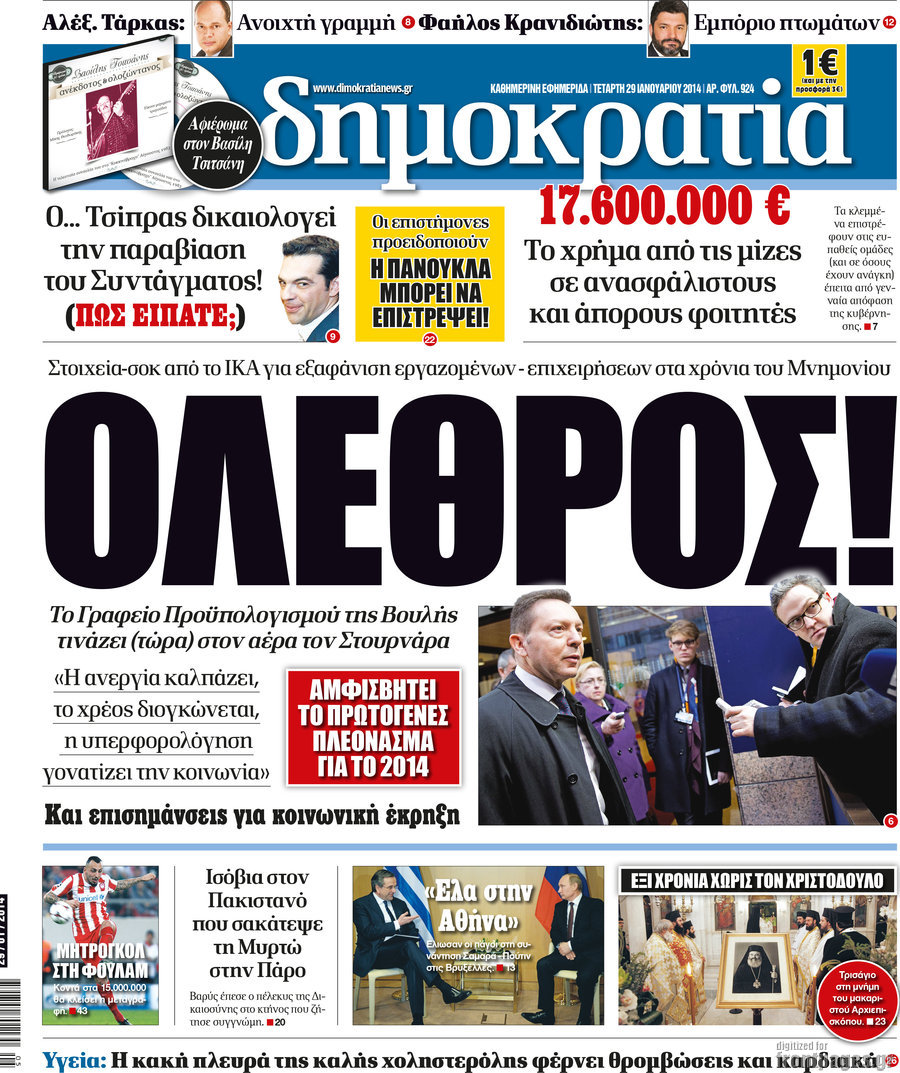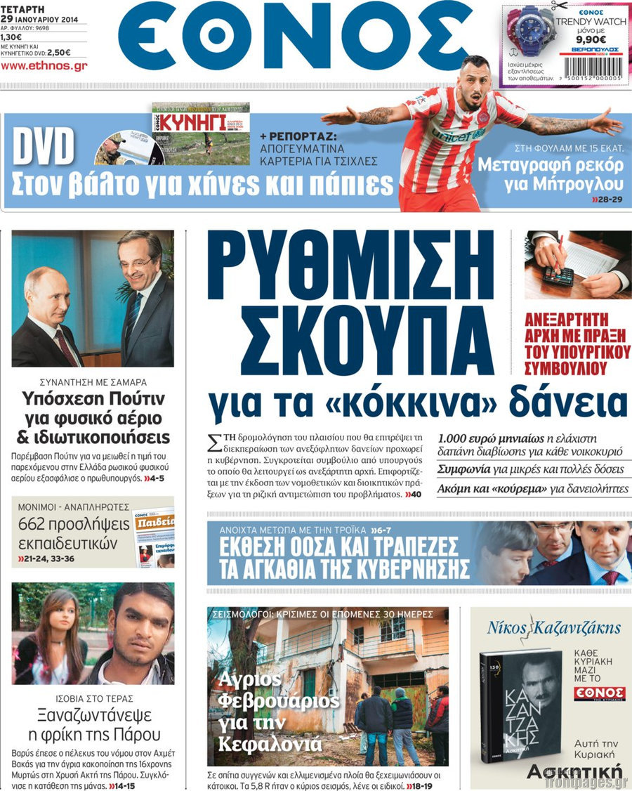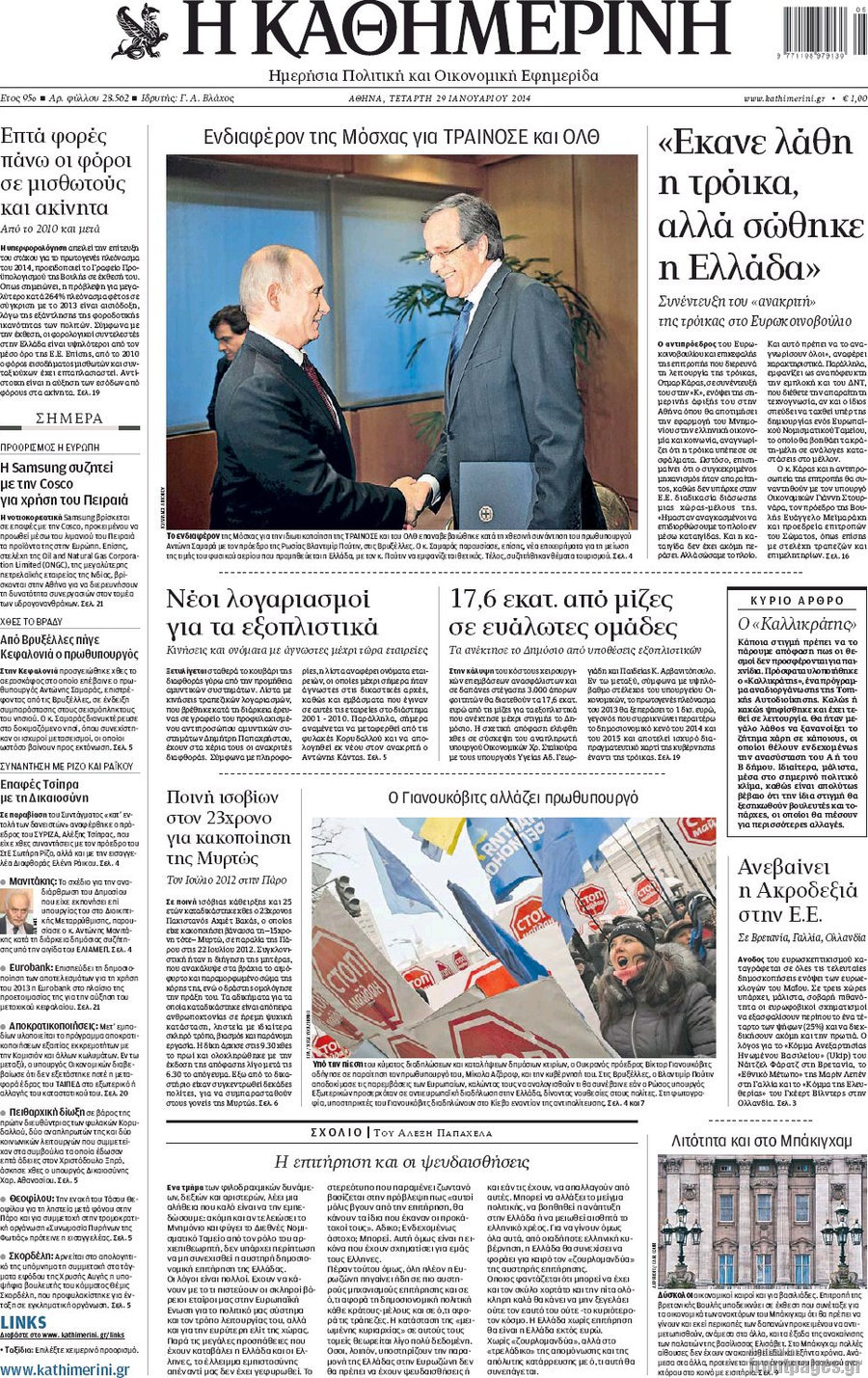 Οι πολιτικές εφημερίδες Enikos Newsroom 08:35, Τετάρτη 29 Ιανουαρίου 2014 Media Οι πολιτικές εφημερίδες Διαβάστε τα πρωτοσέλιδα των πολιτικών εφημερίδων: ΕΦΗΜΕΡΙΔΕΣ ΠΟΛΙΤΙΚΕΣ ΕΦΗΜΕΡΙΔΕΣ ΠΡΩΤΟΣΕΛΙΔΑ Μοιράσου το: σχολίασε κι εσύ (0 σχόλια) Ακολουθήστε το enikos.gr στο Google News και μάθετε πρώτοι όλες τις ειδήσεις Δείτε όλες τις τελευταίες ειδήσεις από την Ελλάδα και τον Κόσμο στο enikos.gr Ειδήσεις Ροή Ειδήσεων 9 ώρες πριν Χριστούγεννα στα μπλόκα οι αγρότες: Άνοιξαν στα διόδια και μοίρασαν προϊόντα στους πολίτες – Νέα σύσκεψη την Κυριακή στη Νίκαια 7 ώρες πριν Ρετζέπ Ταγίπ Ερντογάν: Δεν έχουμε καμία βλέψη στα εδάφη ή την κυριαρχία κανενός – Δεν θα επιτρέψουμε να παραβιαστούν τα δικαιώματά μας 8 ώρες πριν H ακτοφυλακή των ΗΠΑ κατάσχεσε και δεύτερο τάνκερ στα ανοιχτά της Βενεζουέλας – Δείτε βίντεο 9 ώρες πριν Κύκλωμα διακίνησης ναρκωτικών σε σχολεία: Τηλεφωνούσαν στους ανηλίκους την ώρα του μαθήματος – Οι διάλογοι-σοκ, τα «ψευδώνυμα» και τα βασανιστήρια 53 λεπτά πριν Βλαντίμιρ Πούτιν: «Έτοιμος για διάλογο» με τον Εμανουέλ Μακρόν, εφόσον «υπάρχει αμοιβαία πολιτική βούληση» 1 ώρα πριν Οπτική ψευδαίσθηση: Μόνο το 2% των ανθρώπων θα βρει την πεταλούδα σε 15 δευτερόλεπτα 1 ώρα πριν Μήλο vs μπανάνα: Ποιο φρούτο έχει περισσότερες φυτικές ίνες, σύμφωνα με διαιτολόγους – Τα οφέλη τους για την υγεία 2 ώρες πριν Τα ζώδια σήμερα, Κυριακή 21 Δεκεμβρίου: Αιγόκεροι, αποφασίζετε για το επόμενο κεφάλαιο της ζωής σας 22 ώρες πριν Enerwave: Το νέο «ρεύμα» στη λιανική ενέργειας που αλλάζει την εμπειρία του καταναλωτή 44 λεπτά πριν Σήμερα με τη Realnews: Ό,τι και αν αγοράσεις, σκανάρεις και κερδίζεις! 1 λεπτό πριν Καιρός: Βροχές και χαμηλές θερμοκρασίες σήμερα – Η πρόγνωση για τα Χριστούγεννα 10 λεπτά πριν Εορτολόγιο: Ποιοι γιορτάζουν σήμερα 21 Δεκεμβρίου 16 λεπτά πριν Σήμερα με τη Realnews: Instyle, μαζί Drive και Realnews Geopolitics 21 λεπτά πριν Η Realnews στο www.pressreader.com ENIKOS NETWORK Το αφροδισιακό φυλλώδες λαχανικό που μπορεί να προστατεύσει τα μάτια και να καταπολεμήσει τον καρκίνο Το απόλυτο κόλπο με το αυτοκόλλητο για να βγει πρώτη η βαλίτσα σας από το αεροπλάνο «Πολεμική» προετοιμασία από την ευρωπαϊκή βιομηχανία ενέργειας – Η Eurelectric ζητεί «ομπρέλα» προστασίας για τις υποδομές Ακύρωση ΑΦΜ για απάτες – Ποιους βάζει στο στόχαστρο η ΑΑΔΕ Χαρτογραφώντας το «σημείο χωρίς επιστροφή»: Για πρώτη φορά αποκαλύπτεται με λεπτομέρεια το ακανθώδες όριο της ατμόσφαιρας τ... Η Google καταργεί τη λειτουργία «dark web report» – Πώς θα μπορούν οι χρήστες να διαγράφουν τα δεδομένα τους περισσότερα 07:00 , Κυριακή 21 Δεκεμβρίου 2025 Σήμερα με τη Realnews: Instyle, μαζί Drive και Realnews Geopolitics Σήμερα με τη Realnews: Instyle, μαζί Drive και Realnews Geopolitics Instyle Η Άννα Ρεζάν, η Ch... 06:55 , Κυριακή 21 Δεκεμβρίου 2025 Η Realnews στο www.pressreader.com Διαβάστε την ψηφιακή έκδοση της εφημερίδας στην οθόνη του κινητού, του tablet και του υπολογισ... 05:46 , Κυριακή 21 Δεκεμβρίου 2025 Οι αθλητικές εφημερίδες 21/12/2025 Διαβάστε τα πρωτοσέλιδα από τις αθλητικές εφημερίδες, σήμερα 21/12/2025. 05:38 , Κυριακή 21 Δεκεμβρίου 2025 Οι πολιτικές εφημερίδες 21/12/2025 Διαβάστε τα πρωτοσέλιδα από τις πολιτικές εφημερίδες, σήμερα 21/12/2025. ΤΕΛΕΥΤΑΙΕΣ ΕΙΔΗΣΕΙΣ 10 λεπτά πριν Εορτολόγιο: Ποιοι γιορτάζουν σήμερα 21 Δεκεμβρίου 16 λεπτά πριν Σήμερα με τη Realnews: Instyle, μαζί Drive και Realnews Geopolitics 21 λεπτά πριν Η Realnews στο www.pressreader.com 29 λεπτά πριν ΔΕΔΔΗΕ: Διακοπές ρεύματος σήμερα (21/12) στην Αθήνα και... 37 λεπτά πριν Εορταστικό ωράριο: Ανοιχτά σήμερα τα καταστήματα –... 45 λεπτά πριν 