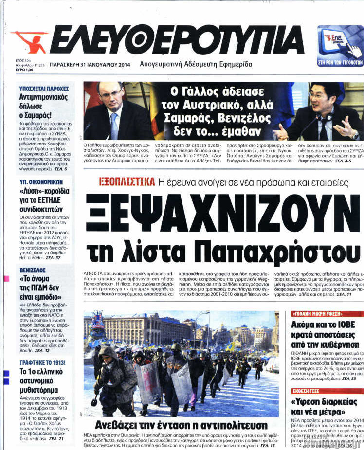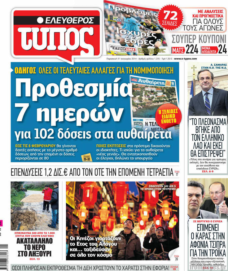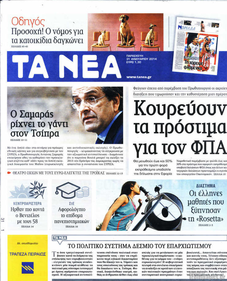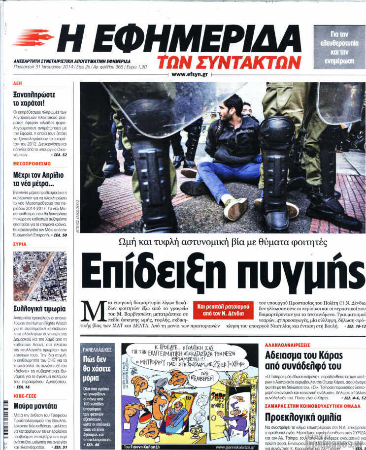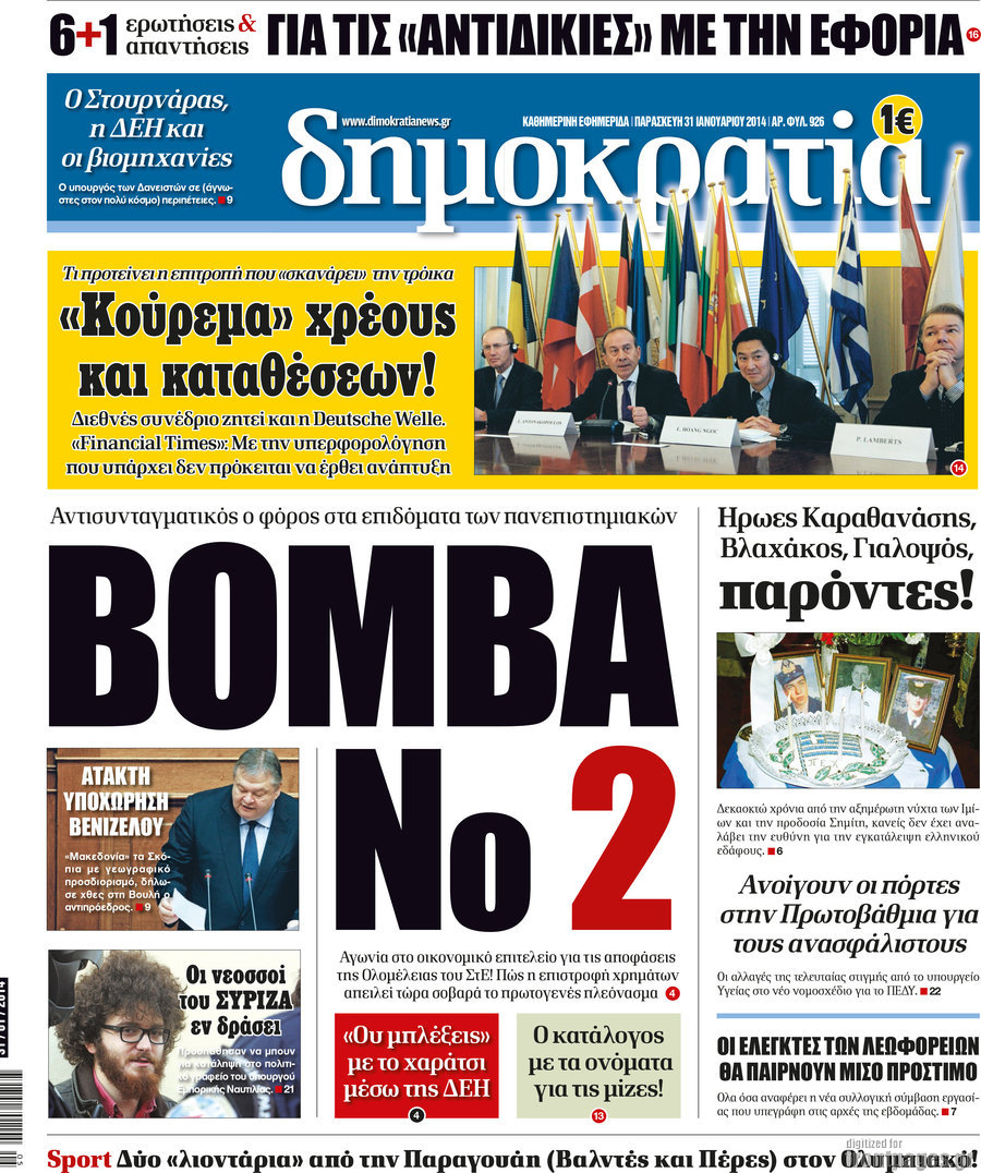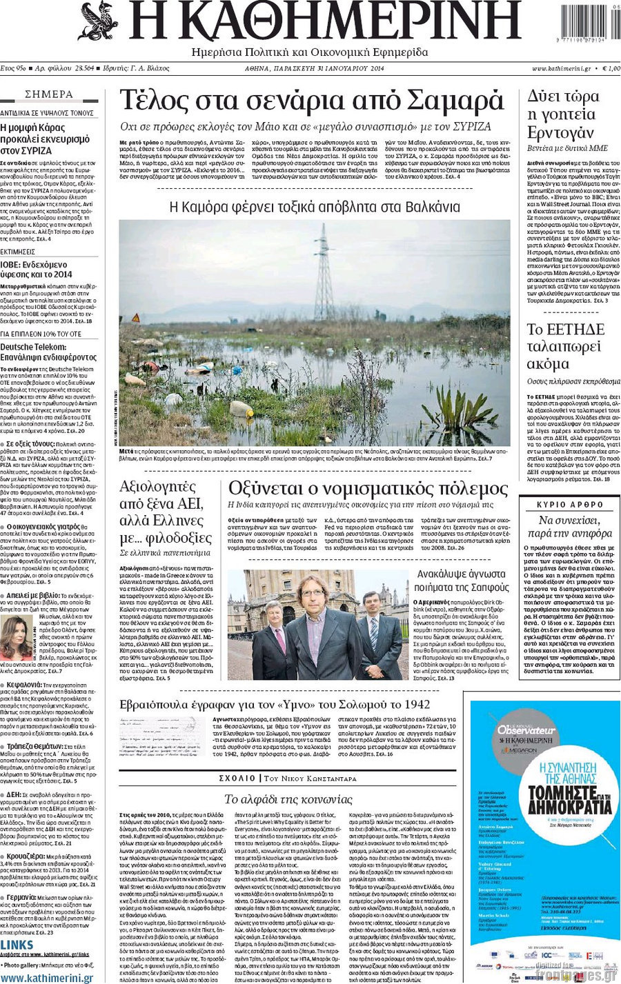 Οι πολιτικές εφημερίδες Enikos Newsroom 08:30, Παρασκευή 31 Ιανουαρίου 2014 Media Οι πολιτικές εφημερίδες Διαβάστε τα πρωτοσέλιδα των πολιτικών εφημερίδων: ΕΦΗΜΕΡΙΔΕΣ ΠΟΛΙΤΙΚΕΣ ΕΦΗΜΕΡΙΔΕΣ ΠΡΩΤΟΣΕΛΙΔΑ Μοιράσου το: σχολίασε κι εσύ (0 σχόλια) Ακολουθήστε το enikos.gr στο Google News και μάθετε πρώτοι όλες τις ειδήσεις Δείτε όλες τις τελευταίες ειδήσεις από την Ελλάδα και τον Κόσμο στο enikos.gr Ειδήσεις Ροή Ειδήσεων 4 ώρες πριν Διάλογοι-σοκ από το κύκλωμα που διακινούσε ναρκωτικά σε σχολεία – «Αν δεν είσαι εκεί σε 5 λεπτά, θα φας πολύ ξύλο μπρο» 5 ώρες πριν Αγρότες από το μπλόκο Νίκαιας κλείνουν τη Δευτέρα τις σήραγγες των Τεμπών για τα φορτηγά – Τι αποφάσισαν 2 ώρες πριν Δήμος Αθηναίων: Ξεκινά τη Δευτέρα η επιστροφή πινακίδων οχημάτων από τη Δημοτική Αστυνομία 3 ώρες πριν «Πλημμύρισε» με κόσμο η Ερμού ενόψει των Χριστουγέννων – Ουρές στα καταστήματα – ΦΩΤΟ και ΒΙΝΤΕΟ 2 ώρες πριν Κόντρα Πλεύρη-Δούκα για το rave πάρτι στα σκαλιά εκκλησίας στο Γαλάτσι: «Απλά ντροπή» – «Υποκρισία και σκοταδισμός» 3 ώρες πριν Αν ανήκετε σε ένα από αυτά τα 3 ζώδια, το 2026 θα είναι η χρονιά σας – «Η ζωή σας βελτιώνεται σε όλους τους τομείς» 7 ώρες πριν Οι άνθρωποι που στρώνουν το κρεβάτι τους κάθε πρωί, διαθέτουν αυτές τις 8 κρυφές δυνάμεις 4 ώρες πριν Ένα πλάσμα στα βάθη της θάλασσας απορροφά άνθρακα από την ατμόσφαιρα – «Δεν είχαμε ιδέα για την ύπαρξή του» 1 ημέρα πριν Enerwave: Το νέο «ρεύμα» στη λιανική ενέργειας που αλλάζει την εμπειρία του καταναλωτή 17 λεπτά πριν Αγρότες: Σήκωσαν τις μπάρες στα διόδια των Αφιδνών – ΦΩΤΟ και ΒΙΝΤΕΟ 24 λεπτά πριν Είσοδος σπιτιού: Πώς να οργανώσετε το χώρο πριν έρθουν οι καλεσμένοι σας – Η ρουτίνα 3 βημάτων 31 λεπτά πριν Σταματίνα Τσιμτσιλή: «Ο μπαμπάς μου “έφυγε” σε τροχαίο, έπεσε κάποιος πάνω του και υπέκυψε στα τραύματά του» 38 λεπτά πριν Λαμία: Οι αγρότες άνοιξαν τις μπάρες στα διόδια Τραγάνας επιτρέποντας την ελεύθερη διέλευση των οχημάτων – 49 λεπτά πριν Παναθηναϊκός: Πρόστιμο 26.500 ευρώ από την UEFA για το ματς με την Στουρμ Γκρατς ENIKOS NETWORK Οι γυναίκες έχουν βρει μια νέα απόλαυση στην κρεβατοκάμαρα που οι περισσότεροι άνδρες αγνοούν Christmas glow: 5 χρυσές συμβουλές για επιδερμίδα που λάμπει από ομορφιά τα Χριστούγεννα Νέα έρευνα: Οκτώ στους δέκα Έλληνες αγοράζουν από online πλατφόρμες χωρών εκτός ΕΕ – Temu και Shein οι κορυφαίες επιλογές Αττική: Πού μπήκαν οι πρώτες «έξυπνες κάμερες» – Πώς θα φτάνει η κλήση στους παραβάτες Χαρτογραφώντας το «σημείο χωρίς επιστροφή»: Για πρώτη φορά αποκαλύπτεται με λεπτομέρεια το ακανθώδες όριο της ατμόσφαιρας τ... Η Google καταργεί τη λειτουργία «dark web report» – Πώς θα μπορούν οι χρήστες να διαγράφουν τα δεδομένα τους περισσότερα 17:18 , Κυριακή 21 Δεκεμβρίου 2025 «Η Μεγάλη Χίμαιρα»: Μάγεψε το κοινό κατά την avant-première της προβολής της Την Πρωτοχρονιά (Πέμπτη 1η Ιανουαρίου 2026) στο ERTFLIX θα γίνει η πρεμιέρα της πολυαναμενόμεν... 15:08 , Κυριακή 21 Δεκεμβρίου 2025 Μια νύχτα μόνο: Η Αρετή και ο Οδυσσέας έρχονται και πάλι κοντά Το νέο επεισόδιο της δραματικής σειράς του MEGA «Μια νύχτα μόνο», θα προβληθεί απόψε Κυριακή 2... 14:24 , Κυριακή 21 Δεκεμβρίου 2025 IQ 160: Ο φάκελος με το τεστ πατρότητας ανοίγει, απόψε στις 21:00 στο Star Ανατρεπτικό το νέο διπλό επεισόδιο της σειράς “IQ 160” στις 21:00 στο Star. Ο Τηλέ... 09:43 , Κυριακή 21 Δεκεμβρίου 2025 Το λάθος στην ταινία Die Hard που άφησε άναυδους τους θαυμαστές του Μπρους Γουίλις Ένας φανατικός των ταινιών άφησε άναυδους τους θαυμαστές του Die Hard, επισημαίν