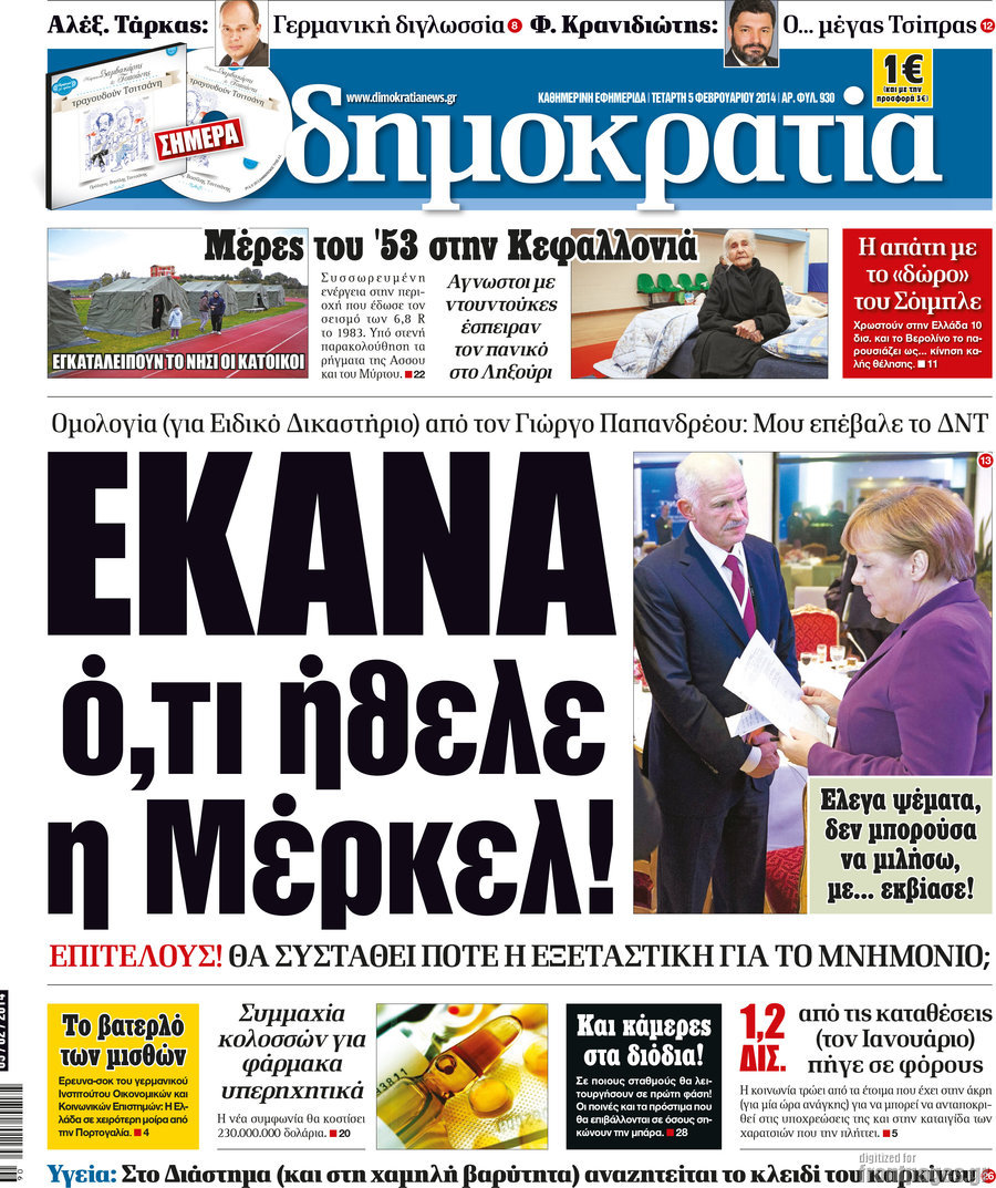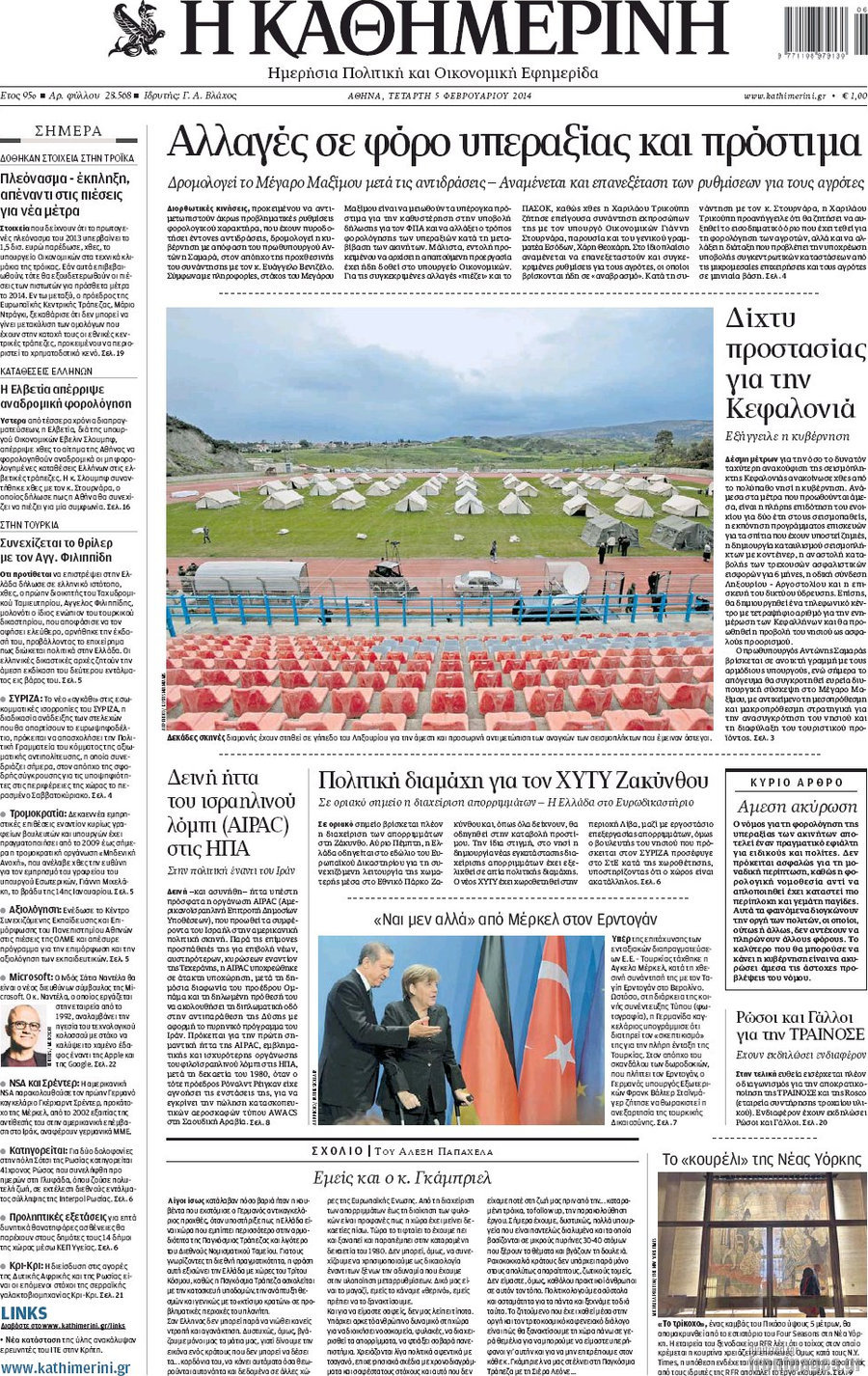Οι πολιτικές εφημερίδες Enikos Newsroom 08:28, Τετάρτη 05 Φεβρουαρίου 2014 Media Οι πολιτικές εφημερίδες Διαβάστε τα πρωτοσέλιδα των πολιτικών εφημερίδων: ΕΦΗΜΕΡΙΔΕΣ ΠΟΛΙΤΙΚΕΣ ΕΦΗΜΕΡΙΔΕΣ ΠΡΩΤΟΣΕΛΙΔΑ Μοιράσου το: σχολίασε κι εσύ (0 σχόλια) Ακολουθήστε το enikos.gr στο Google News και μάθετε πρώτοι όλες τις ειδήσεις Δείτε όλες τις τελευταίες ειδήσεις από την Ελλάδα και τον Κόσμο στο enikos.gr Ειδήσεις Ροή Ειδήσεων 2 ώρες πριν Μητσοτάκης σε αγρότες: Είμαστε ανοιχτοί στον διάλογο, αλλά όχι στο παράλογο – Η διεκδίκηση αιτημάτων οφείλει να γίνεται με σεβασμό στο κοινωνικό σύνολο 1 ώρα πριν Κηφισιά: Δύο συλλήψεις για ληστεία με λεία 180.000 ευρώ – Βίντεο ντοκουμέντα από τη δράση τους 3 ώρες πριν Γρίπη: «Καμπανάκι» από τους επιστήμονες για έξαρση κρουσμάτων στις γιορτές – Ποιοι κινδυνεύουν και πώς προστατευόμαστε 4 ώρες πριν Γαλλία: Έτοιμοι για Χριστούγεννα στους δρόμους οι αγρότες – «Οι δεσμεύσεις της κυβέρνησης δεν είναι αρκετές» 3 ώρες πριν Η οικογενειακή διαμάχη των Μπέκαμ: Το block από τον Μπρούκλιν και η απόφαση να περάσει τα Χριστούγεννα με τους δισεκατομμυριούχους γονείς της συζύγου του 3 ώρες πριν Τα άστρα ευνοούν σκανδαλωδώς 4 ζώδια – «Εμφανίζονται ξαφνικά ευκαιρίες γιατί αποφασίζετε να αφήσετε πίσω το παρελθόν» 2 ώρες πριν Προπονήτρια γυμναστικής που έχασε 9 κιλά αποκαλύπτει: «Αυτοί είναι οι 5 παράγοντες που εμποδίζουν την απώλεια βάρους» 33 λεπτά πριν Οι άνθρωποι που στρώνουν το κρεβάτι τους κάθε πρωί, διαθέτουν αυτές τις 8 κρυφές δυνάμεις 1 ημέρα πριν Enerwave: Το νέο «ρεύμα» στη λιανική ενέργειας που αλλάζει την εμπειρία του καταναλωτή 4 λεπτά πριν Athens Santa Run: Έκατοντάδες Άγιοι Βασίληδες έτρεξαν στο κέντρο της Αθήνες – Τα σκυλάκια έκλεψαν την παράσταση 13 λεπτά πριν Τσουκαλάς: Η διακυβέρνηση Μητσοτάκη διαιρεί την κοινωνία σε δύο Ελλάδες – Mια των λίγων που καλοπερνούν και μια των πολλών που αγκομαχούν 20 λεπτά πριν Super League: «Αντίο» στο 2025 με ντέρμπι στην Τούμπα 28 λεπτά πριν Στρατιωτική θητεία: Τι ισχύει με τις αναβολές σε κατοίκους εξωτερικού – Διευκρινίσεις από το υπουργείο Εθνικής Άμυνας 33 λεπτά πριν Οι άνθρωποι που στρώνουν το κρεβάτι τους κάθε πρωί, διαθέτουν αυτές τις 8 κρυφές δυνάμεις ENIKOS NETWORK Άσκηση: η «ασπίδα» του εγκεφάλου απέναντι στη γήρανση Έχετε καταρροή και φαγούρα στα μάτια στις γιορτές; Μπορεί να ευθύνεται το σύνδρομο χριστουγεννιάτικου δέντρου “Προσβασιμότητα κατ’ Οίκον”: Έως αύριο η υποβολή των δικαιολογητικών για 3.000 δικαιούχους Ανοιχτά τα καταστήματα σήμερα – Μέχρι τι ώρα μπορείτε να κάνετε τις αγορές σας Χαρτογραφώντας το «σημείο χωρίς επιστροφή»: Για πρώτη φορά αποκαλύπτεται με λεπτομέρεια το ακανθώδες όριο της ατμόσφαιρας τ... Η Google καταργεί τη λειτουργία «dark web report» – Πώς θα μπορούν οι χρήστες να διαγράφουν τα δεδομένα τους περισσότερα 09:43 , Κυριακή 21 Δεκεμβρίου 2025 Το λάθος στην ταινία Die Hard που άφησε άναυδους τους θαυμαστές του Μπρους Γουίλις Ένας φανατικός των ταινιών άφησε άναυδους τους θαυμαστές του Die Hard, επισημαίνοντας τρία βασ... 08:13 , Κυριακή 21 Δεκεμβρίου 2025 Άγιος έρωτας: Ένας καταστροφικός σεισμός χτυπά τη Στέρνα Καταιγιστικές είναι οι εξελίξεις στα δυο τελευταία, συγκλονιστικά επεισόδια του 2025 της σειρά... 08:00 , Κυριακή 21 Δεκεμβρίου 2025 Σήμερα με τη Realnews: Ό,τι και αν αγοράσεις, σκανάρεις και κερδίζεις! Σήμερα με τη Realnews: Ό,τι και αν αγοράσεις, σκανάρεις και κερδίζεις! Με το PADU app, το κορυ... 07:00 , Κυριακή 21 Δεκεμβρίου 2025 Σήμερα με τη Realnews: Insty