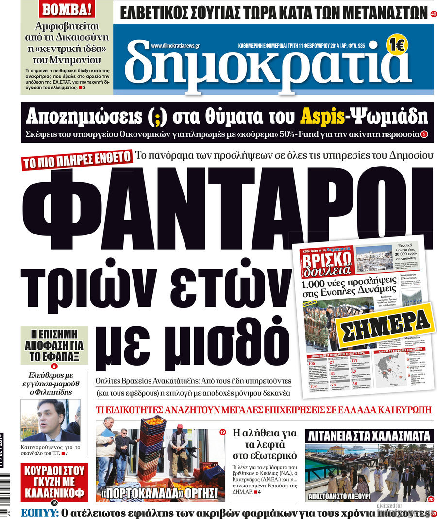 Οι πολιτικές εφημερίδες Enikos Newsroom 08:30, Τρίτη 11 Φεβρουαρίου 2014 Media Οι πολιτικές εφημερίδες Διαβάστε τα πρωτοσέλιδα των πολιτικών εφημερίδων: ΕΦΗΜΕΡΙΔΕΣ ΠΟΛΙΤΙΚΕΣ ΕΦΗΜΕΡΙΔΕΣ ΠΡΩΤΟΣΕΛΙΔΑ Μοιράσου το: σχολίασε κι εσύ (0 σχόλια) Ακολουθήστε το enikos.gr στο Google News και μάθετε πρώτοι όλες τις ειδήσεις Δείτε όλες τις τελευταίες ειδήσεις από την Ελλάδα και τον Κόσμο στο enikos.gr Ειδήσεις Ροή Ειδήσεων 2 ώρες πριν Διάλογοι-σοκ από το κύκλωμα που διακινούσε ναρκωτικά σε σχολεία – «Αν δεν είσαι εκεί σε 5 λεπτά, θα φας πολύ ξύλο μπρο» 3 ώρες πριν Αγρότες από το μπλόκο Νίκαιας κλείνουν τη Δευτέρα τις σήραγγες των Τεμπών για τα φορτηγά – Τι αποφάσισαν 1 ώρα πριν «Πλημμύρισε» με κόσμο η Ερμού ενόψει των Χριστουγέννων – Ουρές στα καταστήματα – ΦΩΤΟ και ΒΙΝΤΕΟ 3 ώρες πριν Ζελένσκι: Τάχθηκε σήμερα υπέρ της διεξαγωγής ευρύτερων διαβουλεύσεων με Ευρωπαίους εταίρους 55 λεπτά πριν Super League 2: Ο Σεμπά πέτυχε το γκολ της χρονιάς με ανάποδο ψαλίδι – ΒΙΝΤΕΟ 1 ώρα πριν Αν ανήκετε σε ένα από αυτά τα 3 ζώδια, το 2026 θα είναι η χρονιά σας – «Η ζωή σας βελτιώνεται σε όλους τους τομείς» 5 ώρες πριν Οι άνθρωποι που στρώνουν το κρεβάτι τους κάθε πρωί, διαθέτουν αυτές τις 8 κρυφές δυνάμεις 2 ώρες πριν Ένα πλάσμα στα βάθη της θάλασσας απορροφά άνθρακα από την ατμόσφαιρα – «Δεν είχαμε ιδέα για την ύπαρξή του» 1 ημέρα πριν Enerwave: Το νέο «ρεύμα» στη λιανική ενέργειας που αλλάζει την εμπειρία του καταναλωτή 10 λεπτά πριν «Η Μεγάλη Χίμαιρα»: Μάγεψε το κοινό κατά την avant-première της προβολής της 21 λεπτά πριν Κόντρα Πλεύρη-Δούκα για το rave πάρτι στα σκαλιά εκκλησίας στο Γαλάτσι: «Απλά ντροπή» – «Υποκρισία και σκοταδισμός» 29 λεπτά πριν Κουίζ για την παλιά Αθήνα: Αναγνωρίζετε την περιοχή; Είναι από τις πιο γνωστές 36 λεπτά πριν Μέγκαν Μαρκλ – Πρίγκιπας Χάρι: Οικονομικά προβλήματα στο Ίδρυμα τους – Τρεις απολύσεις υπαλλήλων 44 λεπτά πριν Αυστραλία: Αποδοκίμασαν τον πρωθυπουργό στις εκδηλώσεις μνήμης για τα θύματα της επίθεσης στην παραλία Μποντάι ENIKOS NETWORK Ο εγκέφαλός μας ξεπερνά ακόμα σε εξυπνάδα το ΑΙ – Ποιο είναι αυτό στο οποίο είμαστε καλύτεροι Φοράτε ψηλοτάκουνα παπούτσια; Ποδίατροι συμβουλεύουν πόσο ψηλά επιτρέπεται να είναι και πώς να τα επιλέξετε Λειψυδρία: Πού βρισκόμαστε σήμερα και πώς προετοιμάζεται η ΕΥΔΑΠ για το επόμενο κρίσιμο διάστημα Έρχεται ο Μοναδικός Αριθμός Ταυτότητας για τα ακίνητα: Τι είναι και από πού θα αντλούνται πληροφορίες – Πώς θα αλλάξει τις ... Χαρτογραφώντας το «σημείο χωρίς επιστροφή»: Για πρώτη φορά αποκαλύπτεται με λεπτομέρεια το ακανθώδες όριο της ατμόσφαιρας τ... Η Google καταργεί τη λειτουργία «dark web report» – Πώς θα μπορούν οι χρήστες να διαγράφουν τα δεδομένα τους περισσότερα 17:18 , Κυριακή 21 Δεκεμβρίου 2025 «Η Μεγάλη Χίμαιρα»: Μάγεψε το κοινό κατά την avant-première της προβολής της Την Πρωτοχρονιά (Πέμπτη 1η Ιανουαρίου 2026) στο ERTFLIX θα γίνει η πρεμιέρα της πολυαναμενόμεν... 15:08 , Κυριακή 21 Δεκεμβρίου 2025 Μια νύχτα μόνο: Η Αρετή και ο Οδυσσέας έρχονται και πάλι κοντά Το νέο επεισόδιο της δραματικής σειράς του MEGA «Μια νύχτα μόνο», θα προβληθεί απόψε Κυριακή 2... 14:24 , Κυριακή 21 Δεκεμβρίου 2025 IQ 160: Ο φάκελος με το τεστ πατρότητας ανοίγει, απόψε στις 21:00 στο Star Ανατρεπτικό το νέο διπλό επεισόδιο της σειράς “IQ 160” στις 21:00 στο Star. Ο Τηλέ... 09:43 , Κυριακή 21 Δεκεμβρίου 2025 Το λάθος στην ταινία Die Hard που άφησε άναυδους τους θαυμαστές του Μπρους Γουίλις Ένας φανατικός των ταινιών άφησε άναυδους τους θαυμαστέ