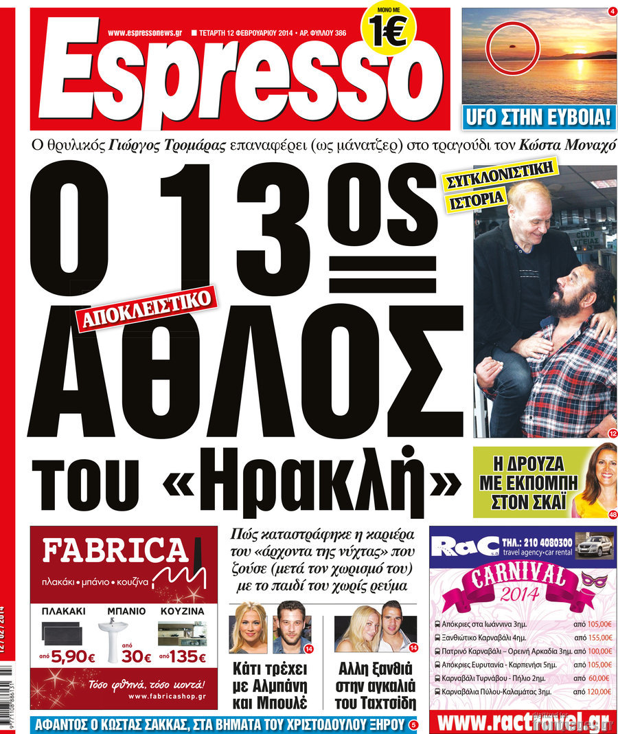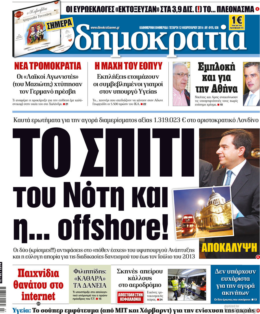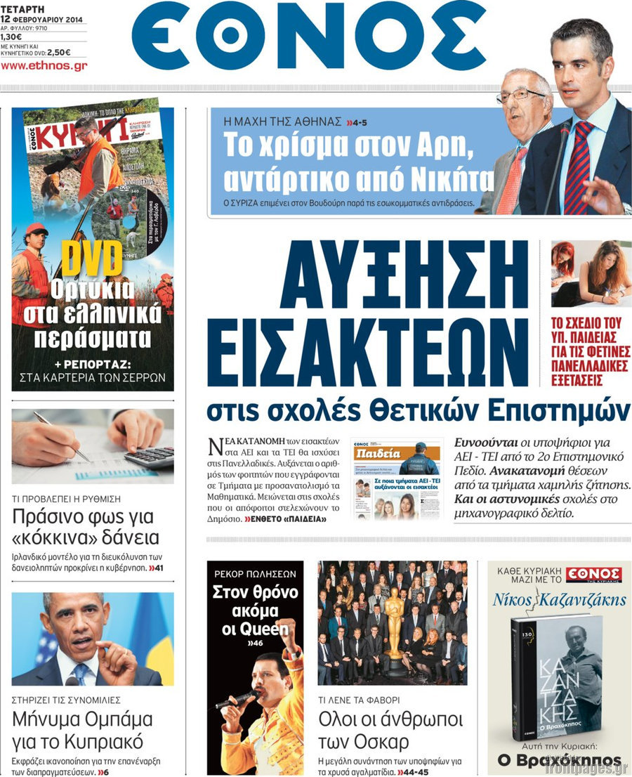 Οι πολιτικές εφημερίδες Enikos Newsroom 08:27, Τετάρτη 12 Φεβρουαρίου 2014 Media Οι πολιτικές εφημερίδες Διαβάστε τα πρωτοσέλιδα των πολιτικών εφημερίδων: ΕΦΗΜΕΡΙΔΕΣ ΠΟΛΙΤΙΚΕΣ ΕΦΗΜΕΡΙΔΕΣ ΠΡΩΤΟΣΕΛΙΔΑ Μοιράσου το: σχολίασε κι εσύ (0 σχόλια) Ακολουθήστε το enikos.gr στο Google News και μάθετε πρώτοι όλες τις ειδήσεις Δείτε όλες τις τελευταίες ειδήσεις από την Ελλάδα και τον Κόσμο στο enikos.gr Ειδήσεις Ροή Ειδήσεων 20 λεπτά πριν Αγρότες από το μπλόκο Νίκαιας κλείνουν τη Δευτέρα τις σήραγγες των Τεμπών για τα φορτηγά – Τι αποφάσισαν 4 ώρες πριν Μητσοτάκης σε αγρότες: Είμαστε ανοιχτοί στον διάλογο, αλλά όχι στο παράλογο – Η διεκδίκηση αιτημάτων οφείλει να γίνεται με σεβασμό στο κοινωνικό σύνολο 3 ώρες πριν Κηφισιά: Δύο συλλήψεις για ληστεία με λεία 180.000 ευρώ – Βίντεο ντοκουμέντα από τη δράση των συλληφθέντων 2 ώρες πριν Ρωσία: Δεν προετοιμάζεται συνάντηση Αμερικανών, Ρώσων και Ουκρανών απεσταλμένων, ανακοίνωσε το Κρεμλίνο 5 ώρες πριν Η οικογενειακή διαμάχη των Μπέκαμ: Το block από τον Μπρούκλιν και η απόφαση να περάσει τα Χριστούγεννα με τους δισεκατομμυριούχους γονείς της συζύγου του 4 ώρες πριν Τα άστρα ευνοούν σκανδαλωδώς 4 ζώδια – «Εμφανίζονται ξαφνικά ευκαιρίες γιατί αποφασίζετε να αφήσετε πίσω το παρελθόν» 3 ώρες πριν Προπονήτρια γυμναστικής που έχασε 9 κιλά αποκαλύπτει: «Αυτοί είναι οι 5 παράγοντες που εμποδίζουν την απώλεια βάρους» 2 ώρες πριν Οι άνθρωποι που στρώνουν το κρεβάτι τους κάθε πρωί, διαθέτουν αυτές τις 8 κρυφές δυνάμεις 1 ημέρα πριν Enerwave: Το νέο «ρεύμα» στη λιανική ενέργειας που αλλάζει την εμπειρία του καταναλωτή 7 λεπτά πριν Θεσσαλονίκη: Οι αγρότες δεν άνοιξαν τις μπάρες στα διόδια του Ωραιοκάστρου, μοιράζουν όσπρια και κηπευτικά – Κλειστή η εθνική στα Μάλγαρα 15 λεπτά πριν Ολυμπιακός και Μεντιλίμπαρ «έδωσαν τα χέρια» έως το 2027 20 λεπτά πριν Αγρότες από το μπλόκο Νίκαιας κλείνουν τη Δευτέρα τις σήραγγες των Τεμπών για τα φορτηγά – Τι αποφάσισαν 23 λεπτά πριν Άκης Σκέρτσος: Τι έγινε τελικά με την Έκθεση Πισσαρίδη; 30 λεπτά πριν Αττική: Σε ποια σημεία εγκαταστάθηκαν οι πρώτες «έξυπνες κάμερες» – Πώς θα στέλνονται τα πρόστιμα ENIKOS NETWORK Ο εγκέφαλός μας ξεπερνά ακόμα σε εξυπνάδα το ΑΙ – Ποιο είναι αυτό στο οποίο είμαστε καλύτεροι Φοράτε ψηλοτάκουνα παπούτσια; Ποδίατροι συμβουλεύουν πόσο ψηλά επιτρέπεται να είναι και πώς να τα επιλέξετε Η επόμενη ημέρα για τις ελληνικές τράπεζες -Τι λένε κορυφαία στελέχη του κλάδου Χριστουγεννιάτικο τραπέζι: Πόσο θα αγοράσετε φέτος τη γαλοπούλα και το μοσχάρι – Πού κυμαίνονται οι τιμές για μελομακάρονα ... Χαρτογραφώντας το «σημείο χωρίς επιστροφή»: Για πρώτη φορά αποκαλύπτεται με λεπτομέρεια το ακανθώδες όριο της ατμόσφαιρας τ... Η Google καταργεί τη λειτουργία «dark web report» – Πώς θα μπορούν οι χρήστες να διαγράφουν τα δεδομένα τους περισσότερα 09:43 , Κυριακή 21 Δεκεμβρίου 2025 Το λάθος στην ταινία Die Hard που άφησε άναυδους τους θαυμαστές του Μπρους Γουίλις Ένας φανατικός των ταινιών άφησε άναυδους τους θαυμαστές του Die Hard, επισημαίνοντας τρία βασ... 08:13 , Κυριακή 21 Δεκεμβρίου 2025 Άγιος έρωτας: Ένας καταστροφικός σεισμός χτυπά τη Στέρνα Καταιγιστικές είναι οι εξελίξεις στα δυο τελευταία, συγκλονιστικά επεισόδια του 2025 της σειρά... 08:00 , Κυριακή 21 Δεκεμβρίου 2025 Σήμερα με τη Realnews: Ό,τι και αν αγοράσεις, σκανάρεις και κερδίζεις! Σήμερα με τη Realnews: Ό,τι και αν αγοράσεις, σκανάρεις και κερδίζεις! Με το PADU app, το κορυ... 07:00 , Κυριακή 21 Δεκεμβρίου 20