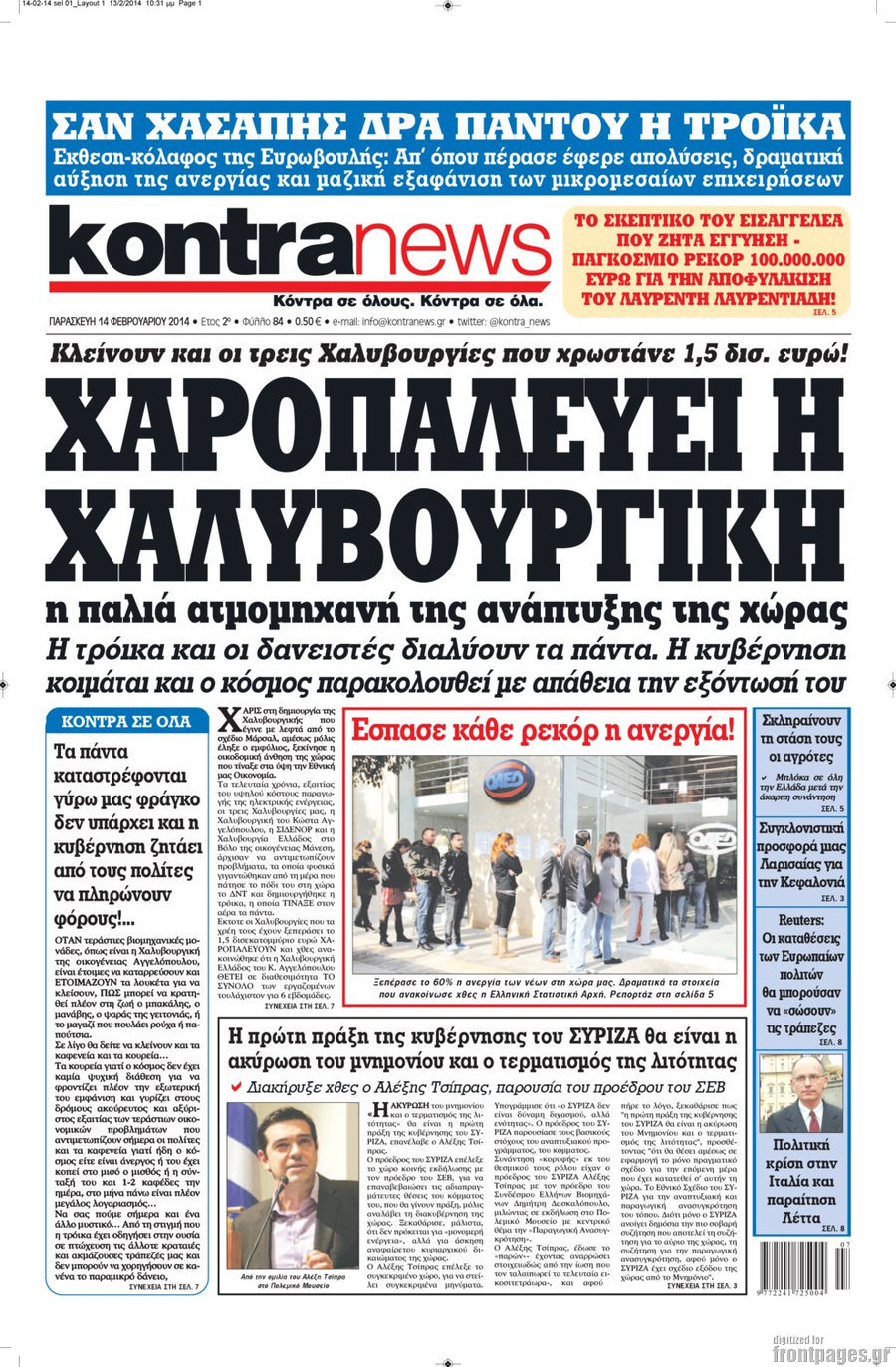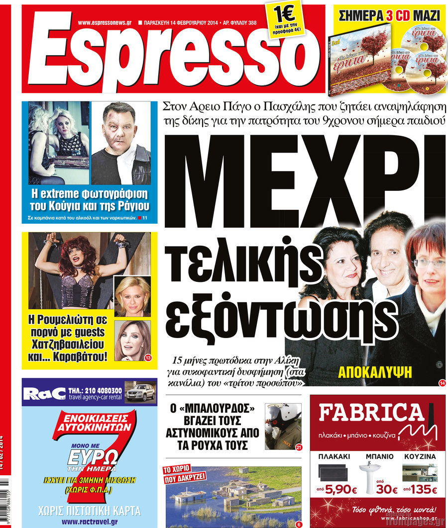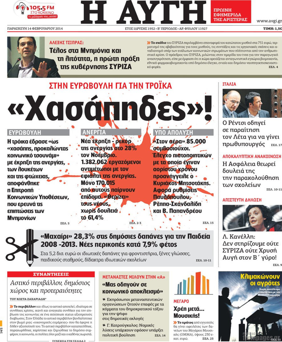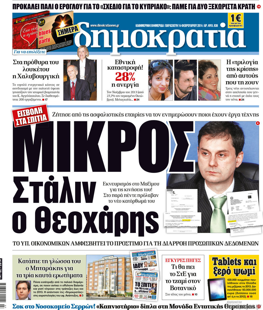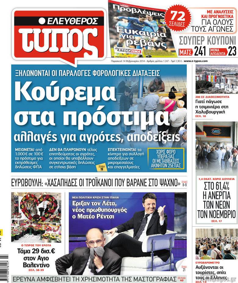 Οι πολιτικές εφημερίδες Enikos Newsroom 08:26, Παρασκευή 14 Φεβρουαρίου 2014 Media Οι πολιτικές εφημερίδες Διαβάστε τα πρωτοσέλιδα των πολιτικών εφημερίδων: 0 ΕΦΗΜΕΡΙΔΕΣ ΠΟΛΙΤΙΚΕΣ ΕΦΗΜΕΡΙΔΕΣ ΠΡΩΤΟΣΕΛΙΔΑ Μοιράσου το: σχολίασε κι εσύ (0 σχόλια) Ακολουθήστε το enikos.gr στο Google News και μάθετε πρώτοι όλες τις ειδήσεις Δείτε όλες τις τελευταίες ειδήσεις από την Ελλάδα και τον Κόσμο στο enikos.gr Ειδήσεις Ροή Ειδήσεων 3 ώρες πριν Αγρότες: Σήκωσαν τις μπάρες στα διόδια των Αφιδνών – ΦΩΤΟ και ΒΙΝΤΕΟ 6 ώρες πριν Διάλογοι-σοκ από το κύκλωμα που διακινούσε ναρκωτικά σε σχολεία – «Αν δεν είσαι εκεί σε 5 λεπτά, θα φας πολύ ξύλο μπρο» 3 ώρες πριν Κωνσταντίνος Ανεστίδης: «Είμαι αθώος, είμαι καθαρός σαν αστραπή και η αστραπή θα πέσει στο κεφάλι τους» – ΒΙΝΤΕΟ 4 ώρες πριν Εγκαινιάστηκε ο αρχαιολογικός χώρος του Ανακτόρου της Πέλλας – Παρουσιάστηκαν για πρώτη φορά δύο ελληνιστικά αγάλματα 4 ώρες πριν Δήμος Αθηναίων: Ξεκινά τη Δευτέρα η επιστροφή πινακίδων οχημάτων από τη Δημοτική Αστυνομία 6 ώρες πριν Αν ανήκετε σε ένα από αυτά τα 3 ζώδια, το 2026 θα είναι η χρονιά σας – «Η ζωή σας βελτιώνεται σε όλους τους τομείς» 3 ώρες πριν Είσοδος σπιτιού: Πώς να οργανώσετε το χώρο πριν έρθουν οι καλεσμένοι σας – Η ρουτίνα 3 βημάτων 2 ώρες πριν Οι άνθρωποι που βιώνουν χρόνια μοναξιά, κάνουν αυτά τα 7 πράγματα τα Χριστούγεννα, χωρίς να το καταλαβαίνουν 2 ημέρες πριν Enerwave: Το νέο «ρεύμα» στη λιανική ενέργειας που αλλάζει την εμπειρία του καταναλωτή 5 λεπτά πριν ΠΑΟΚ – Παναθηναϊκός 2-0: Βραδινός… περίπατος για τον Δικέφαλο του Βορρά 16 λεπτά πριν Μαριέτα Γκεοργκίεβα: Έγινε η πρώτη γυναίκα από τη Βουλγαρία που ολοκλήρωσε τη διαδρομή από την «τελευταία μοίρα» μέχρι τον Νότιο Πόλο 26 λεπτά πριν Βρετανία: Τηλεφωνική επικοινωνία Στάρμερ – Τραμπ για τον πόλεμο στην Ουκρανία 35 λεπτά πριν Λαμία: Αποχώρησαν οι αγρότες από τα διόδια Τραγάνας 43 λεπτά πριν Αριθμολογία: Οι άνθρωποι που έχουν γεννηθεί αυτές τις 4 ημερομηνίες, είναι οι πιο πιστοί και αφοσιωμένοι σύντροφοι ENIKOS NETWORK Οι γυναίκες έχουν βρει μια νέα απόλαυση στην κρεβατοκάμαρα που οι περισσότεροι άνδρες αγνοούν Christmas glow: 5 χρυσές συμβουλές για επιδερμίδα που λάμπει από ομορφιά τα Χριστούγεννα Πόσο θα αυξηθούν οι μισθοί στον ιδιωτικό τομέα από το 2026 – Πού θα φτάσει ο κατώτατος Λιανεμπόριο: Οι προσδοκίες της αγοράς για τα Χριστούγεννα – Στόχος ο τζίρος να ξεπεράσει τα 4,5 δισ. ευρώ τον Δεκέμβριο Χαρτογραφώντας το «σημείο χωρίς επιστροφή»: Για πρώτη φορά αποκαλύπτεται με λεπτομέρεια το ακανθώδες όριο της ατμόσφαιρας τ... Η Google καταργεί τη λειτουργία «dark web report» – Πώς θα μπορούν οι χρήστες να διαγράφουν τα δεδομένα τους περισσότερα 17:18 , Κυριακή 21 Δεκεμβρίου 2025 «Η Μεγάλη Χίμαιρα»: Μάγεψε το κοινό κατά την avant-première της προβολής της Την Πρωτοχρονιά (Πέμπτη 1η Ιανουαρίου 2026) στο ERTFLIX θα γίνει η πρεμιέρα της πολυαναμενόμεν... 15:08 , Κυριακή 21 Δεκεμβρίου 2025 Μια νύχτα μόνο: Η Αρετή και ο Οδυσσέας έρχονται και πάλι κοντά Το νέο επεισόδιο της δραματικής σειράς του MEGA «Μια νύχτα μόνο», θα προβληθεί απόψε Κυριακή 2... 14:24 , Κυριακή 21 Δεκεμβρίου 2025 IQ 160: Ο φάκελος με το τεστ πατρότητας ανοίγει, απόψε στις 21:00 στο Star Ανατρεπτικό το νέο διπλό επεισόδιο της σειράς “IQ 160” στις 21:00 στο Star. Ο Τηλέ... 09:43 , Κυριακή 21 Δεκεμβρίου 2025 Το λάθος στην ταινία Die Hard που άφησε άναυδους τους θαυμαστές του Μπρους Γουίλις Ένας φανατικός των ταινιών άφησε άναυδους τους θαυμαστές του Die Hard, επισημαίνοντας τρία 