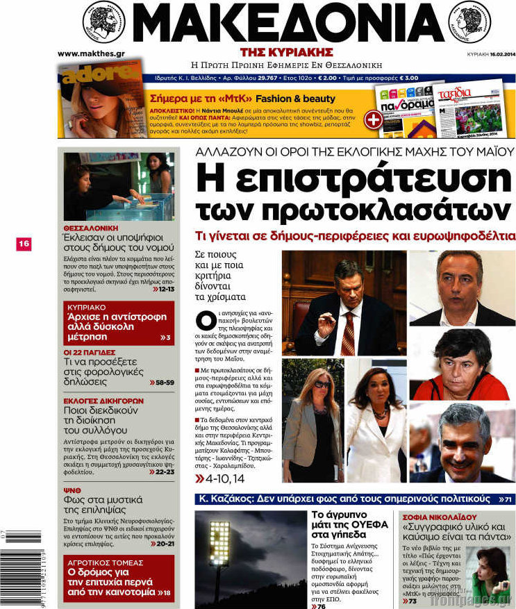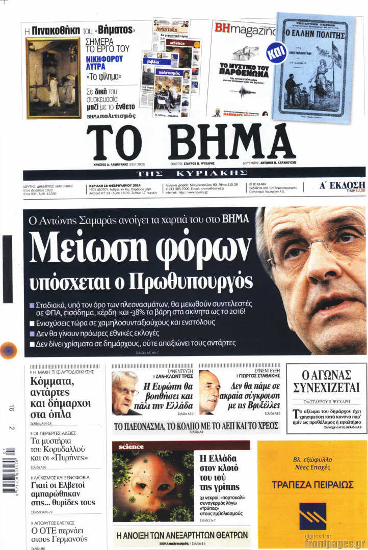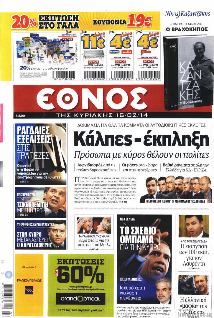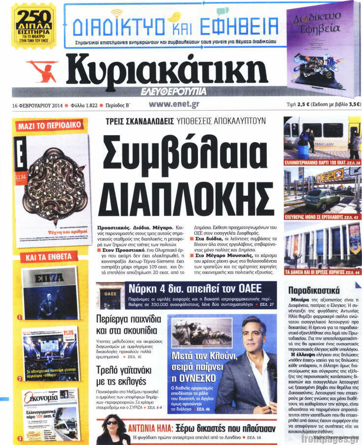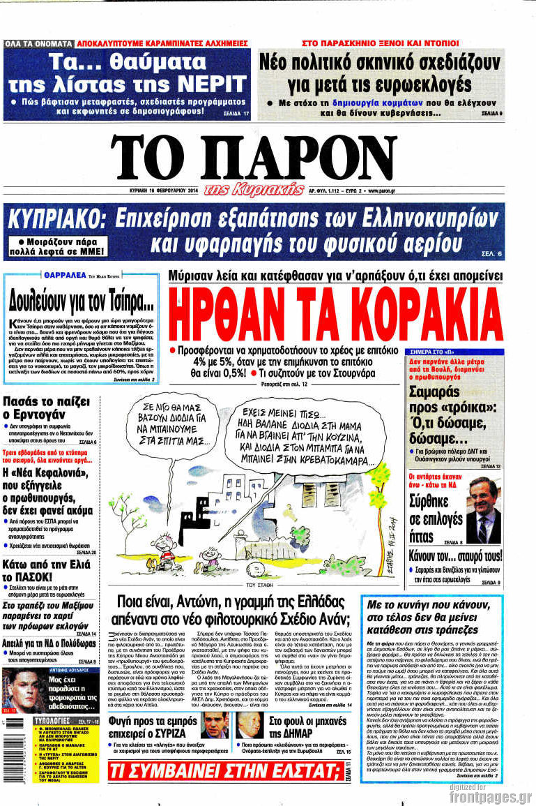 Οι πολιτικές εφημερίδες Enikos Newsroom 08:03, Κυριακή 16 Φεβρουαρίου 2014 Media Οι πολιτικές εφημερίδες ΕΦΗΜΕΡΙΔΕΣ ΚΥΡΙΑΚΑΤΙΚΕΣ ΕΦΗΜΕΡΙΔΕΣ Μοιράσου το: σχολίασε κι εσύ (0 σχόλια) Ακολουθήστε το enikos.gr στο Google News και μάθετε πρώτοι όλες τις ειδήσεις Δείτε όλες τις τελευταίες ειδήσεις από την Ελλάδα και τον Κόσμο στο enikos.gr Ειδήσεις Ροή Ειδήσεων 1 ώρα πριν Αγρότες: Έδωσαν στη δημοσιότητα τη λίστα με τα αιτήματά τους – Δείτε αναλυτικά τι ζητούν 1 ώρα πριν Σίδνεϊ: Οι φωτογραφίες των δύο δραστών της τρομοκρατικής επίθεσης – Έφοδος της αστυνομίας στο σπίτι του ενός 3 ώρες πριν ΟΠΕΚΕΠΕ-Κρήτη: Προθεσμία να απολογηθούν από την Τρίτη έως την Πέμπτη έλαβαν οι 16 συλληφθέντες 38 λεπτά πριν Θεσσαλονίκη: «Δεν έκανα κάτι παράνομο» είπε ο οδηγός του λεωφορείου – Αφέθηκε ελεύθερος, προκαταρκτική έρευνα διέταξε η εισαγγελέας 2 ώρες πριν Guardian: «Μύρισαν χρήμα και έσπευσαν» – Ο ανταγωνισμός αμερικανικών εταιρειών για να πλουτίσουν από την κατεστραμμένη Γάζα 3 ώρες πριν Τα 5 ζώδια που ευνοούνται στα ερωτικά τους έως τις 21 Δεκεμβρίου – «Η επόμενη σχέση σας θα είναι καθοριστική» 4 ώρες πριν Γεωλογική αποκάλυψη: Επιστήμονες εξηγούν πώς η Ιβηρική Χερσόνησος περιστρέφεται σαν… ρολόι 7 ώρες πριν Προπονήτρια ευεξίας που έχασε 24 κιλά αποκαλύπτει: «Αυτά είναι τα 6 ανησυχητικά σημάδια της υψηλής κορτιζόλης» 8 ώρες πριν Τα 8 πράγματα που τα ευτυχισμένα ζευγάρια δεν κάνουν ποτέ μπροστά στα παιδιά τους 8 λεπτά πριν Τραγική εξέλιξη στο Αίγιο: Πέθανε ο 43χρονος που γρονθοκόπησε γιατρό στο νοσοκομείο 13 λεπτά πριν Διεθνής κατακραυγή για την τρομοκρατική επίθεση στο Σίδνεϊ – «Αποτροπιασμένοι» Κάρολος και Καμίλα 21 λεπτά πριν Κωνσταντοπούλου από το μπλόκο της Νίκαιας: Οι αγρότες πήραν μια αξιοπρεπή απόφαση, ο αγώνας θα είναι νικηφόρος 29 λεπτά πριν Τροχαίο για τον Άρη Μουγκοπέτρο: «Για ακόμη μια φορά είχα Άγιο…» – Η ανάρτηση του μουσικού στο Instagram 38 λεπτά πριν Θεσσαλονίκη: «Δεν έκανα κάτι παράνομο» είπε ο οδηγός του λεωφορείου – Αφέθηκε ελεύθερος, προκαταρκτική έρευνα διέταξε η εισαγγελέας ENIKOS NETWORK 8 κορυφαίες συμβουλές για άνδρες που θέλουν φλογερή σεξουαλική ζωή, σύμφωνα με ειδικό Baby botox: Ποια τα οφέλη και οι κίνδυνοι του να ξεκινήσει κάποιος τις ενέσεις πριν εμφανιστούν ρυτίδες Πορτοκαλί τιμολόγια ρεύματος: Πότε θα αρχίσει η εφαρμογή τους – Τι ισχύει για νοικοκυριά και επιχειρήσεις – Παραδείγματα Μετρό: Ποιες περιοχές μπαίνουν πρώτες στον χάρτη των νέων επεκτάσεων – Νέοι σταθμοί σε Γλυφάδα, Ίλιον και Μαρούσι Σύγχρονος Νοστράδαμος: Προειδοποιεί για «μεγάλο γεγονός» τους επόμενους μήνες που θα συγκλονίσει τη Βρετανία και τον κόσμο Τεστ παρατηρητικότητας: Μπορείτε να βρείτε τις 3 διαφορές στις εικόνες με έναν πιγκουίνο σε 14 δευτερόλεπτα περισσότερα 17:38 , Κυριακή 14 Δεκεμβρίου 2025 Τηλεθέαση (13/12): Τα ποσοστά για το βράδυ του Σαββάτου Η «μάχη» της prime time για την τηλεθέαση, συνεχίστηκε δυναμικά το βράδυ του Σαββάτου (13/12).... 16:32 , Κυριακή 14 Δεκεμβρίου 2025 Τηλεθέαση (13/12): Πώς κινήθηκαν οι εκπομπές στην πρωινή ζώνη το Σάββατο Με αμείωτη ένταση συνεχίστηκε η μάχη για την τηλεθέαση στην πρωινή ζώνη των τηλεοπτικών καναλι... 15:07 , Κυριακή 14 Δεκεμβρίου 2025 IQ160: Η Μαρίνα στέλνει το φούτερ του Τηλέμαχου για το τεστ πατρότητας Η Πηνελόπη αποφασίζει να κάνει αμνιοπαρακέντηση, για να βεβαιωθεί για την υγεία του μωρού της ... 12:46 , Κυριακή 14 Δεκεμβρίου 2025 Η Realnews στο www.pressreader.com Διαβάστε την ψηφιακή έκδοση της εφημερί