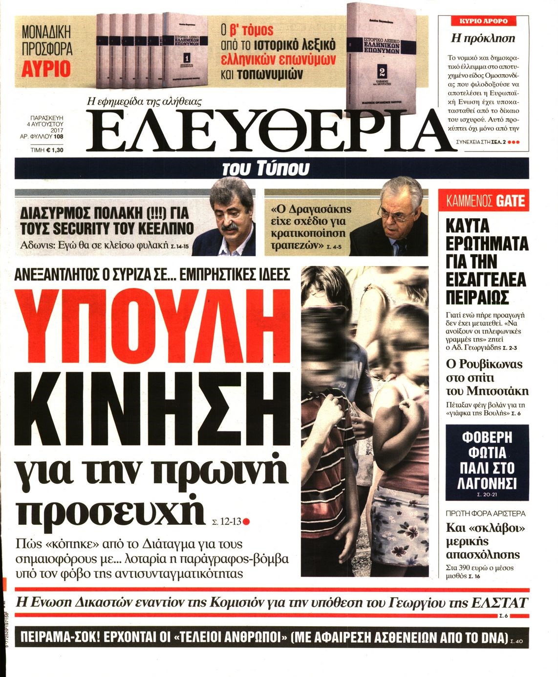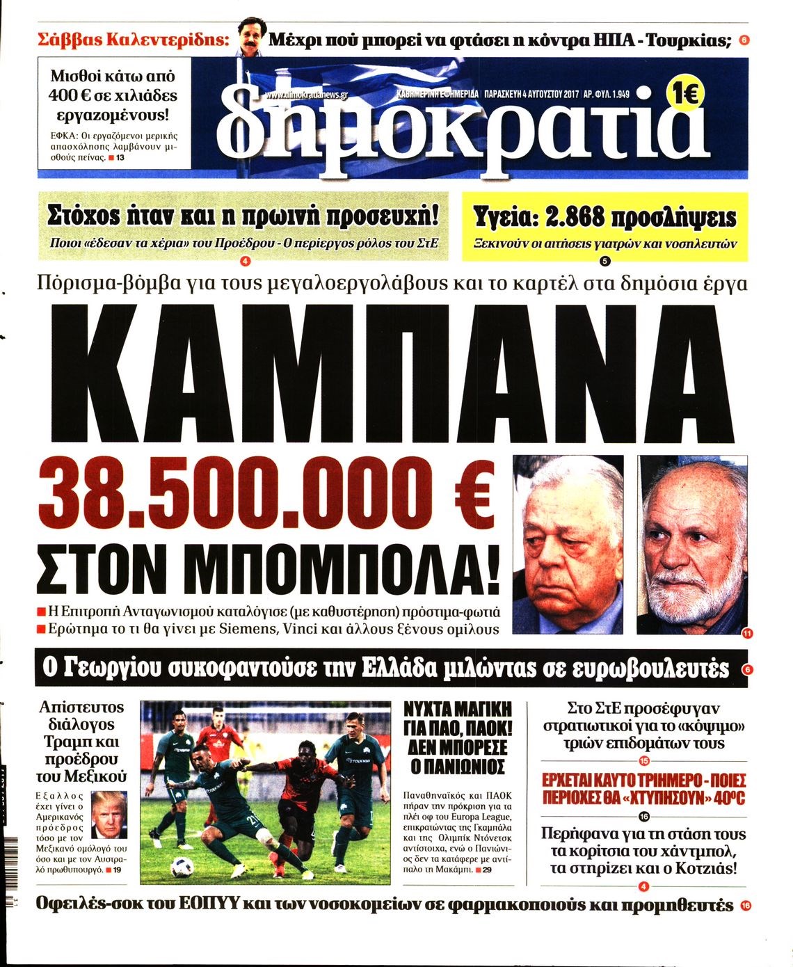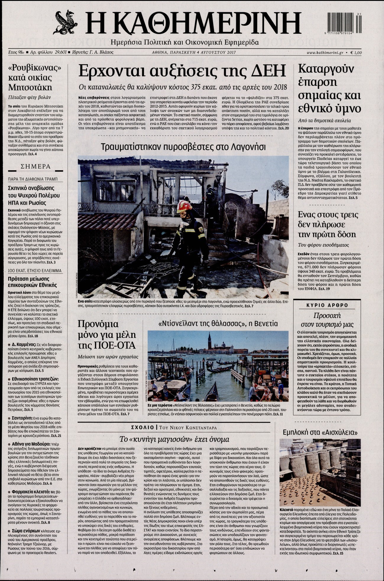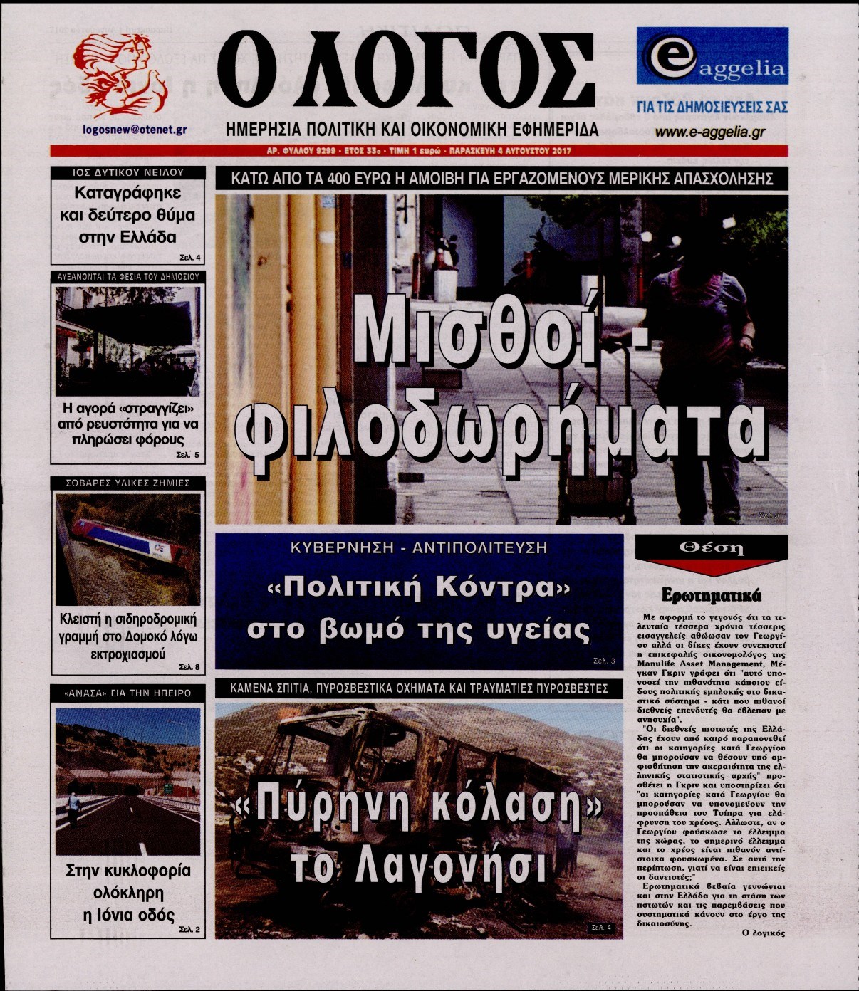 Οι πολιτικές εφημερίδες 4/8/2017 Κώστας Τεό 06:23, Παρασκευή 04 Αυγούστου 2017 Media Διαβάστε τα σημερινά πρωτοσέλιδα των πολιτικών εφημερίδων: ΠΟΛΙΤΙΚΕΣ ΕΦΗΜΕΡΙΔΕΣ ΠΡΩΤΟΣΕΛΙΔΑ Μοιράσου το: σχολίασε κι εσύ (0 σχόλια) Ακολουθήστε το enikos.gr στο Google News και μάθετε πρώτοι όλες τις ειδήσεις Δείτε όλες τις τελευταίες ειδήσεις από την Ελλάδα και τον Κόσμο στο enikos.gr Ειδήσεις Ροή Ειδήσεων 3 ώρες πριν Υπόθεση Έπσταϊν: Το Υπουργείο Δικαιοσύνης δημοσιοποίησε μια σειρά από εξαιρετικά επεξεργασμένα αρχεία – «Λείπουν τα πιο σημαντικά έγγραφα», λένε οι Δημοκρατικοί 40 λεπτά πριν Γιορτές με μπλόκα για τους αγρότες: Ανοίγουν διόδια και μοιράζουν προϊόντα στους ταξιδιώτες 1 ώρα πριν Εξαφάνιση 33χρονου γιατρού στην Κρήτη: «Άναψα τα φώτα, τρόμαξε και άρχισε να τρέχει στα χωράφια» – Η τελευταία διαδρομή και η μαρτυρία «κλειδί» 3 ώρες πριν Ο «χάρτης» με τις αυξήσεις και τις φοροελαφρύνσεις του 2026 – Ποιοι και πόσα κερδίζουν 56 λεπτά πριν Τα αρχεία του Έπσταϊν αποκαλύπτουν φωτογραφία του έκπτωτου πρίγκιπα Άντριου – Είναι ξαπλωμένος στην αγκαλιά 5 γυναικών 1 ώρα πριν Μία νέα «χρυσή» περίοδος αρχίζει για 3 ζώδια από σήμερα – «Μία αναπάντεχη ευκαιρία οδηγεί στην επιτυχία» 5 ώρες πριν Αυγά: Πόσα μπορείτε να τρώτε την ημέρα με ασφάλεια για μέγιστη πρόσληψη πρωτεΐνης 3 ώρες πριν Αρχαιολόγοι ανακάλυψαν σε χωράφι απεικόνιση 600 ετών ενός Αγίου – Τα στοιχεία που δείχνουν ότι μαρτύρησε 2 ώρες πριν Αγχώνεται για το χριστουγεννιάτικο δώρο που πήρε στην πλούσια σύντροφό του – «Φοβάμαι πως θα το βρει φθηνιάρικο, φοράει βραχιόλια Cartier» 5 λεπτά πριν Νέες ταυτότητες: Μεγάλη αναμονή για ραντεβού στην Αττική – Τέλος τα ταξίδια εκτός Ελλάδος από τον Αύγουστο για όσους δεν έχουν αλλάξει 13 λεπτά πριν Οι 7 φράσεις που δεν λένε ποτέ οι συναισθηματικά έξυπνοι άνθρωποι κατά τη διάρκεια ενός καβγά 17 λεπτά πριν Τηλεθέαση (19/12): Ανατροπές και πρωτιές στην πρωινή ζώνη 24 λεπτά πριν Πώς η κλιματική αλλαγή επηρεάζει εγκύους και βρέφη – Οι επιπτώσεις των υψηλών θερμοκρασιών 32 λεπτά πριν e-ΕΦΚΑ και ΔΥΠΑ: Οι πληρωμές από 22 έως 24 Δεκεμβρίου – Ποιοι θα δουν χρήματα στους λογαριασμούς τους ENIKOS NETWORK Είστε μόνιμα απρόσεκτοι; 3 σημάδια που δείχνουν ότι μπορεί να είναι σύμπτωμα πάθησης Πόσα κιλά παίρνουμε πραγματικά τα Χριστούγεννα, σύμφωνα με την επιστήμη – Πώς να το αποτρέψουμε; Επίδομα παιδιού: Τι αλλάζει από το 2026 – Το όφελος από τις φορολογικές ελαφρύνσεις Mega χριστουγεννιάτικη φορολοταρία: «Κλείδωσε» η ημερομηνία για την κλήρωση – Ερωτήσεις και απαντήσεις Χαρτογραφώντας το «σημείο χωρίς επιστροφή»: Για πρώτη φορά αποκαλύπτεται με λεπτομέρεια το ακανθώδες όριο της ατμόσφαιρας τ... Η Google καταργεί τη λειτουργία «dark web report» – Πώς θα μπορούν οι χρήστες να διαγράφουν τα δεδομένα τους περισσότερα 09:30 , Σάββατο 20 Δεκεμβρίου 2025 «Porto Leone: Στη γειτονιά με τα κόκκινα φανάρια» – Ο Χρόνης αποκαλύπτει στην Αλεξάνδρα το μυστικό για το παιδί της Λένας Η μεγάλη δραματική σειρά του Apha «Porto Leone: Στη γειτονιά με τα κόκκινα φανάρια» μας μεταφέ... 08:14 , Σάββατο 20 Δεκεμβρίου 2025 Τρομεροί γονείς: Η Μαρία Καβογιάννη εισβάλλει στο σπίτι της οικογένειας Στεφανίδη Όσα θα δούμε στο νέο διπλό επεισόδιο της σειράς «Τρομεροί γονείς», σήμερα Σάββατο 20 Δεκεμβρίο... 05:48 , Σάββατο 20 Δεκεμβρίου 2025 Οι οικονομικές εφημερίδες 20/12/2025 Διαβάστε τα πρωτοσέλιδα από τις οικονομικές εφημερίδες, σήμερα 20/12/2025. 05:43 , Σάββατο 20 Δεκεμβρίου 2025 Οι αθλητικές εφημερίδες 2