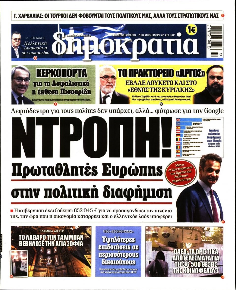 Οι πολιτικές εφημερίδες 4/8/2020 Σήφης Γαρυφαλάκης 06:28, Τρίτη 04 Αυγούστου 2020 Media Διαβάστε τα πρωτοσέλιδα των πολιτικών εφημερίδων… ΕΦΗΜΕΡΙΔΕΣ ΠΟΛΙΤΙΚΕΣ ΕΦΗΜΕΡΙΔΕΣ ΠΡΩΤΟΣΕΛΙΔΑ ΠΡΩΤΟΣΕΛΙΔΑ ΕΦΗΜΕΡΙΔΩΝ Μοιράσου το: σχολίασε κι εσύ (0 σχόλια) Ακολουθήστε το enikos.gr στο Google News και μάθετε πρώτοι όλες τις ειδήσεις Δείτε όλες τις τελευταίες ειδήσεις από την Ελλάδα και τον Κόσμο στο enikos.gr Ειδήσεις Ροή Ειδήσεων 7 ώρες πριν Χριστούγεννα στα μπλόκα: Επιμένουν στις κινητοποιήσεις τους οι αγρότες – Ανοίγουν τα διόδια το Σαββατοκύριακο 7 ώρες πριν Ουκρανία: Η άνευ προηγουμένου επίθεση σε ρωσικό τάνκερ στη Μεσόγειο και το μήνυμα προς στον Πούτιν – Το «μακρύ χέρι» του Κιέβου 7 ώρες πριν Πούτιν: Τα μηνύματα σε Ευρώπη και ΝΑΤΟ από το μαραθώνιο «σόου» του – Η απαίτηση για «σεβασμό» και η ειρήνη «με τους όρους» της Μόσχας 8 ώρες πριν Τραμπ: Δεν αποκλείει την πιθανότητα ενός πολέμου στη Βενεζουέλα – «Ο Μαδούρο ξέρει καλύτερα από τον καθένα τι ακριβώς θέλω» 8 ώρες πριν Συνεχίζει να προκαλεί ο Μίτσκοσκι: «Για μένα το όνομα Μακεδονία είναι ιερό» 13 λεπτά πριν Τα ζώδια σήμερα, Σάββατο 20 Δεκεμβρίου: Παρθένοι, το σύμπαν σας δίνει το κλειδί 7 ώρες πριν Ανακαλύφθηκαν αρχαία χρυσά νομίσματα 2.200 ετών που απεικονίζουν τον θεό Απόλλωνα – Η άγνωστη σύνδεση με τον Φίλιππο Β΄ της Μακεδονίας 8 ώρες πριν Ύπνος: Μια κρυφή κατάσταση του εγκεφάλου πριν από τον ύπνο μπορεί να είναι το “κλειδί” για υψηλή ευφυΐα και δημιουργικότητα 9 ώρες πριν Αριθμολογία: Οι άνθρωποι που έχουν γεννηθεί αυτές τις 4 ημερομηνίες, συχνά παρεξηγούνται – «Η καλοσύνη τους κρύβει τεράστια δύναμη» 34 δευτερόλεπτα πριν Οι αθλητικές εφημερίδες 20/12/2025 4 λεπτά πριν Οι πολιτικές εφημερίδες 20/12/2025 13 λεπτά πριν Τα ζώδια σήμερα, Σάββατο 20 Δεκεμβρίου: Παρθένοι, το σύμπαν σας δίνει το κλειδί 18 λεπτά πριν Παιανία: Δυο αυτοκίνητα τυλίχτηκαν στις φλόγες – Συναγερμός στην Πυροσβεστική 21 λεπτά πριν Εφημερεύοντα φαρμακεία σε Αθήνα και Θεσσαλονίκη (20/12) ENIKOS NETWORK Το ΕΚΑΒ τιμήθηκε από την Ακαδημία Αθηνών για τα 40 χρόνια προσφοράς του Έχετε πραγματικά μεγάλη καρδιά; 10 χαρακτηριστικά όσων έχουν καλοσύνη Αναστολή μέτρων αναγκαστικής εκτέλεσης για κτηνοτρόφους που πλήττονται από την ευλογιά των αιγοπροβάτων Πλήρης επάρκεια προϊόντων στις λαϊκές της Αττικής, παρά τις αγροτικές κινητοποιήσεις – Τι απαντούν οι πωλητές Χαρτογραφώντας το «σημείο χωρίς επιστροφή»: Για πρώτη φορά αποκαλύπτεται με λεπτομέρεια το ακανθώδες όριο της ατμόσφαιρας τ... Η Google καταργεί τη λειτουργία «dark web report» – Πώς θα μπορούν οι χρήστες να διαγράφουν τα δεδομένα τους περισσότερα 05:43 , Σάββατο 20 Δεκεμβρίου 2025 Οι αθλητικές εφημερίδες 20/12/2025 Διαβάστε τα πρωτοσέλιδα από τις αθλητικές εφημερίδες, σήμερα 20/12/2025. 05:38 , Σάββατο 20 Δεκεμβρίου 2025 Οι πολιτικές εφημερίδες 20/12/2025 Διαβάστε τα πρωτοσέλιδα από τις πολιτικές εφημερίδες, σήμερα 20/12/2025. 04:20 , Σάββατο 20 Δεκεμβρίου 2025 Αγγελική Νικολούλη: Τα συλλυπητήρια για την απώλεια της Ειρήνης Μαρινάκη Τα συλληπητήρια στον πρόεδρο του Mega, τον Βαγγέλη Μαρινάκη, για την απώλεια της μητέρας του Ε... 02:50 , Σάββατο 20 Δεκεμβρίου 2025 GNTM: Η Ξένια Τσίρκοβα αναδείχθηκε μεγάλη νικήτρια και πήρε τις 50.000 ευρώ – Ποιος βρέθηκε σε απόσταση αναπνοής; Με φαντασμαγορικό τρόπο ολοκληρώθηκε το βράδυ της Παρασκευής ο μεγάλος τελικός του GNTM, μέσα ... ΤΕΛΕΥΤΑΙΕΣ ΕΙΔΗΣΕΙΣ 4 λεπτά πριν Οι πολιτικές εφημερίδες 20/12/2025 13 λεπτά πριν Τα ζώδια σήμερα, Σάββατο 20 Δεκεμ