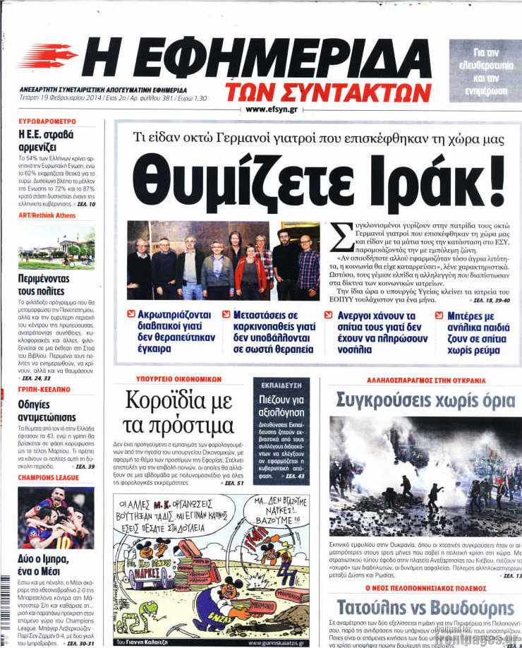 Οι πολιτικές εφημερίδες Enikos Newsroom 08:33, Τετάρτη 19 Φεβρουαρίου 2014 Media Οι πολιτικές εφημερίδες Διαβάστε τα πρωτοσέλιδα των πολιτικών εφημερίδων: ΕΦΗΜΕΡΙΔΕΣ ΠΟΛΙΤΙΚΕΣ ΕΦΗΜΕΡΙΔΕΣ ΠΡΩΤΟΣΕΛΙΔΑ Μοιράσου το: σχολίασε κι εσύ (0 σχόλια) Ακολουθήστε το enikos.gr στο Google News και μάθετε πρώτοι όλες τις ειδήσεις Δείτε όλες τις τελευταίες ειδήσεις από την Ελλάδα και τον Κόσμο στο enikos.gr Ειδήσεις Ροή Ειδήσεων 56 λεπτά πριν Η κοινή διακήρυξη Ελλάδας – Κύπρου – Ισραήλ: Ενίσχυση αμυντικής συνεργασίας, δέσμευση για τον Great Sea Inteconnector – Τα μηνύματα της τριμερούς Συνόδου 41 λεπτά πριν Αγρότες: Bάζουν στην άκρη τα τρακτέρ ενόψει Χριστουγέννων, θέμα ασφαλείας εγείρει η αστυνομία – Οι αναδιατάξεις που θα γίνουν από την Τρίτη 1 ώρα πριν Νεκρός ο άνδρας που έπεσε στις ράγες του Ηλεκτρικού στα Κάτω Πατήσια 3 ώρες πριν Αλεξανδρούπολη: Μήνυση υπέβαλε ο παππούς του 3χρονου που πέθανε από ασιτία – Αναζητούνται οι δράστες που τον ξυλοκόπησαν 5 ώρες πριν Προκλήσεις: Έστειλαν πάλι οπλισμένα F-16 στο Αιγαίο οι Τούρκοι – Παραβιάσεις και αερομαχίες 27 λεπτά πριν Το «μαγικό» υλικό της Αρχαιότητας βρίσκεται ακόμα ανάμεσά μας – Η επιστήμη έλυσε το μυστήριο 2 ώρες πριν Αριθμολογία: Η λέξη που σας χαρακτηρίζει, με βάση την ημερομηνία γέννησής σας – «Είναι η αύρα που εκπέμπετε πριν καν μιλήσετε» 1 ώρα πριν Ύπνος: Γιατρός μοιράζεται τα σημάδια που δείχνουν ότι μπορεί να πάσχετε από «ορμονική αϋπνία» 3 ημέρες πριν Enerwave: Το νέο «ρεύμα» στη λιανική ενέργειας που αλλάζει την εμπειρία του καταναλωτή 9 λεπτά πριν Επεισόδιο ξυλοδαρμού με ρόπαλα στην Πάτρα – Συνελήφθη 40χρονος 20 λεπτά πριν Γιώργος Λιάγκας για την προσωπική ζωή του: «Είμαι λίγο πιο εξωστρεφής, γιατί μεγάλωσαν τα παιδιά» 27 λεπτά πριν Το «μαγικό» υλικό της Αρχαιότητας βρίσκεται ακόμα ανάμεσά μας – Η επιστήμη έλυσε το μυστήριο 32 λεπτά πριν Τσιάρας: Η κυβέρνηση έχει κάνει τα βήματα που έπρεπε για να βρεθούμε στο τραπέζι της συνεννόησης με τον αγροτικό κόσμο 41 λεπτά πριν Αγρότες: Bάζουν στην άκρη τα τρακτέρ ενόψει Χριστουγέννων, θέμα ασφαλείας εγείρει η αστυνομία – Οι αναδιατάξεις που θα γίνουν από την Τρίτη ENIKOS NETWORK Στέλνετε ακόμα Χριστουγεννιάτικες κάρτες; Τι μπορεί να δείχνει για την προσωπικότητά σας Ενεργειακή αναβάθμιση του νοσοκομείου Πατρών «Ο Άγιος Ανδρέας» ΔΕΔΔΗΕ: Τάσεις αποκλιμάκωσης των ρευματοκλοπών αλλά παραμένουν σε υψηλά επίπεδα – Τι δείχνουν τα τελευταία στοιχεία ΥΠΑΑΤ – Ελληνική Αναπτυξιακή Τράπεζα: Συμφωνία για 3 νέα χρηματοδοτικά εργαλεία με μόχλευση πόρων 365 εκατ. ευρώ Ο Google Assistant θα παραμείνει λίγο περισσότερο για ορισμένους χρήστες Android Τεστ προσωπικότητας: Το βάζο που θα επιλέξετε αποκαλύπτει πώς λύνετε προβλήματα στη ζωή σας περισσότερα 20:16 , Δευτέρα 22 Δεκεμβρίου 2025 «Το παιδί από την αρχή»: Special edition επεισόδια της επιτυχημένης σειράς αρχίζουν από σήμερα στην ΕΡΤ1 «Το παιδί», η ξεχωριστή σειρά της ΕΡΤ1 με στοιχεία μαύρης κωμωδίας, που φέρει την υπογραφή του... 19:41 , Δευτέρα 22 Δεκεμβρίου 2025 Porto Leone: Στη γειτονιά με τα κόκκινα φανάρια – Η Αλεξάνδρα ανακαλύπτει το μυστικό της Γαλήνης και της στήνει παγίδα Απόψε στις 22:30 στον Alpha η συγκλονιστική συνέχεια της δραματικής σειράς του Apha «Porto Leo... 19:16 , Δευτέρα 22 Δεκεμβρίου 2025 Άγιος έρωτας: Η Πετρούλα αφήνει την τελευταία της πνοή Καθηλώνει το προτελευταίο επεισόδιο της χρονιάς της σειράς “Άγιος Έρωτας” απόψε στ... 18:39 , Δευτέρα 22 Δεκεμβρίου 2025 Να μ’αγαπάς: Ο Θεόφιλος απειλεί 