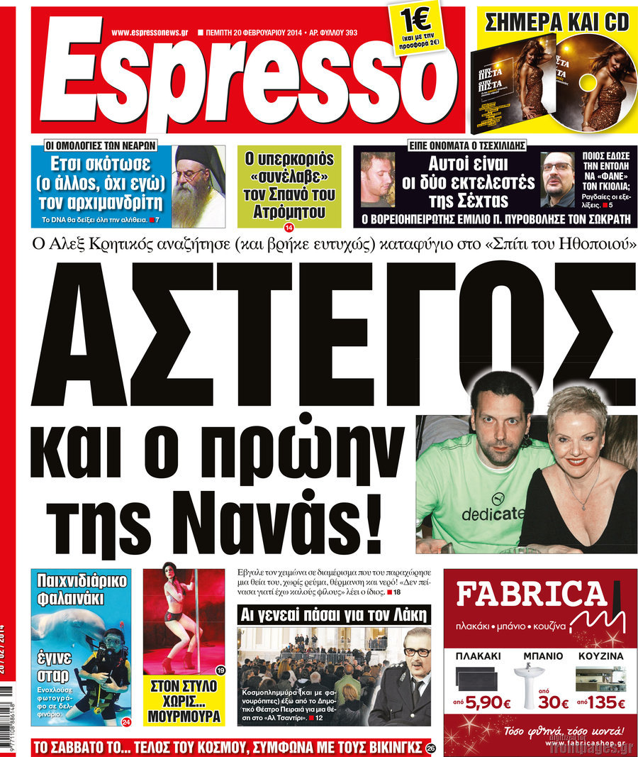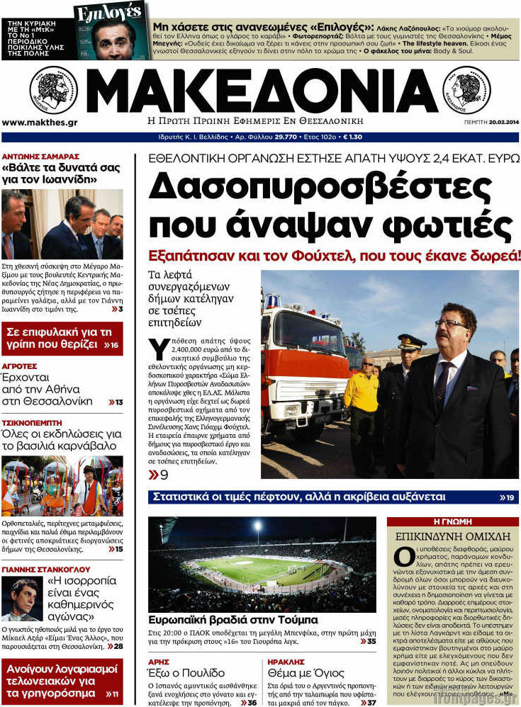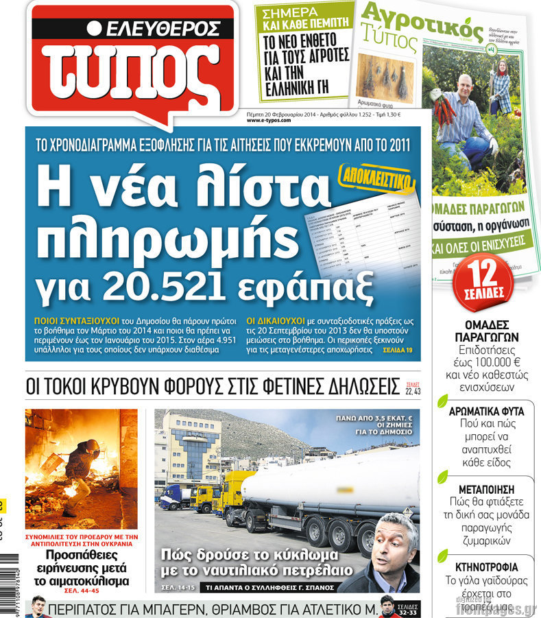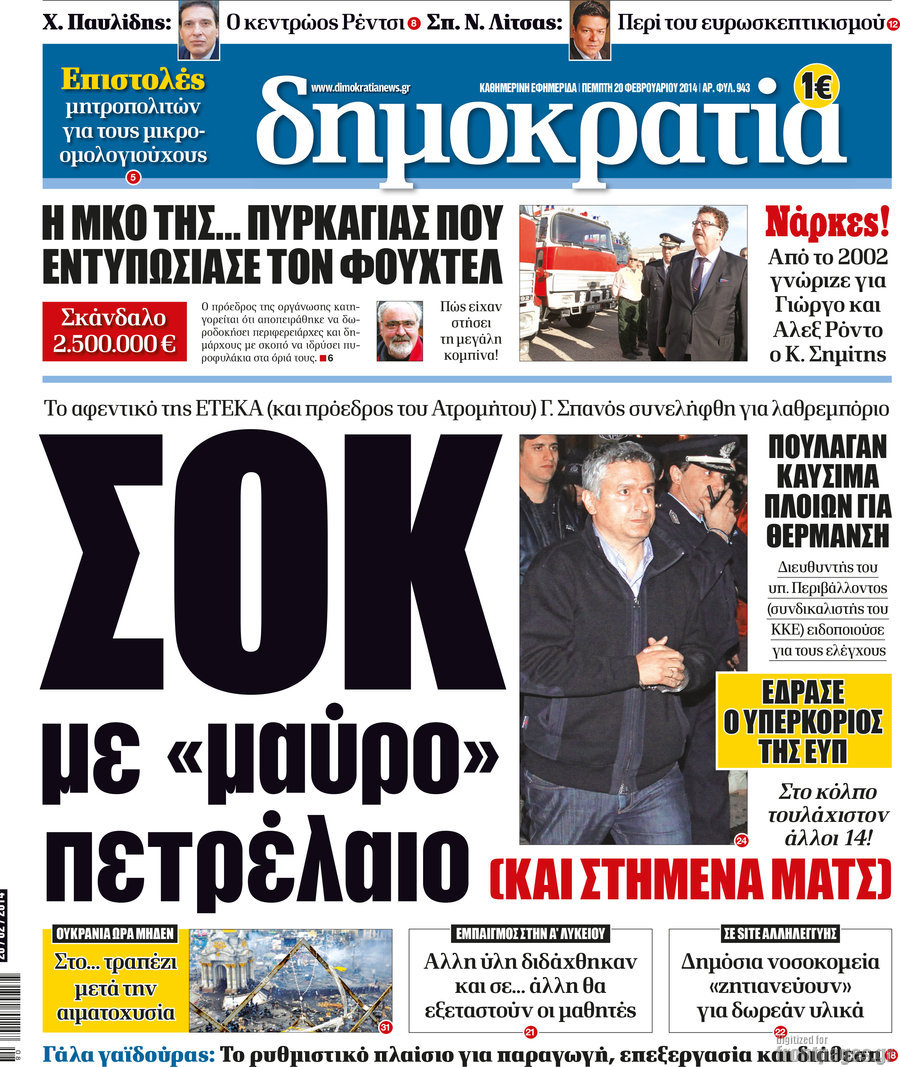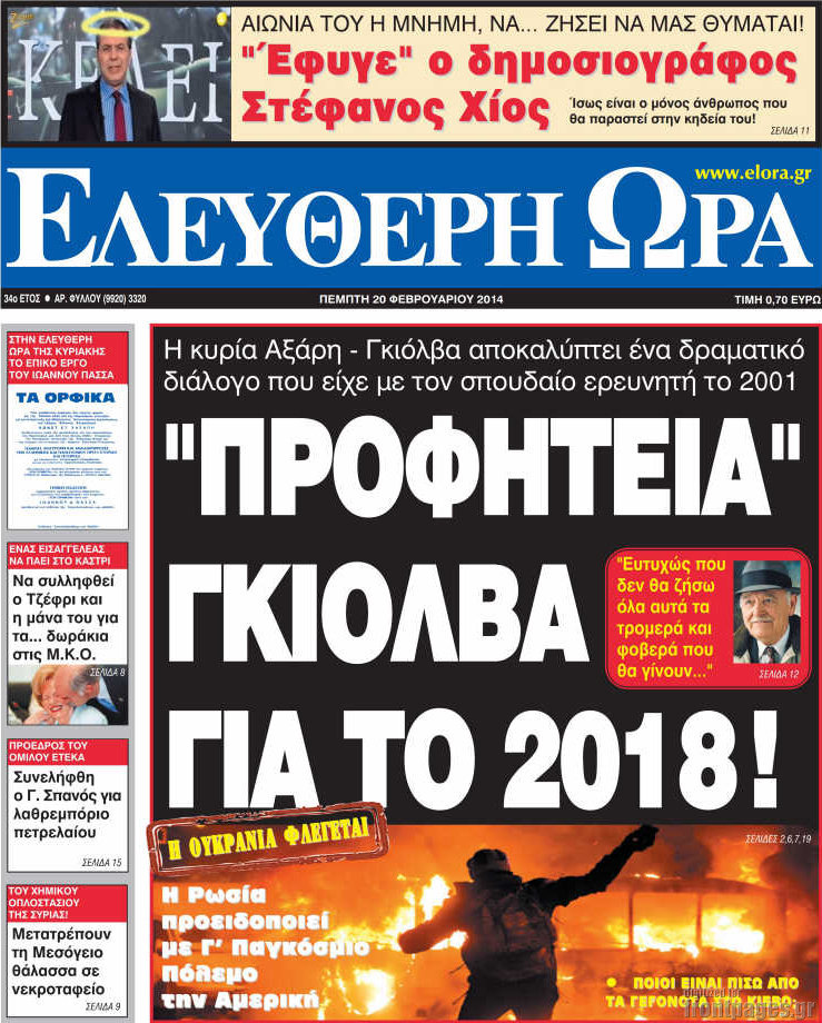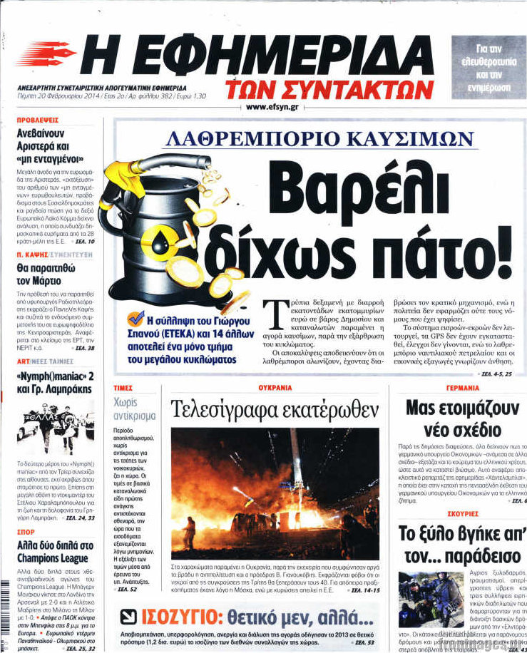 Οι πολιτικές εφημερίδες Enikos Newsroom 08:32, Πέμπτη 20 Φεβρουαρίου 2014 Media Οι πολιτικές εφημερίδες Διαβάστε τα πρωτοσέλιδα των πολιτικών εφημερίδων: ΕΦΗΜΕΡΙΔΕΣ ΠΟΛΙΤΙΚΕΣ ΕΦΗΜΕΡΙΔΕΣ ΠΡΩΤΟΣΕΛΙΔΑ Μοιράσου το: σχολίασε κι εσύ (0 σχόλια) Ακολουθήστε το enikos.gr στο Google News και μάθετε πρώτοι όλες τις ειδήσεις Δείτε όλες τις τελευταίες ειδήσεις από την Ελλάδα και τον Κόσμο στο enikos.gr Ειδήσεις Ροή Ειδήσεων 41 λεπτά πριν Μπλόκα: Οι αγρότες σηκώνουν τις μπάρες σε διόδια για τους εκδρομείς των Χριστουγέννων και μοιράζουν προϊόντα – Βίντεο 1 ώρα πριν Τσιάρας προς αγρότες: Τα μπλόκα και τα πείσματα δεν ωφελούν – Οι λύσεις περνούν μέσα από τον διάλογο 2 ώρες πριν Αρχεία Έπσταϊν: Οι συγκλονιστικές φωτογραφίες – Ο Μάικλ Τζάκσον, ο Μικ Τζάγκερ και ο Κέβιν Σπέισι ανάμεσα στους διάσημους που απεικονίζονται 3 ώρες πριν Νέες ταυτότητες: Μεγάλη αναμονή για ραντεβού στην Αττική – Τέλος τα ταξίδια εκτός Ελλάδος από τον Αύγουστο για όσους δεν έχουν αλλάξει 3 ώρες πριν Ινδία: Επτά ελέφαντες σκοτώθηκαν κατά τη σύγκρουση επιβατικού τρένου με κοπάδι 4 ώρες πριν Μία νέα «χρυσή» περίοδος αρχίζει για 3 ζώδια από σήμερα – «Μία αναπάντεχη ευκαιρία οδηγεί στην επιτυχία» 5 ώρες πριν Αγχώνεται για το χριστουγεννιάτικο δώρο που πήρε στην πλούσια σύντροφό του – «Φοβάμαι πως θα το βρει φθηνιάρικο, φοράει βραχιόλια Cartier» 3 ώρες πριν Διαιτολόγος αποκαλύπτει 9 πρωινές συνήθειες που «λιώνουν» το κοιλιακό λίπος – «Υποστηρίζουν την υγιεινή απώλεια βάρους» 4 ώρες πριν Οι 7 φράσεις που δεν λένε ποτέ οι συναισθηματικά έξυπνοι άνθρωποι κατά τη διάρκεια ενός καβγά 5 λεπτά πριν Βέλγιο: Άγνωστοι έριξαν κόκκινη μπογιά στο προξενείο της Πολωνίας στις Βρυξέλλες 13 λεπτά πριν Γρηγόρης Δημητριάδης: Χριστουγεννιάτικη συνάντηση με τα παιδιά της ΔΑΠ-ΝΔΦΚ και της ΟΝΝΕΔ 21 λεπτά πριν Στέφανος Παπαδόπουλος: Ξέσπασε σε κλάματα – «Θέλω να έρθει μπροστά μου και να μου πει ότι είμαι ψεύτης» 29 λεπτά πριν Η Realnews αυτής της Κυριακής (21/12/2025) 38 λεπτά πριν Πέτρου Ράλλη: Καρέ – καρέ η κλοπή αυτοκινήτου μέσα σε 2,5 λεπτά ENIKOS NETWORK Η αποχή από την αναπαραγωγή παρατείνει τη ζωή στα ζώα, σύμφωνα με μελέτη – Τι ισχύει για τους ανθρώπους; Σημαντικές επαφές στις ΗΠΑ είχε ο υπουργός Υγείας Άδωνις Γεωργιάδης MyHealth App: Τα στοιχεία για τον Προσωπικό Βοηθό Υγείας Πολίτη – Τι ερωτήματα έγιναν μέσα σε 7 ημέρες Χειμερινές εκπτώσεις 2026: Πρεμιέρα στις 12 Ιανουαρίου – Πόσο θα διαρκέσουν και τι πρέπει να γνωρίζουν οι καταναλωτές Χαρτογραφώντας το «σημείο χωρίς επιστροφή»: Για πρώτη φορά αποκαλύπτεται με λεπτομέρεια το ακανθώδες όριο της ατμόσφαιρας τ... Η Google καταργεί τη λειτουργία «dark web report» – Πώς θα μπορούν οι χρήστες να διαγράφουν τα δεδομένα τους περισσότερα 14:04 , Σάββατο 20 Δεκεμβρίου 2025 Η Realnews αυτής της Κυριακής (21/12/2025) Με τίτλο: «Ασπίδα προστασίας για την Ελλάδα» κυκλοφορεί, αυτήν την Κυριακή, η Realnews. Σημαντ... 12:53 , Σάββατο 20 Δεκεμβρίου 2025 Να μ’ αγαπάς: Το παρελθόν έρχεται στο φως – Καταιγιστικές εξελίξεις στα τελευταία επεισόδια του 2025 Ο Άγγελος αποκαλύπτεται, η Φωτεινή ανησυχεί για τον Λευτέρη και η Ζωή έρχεται αντιμέτωπη με το... 11:41 , Σάββατο 20 Δεκεμβρίου 2025 «Η αγάπη δεν χάνεται ποτέ»: Η μικρού μήκους ταινία κινουμένων σχεδίων που θέτει ερωτήματα για τη ζωή και τον θάνατο Ο θάνατος είναι ένα από τα πιο σκληρά θέματα που καλείται να διαχειριστεί κάποιος στη διάρκεια... 09:30 , Σάββατο 20 Δεκεμβρίου 2025 «Porto Leone: Στη γειτονιά με τα κόκκινα φανάρια» – Ο