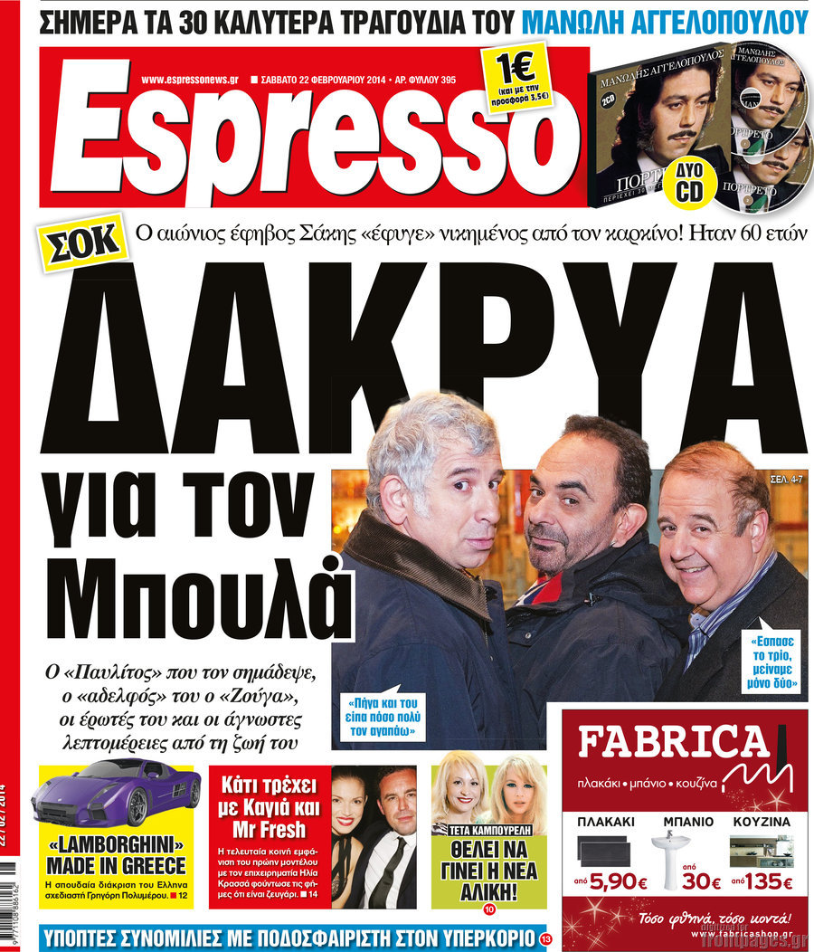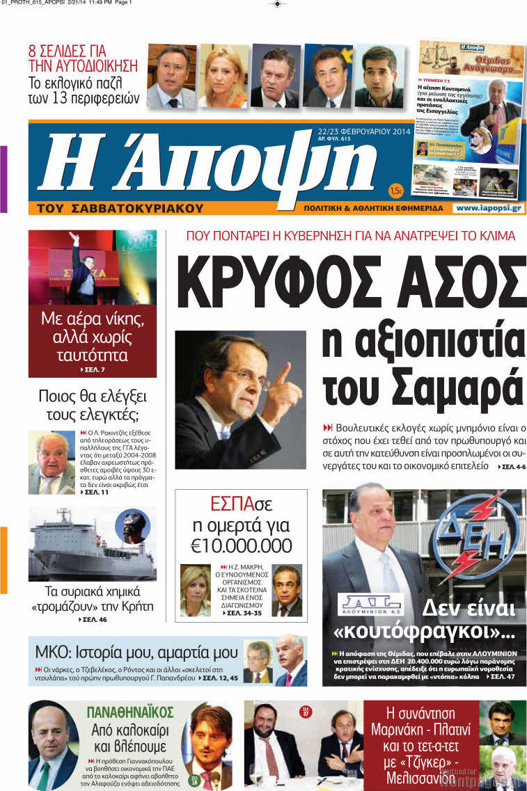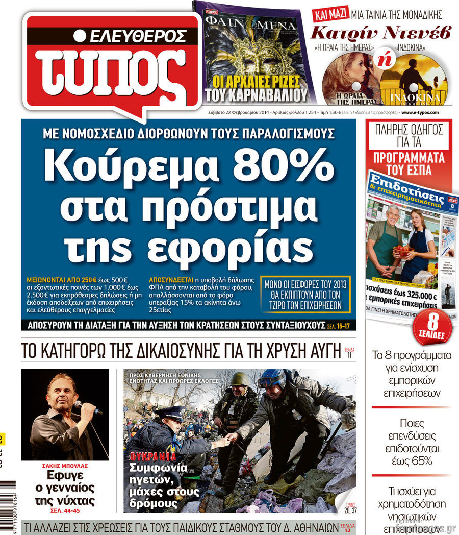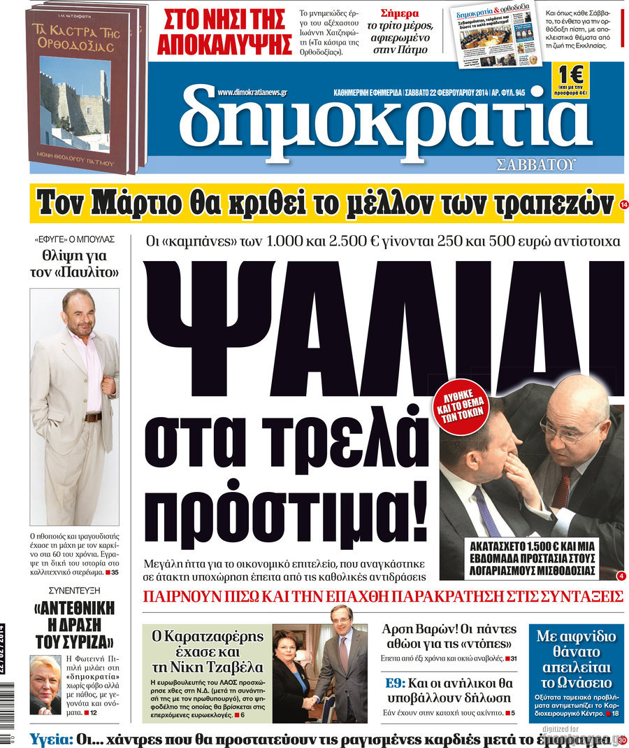 Οι πολιτικές εφημερίδες Enikos Newsroom 08:33, Σάββατο 22 Φεβρουαρίου 2014 Media Οι πολιτικές εφημερίδες Διαβάστε τα πρωτοσέλιδα των πολιτικών εφημερίδων: ΠΟΛΙΤΙΚΕΣ ΕΦΗΜΕΡΙΔΕΣ ΠΡΩΤΟΣΕΛΙΔΑ Μοιράσου το: σχολίασε κι εσύ (0 σχόλια) Ακολουθήστε το enikos.gr στο Google News και μάθετε πρώτοι όλες τις ειδήσεις Δείτε όλες τις τελευταίες ειδήσεις από την Ελλάδα και τον Κόσμο στο enikos.gr Ειδήσεις Ροή Ειδήσεων 2 ώρες πριν Γιορτές με μπλόκα για τους αγρότες: Ανοίγουν διόδια και μοιράζουν προϊόντα στους ταξιδιώτες 2 ώρες πριν Τα αρχεία του Έπσταϊν αποκαλύπτουν φωτογραφία του έκπτωτου πρίγκιπα Άντριου – Είναι ξαπλωμένος στην αγκαλιά 5 γυναικών 1 ώρα πριν Νέες ταυτότητες: Μεγάλη αναμονή για ραντεβού στην Αττική – Τέλος τα ταξίδια εκτός Ελλάδος από τον Αύγουστο για όσους δεν έχουν αλλάξει 3 ώρες πριν Εξαφάνιση 33χρονου γιατρού στην Κρήτη: «Άναψα τα φώτα, τρόμαξε και άρχισε να τρέχει στα χωράφια» – Η τελευταία διαδρομή και η μαρτυρία «κλειδί» 37 λεπτά πριν Ινδία: Επτά ελέφαντες σκοτώθηκαν κατά τη σύγκρουση επιβατικού τρένου με κοπάδι 2 ώρες πριν Μία νέα «χρυσή» περίοδος αρχίζει για 3 ζώδια από σήμερα – «Μία αναπάντεχη ευκαιρία οδηγεί στην επιτυχία» 4 ώρες πριν Αρχαιολόγοι ανακάλυψαν σε χωράφι απεικόνιση 600 ετών ενός Αγίου – Τα στοιχεία που δείχνουν ότι μαρτύρησε 3 ώρες πριν Αγχώνεται για το χριστουγεννιάτικο δώρο που πήρε στην πλούσια σύντροφό του – «Φοβάμαι πως θα το βρει φθηνιάρικο, φοράει βραχιόλια Cartier» 34 λεπτά πριν Διαιτολόγος αποκαλύπτει 9 πρωινές συνήθειες που «λιώνουν» το κοιλιακό λίπος – «Υποστηρίζουν την υγιεινή απώλεια βάρους» 5 λεπτά πριν Αρχεία Έπσταϊν: Οι συγκλονιστικές φωτογραφίες – Ο Μάικλ Τζάκσον, ο Μικ Τζάγκερ και ο Κέβιν Σπέισι ανάμεσα στους διάσημους που απεικονίζονται 14 λεπτά πριν Χρήστος Μάντακας: «Θα μπορούσα να είχα φύγει από τη ζωή, δεν μπορούσα να περπατήσω…» 21 λεπτά πριν Εντυπωσιακό βίντεο από «τσουνάμι» πάγου στη Σιβηρία – Πώς προκαλείται το σπάνιο φαινόμενο 29 λεπτά πριν Μυλωνάκης κατά Τζάκρη: Την καλώ να ανασκευάσει το αδιανόητο ψέμα της. Η ανοχή έχει και τα όρια της» 34 λεπτά πριν Διαιτολόγος αποκαλύπτει 9 πρωινές συνήθειες που «λιώνουν» το κοιλιακό λίπος – «Υποστηρίζουν την υγιεινή απώλεια βάρους» ENIKOS NETWORK Είστε μόνιμα απρόσεκτοι; 3 σημάδια που δείχνουν ότι μπορεί να είναι σύμπτωμα πάθησης Πόσα κιλά παίρνουμε πραγματικά τα Χριστούγεννα, σύμφωνα με την επιστήμη – Πώς να το αποτρέψουμε; Χριστούγεννα και Πρωτοχρονιά: Πώς αμείβονται όσοι εργαστούν e-ΕΦΚΑ και ΔΥΠΑ: Έρχονται νέες πληρωμές έως τις 24 Δεκεμβρίου – Ποιοι πάνε ταμείο Χαρτογραφώντας το «σημείο χωρίς επιστροφή»: Για πρώτη φορά αποκαλύπτεται με λεπτομέρεια το ακανθώδες όριο της ατμόσφαιρας τ... Η Google καταργεί τη λειτουργία «dark web report» – Πώς θα μπορούν οι χρήστες να διαγράφουν τα δεδομένα τους περισσότερα 11:41 , Σάββατο 20 Δεκεμβρίου 2025 «Η αγάπη δεν χάνεται ποτέ»: Η μικρού μήκους ταινία κινουμένων σχεδίων που θέτει ερωτήματα για τη ζωή και τον θάνατο Ο θάνατος είναι ένα από τα πιο σκληρά θέματα που καλείται να διαχειριστεί κάποιος στη διάρκεια... 09:30 , Σάββατο 20 Δεκεμβρίου 2025 «Porto Leone: Στη γειτονιά με τα κόκκινα φανάρια» – Ο Χρόνης αποκαλύπτει στην Αλεξάνδρα το μυστικό για το παιδί της Λένας Η μεγάλη δραματική σειρά του Apha «Porto Leone: Στη γειτονιά με τα κόκκινα φανάρια» μας μεταφέ... 08:14 , Σάββατο 20 Δεκεμβρίου 2025 Τρομεροί γονείς: Η Μαρία Καβογιάννη εισβάλλει στο σπίτι της οικογένειας Στεφανίδη Όσα 
