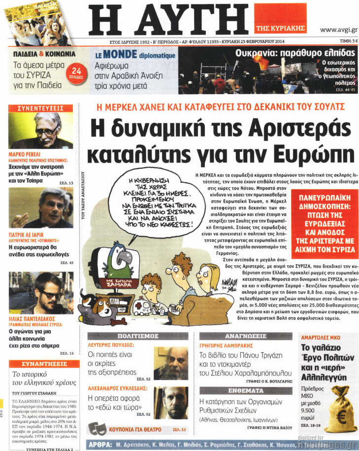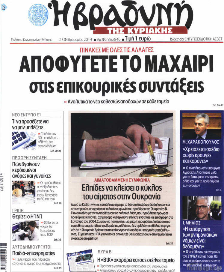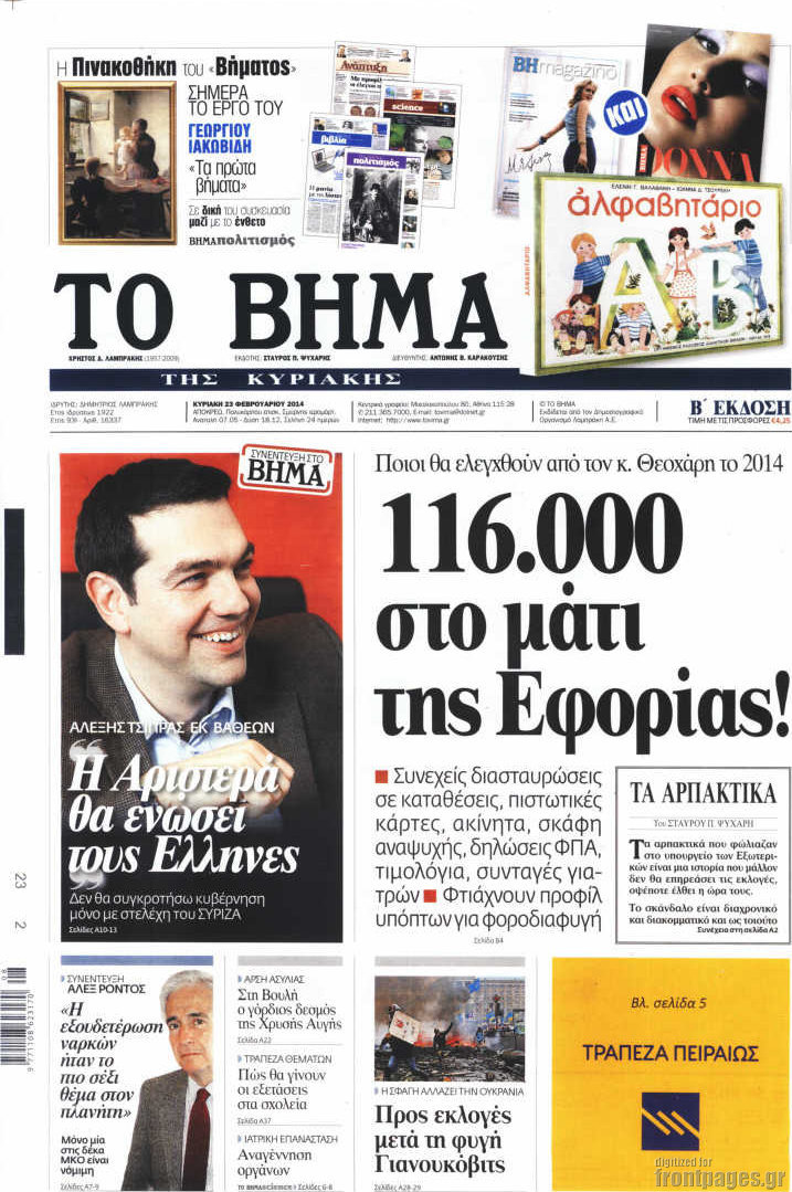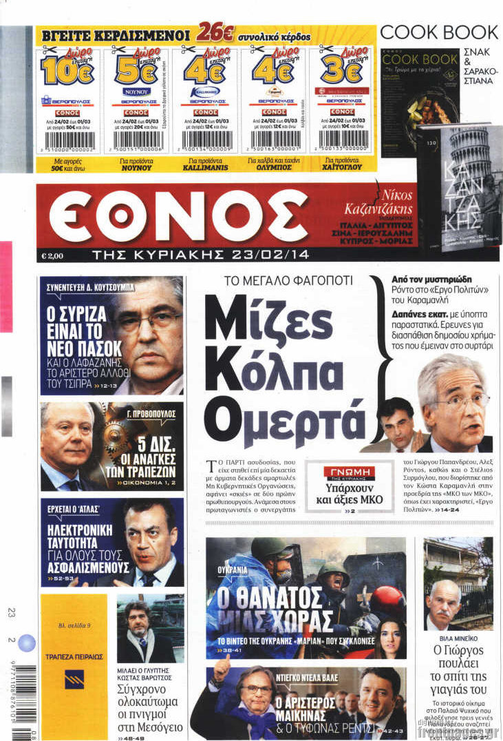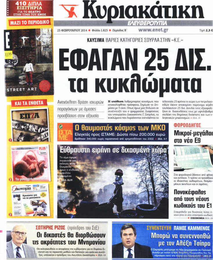 Οι πολιτικές εφημερίδες Enikos Newsroom 08:04, Κυριακή 23 Φεβρουαρίου 2014 Media Οι πολιτικές εφημερίδες Διαβάστε τα πρωτοσέλιδα των πολιτικών εφημερίδων: ΠΟΛΙΤΙΚΕΣ ΕΦΗΜΕΡΙΔΕΣ ΠΡΩΤΟΣΕΛΙΔΑ Μοιράσου το: σχολίασε κι εσύ (0 σχόλια) Ακολουθήστε το enikos.gr στο Google News και μάθετε πρώτοι όλες τις ειδήσεις Δείτε όλες τις τελευταίες ειδήσεις από την Ελλάδα και τον Κόσμο στο enikos.gr Ειδήσεις Ροή Ειδήσεων 2 ώρες πριν Κύκλωμα διακίνησης ναρκωτικών σε σχολεία: Βίντεο ντοκουμέντο από τα βασανιστήρια στους ανήλικους – Συζητούσαν για το πώς θα κάνουν «ξέπλυμα χρήματος» 31 λεπτά πριν Κλιμακώνουν τις κινητοποιήσεις τους οι αγρότες: Κλείνουν τη Δευτέρα τις σήραγγες των Τεμπών για τα φορτηγά – Ανοίγουν την Τρίτη τους δρόμους για τους εκδρομείς 2 ώρες πριν Αιματηρό επεισόδιο στον Άγιο Παντελεήμονα – Δύο τραυματίες, αναζητείται ο δράστης 39 λεπτά πριν ΗΠΑ: Αυξάνουν την πίεση στην Βενεζουέλα – Το νέο ρεσάλτο σε τάνκερ και ο στόχος του Τραμπ 1 ώρα πριν Κασσελάκης για παραίτηση Μάλαμα: «Η πορεία μας δεν θα καθοριστεί από μεμονωμένα πρόσωπα, μηχανισμούς και προσωπικές ατζέντες» 1 ώρα πριν Ύπνος: Τι είναι ο «κανόνας 3-3-3» που χρησιμοποιεί ένας γιατρός για να ξεχωρίσει την κόπωση από την αϋπνία 2 ώρες πριν Αριθμολογία: Οι άνθρωποι που έχουν γεννηθεί αυτές τις 4 ημερομηνίες, είναι οι πιο πιστοί και αφοσιωμένοι σύντροφοι 26 λεπτά πριν Αρχαιολογικό θρίλερ στην καρδιά της Ευρώπης: Παράξενο θραύσμα με ανάγλυφα και σφηνοειδή γραφή ανακαλύφθηκε σε μέρος που δεν περίμενε κανείς 2 ημέρες πριν Enerwave: Το νέο «ρεύμα» στη λιανική ενέργειας που αλλάζει την εμπειρία του καταναλωτή 23 λεπτά πριν ΑΕΚ – ΟΦΗ 2-1: Γιορτές στην κορυφή με… ανατροπή 26 λεπτά πριν Αρχαιολογικό θρίλερ στην καρδιά της Ευρώπης: Παράξενο θραύσμα με ανάγλυφα και σφηνοειδή γραφή ανακαλύφθηκε σε μέρος που δεν περίμενε κανείς 31 λεπτά πριν Κλιμακώνουν τις κινητοποιήσεις τους οι αγρότες: Κλείνουν τη Δευτέρα τις σήραγγες των Τεμπών για τα φορτηγά – Ανοίγουν την Τρίτη τους δρόμους για τους εκδρομείς 32 λεπτά πριν Γουίτκοφ: «Εποικοδομητικές και παραγωγικές» οι συνομιλίες στο Μαϊάμι 39 λεπτά πριν ΗΠΑ: Αυξάνουν την πίεση στην Βενεζουέλα – Το νέο ρεσάλτο σε τάνκερ και ο στόχος του Τραμπ ENIKOS NETWORK Οι γυναίκες έχουν βρει μια νέα απόλαυση στην κρεβατοκάμαρα που οι περισσότεροι άνδρες αγνοούν Christmas glow: 5 χρυσές συμβουλές για επιδερμίδα που λάμπει από ομορφιά τα Χριστούγεννα Νέο έτος ρεκόρ για τον ελληνικό τουρισμό το 2025: «Είμαστε μέσα στους 10 πλέον επισκέψιμους προορισμούς παγκοσμίως» λέει η ... Τιμές καυσίμων: Πόσο θα πληρώσουν οι εκδρομείς των Χριστουγέννων – Το κόστος μετακινήσεων σε δημοφιλείς προορισμούς Χαρτογραφώντας το «σημείο χωρίς επιστροφή»: Για πρώτη φορά αποκαλύπτεται με λεπτομέρεια το ακανθώδες όριο της ατμόσφαιρας τ... Η Google καταργεί τη λειτουργία «dark web report» – Πώς θα μπορούν οι χρήστες να διαγράφουν τα δεδομένα τους περισσότερα 21:30 , Κυριακή 21 Δεκεμβρίου 2025 Ο Δικαστής: Στα χέρια της Αστυνομίας βίντεο, που ανατρέπει όλα τα δεδομένα – Στενεύει ο κλοιός γύρω από τον Δικαστή Καταιγιστικές εξελίξεις στο τελευταίο επεισόδιο της χρονιάς της σειράς “Ο Δικαστής”... 17:18 , Κυριακή 21 Δεκεμβρίου 2025 «Η Μεγάλη Χίμαιρα»: Μάγεψε το κοινό κατά την avant-première της προβολής της Την Πρωτοχρονιά (Πέμπτη 1η Ιανουαρίου 2026) στο ERTFLIX θα γίνει η πρεμιέρα της πολυαναμενόμεν... 15:08 , Κυριακή 21 Δεκεμβρίου 2025 Μια νύχτα μόνο: Η Αρετή και ο Οδυσσέας έρχονται και πάλι κ