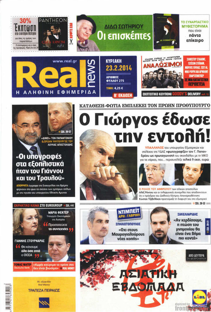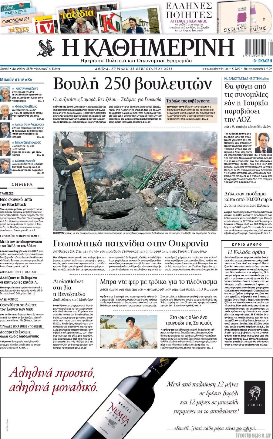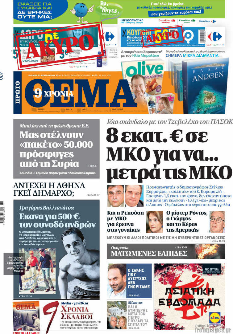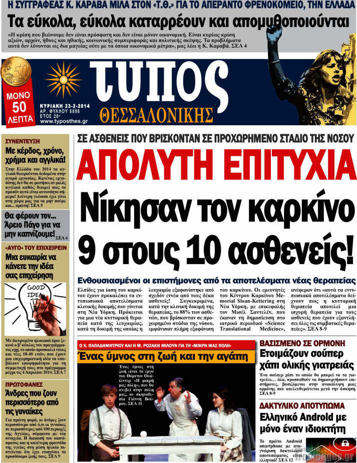 Οι πολιτικές εφημερίδες Enikos Newsroom 08:04, Κυριακή 23 Φεβρουαρίου 2014 Media Οι πολιτικές εφημερίδες Διαβάστε τα πρωτοσέλιδα των πολιτικών εφημερίδων: ΠΟΛΙΤΙΚΕΣ ΕΦΗΜΕΡΙΔΕΣ ΠΡΩΤΟΣΕΛΙΔΑ Μοιράσου το: σχολίασε κι εσύ (0 σχόλια) Ακολουθήστε το enikos.gr στο Google News και μάθετε πρώτοι όλες τις ειδήσεις Δείτε όλες τις τελευταίες ειδήσεις από την Ελλάδα και τον Κόσμο στο enikos.gr Ειδήσεις Ροή Ειδήσεων 2 ώρες πριν Κύκλωμα διακίνησης ναρκωτικών σε σχολεία: Βίντεο ντοκουμέντο από τα βασανιστήρια στους ανήλικους – Συζητούσαν για το πώς θα κάνουν «ξέπλυμα χρήματος» 31 λεπτά πριν Κλιμακώνουν τις κινητοποιήσεις τους οι αγρότες: Κλείνουν τη Δευτέρα τις σήραγγες των Τεμπών για τα φορτηγά – Ανοίγουν την Τρίτη τους δρόμους για τους εκδρομείς 2 ώρες πριν Αιματηρό επεισόδιο στον Άγιο Παντελεήμονα – Δύο τραυματίες, αναζητείται ο δράστης 39 λεπτά πριν ΗΠΑ: Αυξάνουν την πίεση στην Βενεζουέλα – Το νέο ρεσάλτο σε τάνκερ και ο στόχος του Τραμπ 1 ώρα πριν Κασσελάκης για παραίτηση Μάλαμα: «Η πορεία μας δεν θα καθοριστεί από μεμονωμένα πρόσωπα, μηχανισμούς και προσωπικές ατζέντες» 1 ώρα πριν Ύπνος: Τι είναι ο «κανόνας 3-3-3» που χρησιμοποιεί ένας γιατρός για να ξεχωρίσει την κόπωση από την αϋπνία 2 ώρες πριν Αριθμολογία: Οι άνθρωποι που έχουν γεννηθεί αυτές τις 4 ημερομηνίες, είναι οι πιο πιστοί και αφοσιωμένοι σύντροφοι 26 λεπτά πριν Αρχαιολογικό θρίλερ στην καρδιά της Ευρώπης: Παράξενο θραύσμα με ανάγλυφα και σφηνοειδή γραφή ανακαλύφθηκε σε μέρος που δεν περίμενε κανείς 2 ημέρες πριν Enerwave: Το νέο «ρεύμα» στη λιανική ενέργειας που αλλάζει την εμπειρία του καταναλωτή 23 λεπτά πριν ΑΕΚ – ΟΦΗ 2-1: Γιορτές στην κορυφή με… ανατροπή 26 λεπτά πριν Αρχαιολογικό θρίλερ στην καρδιά της Ευρώπης: Παράξενο θραύσμα με ανάγλυφα και σφηνοειδή γραφή ανακαλύφθηκε σε μέρος που δεν περίμενε κανείς 31 λεπτά πριν Κλιμακώνουν τις κινητοποιήσεις τους οι αγρότες: Κλείνουν τη Δευτέρα τις σήραγγες των Τεμπών για τα φορτηγά – Ανοίγουν την Τρίτη τους δρόμους για τους εκδρομείς 32 λεπτά πριν Γουίτκοφ: «Εποικοδομητικές και παραγωγικές» οι συνομιλίες στο Μαϊάμι 39 λεπτά πριν ΗΠΑ: Αυξάνουν την πίεση στην Βενεζουέλα – Το νέο ρεσάλτο σε τάνκερ και ο στόχος του Τραμπ ENIKOS NETWORK Οι γυναίκες έχουν βρει μια νέα απόλαυση στην κρεβατοκάμαρα που οι περισσότεροι άνδρες αγνοούν Christmas glow: 5 χρυσές συμβουλές για επιδερμίδα που λάμπει από ομορφιά τα Χριστούγεννα Νέο έτος ρεκόρ για τον ελληνικό τουρισμό το 2025: «Είμαστε μέσα στους 10 πλέον επισκέψιμους προορισμούς παγκοσμίως» λέει η ... Τιμές καυσίμων: Πόσο θα πληρώσουν οι εκδρομείς των Χριστουγέννων – Το κόστος μετακινήσεων σε δημοφιλείς προορισμούς Χαρτογραφώντας το «σημείο χωρίς επιστροφή»: Για πρώτη φορά αποκαλύπτεται με λεπτομέρεια το ακανθώδες όριο της ατμόσφαιρας τ... Η Google καταργεί τη λειτουργία «dark web report» – Πώς θα μπορούν οι χρήστες να διαγράφουν τα δεδομένα τους περισσότερα 21:30 , Κυριακή 21 Δεκεμβρίου 2025 Ο Δικαστής: Στα χέρια της Αστυνομίας βίντεο, που ανατρέπει όλα τα δεδομένα – Στενεύει ο κλοιός γύρω από τον Δικαστή Καταιγιστικές εξελίξεις στο τελευταίο επεισόδιο της χρονιάς της σειράς “Ο Δικαστής”... 17:18 , Κυριακή 21 Δεκεμβρίου 2025 «Η Μεγάλη Χίμαιρα»: Μάγεψε το κοινό κατά την avant-première της προβολής της Την Πρωτοχρονιά (Πέμπτη 1η Ιανουαρίου 2026) στο ERTFLIX θα γίνει η πρεμιέρα της πολυαναμενόμεν... 15:08 , Κυριακή 21 Δεκεμβρίου 2025 Μια νύχτα μόνο: Η Αρετή και ο Οδυσσέας έρχονται και πάλι κ