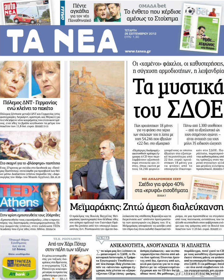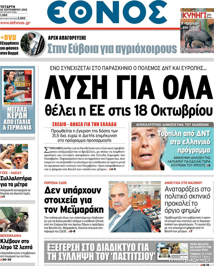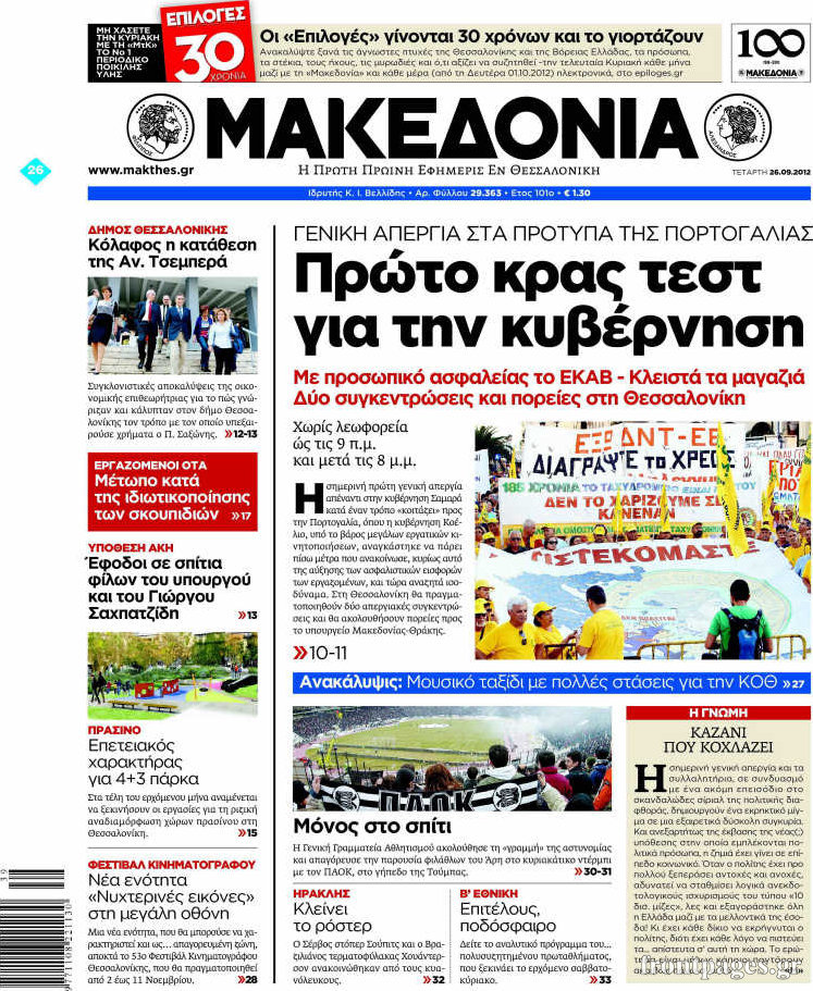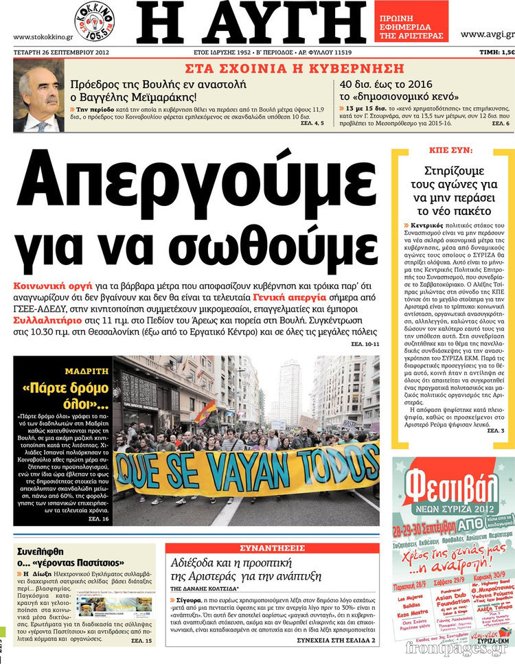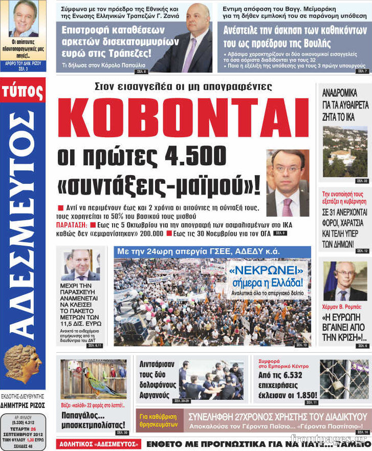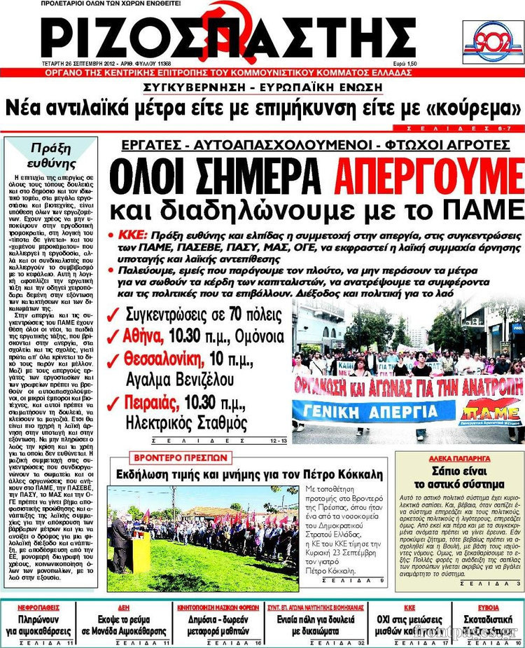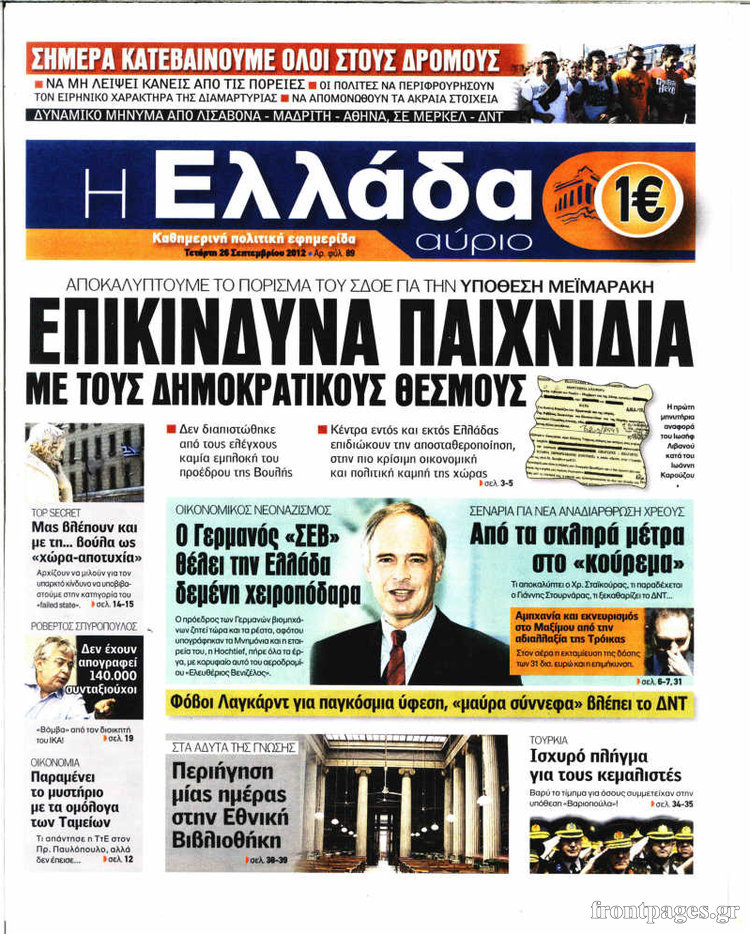 Διαβάστε τα σημερινά πρωτοσέλιδα των πολιτικών εφημερίδων.