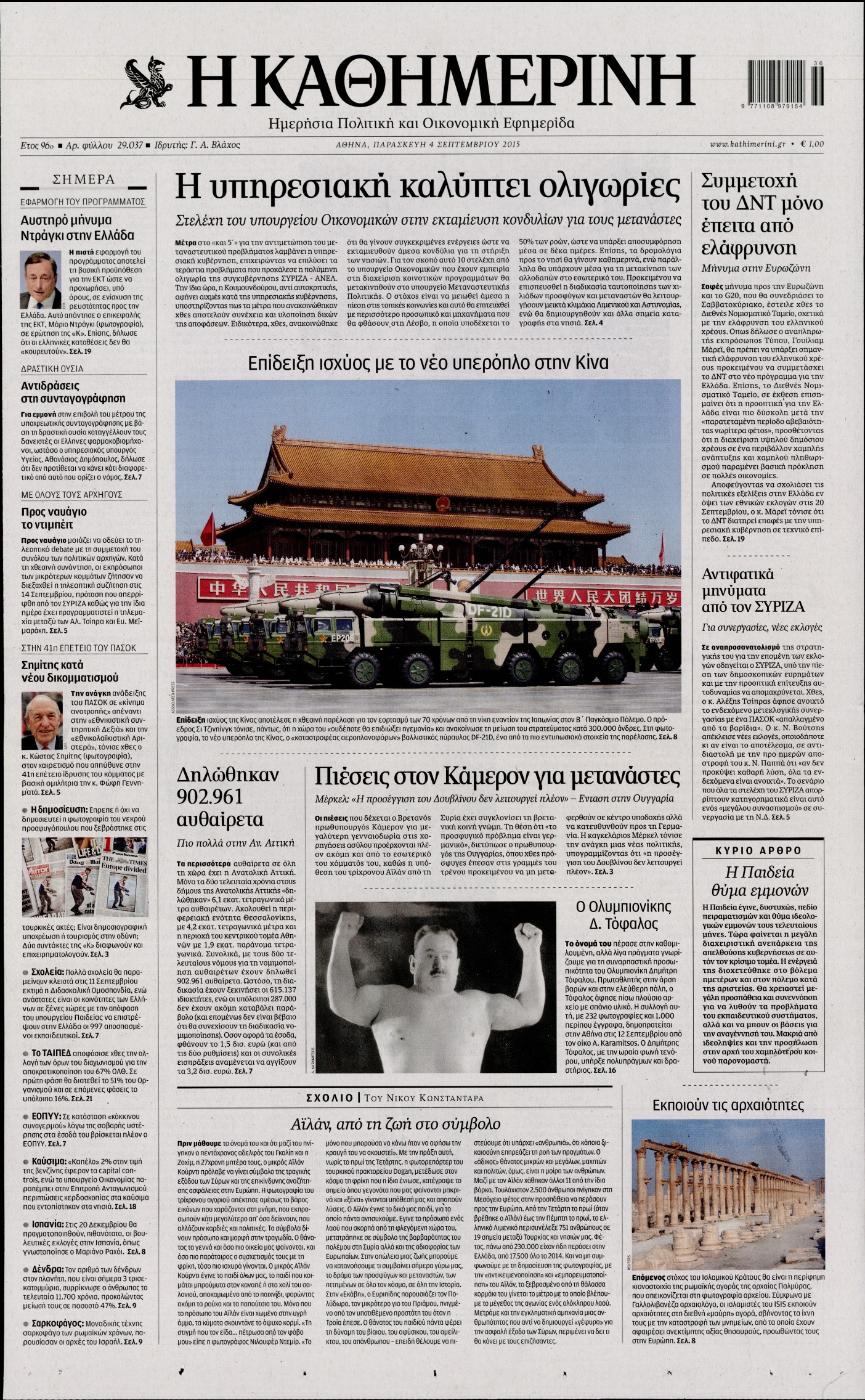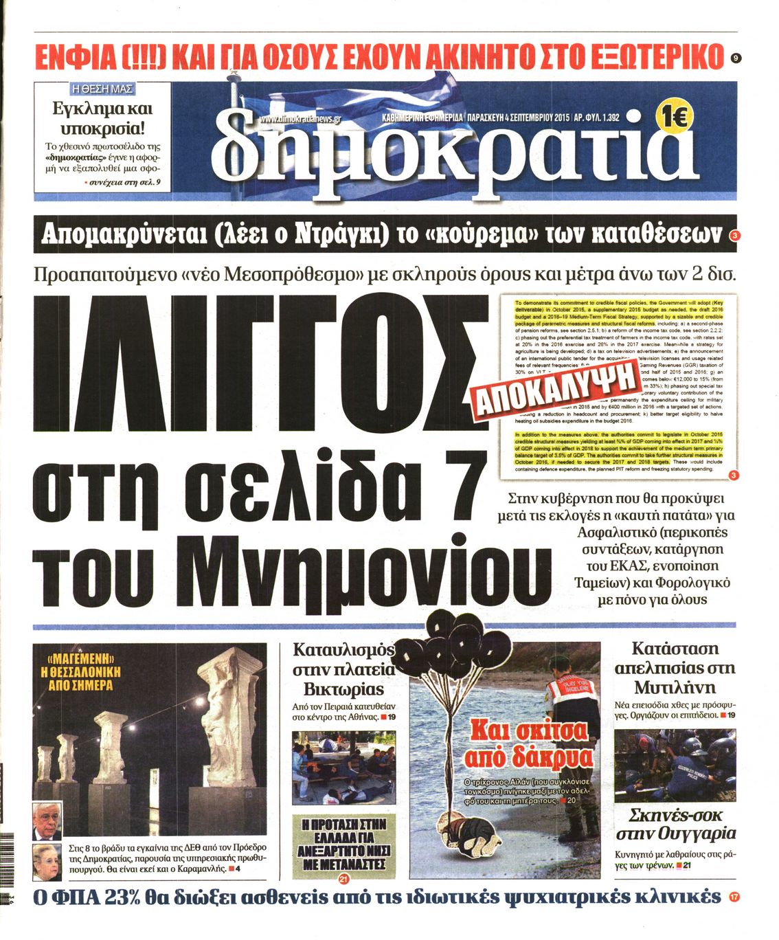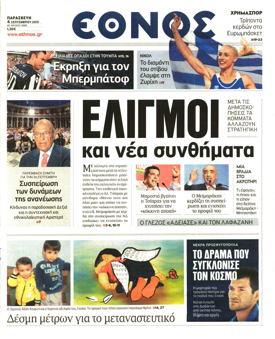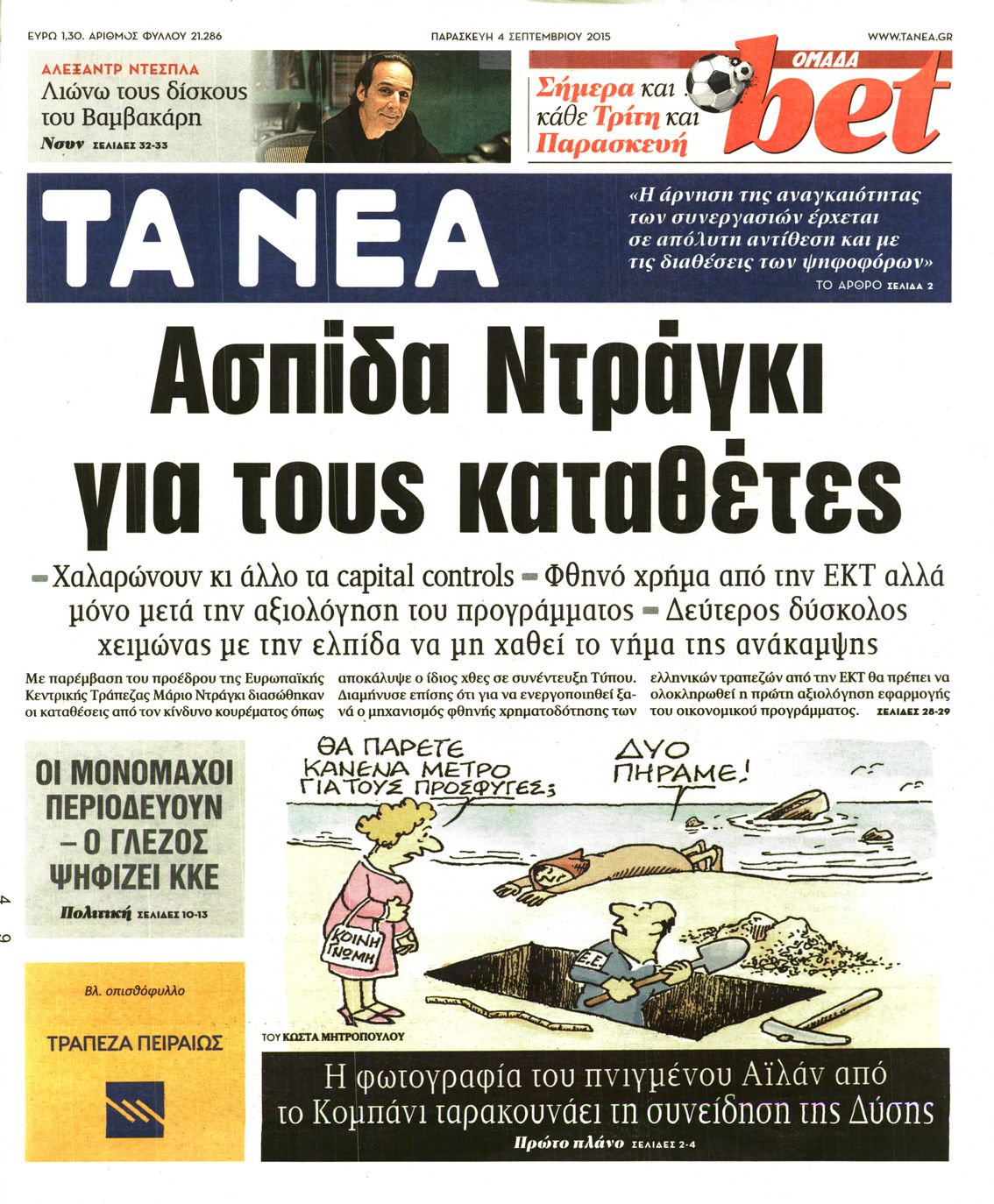Οι πολιτικές εφημερίδες 4/9/2015 Enikos Newsroom 08:37, Παρασκευή 04 Σεπτεμβρίου 2015 Media Διαβάστε τα πρωτοσέλιδα των πολιτικών εφημερίδων: ΕΦΗΜΕΡΙΔΕΣ ΠΟΛΙΤΙΚΕΣ ΕΦΗΜΕΡΙΔΕΣ Μοιράσου το: σχολίασε κι εσύ (0 σχόλια) Ακολουθήστε το enikos.gr στο Google News και μάθετε πρώτοι όλες τις ειδήσεις Δείτε όλες τις τελευταίες ειδήσεις από την Ελλάδα και τον Κόσμο στο enikos.gr Ειδήσεις Ροή Ειδήσεων 9 ώρες πριν Χριστούγεννα στα μπλόκα: Επιμένουν στις κινητοποιήσεις τους οι αγρότες – Ανοίγουν τα διόδια το Σαββατοκύριακο 1 ώρα πριν Σαρωτικοί οι έλεγχοι στους δρόμους ενόψει εορτών – Μπλόκα της τροχαίας σε κεντρικές αρτηρίες της Αττικής 8 ώρες πριν Πούτιν: Τα μηνύματα σε Ευρώπη και ΝΑΤΟ από το μαραθώνιο «σόου» του – Η απαίτηση για «σεβασμό» και η ειρήνη «με τους όρους» της Μόσχας 7 ώρες πριν ΗΠΑ: Η κυβέρνηση του Ντόναλντ Τραμπ άρχισε να δημοσιοποιεί τα αρχεία Έπσταϊν 8 ώρες πριν Άνω Λιόσια: Πυροβολισμοί σε επιχείρηση με χαλιά – Εντοπίστηκαν 10 κάλυκες 1 ώρα πριν Αυγά: Πόσα μπορείτε να τρώτε την ημέρα με ασφάλεια για μέγιστη πρόσληψη πρωτεΐνης 2 ώρες πριν Τα ζώδια σήμερα, Σάββατο 20 Δεκεμβρίου: Παρθένοι, το σύμπαν σας δίνει το κλειδί 8 ώρες πριν Ανακαλύφθηκαν αρχαία χρυσά νομίσματα 2.200 ετών που απεικονίζουν τον θεό Απόλλωνα – Η άγνωστη σύνδεση με τον Φίλιππο Β΄ της Μακεδονίας 1 ώρα πριν Οπτική ψευδαίσθηση: Μόνο αν είσαι ο Σέρλοκ Χολμς θα βρεις τον αριθμό «87» σε 7 δευτερόλεπτα 6 λεπτά πριν Εορτολόγιο: Ποιοι γιορτάζουν σήμερα 20 Δεκεμβρίου 14 λεπτά πριν Συρία: Μπαράζ αμερικανικών επιδρομών εναντίον του ISIS – «Πλήττουμε δυνατά οχυρά του ΙΚ» λέει ο Ντόναλντ Τραμπ 22 λεπτά πριν Αναβολή συμφωνίας ΕΕ-Mercosur: Ο χρόνος «δεν είναι απεριόριστος» προειδοποιεί η Παραγουάη 37 λεπτά πριν Κίριλ Ντμίτριεφ: Στις ΗΠΑ ο απεσταλμένος της Ρωσίας για συνομιλίες με τους ομολόγους του, Γουίτκοφ και Κούσνερ 45 λεπτά πριν ΔΕΔΔΗΕ: Διακοπές ρεύματος σήμερα (20/12) στην Αθήνα και σε άλλες 7 περιοχές της Αττικής ENIKOS NETWORK Πρέπει να αποδέχεστε ή να απορρίπτετε όλα τα cookies; Ένας ειδικός εξηγεί Η αγαπημένη λιχουδιά των πόνι που μπορεί να ενισχύσει όραση, εγκέφαλο και ανοσοποιητικό Αναστολή μέτρων αναγκαστικής εκτέλεσης για κτηνοτρόφους που πλήττονται από την ευλογιά των αιγοπροβάτων Πλήρης επάρκεια προϊόντων στις λαϊκές της Αττικής, παρά τις αγροτικές κινητοποιήσεις – Τι απαντούν οι πωλητές Χαρτογραφώντας το «σημείο χωρίς επιστροφή»: Για πρώτη φορά αποκαλύπτεται με λεπτομέρεια το ακανθώδες όριο της ατμόσφαιρας τ... Η Google καταργεί τη λειτουργία «dark web report» – Πώς θα μπορούν οι χρήστες να διαγράφουν τα δεδομένα τους περισσότερα 05:48 , Σάββατο 20 Δεκεμβρίου 2025 Οι οικονομικές εφημερίδες 20/12/2025 Διαβάστε τα πρωτοσέλιδα από τις οικονομικές εφημερίδες, σήμερα 20/12/2025. 05:43 , Σάββατο 20 Δεκεμβρίου 2025 Οι αθλητικές εφημερίδες 20/12/2025 Διαβάστε τα πρωτοσέλιδα από τις αθλητικές εφημερίδες, σήμερα 20/12/2025. 05:38 , Σάββατο 20 Δεκεμβρίου 2025 Οι πολιτικές εφημερίδες 20/12/2025 Διαβάστε τα πρωτοσέλιδα από τις πολιτικές εφημερίδες, σήμερα 20/12/2025. 04:20 , Σάββατο 20 Δεκεμβρίου 2025 Αγγελική Νικολούλη: Τα συλλυπητήρια για την απώλεια της Ειρήνης Μαρινάκη Τα συλληπητήρια στον πρόεδρο του Mega, τον Βαγγέλη Μαρινάκη, για την απώλεια της μητέρας του Ε... ΤΕΛΕΥΤΑΙΕΣ ΕΙΔΗΣΕΙΣ 6 λεπτά πριν Εορτολόγιο: Ποιοι γιορτάζουν σήμερα 20 Δεκεμβρίου 14 λεπτά πριν Συρία: Μπαράζ αμερικανικών επιδρομών εναντίον του ISIS... 22 λεπτά πριν Αναβολή συμφωνίας ΕΕ-Mercosur: Ο χρόνος «δεν είναι... 37 λεπτά πριν Κίριλ Ντ