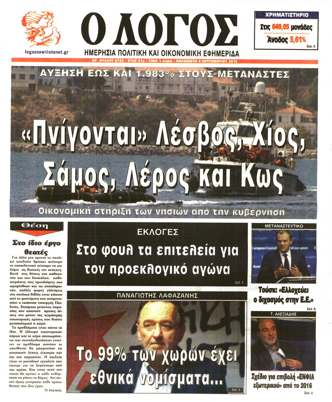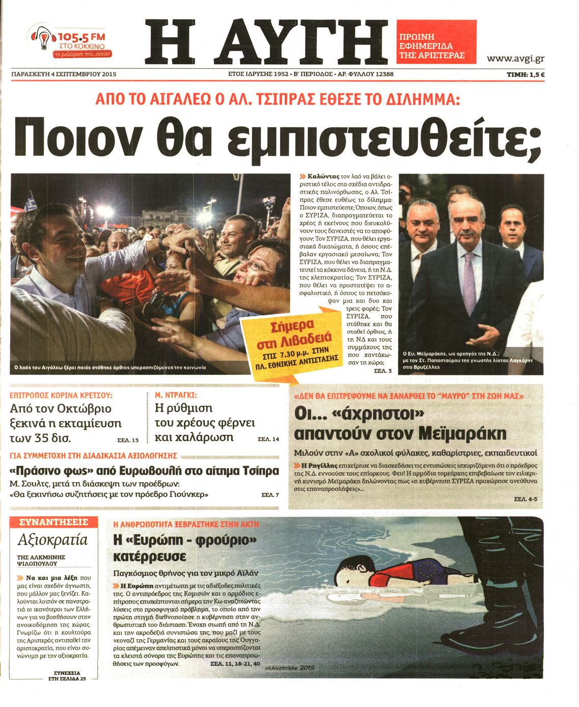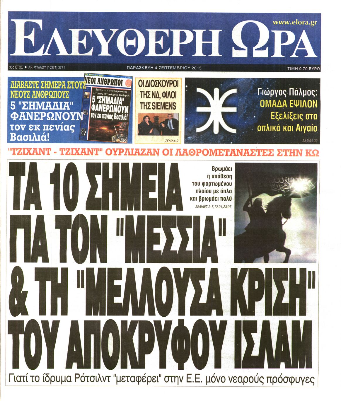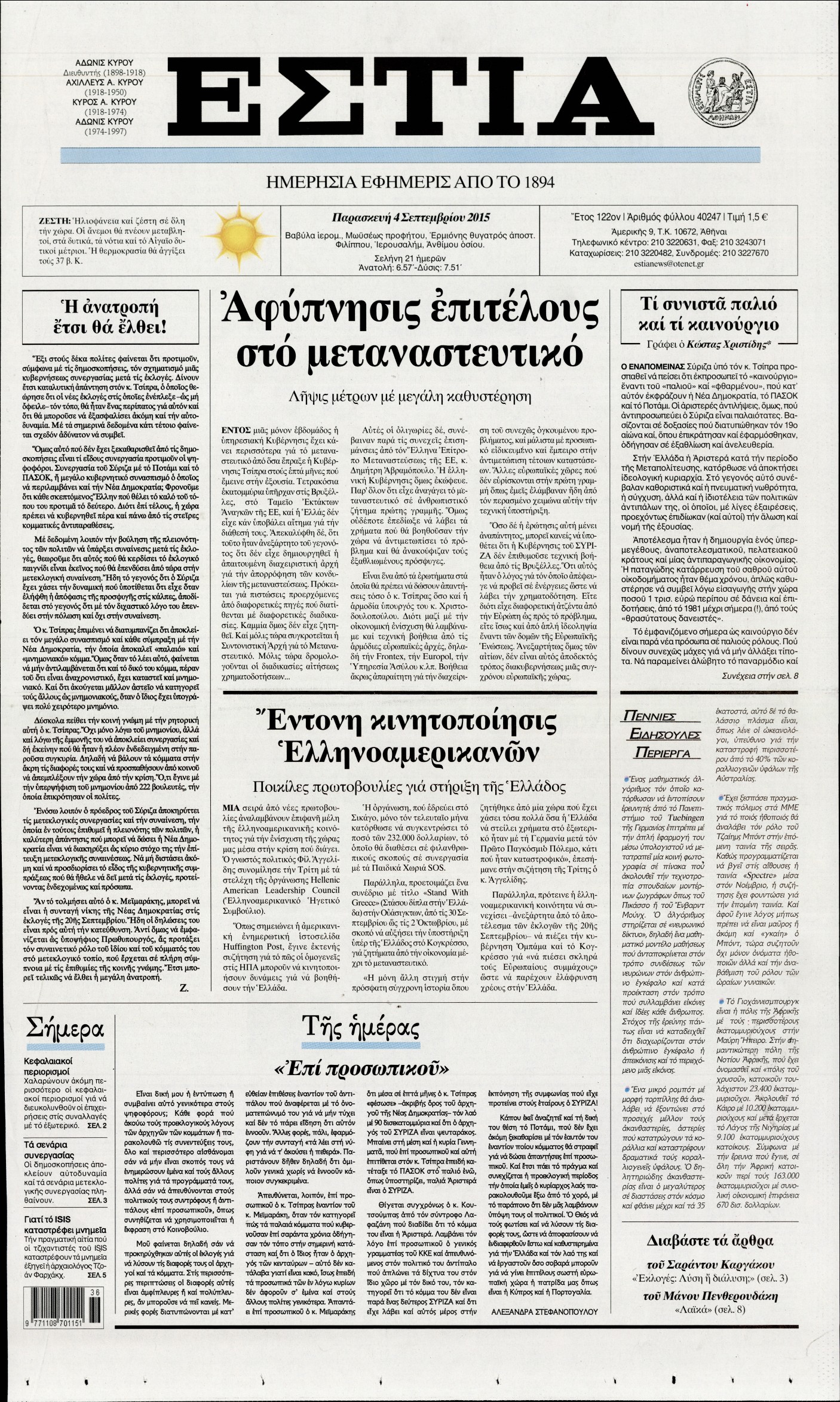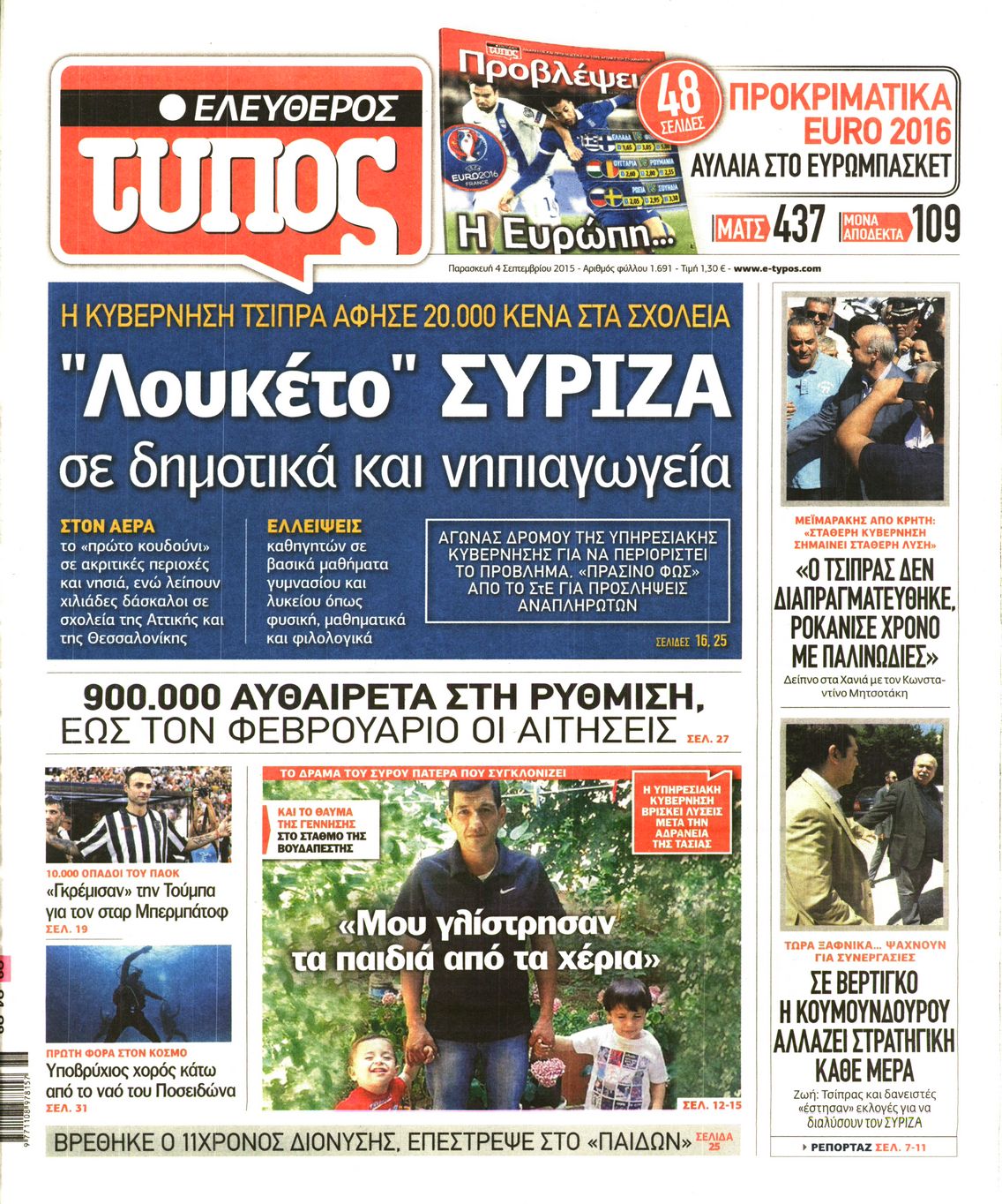 Οι πολιτικές εφημερίδες 4/9/2015 Enikos Newsroom 08:37, Παρασκευή 04 Σεπτεμβρίου 2015 Media Διαβάστε τα πρωτοσέλιδα των πολιτικών εφημερίδων: ΕΦΗΜΕΡΙΔΕΣ ΠΟΛΙΤΙΚΕΣ ΕΦΗΜΕΡΙΔΕΣ Μοιράσου το: σχολίασε κι εσύ (0 σχόλια) Ακολουθήστε το enikos.gr στο Google News και μάθετε πρώτοι όλες τις ειδήσεις Δείτε όλες τις τελευταίες ειδήσεις από την Ελλάδα και τον Κόσμο στο enikos.gr Ειδήσεις Ροή Ειδήσεων 9 ώρες πριν Χριστούγεννα στα μπλόκα: Επιμένουν στις κινητοποιήσεις τους οι αγρότες – Ανοίγουν τα διόδια το Σαββατοκύριακο 1 ώρα πριν Σαρωτικοί οι έλεγχοι στους δρόμους ενόψει εορτών – Μπλόκα της τροχαίας σε κεντρικές αρτηρίες της Αττικής 8 ώρες πριν Πούτιν: Τα μηνύματα σε Ευρώπη και ΝΑΤΟ από το μαραθώνιο «σόου» του – Η απαίτηση για «σεβασμό» και η ειρήνη «με τους όρους» της Μόσχας 7 ώρες πριν ΗΠΑ: Η κυβέρνηση του Ντόναλντ Τραμπ άρχισε να δημοσιοποιεί τα αρχεία Έπσταϊν 8 ώρες πριν Άνω Λιόσια: Πυροβολισμοί σε επιχείρηση με χαλιά – Εντοπίστηκαν 10 κάλυκες 1 ώρα πριν Αυγά: Πόσα μπορείτε να τρώτε την ημέρα με ασφάλεια για μέγιστη πρόσληψη πρωτεΐνης 2 ώρες πριν Τα ζώδια σήμερα, Σάββατο 20 Δεκεμβρίου: Παρθένοι, το σύμπαν σας δίνει το κλειδί 8 ώρες πριν Ανακαλύφθηκαν αρχαία χρυσά νομίσματα 2.200 ετών που απεικονίζουν τον θεό Απόλλωνα – Η άγνωστη σύνδεση με τον Φίλιππο Β΄ της Μακεδονίας 1 ώρα πριν Οπτική ψευδαίσθηση: Μόνο αν είσαι ο Σέρλοκ Χολμς θα βρεις τον αριθμό «87» σε 7 δευτερόλεπτα 6 λεπτά πριν Εορτολόγιο: Ποιοι γιορτάζουν σήμερα 20 Δεκεμβρίου 14 λεπτά πριν Συρία: Μπαράζ αμερικανικών επιδρομών εναντίον του ISIS – «Πλήττουμε δυνατά οχυρά του ΙΚ» λέει ο Ντόναλντ Τραμπ 22 λεπτά πριν Αναβολή συμφωνίας ΕΕ-Mercosur: Ο χρόνος «δεν είναι απεριόριστος» προειδοποιεί η Παραγουάη 37 λεπτά πριν Κίριλ Ντμίτριεφ: Στις ΗΠΑ ο απεσταλμένος της Ρωσίας για συνομιλίες με τους ομολόγους του, Γουίτκοφ και Κούσνερ 45 λεπτά πριν ΔΕΔΔΗΕ: Διακοπές ρεύματος σήμερα (20/12) στην Αθήνα και σε άλλες 7 περιοχές της Αττικής ENIKOS NETWORK Πρέπει να αποδέχεστε ή να απορρίπτετε όλα τα cookies; Ένας ειδικός εξηγεί Η αγαπημένη λιχουδιά των πόνι που μπορεί να ενισχύσει όραση, εγκέφαλο και ανοσοποιητικό Αναστολή μέτρων αναγκαστικής εκτέλεσης για κτηνοτρόφους που πλήττονται από την ευλογιά των αιγοπροβάτων Πλήρης επάρκεια προϊόντων στις λαϊκές της Αττικής, παρά τις αγροτικές κινητοποιήσεις – Τι απαντούν οι πωλητές Χαρτογραφώντας το «σημείο χωρίς επιστροφή»: Για πρώτη φορά αποκαλύπτεται με λεπτομέρεια το ακανθώδες όριο της ατμόσφαιρας τ... Η Google καταργεί τη λειτουργία «dark web report» – Πώς θα μπορούν οι χρήστες να διαγράφουν τα δεδομένα τους περισσότερα 05:48 , Σάββατο 20 Δεκεμβρίου 2025 Οι οικονομικές εφημερίδες 20/12/2025 Διαβάστε τα πρωτοσέλιδα από τις οικονομικές εφημερίδες, σήμερα 20/12/2025. 05:43 , Σάββατο 20 Δεκεμβρίου 2025 Οι αθλητικές εφημερίδες 20/12/2025 Διαβάστε τα πρωτοσέλιδα από τις αθλητικές εφημερίδες, σήμερα 20/12/2025. 05:38 , Σάββατο 20 Δεκεμβρίου 2025 Οι πολιτικές εφημερίδες 20/12/2025 Διαβάστε τα πρωτοσέλιδα από τις πολιτικές εφημερίδες, σήμερα 20/12/2025. 04:20 , Σάββατο 20 Δεκεμβρίου 2025 Αγγελική Νικολούλη: Τα συλλυπητήρια για την απώλεια της Ειρήνης Μαρινάκη Τα συλληπητήρια στον πρόεδρο του Mega, τον Βαγγέλη Μαρινάκη, για την απώλεια της μητέρας του Ε... ΤΕΛΕΥΤΑΙΕΣ ΕΙΔΗΣΕΙΣ 6 λεπτά πριν Εορτολόγιο: Ποιοι γιορτάζουν σήμερα 20 Δεκεμβρίου 14 λεπτά πριν Συρία: Μπαράζ αμερικανικών επιδρομών εναντίον του ISIS... 22 λεπτά πριν Αναβολή συμφωνίας ΕΕ-Mercosur: Ο χρόνος «δεν είναι... 37 λεπτά πριν Κίριλ Ντ