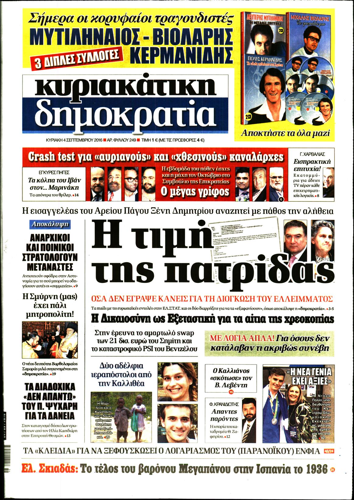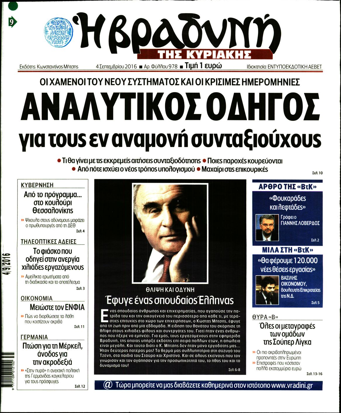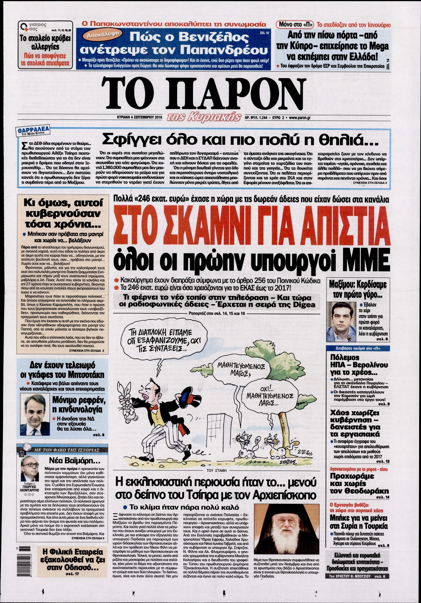 Oι πολιτικές εφημερίδες 4/9/2016 Enikos Newsroom 04:19, Κυριακή 04 Σεπτεμβρίου 2016 Media Διαβάστε τα σημερινά πρωτοσέλιδα των πολιτικών εφημερίδων: ΠΟΛΙΤΙΚΕΣ ΕΦΗΜΕΡΙΔΕΣ ΠΡΩΤΟΣΕΛΙΔΑ Μοιράσου το: σχολίασε κι εσύ (0 σχόλια) Ακολουθήστε το enikos.gr στο Google News και μάθετε πρώτοι όλες τις ειδήσεις Δείτε όλες τις τελευταίες ειδήσεις από την Ελλάδα και τον Κόσμο στο enikos.gr Ειδήσεις Ροή Ειδήσεων 1 ώρα πριν Μπλόκα: Οι αγρότες σηκώνουν τις μπάρες σε διόδια για τους εκδρομείς των Χριστουγέννων και μοιράζουν προϊόντα – Βίντεο 2 ώρες πριν Τσιάρας προς αγρότες: Τα μπλόκα και τα πείσματα δεν ωφελούν – Οι λύσεις περνούν μέσα από τον διάλογο 3 ώρες πριν Αρχεία Έπσταϊν: Οι συγκλονιστικές φωτογραφίες – Ο Μάικλ Τζάκσον, ο Μικ Τζάγκερ και ο Κέβιν Σπέισι ανάμεσα στους διάσημους που απεικονίζονται 35 λεπτά πριν Μαθητές διακινούσαν κοκαΐνη και χασίς σε σχολείο της Αττικής – 12 συλλήψεις 3 ώρες πριν Ινδία: Επτά ελέφαντες σκοτώθηκαν κατά τη σύγκρουση επιβατικού τρένου με κοπάδι 5 ώρες πριν Μία νέα «χρυσή» περίοδος αρχίζει για 3 ζώδια από σήμερα – «Μία αναπάντεχη ευκαιρία οδηγεί στην επιτυχία» 6 ώρες πριν Αγχώνεται για το χριστουγεννιάτικο δώρο που πήρε στην πλούσια σύντροφό του – «Φοβάμαι πως θα το βρει φθηνιάρικο, φοράει βραχιόλια Cartier» 3 ώρες πριν Διαιτολόγος αποκαλύπτει 9 πρωινές συνήθειες που «λιώνουν» το κοιλιακό λίπος – «Υποστηρίζουν την υγιεινή απώλεια βάρους» 4 ώρες πριν Οι 7 φράσεις που δεν λένε ποτέ οι συναισθηματικά έξυπνοι άνθρωποι κατά τη διάρκεια ενός καβγά 6 λεπτά πριν Μία ανεκμετάλλευτη πηγή θα μπορούσε να προσφέρει ανεξάντλητη ενέργεια – Οι επιστήμονες ίσως γνωρίζουν πώς να την ξεκλειδώσουν 15 λεπτά πριν Θεσσαλονίκη: Ανήλικος που είχε εξαφανιστεί βρέθηκε στο σπίτι Τούρκων μετά από αστυνομική επιχείρηση 24 λεπτά πριν Ιταλία: 384 συλλήψεις και κατάσχεση 1,4 τόνων ναρκωτικών σε μεγάλη αστυνομική επιχείρηση 32 λεπτά πριν Γερμανού για Μαζωνάκη: «Η σχέση μας μετράει 30 χρόνια – Σαφώς και έχω άποψη» 35 λεπτά πριν Μαθητές διακινούσαν κοκαΐνη και χασίς σε σχολείο της Αττικής – 12 συλλήψεις ENIKOS NETWORK Η αποχή από την αναπαραγωγή παρατείνει τη ζωή στα ζώα, σύμφωνα με μελέτη – Τι ισχύει για τους ανθρώπους; Σημαντικές επαφές στις ΗΠΑ είχε ο υπουργός Υγείας Άδωνις Γεωργιάδης Τσιάρας προς αγρότες: Έχει ικανοποιηθεί το 74% των αιτημάτων – Τα μπλόκα και τα πείσματα δεν ωφελούν MyHealth App: Τα στοιχεία για τον Προσωπικό Βοηθό Υγείας Πολίτη – Τι ερωτήματα έγιναν μέσα σε 7 ημέρες Χαρτογραφώντας το «σημείο χωρίς επιστροφή»: Για πρώτη φορά αποκαλύπτεται με λεπτομέρεια το ακανθώδες όριο της ατμόσφαιρας τ... Η Google καταργεί τη λειτουργία «dark web report» – Πώς θα μπορούν οι χρήστες να διαγράφουν τα δεδομένα τους περισσότερα 14:04 , Σάββατο 20 Δεκεμβρίου 2025 Η Realnews αυτής της Κυριακής (21/12/2025) Με τίτλο: «Ασπίδα προστασίας για την Ελλάδα» κυκλοφορεί, αυτήν την Κυριακή, η Realnews. Σημαντ... 12:53 , Σάββατο 20 Δεκεμβρίου 2025 Να μ’ αγαπάς: Το παρελθόν έρχεται στο φως – Καταιγιστικές εξελίξεις στα τελευταία επεισόδια του 2025 Ο Άγγελος αποκαλύπτεται, η Φωτεινή ανησυχεί για τον Λευτέρη και η Ζωή έρχεται αντιμέτωπη με το... 11:41 , Σάββατο 20 Δεκεμβρίου 2025 «Η αγάπη δεν χάνεται ποτέ»: Η μικρού μήκους ταινία κινουμένων σχεδίων που θέτει ερωτήματα για τη ζωή και τον θάνατο Ο θάνατος είναι ένα από τα πιο σκληρά θέματα που καλείται να διαχειριστεί κάποιος στη διάρκεια... 09:30 , Σάββατο 20 Δεκεμβρίου 2025 «Porto Leone: Στη γειτονιά με τα κόκκινα φανάρια» – Ο