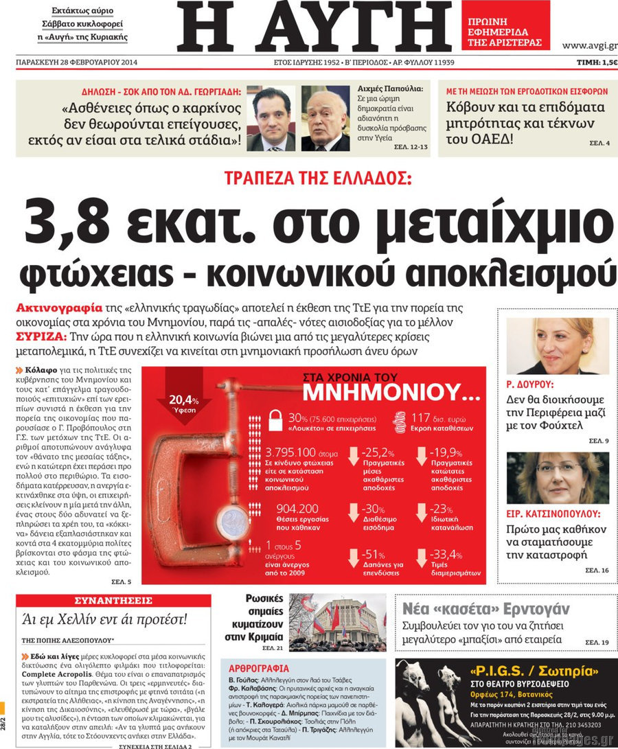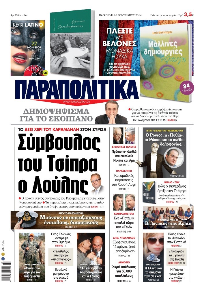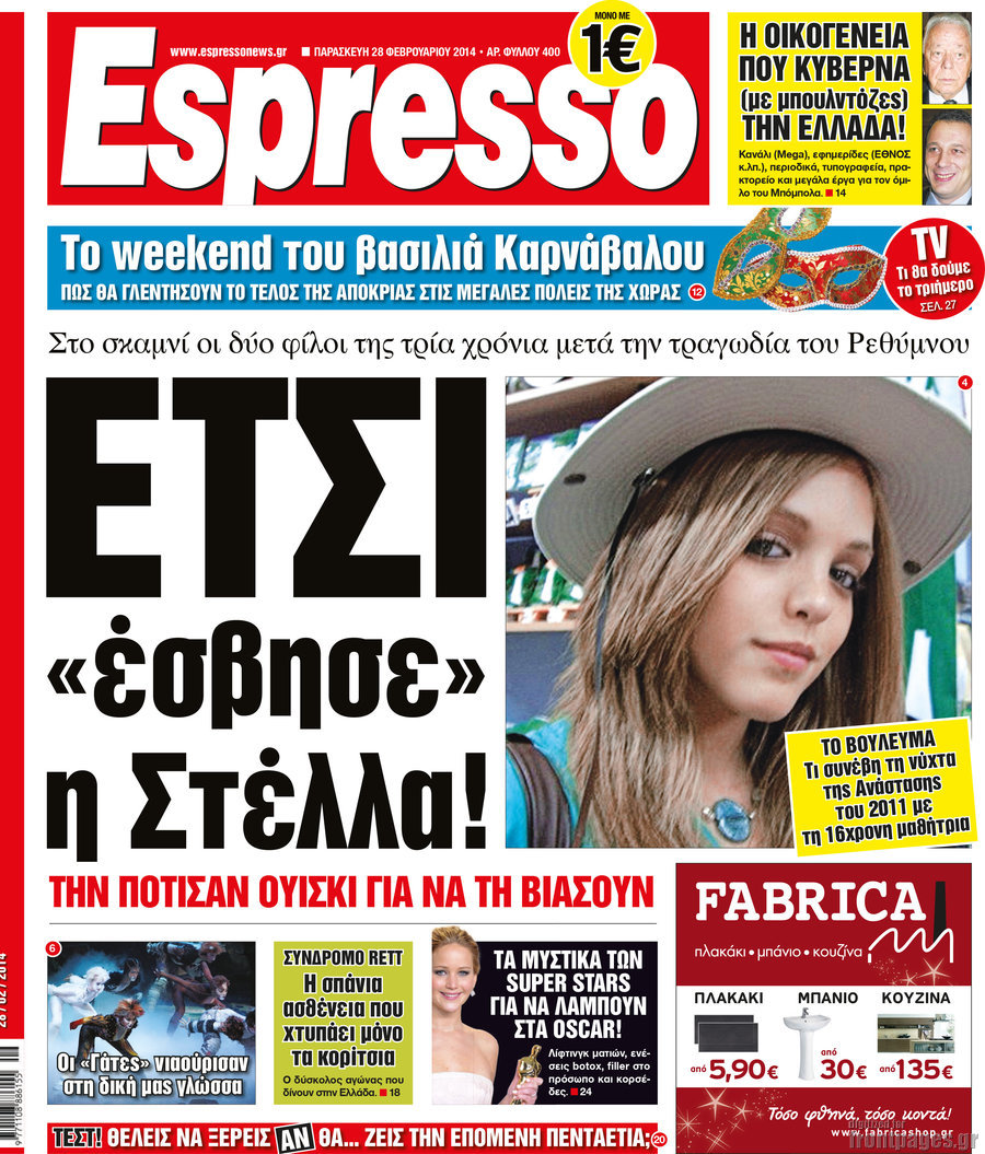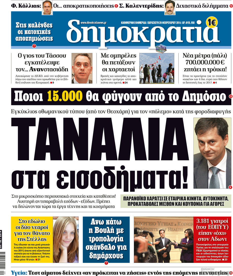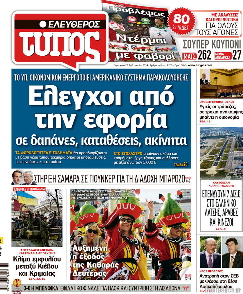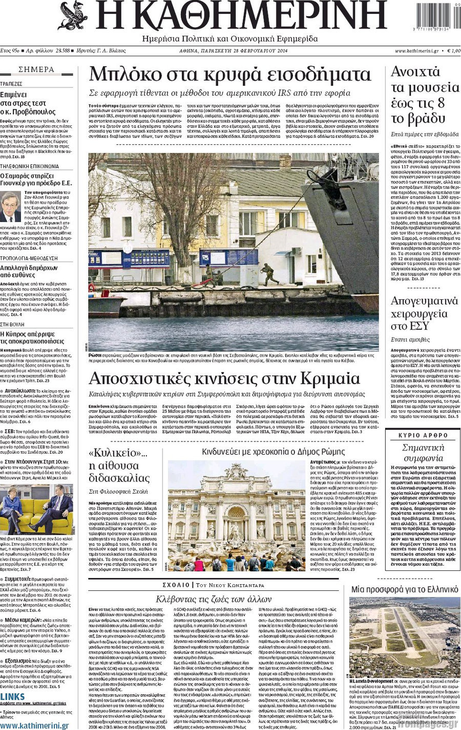 Οι πολιτικές εφημερίδες Enikos Newsroom 08:38, Παρασκευή 28 Φεβρουαρίου 2014 Media Οι πολιτικές εφημερίδες Διαβάστε τα πρωτοσέλιδα των πολιτικών εφημερίδων: ΕΦΗΜΕΡΙΔΕΣ ΠΟΛΙΤΙΚΕΣ ΕΦΗΜΕΡΙΔΕΣ ΠΡΩΤΟΣΕΛΙΔΑ Μοιράσου το: σχολίασε κι εσύ (0 σχόλια) Ακολουθήστε το enikos.gr στο Google News και μάθετε πρώτοι όλες τις ειδήσεις Δείτε όλες τις τελευταίες ειδήσεις από την Ελλάδα και τον Κόσμο στο enikos.gr Ειδήσεις Ροή Ειδήσεων 4 ώρες πριν Πώς δρούσε το κύκλωμα που διακινούσε ναρκωτικά σε σχολεία – Υπέβαλαν σε βασανιστήρια όσους δεν τηρούσαν τους «κανόνες πειθαρχίας» 4 ώρες πριν Αγρότες: Γιορτές στα μπλόκα με ανοιχτά διόδια – Δικογραφία στα Ιωάννινα για το σήκωμα των μπαρών 3 ώρες πριν Ζελένσκι: Οι Αμερικανοί πρότειναν συνάντηση Ουκρανίας, ΗΠΑ, Ρωσίας στο Μαϊάμι 2 ώρες πριν Τραμπ: Πώς περνάει τις γιορτές των Χριστουγέννων – Τα δώρα που κάνει στα εγγόνια του 3 ώρες πριν Μικαέλα Μπέντχαους: Ο πρώτος άνθρωπος σε αναπηρικό αμαξίδιο που ταξίδεψε στο διάστημα – ΒΙΝΤΕΟ 4 ώρες πριν Η τύχη χαμογελά σε 3 ζώδια έως τις 28 Δεκεμβρίου – «Προσέξτε τις επιλογές σας και η επιμονή σας θα ανταμειφθεί» 5 ώρες πριν Μία ανεκμετάλλευτη πηγή θα μπορούσε να προσφέρει ανεξάντλητη ενέργεια – Οι επιστήμονες ίσως γνωρίζουν πώς να την ξεκλειδώσουν 1 ώρα πριν Μήπως οι γιορτές σας δεν είναι τόσο τέλειες; 7 χριστουγεννιάτικες συνήθειες που μαρτυρούν ότι μια οικογένεια είναι δυσλειτουργική 11 ώρες πριν Enerwave: Το νέο «ρεύμα» στη λιανική ενέργειας που αλλάζει την εμπειρία του καταναλωτή 9 λεπτά πριν Πέθανε η σπουδαία αρχαιολόγος Λίλα Μαραγκού – 20 λεπτά πριν Πώς να απαλλαγείτε από τη μυρωδιά του τηγανητού φαγητού: Το μυστικό βρίσκεται στην κουζίνα σας 25 λεπτά πριν Βλαχοδήμος: «Νιώθω καλά που είμαι σημαντικός για τη Σεβίλλη» – Τι είπε για τη Ρεάλ Μαδρίτης και τον Μπαπέ 34 λεπτά πριν Πρίγκιπας Ουίλιαμ: Μαγείρεψε παρέα με τον πρίγκιπα Τζορτζ για τους αστέγους – ΦΩΤΟ και ΒΙΝΤΕΟ 43 λεπτά πριν Επιχείρηση της Τροχαίας κατά της παράνομης στάθμευσης στο Νέο Ψυχικό – Τέσσερις συλλήψεις ENIKOS NETWORK Οι γυναίκες αποκαλύπτουν το πιο ελκυστικό πράγμα που μπορεί να κάνει ένας άνδρας Ομορφιά και αντιγήρανση: Ειδικοί μιλούν για συσκευές περιποίησης του δέρματος Θεοδωρικάκος: Εθνική στρατηγική για τους ημιαγωγούς – Πρώτο βήμα η χρηματοδότηση του πρώτου Κέντρου Ικανοτήτων, με 3,63 εκα... Επίδομα θέρμανσης: Μπαίνει η πρώτη δόση την Τρίτη – Οι επόμενες πληρωμές Χαρτογραφώντας το «σημείο χωρίς επιστροφή»: Για πρώτη φορά αποκαλύπτεται με λεπτομέρεια το ακανθώδες όριο της ατμόσφαιρας τ... Η Google καταργεί τη λειτουργία «dark web report» – Πώς θα μπορούν οι χρήστες να διαγράφουν τα δεδομένα τους περισσότερα 18:19 , Σάββατο 20 Δεκεμβρίου 2025 HOTΕΛ ΕΛVIRA: Η Ελβίρα μαθαίνει πως ο Χάρι μένει κρυφά στο ξενοδοχείο του Παντελή Συνεχίζονται οι εκλογές για πρόεδρο, στο νέο επεισόδιο της κωμικής σειράς του MEGA, HOTΕΛ ΕΛVI... 14:04 , Σάββατο 20 Δεκεμβρίου 2025 Η Realnews αυτής της Κυριακής (21/12/2025) Με τίτλο: «Ασπίδα προστασίας για την Ελλάδα» κυκλοφορεί, αυτήν την Κυριακή, η Realnews. Σημαντ... 12:53 , Σάββατο 20 Δεκεμβρίου 2025 Να μ’ αγαπάς: Το παρελθόν έρχεται στο φως – Καταιγιστικές εξελίξεις στα τελευταία επεισόδια του 2025 Ο Άγγελος αποκαλύπτεται, η Φωτεινή ανησυχεί για τον Λευτέρη και η Ζωή έρχεται αντιμέτωπη με το... 11:41 , Σάββατο 20 Δεκεμβρίου 2025 «Η αγάπη δεν χάνεται ποτέ»: Η μικρού μήκους ταινία κινουμένων σχεδίων που θέτει ερωτήματα για τη ζωή και τον θάνατο Ο θάνατος είναι ένα από τα πιο 