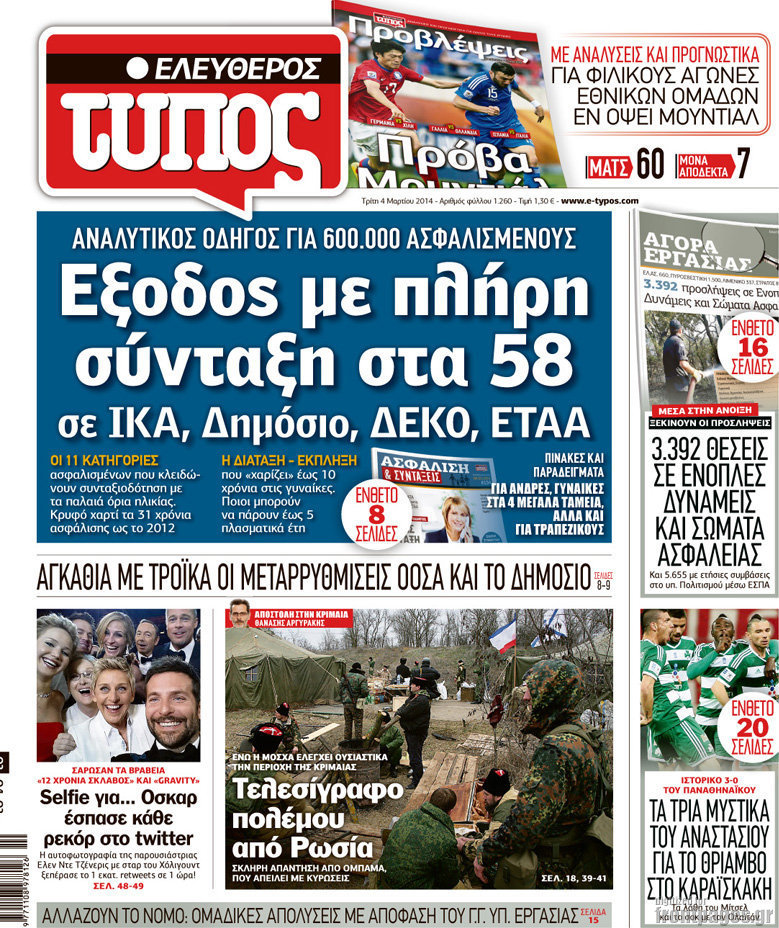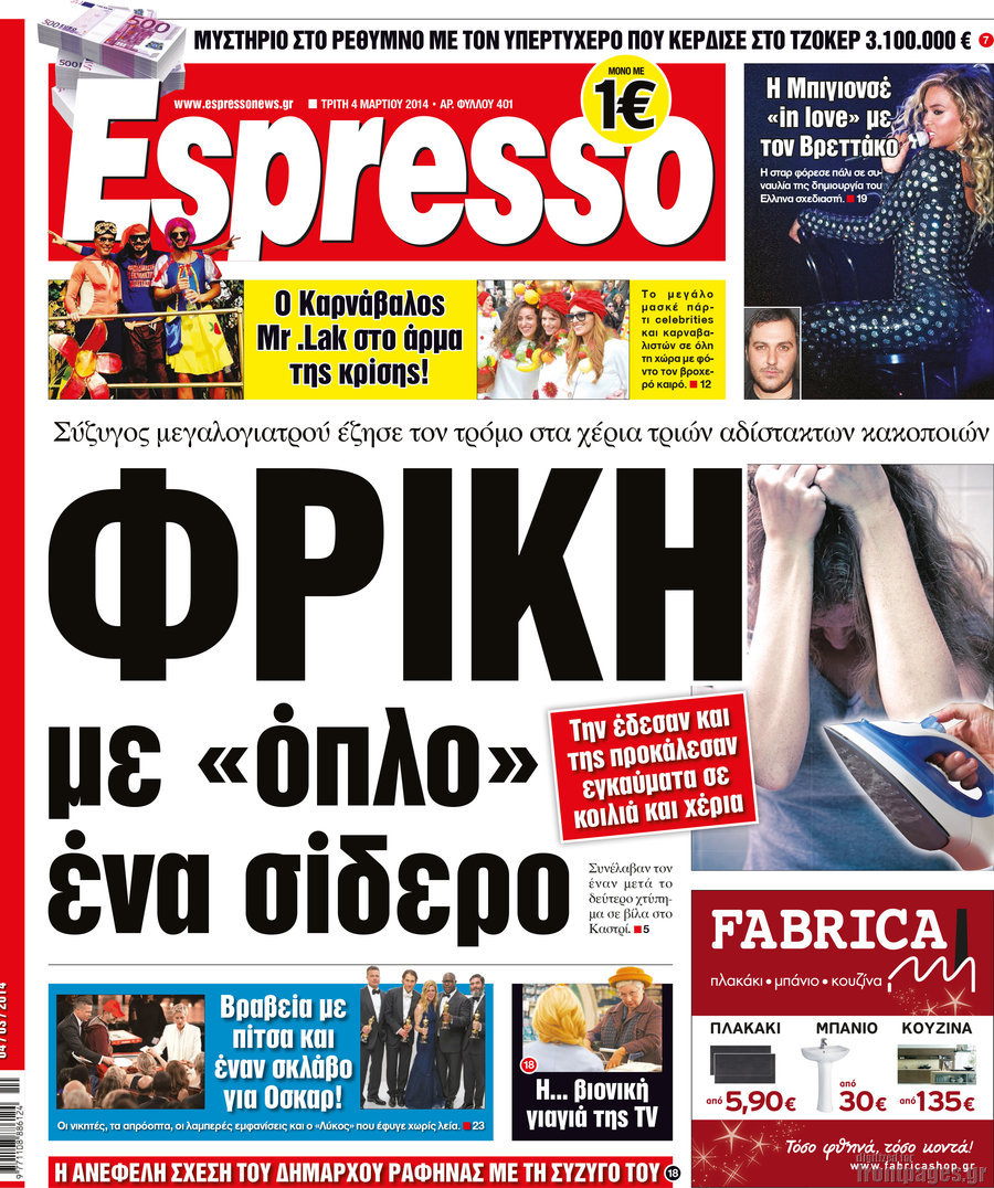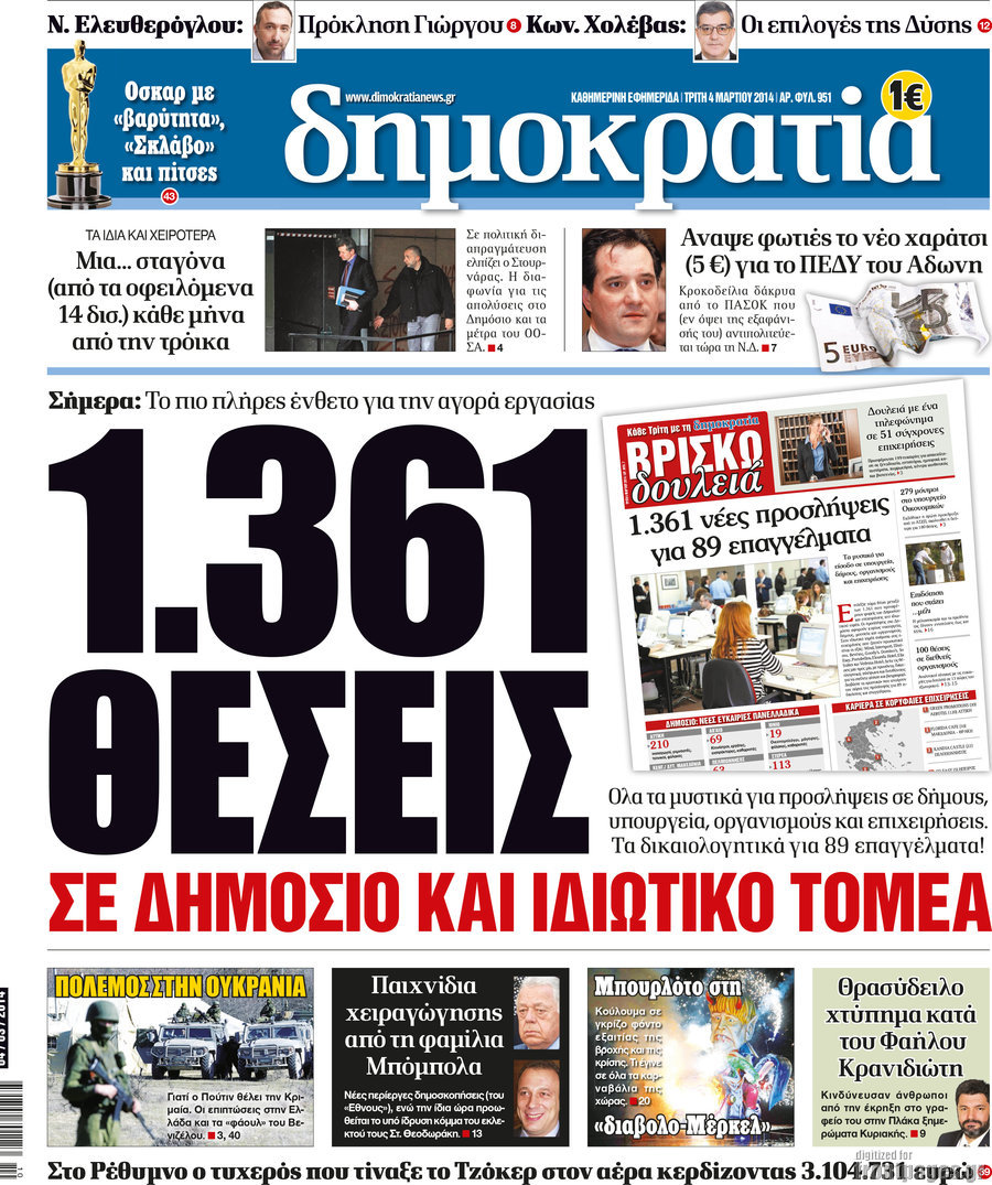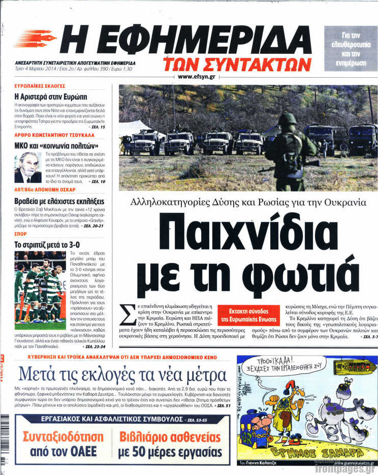 Οι πολιτικές εφημερίδες Enikos Newsroom 08:35, Τρίτη 04 Μαρτίου 2014 Media Οι πολιτικές εφημερίδες Διαβάστε τα πρωτοσέλιδα των πολιτικών εφημερίδων: ΕΦΗΜΕΡΙΔΕΣ ΠΟΛΙΤΙΚΕΣ ΕΦΗΜΕΡΙΔΕΣ Μοιράσου το: σχολίασε κι εσύ (0 σχόλια) Ακολουθήστε το enikos.gr στο Google News και μάθετε πρώτοι όλες τις ειδήσεις Δείτε όλες τις τελευταίες ειδήσεις από την Ελλάδα και τον Κόσμο στο enikos.gr Ειδήσεις Ροή Ειδήσεων 52 λεπτά πριν Χριστούγεννα στα μπλόκα: Επιμένουν στις κινητοποιήσεις τους οι αγρότες – Ανοίγουν τα διόδια το Σαββατοκύριακο 1 ώρα πριν Ουκρανία: Η άνευ προηγουμένου επίθεση σε ρωσικό τάνκερ στη Μεσόγειο και το μήνυμα προς στον Πούτιν – Το «μακρύ χέρι» του Κιέβου 29 λεπτά πριν Πούτιν: Τα μηνύματα σε Ευρώπη και ΝΑΤΟ από το μαραθώνιο «σόου» του – Η απαίτηση για «σεβασμό» και η ειρήνη «με τους όρους» της Μόσχας 1 ώρα πριν Τραμπ: Δεν αποκλείει την πιθανότητα ενός πολέμου στη Βενεζουέλα – «Ο Μαδούρο ξέρει καλύτερα από τον καθένα τι ακριβώς θέλω» 2 ώρες πριν Συνεχίζει να προκαλεί ο Μίτσκοσκι: «Για μένα το όνομα Μακεδονία είναι ιερό» 4 ώρες πριν Πούτιν: «Ναι, είμαι ερωτευμένος» – Βίντεο από τη σπάνια προσωπική παραδοχή του 2 ώρες πριν Αριθμολογία: Οι άνθρωποι που έχουν γεννηθεί αυτές τις 4 ημερομηνίες, συχνά παρεξηγούνται – «Η καλοσύνη τους κρύβει τεράστια δύναμη» 1 ώρα πριν Ύπνος: Μια κρυφή κατάσταση του εγκεφάλου πριν από τον ύπνο μπορεί να είναι το “κλειδί” για υψηλή ευφυΐα και δημιουργικότητα 3 ώρες πριν Ξεχάστε το καθάρισμα το Σαββατοκύριακο: Ο «κανόνας των 20 λεπτών» που θα σας λύσει τα χέρια 30 λεπτά πριν Ανακαλύφθηκαν αρχαία χρυσά νομίσματα 2.200 ετών που απεικονίζουν τον θεό Απόλλωνα – Η άγνωστη σύνδεση με τον Φίλιππο Β΄ της Μακεδονίας 14 λεπτά πριν Ολυμπιακός – Βιλερμπάν 107-84: Επιστροφή στις νίκες με… προπόνηση 20 λεπτά πριν Νέος Κόσμος: Συνελήφθη 41χρονος με ένταλμα από την Τουρκία για εμπόριο ναρκωτικών και ληστεία 29 λεπτά πριν Πούτιν: Τα μηνύματα σε Ευρώπη και ΝΑΤΟ από το μαραθώνιο «σόου» του – Η απαίτηση για «σεβασμό» και η ειρήνη «με τους όρους» της Μόσχας 30 λεπτά πριν Ανακαλύφθηκαν αρχαία χρυσά νομίσματα 2.200 ετών που απεικονίζουν τον θεό Απόλλωνα – Η άγνωστη σύνδεση με τον Φίλιππο Β΄ της Μακεδονίας 35 λεπτά πριν Νίκος Ξυλούρης: Συγκινεί η χήρα του σπουδαίου καλλιτέχνη – «Ευχαριστώ όλο τον κόσμο που τον κρατάει ζωντανό 45 χρόνια» ENIKOS NETWORK Το ΕΚΑΒ τιμήθηκε από την Ακαδημία Αθηνών για τα 40 χρόνια προσφοράς του Έχετε πραγματικά μεγάλη καρδιά; 10 χαρακτηριστικά όσων έχουν καλοσύνη Αναστολή μέτρων αναγκαστικής εκτέλεσης για κτηνοτρόφους που πλήττονται από την ευλογιά των αιγοπροβάτων Πλήρης επάρκεια προϊόντων στις λαϊκές της Αττικής, παρά τις αγροτικές κινητοποιήσεις – Τι απαντούν οι πωλητές Χαρτογραφώντας το «σημείο χωρίς επιστροφή»: Για πρώτη φορά αποκαλύπτεται με λεπτομέρεια το ακανθώδες όριο της ατμόσφαιρας τ... Η Google καταργεί τη λειτουργία «dark web report» – Πώς θα μπορούν οι χρήστες να διαγράφουν τα δεδομένα τους περισσότερα 22:42 , Παρασκευή 19 Δεκεμβρίου 2025 Γιώργος Γιαννόπουλος για “Το σόι σου”: “Είναι ευτυχία και ευλογία αυτή η σειρά” «Είναι ευτυχία και ευλογία η συγκυρία αυτής της σειράς», θα πει ο Γιώργος Γιαννόπουλος -ο αγαπ... 20:37 , Παρασκευή 19 Δεκεμβρίου 2025 Don’t Forget The Lyrics: Η Έλλη Κοκκίνου υποδέχεται 4 παίκτες που θα κάνουν τα πάντα για να μη χάσουν ούτε… μισή λέξη από τους στίχους Το «Don’t Forget The Lyrics» επιστρέφει απόψε, Παρασκευή 19 Δεκεμβρίου, στις 21:00 με νέο επει... 19:31 , Παρα