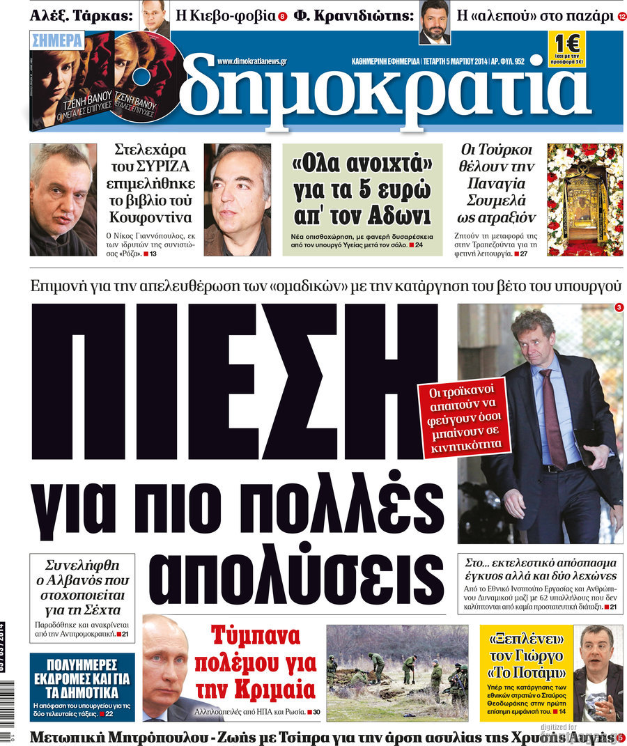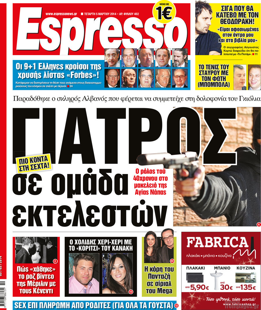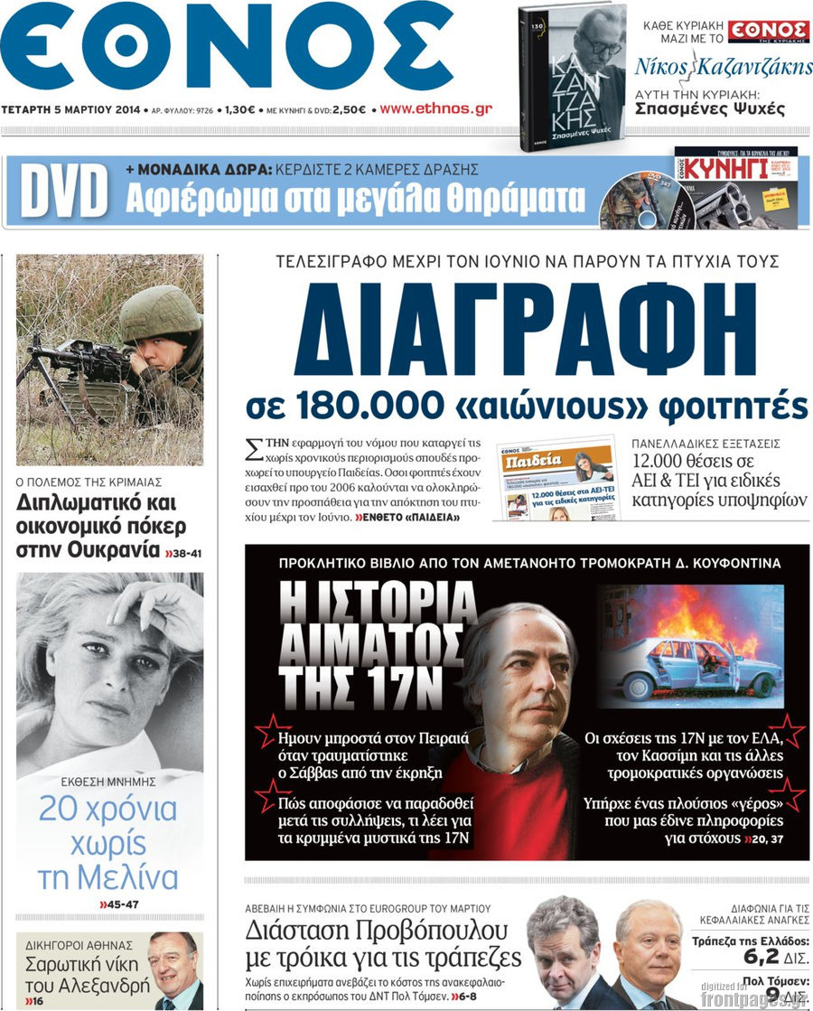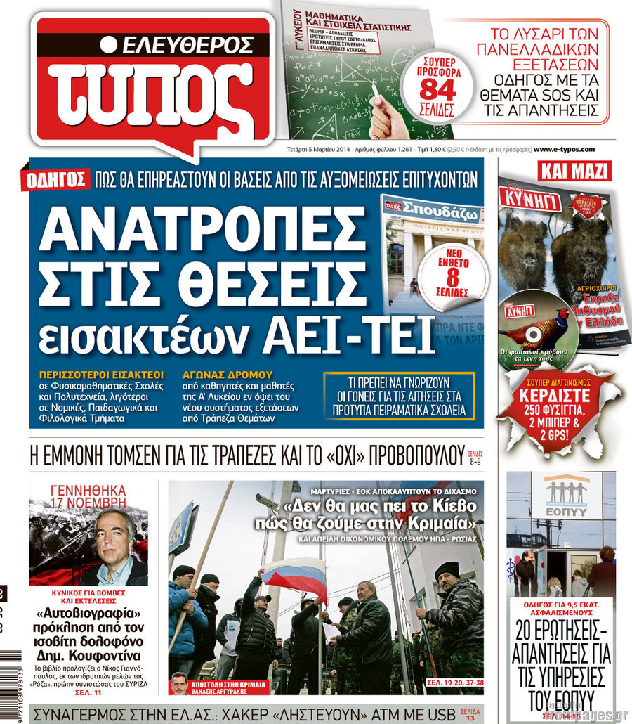 Οι πολιτικές εφημερίδες Enikos Newsroom 08:29, Τετάρτη 05 Μαρτίου 2014 Media Οι πολιτικές εφημερίδες Διαβάστε τα πρωτοσέλιδα των πολιτικών εφημερίδων: ΕΦΗΜΕΡΙΔΕΣ ΠΟΛΙΤΙΚΕΣ ΕΦΗΜΕΡΙΔΕΣ ΠΡΩΤΟΣΕΛΙΔΑ Μοιράσου το: σχολίασε κι εσύ (0 σχόλια) Ακολουθήστε το enikos.gr στο Google News και μάθετε πρώτοι όλες τις ειδήσεις Δείτε όλες τις τελευταίες ειδήσεις από την Ελλάδα και τον Κόσμο στο enikos.gr Ειδήσεις Ροή Ειδήσεων 1 ώρα πριν Ευρωπαϊκή Ένωση: Συμφωνία για δάνειο 90 δισ. ευρώ στην Ουκρανία τη διετία 2026-2027 6 ώρες πριν ΟΠΕΚΕΠΕ: Προφυλακιστέος ο φερόμενος αρχηγός και ο λογιστής της εγκληματικής οργάνωσης 7 ώρες πριν Αυξάνουν την πίεση προς την κυβέρνηση οι αγρότες: Κλείνουν παρακαμπτήριους και ανοίγουν διόδια – Τι θα γίνει τις γιορτές 7 ώρες πριν Φοινικούντα: Το Σάββατο απολογείται ο 30χρονος γιος γνωστού επιχειρηματία της Πλάκας που παραδόθηκε – Όσα είπε στους αστυνομικούς και ο ρόλος του στο έγκλημα 5 ώρες πριν ΑΕΚ – Κραϊόβα 3-2: Επική ανατροπή και πρόκριση στους «16» του Conference League η Ένωση 6 ώρες πριν Αρχαιολόγοι ανακάλυψαν ρωμαϊκά τεχνουργήματα από μια πόλη που δεν υπήρξε ποτέ – Τα τρία εντυπωσιακά κτίρια και ο αμφορέας με τις… σαρδέλες 7 ώρες πριν Ύπνος: Η απλή βραδινή ρουτίνα για να προστατεύσετε τα μαλλιά σας από το κρύο κατά τη διάρκεια του χειμώνα 8 ώρες πριν Manifesting: Πώς να συναντήσετε τον σύντροφο της ζωής σας, ανάλογα με τον μήνα γέννησής σας 2 ημέρες πριν 20 χρόνια τα Χριστούγεννα ξεκινούν στα Public με μεγάλη ποικιλία σε δώρα! 10 λεπτά πριν Αλεξάντερ Λουκασένκο: Η Λευκορωσία βρίσκεται κοντά στην αποκατάσταση των σχέσεών της με τις ΗΠΑ 25 λεπτά πριν Αυστραλία: Κήρυξε την Κυριακή (21/12) ημέρα εθνικού πένθους για τη φονική επίθεση στην παραλία Μπόνταϊ 35 λεπτά πριν Ρόδος: Δάσκαλος καράτε καταδικάστηκε για ασέλγεια σε ανήλικες αθλήτριες – Μαρτυρίες για αγγίγματα σε ευαίσθητα σημεία 50 λεπτά πριν Γουατεμάλα: Εξαρθρώθηκε κύκλωμα διακίνησης μεταναστών προς τις ΗΠΑ – Συνελήφθησαν 14 άτομα 55 λεπτά πριν Βουλγαρία: Χιλιάδες πολίτες στους δρόμους κατά της απερχόμενης κυβέρνησης και της διαφθοράς ENIKOS NETWORK Σε περίοδο αυξημένης δραστηριότητας η γρίπη στην Ελλάδα-Μέτρα προστασίας από τον ΕΟΔΥ Σκέφτεστε συνέχεια συζητήσεις που έχετε κάνει; Τι σημαίνει αυτό, σύμφωνα με ειδικό Στεγαστικό: Τι λέει η ΠΟΜΙΔΑ για τα νέα μέτρα που ανακοίνωσε ο Κυριάκος Μητσοτάκης Λαγκάρντ: Αισιόδοξη για την ανάπτυξη της Ευρωζώνης, αβέβαιη για τον πληθωρισμό Χαρτογραφώντας το «σημείο χωρίς επιστροφή»: Για πρώτη φορά αποκαλύπτεται με λεπτομέρεια το ακανθώδες όριο της ατμόσφαιρας τ... Η Google καταργεί τη λειτουργία «dark web report» – Πώς θα μπορούν οι χρήστες να διαγράφουν τα δεδομένα τους περισσότερα 02:50 , Παρασκευή 19 Δεκεμβρίου 2025 GNTM: «Κλείδωσαν» οι τέσσερις φιναλίστ – Μεγάλη ανατροπή στις τελευταίες αποχωρήσεις Για προτελευταία φορά εμφανίστηκαν στο πλατό του GNTM οι φιναλίστ του φετινού κύκλου, το βράδυ... 17:45 , Πέμπτη 18 Δεκεμβρίου 2025 ROUK ZOUK: Εορταστικό επεισόδιο με καλεσμένους τους πρωταγωνιστές του «Γιατί ρε πατέρα» Το Σάββατο 20 Δεκεμβρίου στις 21:00, η Ζέτα Μακρυπούλια υποδέχεται εκλεκτούς ηθοποιούς που όλο... 17:20 , Πέμπτη 18 Δεκεμβρίου 2025 Άγιος έρωτας: Η Χριστίνα εξομολογείται στον πατέρα Νικόλαο, απόψε στις 21:00 στον Alpha Η Νότα αποφασίζει να εκδικηθεί τον Πέτρο και τον Στέφανο, για χάρη του Λούη, όμως τα πράγματα ... 16:50 , Πέμπτη 18 Δεκεμβρίου 2025 Να μ’ αγαπάς: Ζωή και Φωτεινή συμφιλιώνονται ως μάνα με κόρη, απόψε στις 20:00 Η ταυτό