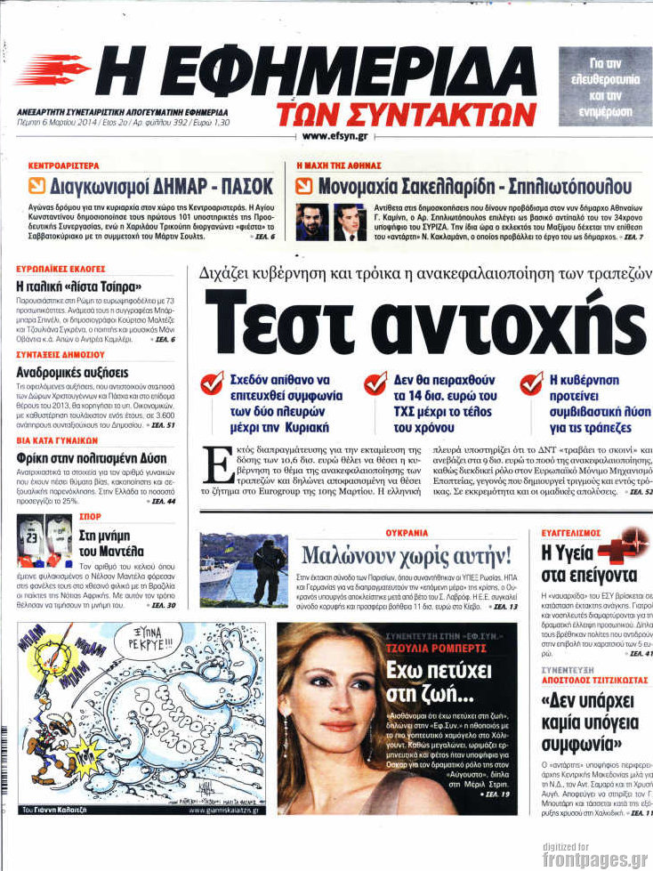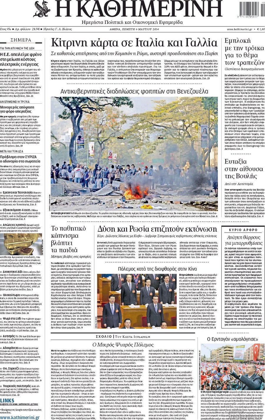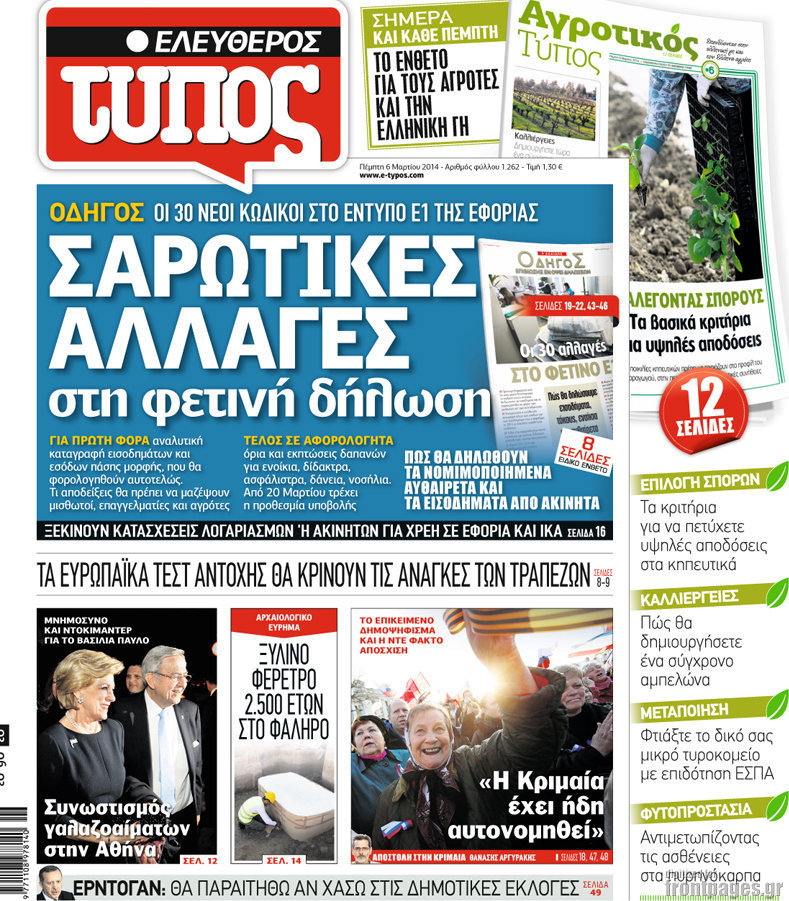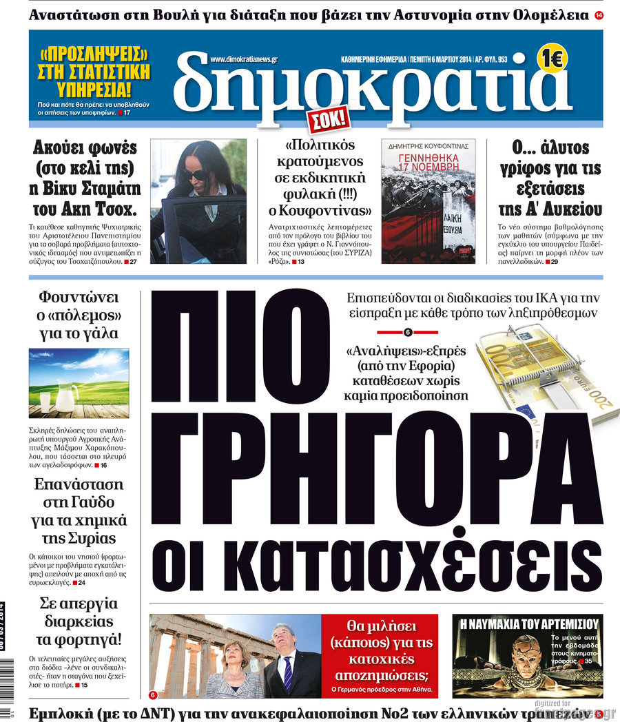 Οι πολιτικές εφημερίδες Enikos Newsroom 08:09, Πέμπτη 06 Μαρτίου 2014 Media Οι πολιτικές εφημερίδες Διαβάστε τα πρωτοσέλιδα των πολιτικών εφημερίδων: ΕΦΗΜΕΡΙΔΕΣ ΠΟΛΙΤΙΚΕΣ ΕΦΗΜΕΡΙΔΕΣ ΠΡΩΤΟΣΕΛΙΔΑ Μοιράσου το: σχολίασε κι εσύ (0 σχόλια) Ακολουθήστε το enikos.gr στο Google News και μάθετε πρώτοι όλες τις ειδήσεις Δείτε όλες τις τελευταίες ειδήσεις από την Ελλάδα και τον Κόσμο στο enikos.gr Ειδήσεις Ροή Ειδήσεων 32 λεπτά πριν Καμία «ανακωχή» για τους αγρότες: Γενική συνέλευση σήμερα στο μπλόκο της Νίκαιας – Ο σχεδιασμός για ανοιχτούς δρόμους τα Χριστούγεννα 8 ώρες πριν Ρετζέπ Ταγίπ Ερντογάν: Δεν έχουμε καμία βλέψη στα εδάφη ή την κυριαρχία κανενός – Δεν θα επιτρέψουμε να παραβιαστούν τα δικαιώματά μας 1 ώρα πριν LEGEND: Ο διάδοχος της φρεγάτας Constellation έρχεται από την ακτοφυλακή των ΗΠΑ 53 λεπτά πριν Τζορτζ Κλούνεϊ: Πέθανε η αδελφή του, Άντα Ζάιντλερ – «Η ηρωίδα μου» 10 ώρες πριν Αρχεία Επστάιν: Οι 500 σελίδες που λείπουν, τα αναπάντητα ερωτήματα και οι επώνυμοι – Τι έπεται 3 ώρες πριν Οπτική ψευδαίσθηση: Μόνο το 2% των ανθρώπων θα βρει την πεταλούδα σε 15 δευτερόλεπτα 3 ώρες πριν Μήλο vs μπανάνα: Ποιο φρούτο έχει περισσότερες φυτικές ίνες, σύμφωνα με διαιτολόγους – Τα οφέλη τους για την υγεία 3 ώρες πριν Τα ζώδια σήμερα, Κυριακή 21 Δεκεμβρίου: Αιγόκεροι, αποφασίζετε για το επόμενο κεφάλαιο της ζωής σας 24 ώρες πριν Enerwave: Το νέο «ρεύμα» στη λιανική ενέργειας που αλλάζει την εμπειρία του καταναλωτή 3 λεπτά πριν Γαλλία: Έτοιμοι για Χριστούγεννα στους δρόμους οι αγρότες – «Οι δεσμεύσεις της κυβέρνησης δεν είναι αρκετές» 6 λεπτά πριν Αρχαιολόγοι ανακάλυψαν κάτι που δεν περίμεναν: Τα μαθηματικά υπήρχαν πριν από τους αριθμούς – Το μυστικό που κρύβεται πίσω από περίεργα αγγεία 8.000 ετών 10 λεπτά πριν Γιώργος Γεροντιδάκης: Τα μυαλά μου δεν έπαιρναν αέρα κι όταν πήραν, ήταν για να πάρω το μάθημά μου 19 λεπτά πριν Πρωτοχρονιά 2026: Πόσο θα κοστίσει φέτος η βασιλόπιτα – Οι τιμές σε ζαχαροπλαστεία, φούρνους και σούπερ μάρκετ 27 λεπτά πριν Νότια Αφρική: 10 νεκροί και 10 τραυματίες έπειτα από ένοπλη επίθεση κοντά στο Γιοχάνεσμπουργκ ENIKOS NETWORK Λίπος στο συκώτι: Τα καλύτερα και τα χειρότερα ροφήματα για το λιπώδες ήπαρ Τεστ προσωπικότητας: Είναι το πρόσωπό σας οβάλ, τετράγωνο, στρογγυλό ή σε σχήμα καρδιάς – Τι σημαίνει; Πρωτοχρονιά 2026: Πόσο θα κοστίσει φέτος η βασιλόπιτα – Οι τιμές σε ζαχαροπλαστεία, φούρνους και σούπερ μάρκετ «Πολεμική» προετοιμασία από την ευρωπαϊκή βιομηχανία ενέργειας – Η Eurelectric ζητεί «ομπρέλα» προστασίας για τις υποδομές Χαρτογραφώντας το «σημείο χωρίς επιστροφή»: Για πρώτη φορά αποκαλύπτεται με λεπτομέρεια το ακανθώδες όριο της ατμόσφαιρας τ... Η Google καταργεί τη λειτουργία «dark web report» – Πώς θα μπορούν οι χρήστες να διαγράφουν τα δεδομένα τους περισσότερα 08:13 , Κυριακή 21 Δεκεμβρίου 2025 Άγιος έρωτας: Ένας καταστροφικός σεισμός χτυπά τη Στέρνα Καταιγιστικές είναι οι εξελίξεις στα δυο τελευταία, συγκλονιστικά επεισόδια του 2025 της σειρά... 08:00 , Κυριακή 21 Δεκεμβρίου 2025 Σήμερα με τη Realnews: Ό,τι και αν αγοράσεις, σκανάρεις και κερδίζεις! Σήμερα με τη Realnews: Ό,τι και αν αγοράσεις, σκανάρεις και κερδίζεις! Με το PADU app, το κορυ... 07:00 , Κυριακή 21 Δεκεμβρίου 2025 Σήμερα με τη Realnews: Instyle, μαζί Drive και Realnews Geopolitics Σήμερα με τη Realnews: Instyle, μαζί Drive και Realnews Geopolitics Instyle Η Άννα Ρεζάν, η Ch... 06:55 , Κυριακή 21 Δεκεμβρίου 2025 Η Realnews στο www.pressreader.com Διαβάστε την ψηφιακή έκδοση της εφημερίδας στην οθόνη του κινητού, του tablet και του 