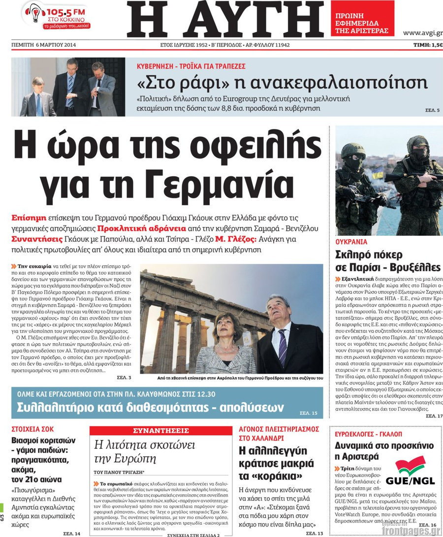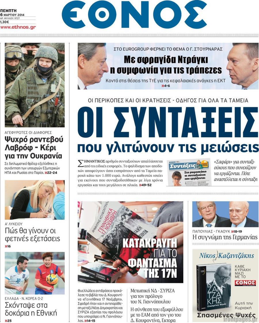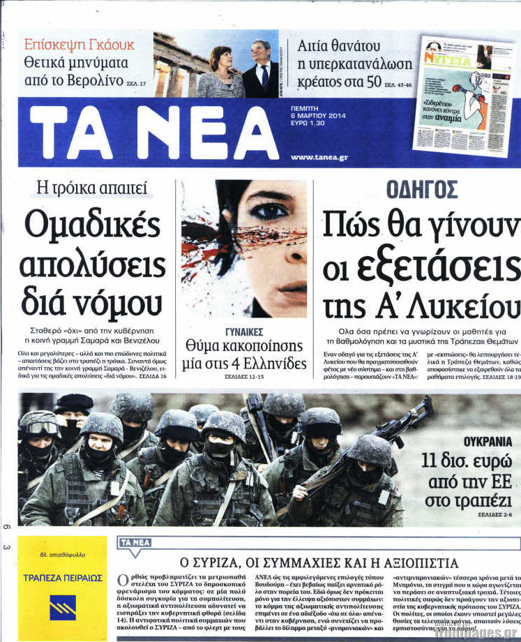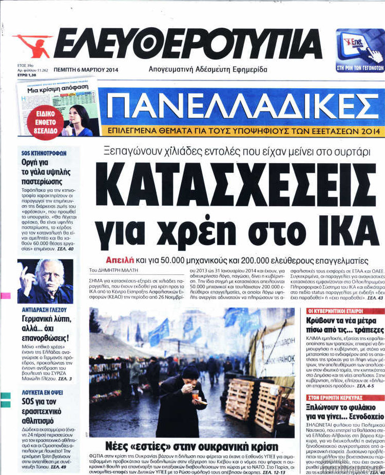 Οι πολιτικές εφημερίδες Enikos Newsroom 08:09, Πέμπτη 06 Μαρτίου 2014 Media Οι πολιτικές εφημερίδες Διαβάστε τα πρωτοσέλιδα των πολιτικών εφημερίδων: ΕΦΗΜΕΡΙΔΕΣ ΠΟΛΙΤΙΚΕΣ ΕΦΗΜΕΡΙΔΕΣ ΠΡΩΤΟΣΕΛΙΔΑ Μοιράσου το: σχολίασε κι εσύ (0 σχόλια) Ακολουθήστε το enikos.gr στο Google News και μάθετε πρώτοι όλες τις ειδήσεις Δείτε όλες τις τελευταίες ειδήσεις από την Ελλάδα και τον Κόσμο στο enikos.gr Ειδήσεις Ροή Ειδήσεων 32 λεπτά πριν Καμία «ανακωχή» για τους αγρότες: Γενική συνέλευση σήμερα στο μπλόκο της Νίκαιας – Ο σχεδιασμός για ανοιχτούς δρόμους τα Χριστούγεννα 8 ώρες πριν Ρετζέπ Ταγίπ Ερντογάν: Δεν έχουμε καμία βλέψη στα εδάφη ή την κυριαρχία κανενός – Δεν θα επιτρέψουμε να παραβιαστούν τα δικαιώματά μας 1 ώρα πριν LEGEND: Ο διάδοχος της φρεγάτας Constellation έρχεται από την ακτοφυλακή των ΗΠΑ 53 λεπτά πριν Τζορτζ Κλούνεϊ: Πέθανε η αδελφή του, Άντα Ζάιντλερ – «Η ηρωίδα μου» 10 ώρες πριν Αρχεία Επστάιν: Οι 500 σελίδες που λείπουν, τα αναπάντητα ερωτήματα και οι επώνυμοι – Τι έπεται 3 ώρες πριν Οπτική ψευδαίσθηση: Μόνο το 2% των ανθρώπων θα βρει την πεταλούδα σε 15 δευτερόλεπτα 3 ώρες πριν Μήλο vs μπανάνα: Ποιο φρούτο έχει περισσότερες φυτικές ίνες, σύμφωνα με διαιτολόγους – Τα οφέλη τους για την υγεία 3 ώρες πριν Τα ζώδια σήμερα, Κυριακή 21 Δεκεμβρίου: Αιγόκεροι, αποφασίζετε για το επόμενο κεφάλαιο της ζωής σας 24 ώρες πριν Enerwave: Το νέο «ρεύμα» στη λιανική ενέργειας που αλλάζει την εμπειρία του καταναλωτή 3 λεπτά πριν Γαλλία: Έτοιμοι για Χριστούγεννα στους δρόμους οι αγρότες – «Οι δεσμεύσεις της κυβέρνησης δεν είναι αρκετές» 6 λεπτά πριν Αρχαιολόγοι ανακάλυψαν κάτι που δεν περίμεναν: Τα μαθηματικά υπήρχαν πριν από τους αριθμούς – Το μυστικό που κρύβεται πίσω από περίεργα αγγεία 8.000 ετών 10 λεπτά πριν Γιώργος Γεροντιδάκης: Τα μυαλά μου δεν έπαιρναν αέρα κι όταν πήραν, ήταν για να πάρω το μάθημά μου 19 λεπτά πριν Πρωτοχρονιά 2026: Πόσο θα κοστίσει φέτος η βασιλόπιτα – Οι τιμές σε ζαχαροπλαστεία, φούρνους και σούπερ μάρκετ 27 λεπτά πριν Νότια Αφρική: 10 νεκροί και 10 τραυματίες έπειτα από ένοπλη επίθεση κοντά στο Γιοχάνεσμπουργκ ENIKOS NETWORK Λίπος στο συκώτι: Τα καλύτερα και τα χειρότερα ροφήματα για το λιπώδες ήπαρ Τεστ προσωπικότητας: Είναι το πρόσωπό σας οβάλ, τετράγωνο, στρογγυλό ή σε σχήμα καρδιάς – Τι σημαίνει; Πρωτοχρονιά 2026: Πόσο θα κοστίσει φέτος η βασιλόπιτα – Οι τιμές σε ζαχαροπλαστεία, φούρνους και σούπερ μάρκετ «Πολεμική» προετοιμασία από την ευρωπαϊκή βιομηχανία ενέργειας – Η Eurelectric ζητεί «ομπρέλα» προστασίας για τις υποδομές Χαρτογραφώντας το «σημείο χωρίς επιστροφή»: Για πρώτη φορά αποκαλύπτεται με λεπτομέρεια το ακανθώδες όριο της ατμόσφαιρας τ... Η Google καταργεί τη λειτουργία «dark web report» – Πώς θα μπορούν οι χρήστες να διαγράφουν τα δεδομένα τους περισσότερα 08:13 , Κυριακή 21 Δεκεμβρίου 2025 Άγιος έρωτας: Ένας καταστροφικός σεισμός χτυπά τη Στέρνα Καταιγιστικές είναι οι εξελίξεις στα δυο τελευταία, συγκλονιστικά επεισόδια του 2025 της σειρά... 08:00 , Κυριακή 21 Δεκεμβρίου 2025 Σήμερα με τη Realnews: Ό,τι και αν αγοράσεις, σκανάρεις και κερδίζεις! Σήμερα με τη Realnews: Ό,τι και αν αγοράσεις, σκανάρεις και κερδίζεις! Με το PADU app, το κορυ... 07:00 , Κυριακή 21 Δεκεμβρίου 2025 Σήμερα με τη Realnews: Instyle, μαζί Drive και Realnews Geopolitics Σήμερα με τη Realnews: Instyle, μαζί Drive και Realnews Geopolitics Instyle Η Άννα Ρεζάν, η Ch... 06:55 , Κυριακή 21 Δεκεμβρίου 2025 Η Realnews στο www.pressreader.com Διαβάστε την ψηφιακή έκδοση της εφημερίδας στην οθόνη του κινητού, του tablet και του 