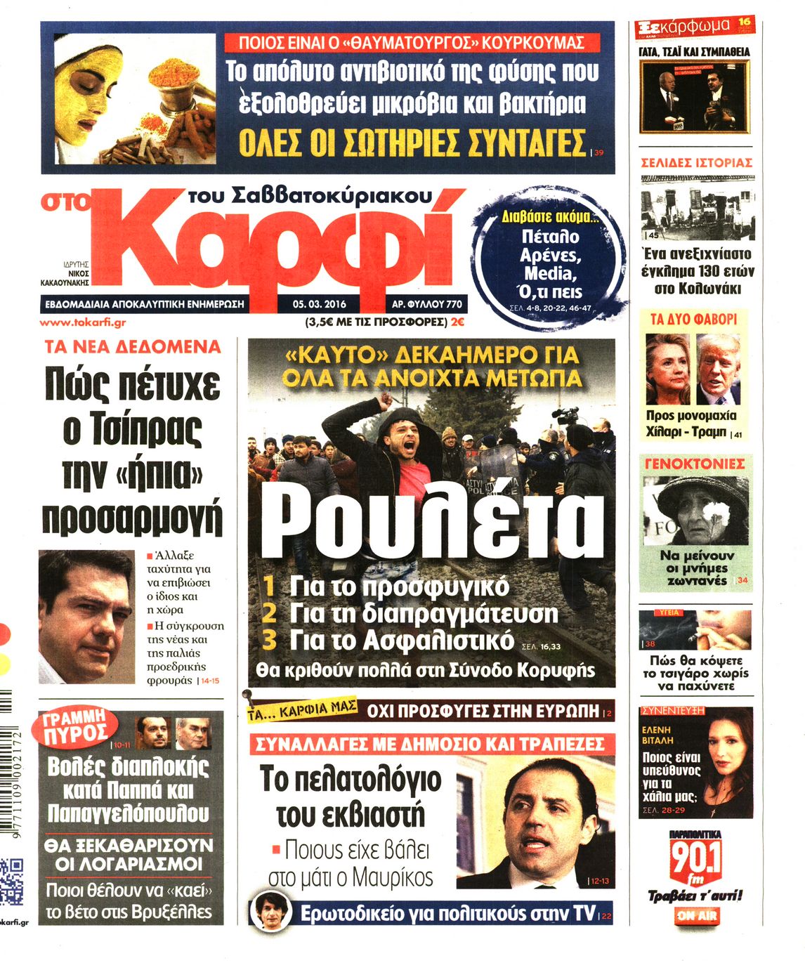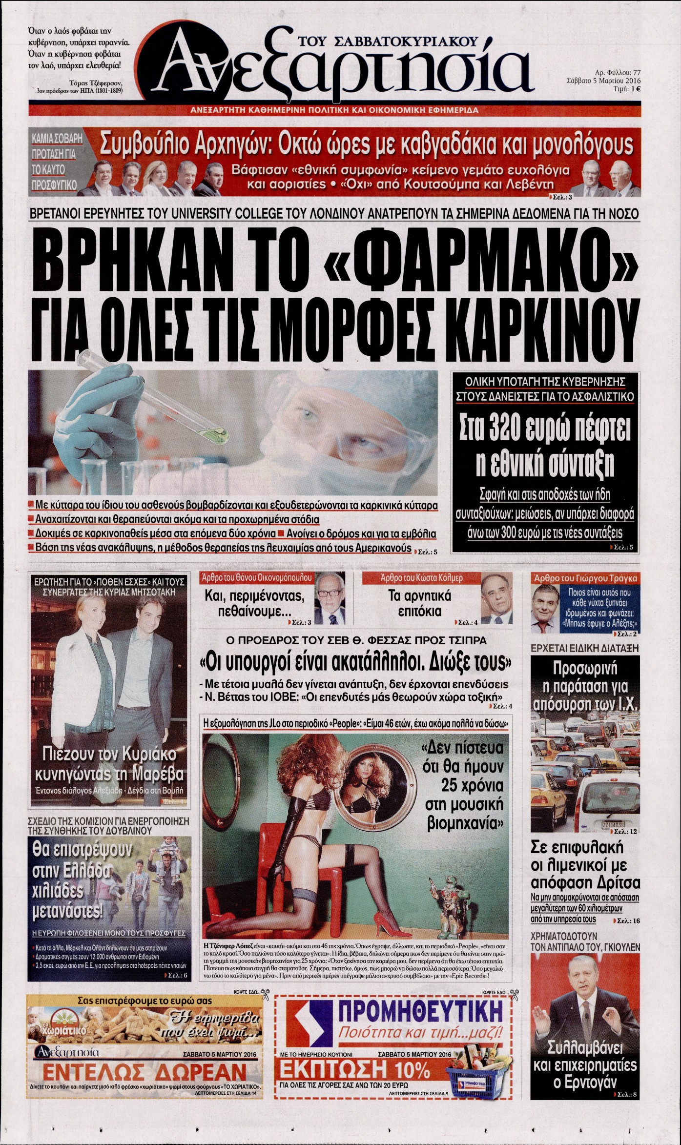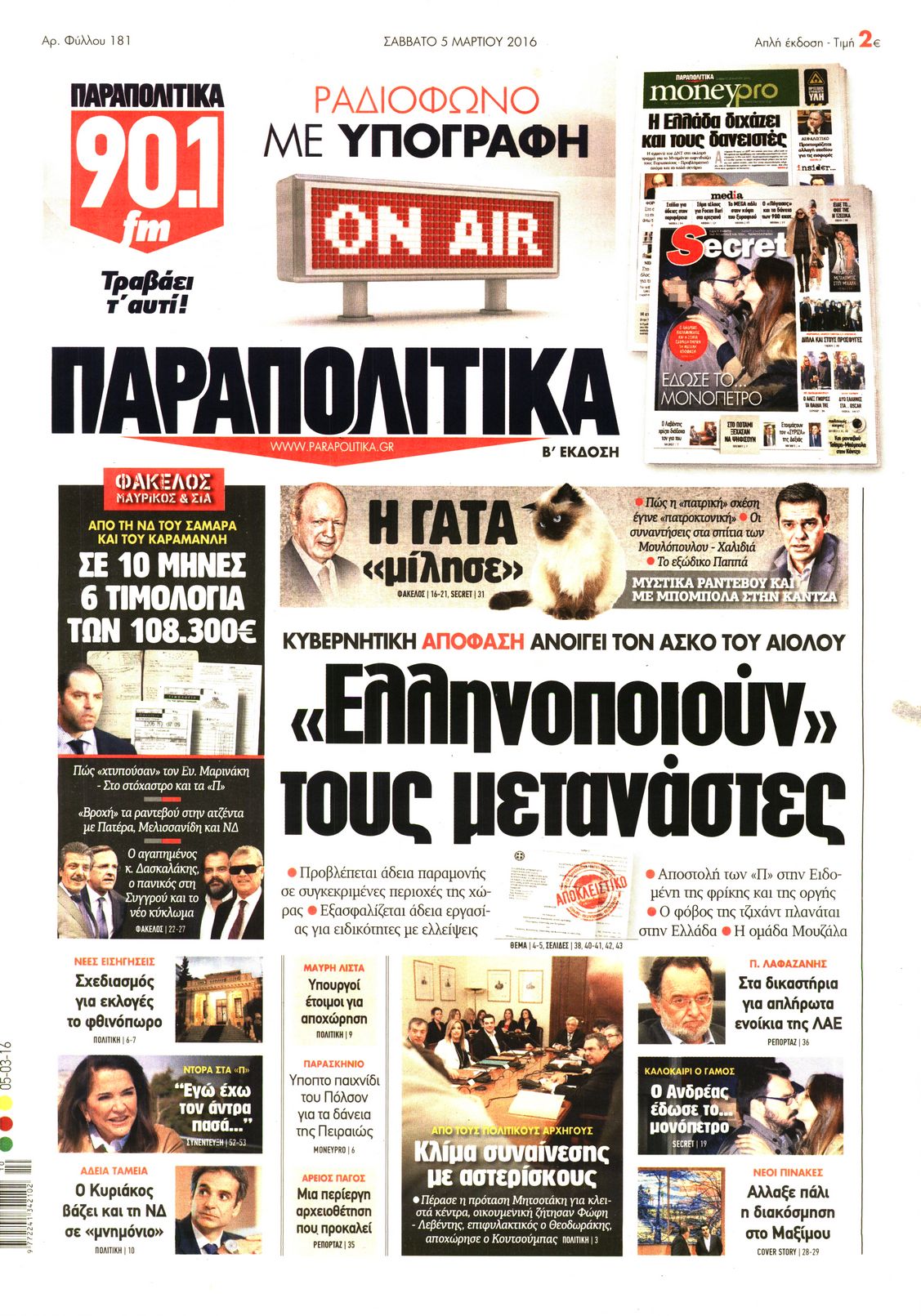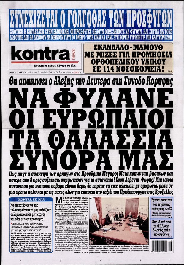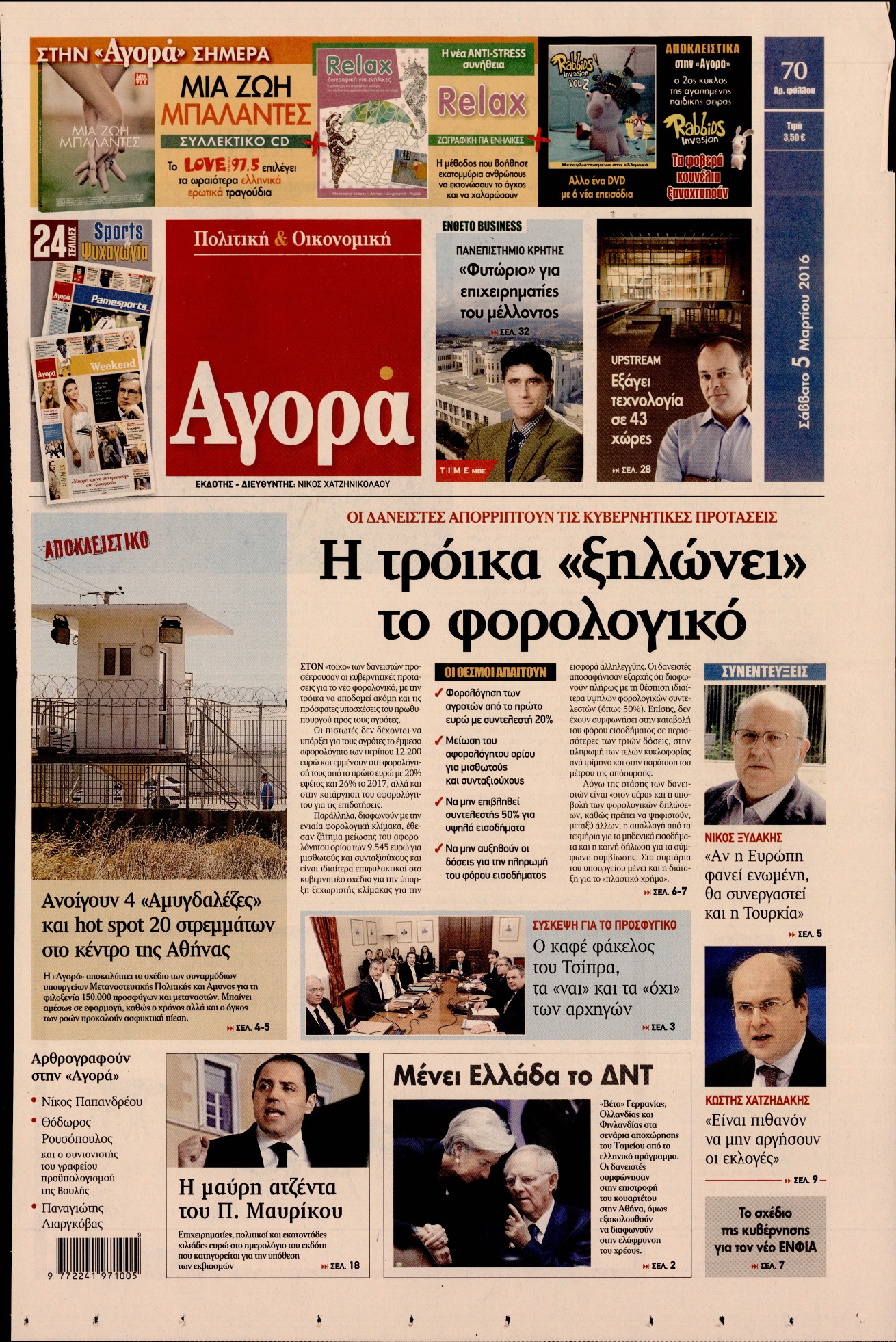 Οι πολιτικές εφημερίδες 5-3-2016 Enikos Newsroom 05:59, Σάββατο 05 Μαρτίου 2016 Media Διαβάστε τα σημερινά πρωτοσέλιδα των πολιτικών εφημερίδων: ΠΟΛΙΤΙΚΕΣ ΕΦΗΜΕΡΙΔΕΣ ΠΡΩΤΟΣΕΛΙΔΑ Μοιράσου το: σχολίασε κι εσύ (0 σχόλια) Ακολουθήστε το enikos.gr στο Google News και μάθετε πρώτοι όλες τις ειδήσεις Δείτε όλες τις τελευταίες ειδήσεις από την Ελλάδα και τον Κόσμο στο enikos.gr Ειδήσεις Ροή Ειδήσεων 1 λεπτό πριν Υπόθεση Έπσταϊν: Το Υπουργείο Δικαιοσύνης δημοσιοποίησε μια σειρά από εξαιρετικά επεξεργασμένα αρχεία – «Λείπουν τα πιο σημαντικά έγγραφα», λένε οι Δημοκρατικοί 9 ώρες πριν Χριστούγεννα στα μπλόκα: Επιμένουν στις κινητοποιήσεις τους οι αγρότες – Ανοίγουν τα διόδια το Σαββατοκύριακο 2 ώρες πριν Σαρωτικοί οι έλεγχοι στους δρόμους ενόψει εορτών – Μπλόκα της τροχαίας σε κεντρικές αρτηρίες της Αττικής 9 ώρες πριν Πούτιν: Τα μηνύματα σε Ευρώπη και ΝΑΤΟ από το μαραθώνιο «σόου» του – Η απαίτηση για «σεβασμό» και η ειρήνη «με τους όρους» της Μόσχας 8 ώρες πριν Άνω Λιόσια: Πυροβολισμοί σε επιχείρηση με χαλιά – Εντοπίστηκαν 10 κάλυκες 2 ώρες πριν Αυγά: Πόσα μπορείτε να τρώτε την ημέρα με ασφάλεια για μέγιστη πρόσληψη πρωτεΐνης 2 ώρες πριν Τα ζώδια σήμερα, Σάββατο 20 Δεκεμβρίου: Παρθένοι, το σύμπαν σας δίνει το κλειδί 9 ώρες πριν Ανακαλύφθηκαν αρχαία χρυσά νομίσματα 2.200 ετών που απεικονίζουν τον θεό Απόλλωνα – Η άγνωστη σύνδεση με τον Φίλιππο Β΄ της Μακεδονίας 2 ώρες πριν Οπτική ψευδαίσθηση: Μόνο αν είσαι ο Σέρλοκ Χολμς θα βρεις τον αριθμό «87» σε 7 δευτερόλεπτα 1 λεπτό πριν Υπόθεση Έπσταϊν: Το Υπουργείο Δικαιοσύνης δημοσιοποίησε μια σειρά από εξαιρετικά επεξεργασμένα αρχεία – «Λείπουν τα πιο σημαντικά έγγραφα», λένε οι Δημοκρατικοί 4 λεπτά πριν Καιρός: Αλλαγή σκηνικού σήμερα με βροχές και πτώση της θερμοκρασίας – Οι προβλέψεις των μετεωρολόγων για τα Χριστούγεννα 12 λεπτά πριν ΟΝΕΧ – MEGATUGS: Ξεκίνησε η ναυπήγηση ρυμουλκών στην Ελλάδα – Προθάλαμος πολεμικών πλοίων – Δείτε φωτογραφίες και βίντεο 21 λεπτά πριν Φοινικούντα: Σήμερα απολογείται ο 30χρονος γιος γνωστού επιχειρηματία της Πλάκας 28 λεπτά πριν Οι αθλητικές μεταδόσεις 20/12/2025 ENIKOS NETWORK Πρέπει να αποδέχεστε ή να απορρίπτετε όλα τα cookies; Ένας ειδικός εξηγεί Η αγαπημένη λιχουδιά των πόνι που μπορεί να ενισχύσει όραση, εγκέφαλο και ανοσοποιητικό Αναστολή μέτρων αναγκαστικής εκτέλεσης για κτηνοτρόφους που πλήττονται από την ευλογιά των αιγοπροβάτων Πλήρης επάρκεια προϊόντων στις λαϊκές της Αττικής, παρά τις αγροτικές κινητοποιήσεις – Τι απαντούν οι πωλητές Χαρτογραφώντας το «σημείο χωρίς επιστροφή»: Για πρώτη φορά αποκαλύπτεται με λεπτομέρεια το ακανθώδες όριο της ατμόσφαιρας τ... Η Google καταργεί τη λειτουργία «dark web report» – Πώς θα μπορούν οι χρήστες να διαγράφουν τα δεδομένα τους περισσότερα 05:48 , Σάββατο 20 Δεκεμβρίου 2025 Οι οικονομικές εφημερίδες 20/12/2025 Διαβάστε τα πρωτοσέλιδα από τις οικονομικές εφημερίδες, σήμερα 20/12/2025. 05:43 , Σάββατο 20 Δεκεμβρίου 2025 Οι αθλητικές εφημερίδες 20/12/2025 Διαβάστε τα πρωτοσέλιδα από τις αθλητικές εφημερίδες, σήμερα 20/12/2025. 05:38 , Σάββατο 20 Δεκεμβρίου 2025 Οι πολιτικές εφημερίδες 20/12/2025 Διαβάστε τα πρωτοσέλιδα από τις πολιτικές εφημερίδες, σήμερα 20/12/2025. 04:20 , Σάββατο 20 Δεκεμβρίου 2025 Αγγελική Νικολούλη: Τα συλλυπητήρια για την απώλεια της Ειρήνης Μαρινάκη Τα συλληπητήρια στον πρόεδρο του Mega, τον Βαγγέλη Μαρινάκη, για την απώλεια της μητέρας του Ε... ΤΕΛΕΥΤΑΙΕΣ ΕΙΔΗΣΕΙΣ 1 λεπτό πριν Υπόθεση Έπσταϊν: Το Υπουργεί