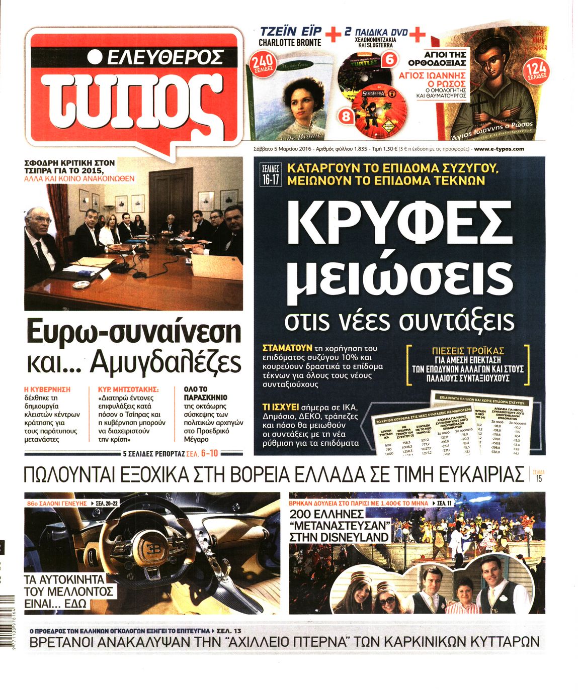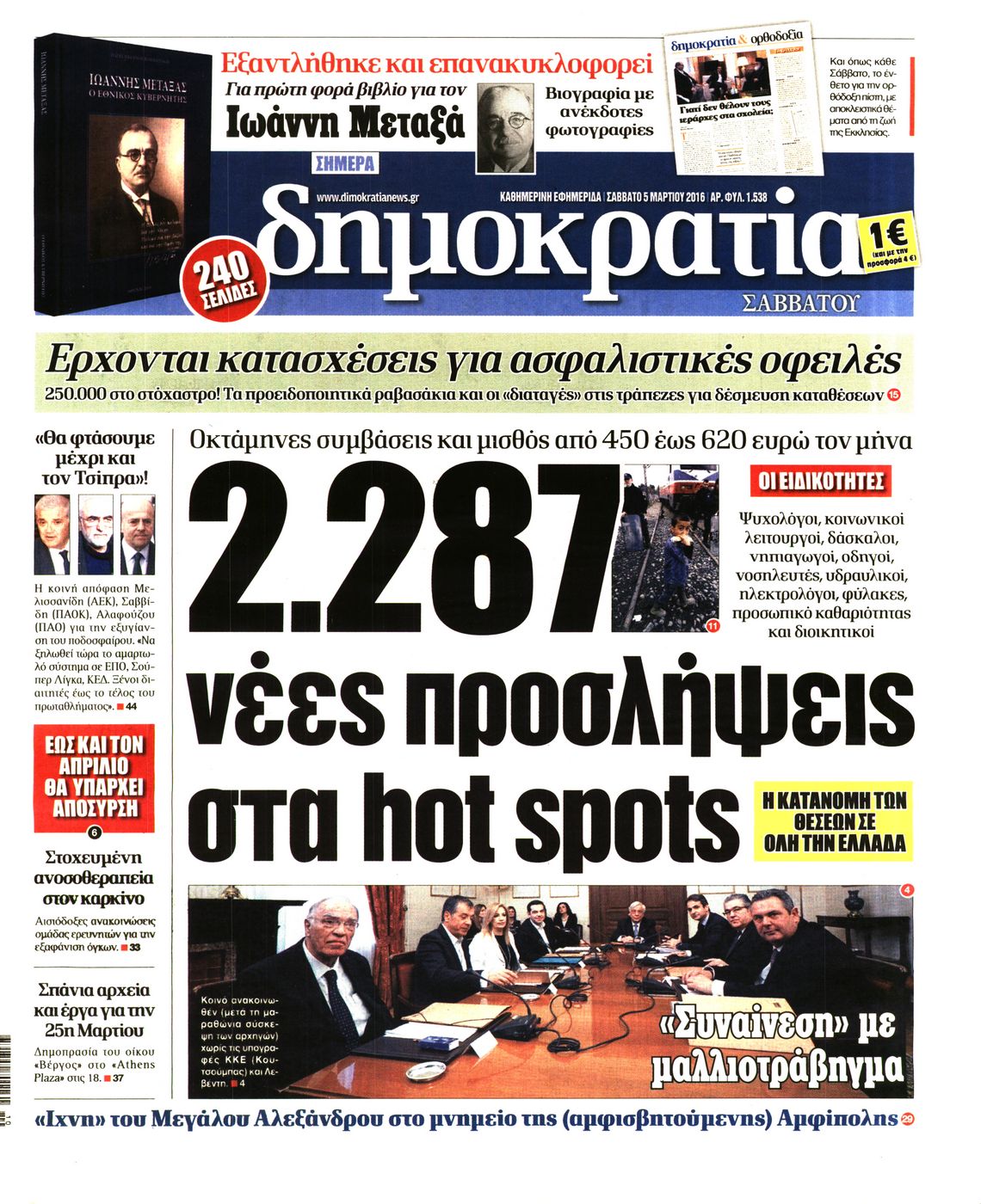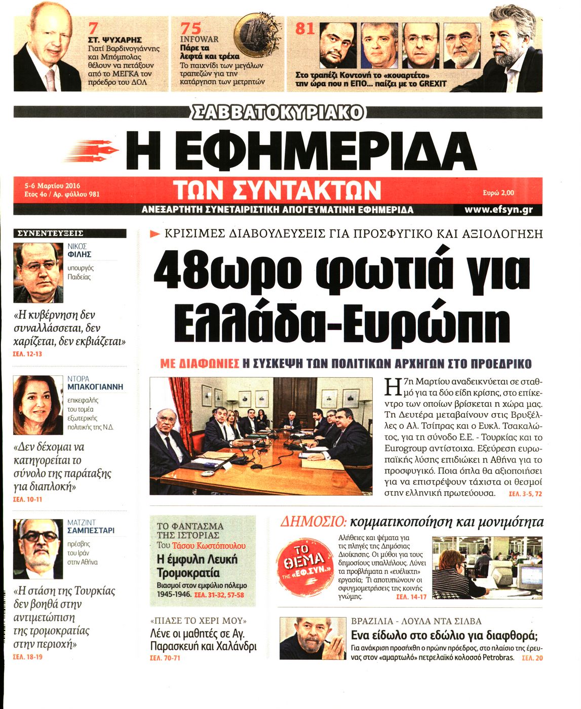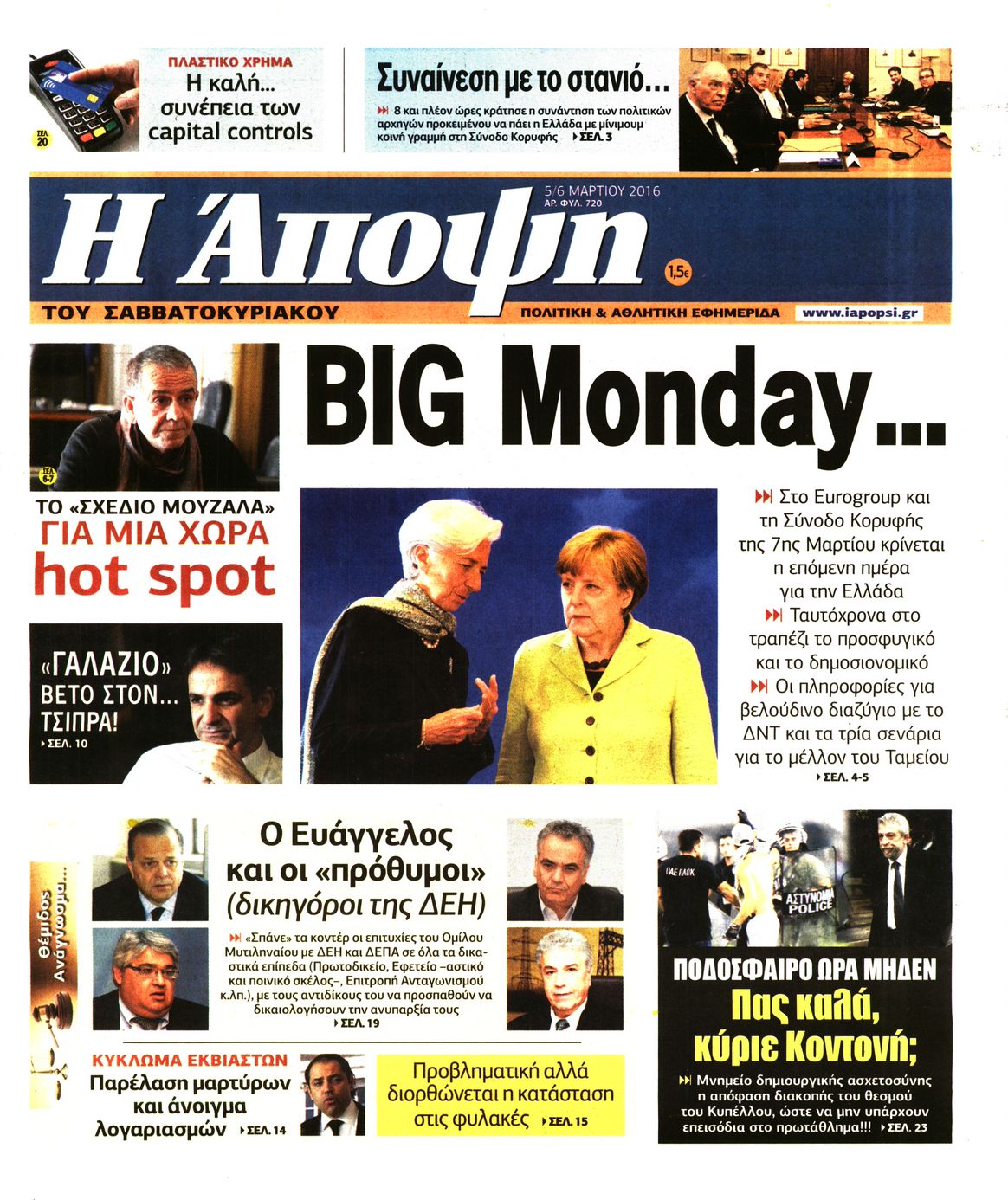 Οι πολιτικές εφημερίδες 5-3-2016 Enikos Newsroom 05:59, Σάββατο 05 Μαρτίου 2016 Media Διαβάστε τα σημερινά πρωτοσέλιδα των πολιτικών εφημερίδων: ΠΟΛΙΤΙΚΕΣ ΕΦΗΜΕΡΙΔΕΣ ΠΡΩΤΟΣΕΛΙΔΑ Μοιράσου το: σχολίασε κι εσύ (0 σχόλια) Ακολουθήστε το enikos.gr στο Google News και μάθετε πρώτοι όλες τις ειδήσεις Δείτε όλες τις τελευταίες ειδήσεις από την Ελλάδα και τον Κόσμο στο enikos.gr Ειδήσεις Ροή Ειδήσεων 1 λεπτό πριν Υπόθεση Έπσταϊν: Το Υπουργείο Δικαιοσύνης δημοσιοποίησε μια σειρά από εξαιρετικά επεξεργασμένα αρχεία – «Λείπουν τα πιο σημαντικά έγγραφα», λένε οι Δημοκρατικοί 9 ώρες πριν Χριστούγεννα στα μπλόκα: Επιμένουν στις κινητοποιήσεις τους οι αγρότες – Ανοίγουν τα διόδια το Σαββατοκύριακο 2 ώρες πριν Σαρωτικοί οι έλεγχοι στους δρόμους ενόψει εορτών – Μπλόκα της τροχαίας σε κεντρικές αρτηρίες της Αττικής 9 ώρες πριν Πούτιν: Τα μηνύματα σε Ευρώπη και ΝΑΤΟ από το μαραθώνιο «σόου» του – Η απαίτηση για «σεβασμό» και η ειρήνη «με τους όρους» της Μόσχας 8 ώρες πριν Άνω Λιόσια: Πυροβολισμοί σε επιχείρηση με χαλιά – Εντοπίστηκαν 10 κάλυκες 2 ώρες πριν Αυγά: Πόσα μπορείτε να τρώτε την ημέρα με ασφάλεια για μέγιστη πρόσληψη πρωτεΐνης 2 ώρες πριν Τα ζώδια σήμερα, Σάββατο 20 Δεκεμβρίου: Παρθένοι, το σύμπαν σας δίνει το κλειδί 9 ώρες πριν Ανακαλύφθηκαν αρχαία χρυσά νομίσματα 2.200 ετών που απεικονίζουν τον θεό Απόλλωνα – Η άγνωστη σύνδεση με τον Φίλιππο Β΄ της Μακεδονίας 2 ώρες πριν Οπτική ψευδαίσθηση: Μόνο αν είσαι ο Σέρλοκ Χολμς θα βρεις τον αριθμό «87» σε 7 δευτερόλεπτα 1 λεπτό πριν Υπόθεση Έπσταϊν: Το Υπουργείο Δικαιοσύνης δημοσιοποίησε μια σειρά από εξαιρετικά επεξεργασμένα αρχεία – «Λείπουν τα πιο σημαντικά έγγραφα», λένε οι Δημοκρατικοί 4 λεπτά πριν Καιρός: Αλλαγή σκηνικού σήμερα με βροχές και πτώση της θερμοκρασίας – Οι προβλέψεις των μετεωρολόγων για τα Χριστούγεννα 12 λεπτά πριν ΟΝΕΧ – MEGATUGS: Ξεκίνησε η ναυπήγηση ρυμουλκών στην Ελλάδα – Προθάλαμος πολεμικών πλοίων – Δείτε φωτογραφίες και βίντεο 21 λεπτά πριν Φοινικούντα: Σήμερα απολογείται ο 30χρονος γιος γνωστού επιχειρηματία της Πλάκας 28 λεπτά πριν Οι αθλητικές μεταδόσεις 20/12/2025 ENIKOS NETWORK Πρέπει να αποδέχεστε ή να απορρίπτετε όλα τα cookies; Ένας ειδικός εξηγεί Η αγαπημένη λιχουδιά των πόνι που μπορεί να ενισχύσει όραση, εγκέφαλο και ανοσοποιητικό Αναστολή μέτρων αναγκαστικής εκτέλεσης για κτηνοτρόφους που πλήττονται από την ευλογιά των αιγοπροβάτων Πλήρης επάρκεια προϊόντων στις λαϊκές της Αττικής, παρά τις αγροτικές κινητοποιήσεις – Τι απαντούν οι πωλητές Χαρτογραφώντας το «σημείο χωρίς επιστροφή»: Για πρώτη φορά αποκαλύπτεται με λεπτομέρεια το ακανθώδες όριο της ατμόσφαιρας τ... Η Google καταργεί τη λειτουργία «dark web report» – Πώς θα μπορούν οι χρήστες να διαγράφουν τα δεδομένα τους περισσότερα 05:48 , Σάββατο 20 Δεκεμβρίου 2025 Οι οικονομικές εφημερίδες 20/12/2025 Διαβάστε τα πρωτοσέλιδα από τις οικονομικές εφημερίδες, σήμερα 20/12/2025. 05:43 , Σάββατο 20 Δεκεμβρίου 2025 Οι αθλητικές εφημερίδες 20/12/2025 Διαβάστε τα πρωτοσέλιδα από τις αθλητικές εφημερίδες, σήμερα 20/12/2025. 05:38 , Σάββατο 20 Δεκεμβρίου 2025 Οι πολιτικές εφημερίδες 20/12/2025 Διαβάστε τα πρωτοσέλιδα από τις πολιτικές εφημερίδες, σήμερα 20/12/2025. 04:20 , Σάββατο 20 Δεκεμβρίου 2025 Αγγελική Νικολούλη: Τα συλλυπητήρια για την απώλεια της Ειρήνης Μαρινάκη Τα συλληπητήρια στον πρόεδρο του Mega, τον Βαγγέλη Μαρινάκη, για την απώλεια της μητέρας του Ε... ΤΕΛΕΥΤΑΙΕΣ ΕΙΔΗΣΕΙΣ 1 λεπτό πριν Υπόθεση Έπσταϊν: Το Υπουργεί