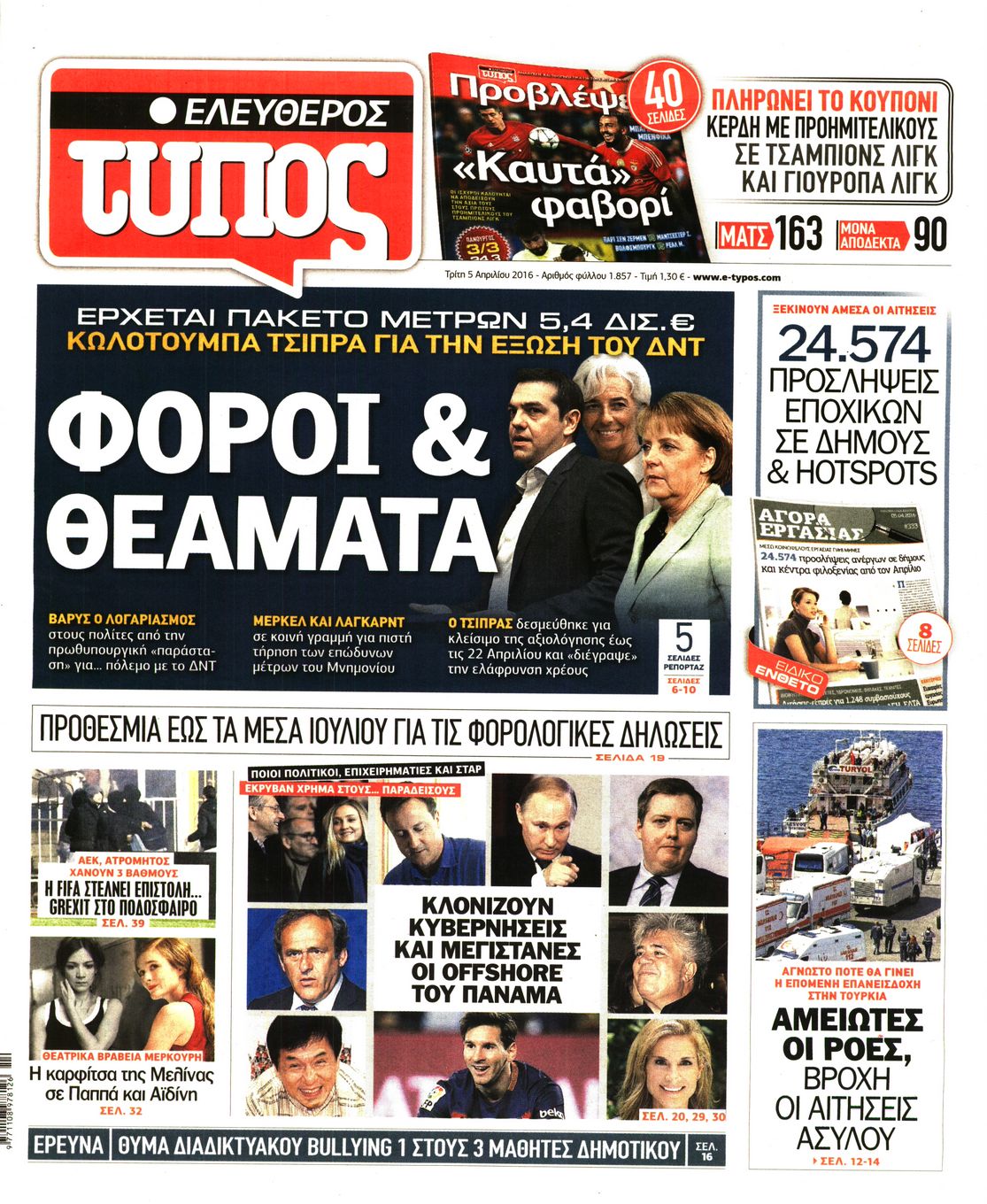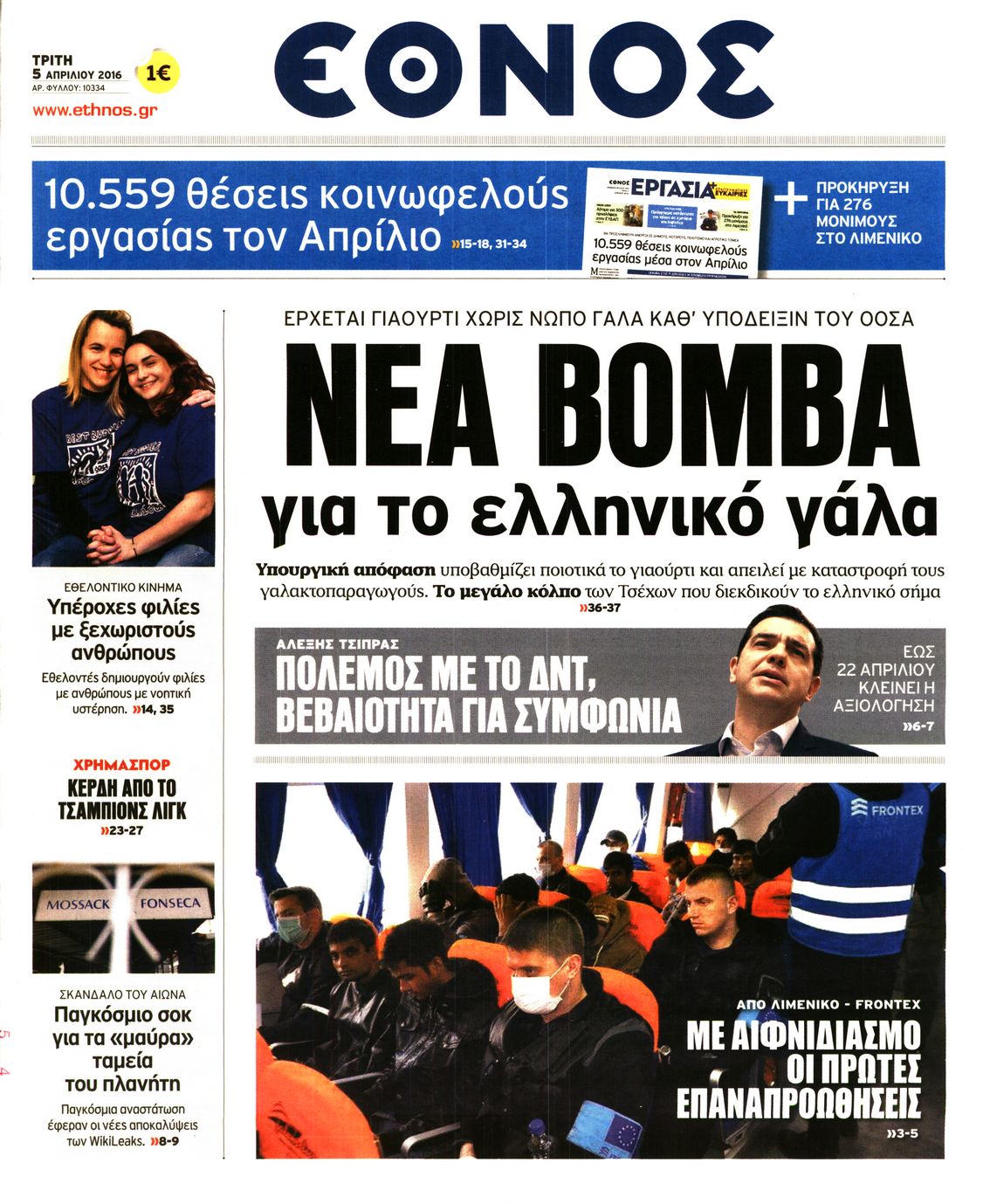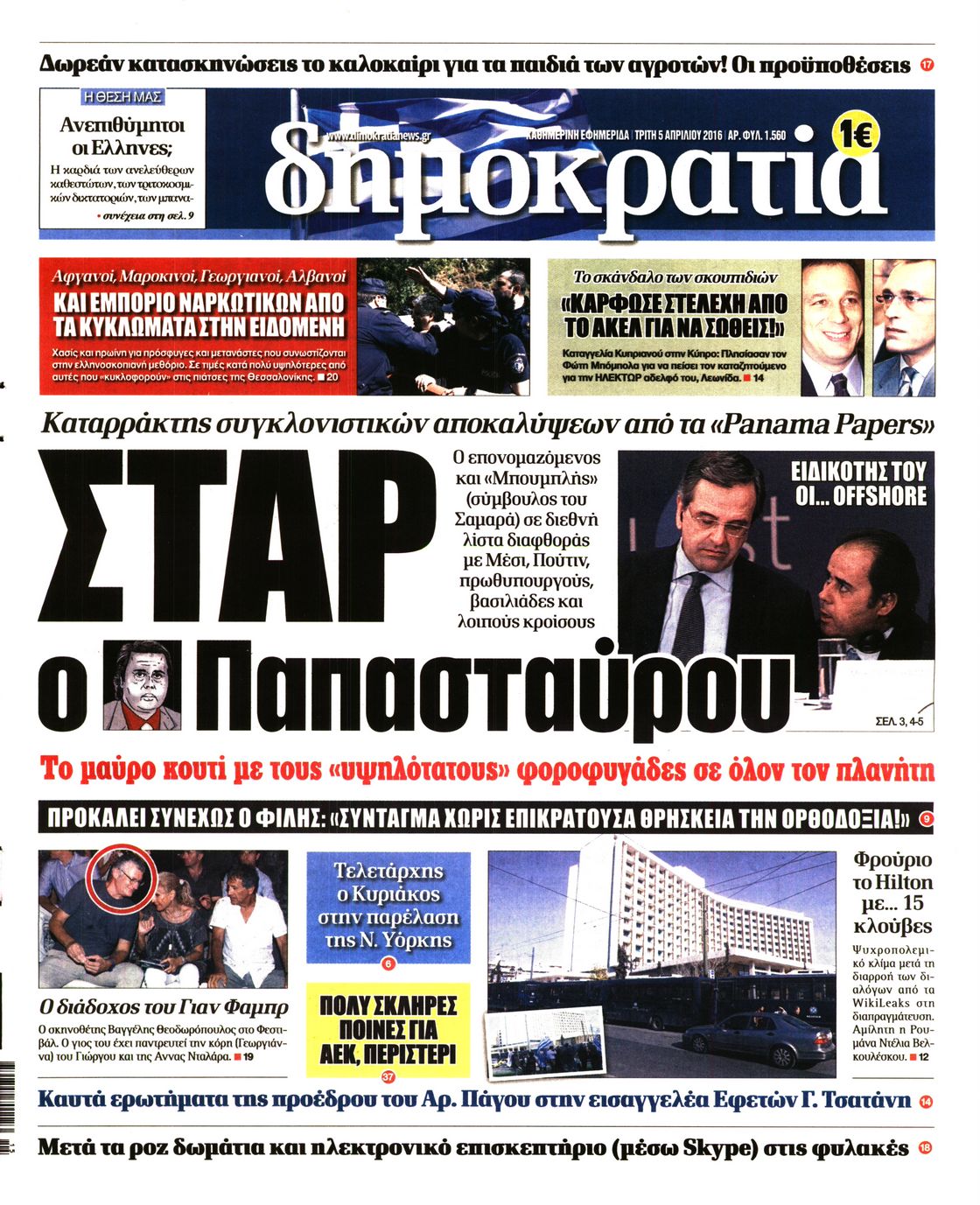 Οι πολιτικές εφημερίδες 5-4-2016 Enikos Newsroom 06:08, Τρίτη 05 Απριλίου 2016 Media Διαβάστε τα σημερινά πρωτοσέλιδα των πολιτικών εφημερίδων: ΠΟΛΙΤΙΚΕΣ ΕΦΗΜΕΡΙΔΕΣ ΠΡΩΤΟΣΕΛΙΔΑ Μοιράσου το: σχολίασε κι εσύ (0 σχόλια) Ακολουθήστε το enikos.gr στο Google News και μάθετε πρώτοι όλες τις ειδήσεις Δείτε όλες τις τελευταίες ειδήσεις από την Ελλάδα και τον Κόσμο στο enikos.gr Ειδήσεις Ροή Ειδήσεων 17 λεπτά πριν Ζελένσκι: Μόνο οι ΗΠΑ και ο Τραμπ μπορούν να πιέσουν τη Ρωσία να βάλει τέλος στον πόλεμο 36 λεπτά πριν Φοινικούντα: Προφυλακιστέος ο 30χρονος για συνέργεια στη διπλή δολοφονία – Και άλλα πρόσωπα στο «μικροσκόπιο» 2 ώρες πριν Κυριάκος Μητσοτάκης: Στην Ιερουσαλήμ την Τρίτη ο Πρωθυπουργός για την τριμερή Ελλάδας, Κύπρου, Ισραήλ – Θα συναντηθεί και με τον Αμπάς 5 ώρες πριν Πώς δρούσε το κύκλωμα που διακινούσε ναρκωτικά σε σχολεία – Υπέβαλαν σε βασανιστήρια όσους δεν τηρούσαν τους «κανόνες πειθαρχίας» 1 ώρα πριν Πάπας Λέων: Όταν έχει αϋπνίες επενδύει παραγωγικά τον χρόνο του – Ποιο παιχνίδι παίζει στο κινητό 27 λεπτά πριν Αριθμολογία: Ο αριθμός του φύλακα αγγέλου σας, με βάση τον μήνα γέννησής σας – «Έτσι σας στέλνει σημάδια το σύμπαν» 1 ώρα πριν Πώς να απαλλαγείτε από τη μυρωδιά του τηγανητού φαγητού: Το μυστικό βρίσκεται στην κουζίνα σας 2 ώρες πριν Μήπως οι γιορτές σας δεν είναι τόσο τέλειες; 7 χριστουγεννιάτικες συνήθειες που μαρτυρούν ότι μια οικογένεια είναι δυσλειτουργική 12 ώρες πριν Enerwave: Το νέο «ρεύμα» στη λιανική ενέργειας που αλλάζει την εμπειρία του καταναλωτή 10 λεπτά πριν Εριέττα Μανούρη: «Έχω νιώσει ανταγωνισμό από άντρες, μύθος αυτό που λένε για τις γυναίκες» 17 λεπτά πριν Ζελένσκι: Μόνο οι ΗΠΑ και ο Τραμπ μπορούν να πιέσουν τη Ρωσία να βάλει τέλος στον πόλεμο 27 λεπτά πριν Αριθμολογία: Ο αριθμός του φύλακα αγγέλου σας, με βάση τον μήνα γέννησής σας – «Έτσι σας στέλνει σημάδια το σύμπαν» 36 λεπτά πριν Φοινικούντα: Προφυλακιστέος ο 30χρονος για συνέργεια στη διπλή δολοφονία – Και άλλα πρόσωπα στο «μικροσκόπιο» 47 λεπτά πριν Super League: Ο Σιαμπάνης «κατέβασε ρολά» και ο Βόλος νίκησε 1-0 τον Παναιτωλικό ENIKOS NETWORK Οι γυναίκες αποκαλύπτουν το πιο ελκυστικό πράγμα που μπορεί να κάνει ένας άνδρας Ομορφιά και αντιγήρανση: Ειδικοί μιλούν για συσκευές περιποίησης του δέρματος Εφορία: 7 αλλαγές σε δηλώσεις και ελέγχους ακινήτων – Όλα όσα πρέπει να γνωρίζετε Πορτοκαλί τιμολόγια ρεύματος: Τα σημεία που πρέπει να προσέξουν οι καταναλωτές – Πότε θα εφαρμοστούν Χαρτογραφώντας το «σημείο χωρίς επιστροφή»: Για πρώτη φορά αποκαλύπτεται με λεπτομέρεια το ακανθώδες όριο της ατμόσφαιρας τ... Η Google καταργεί τη λειτουργία «dark web report» – Πώς θα μπορούν οι χρήστες να διαγράφουν τα δεδομένα τους περισσότερα 20:30 , Σάββατο 20 Δεκεμβρίου 2025 Αυτή την Κυριακή με τη Realnews: Instyle, μαζί Drive και Realnews Geopolitics Αυτή την Κυριακή με τη Realnews: Instyle, μαζί Drive και Realnews Geopolitics Instyle Η Άννα Ρ... 20:28 , Σάββατο 20 Δεκεμβρίου 2025 Ο ΑΝΤ1 γεμίζει τις γιορτές με μουσική – Ποιους καλλιτέχνες θα απολαύσουμε Φέτος στον ΑΝΤ1 γιορτάζουμε τις νύχτες μας παρέα με αγαπημένους καλλιτέχνες και μεγάλες μουσι... 18:19 , Σάββατο 20 Δεκεμβρίου 2025 HOTΕΛ ΕΛVIRA: Η Ελβίρα μαθαίνει πως ο Χάρι μένει κρυφά στο ξενοδοχείο του Παντελή Συνεχίζονται οι εκλογές για πρόεδρο, στο νέο επεισόδιο της κωμικής σειράς του MEGA, HOTΕΛ ΕΛVI... 14:04 , Σάββατο 20 Δεκεμβρίου 2025 Η Realnews αυτής της Κυριακής (21/12/2025) Με τίτλο: «Ασπίδα προστασίας για την Ελλάδα» κυκλοφορεί, αυτήν την Κυριακή, η Realnews. Σ