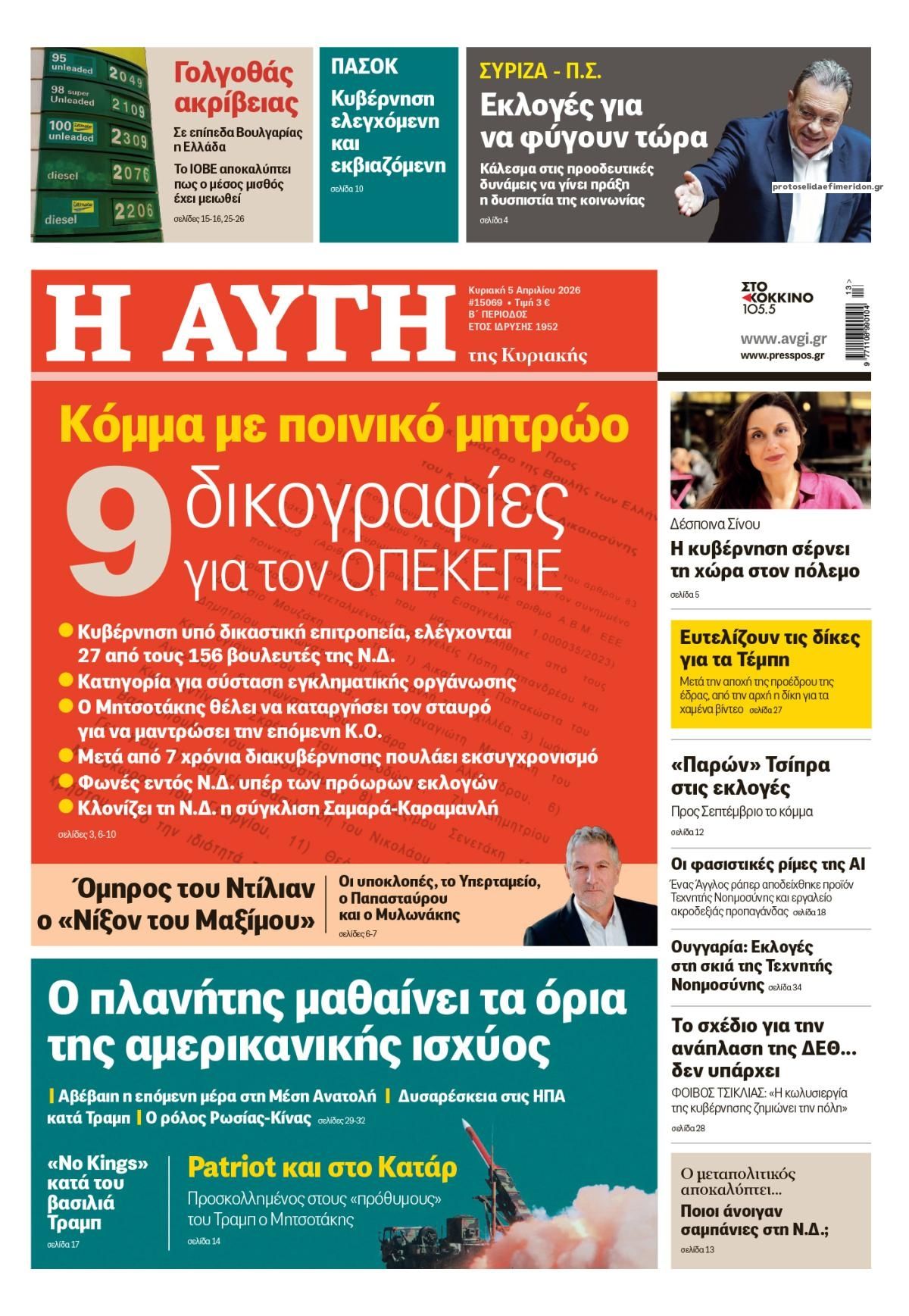 Διαβάστε τα πρωτοσέλιδα από τις πολιτικές εφημερίδες, σήμερα 5/4/2026.