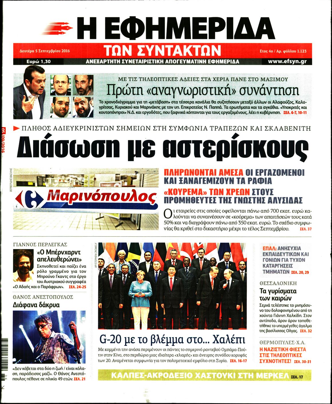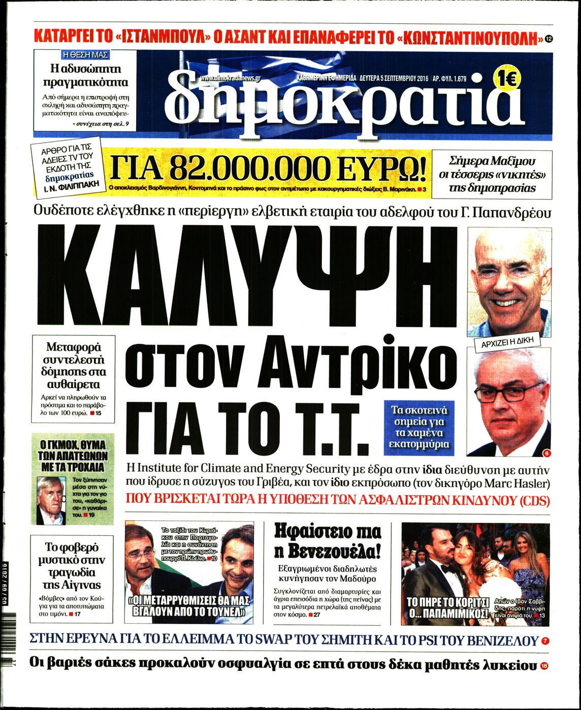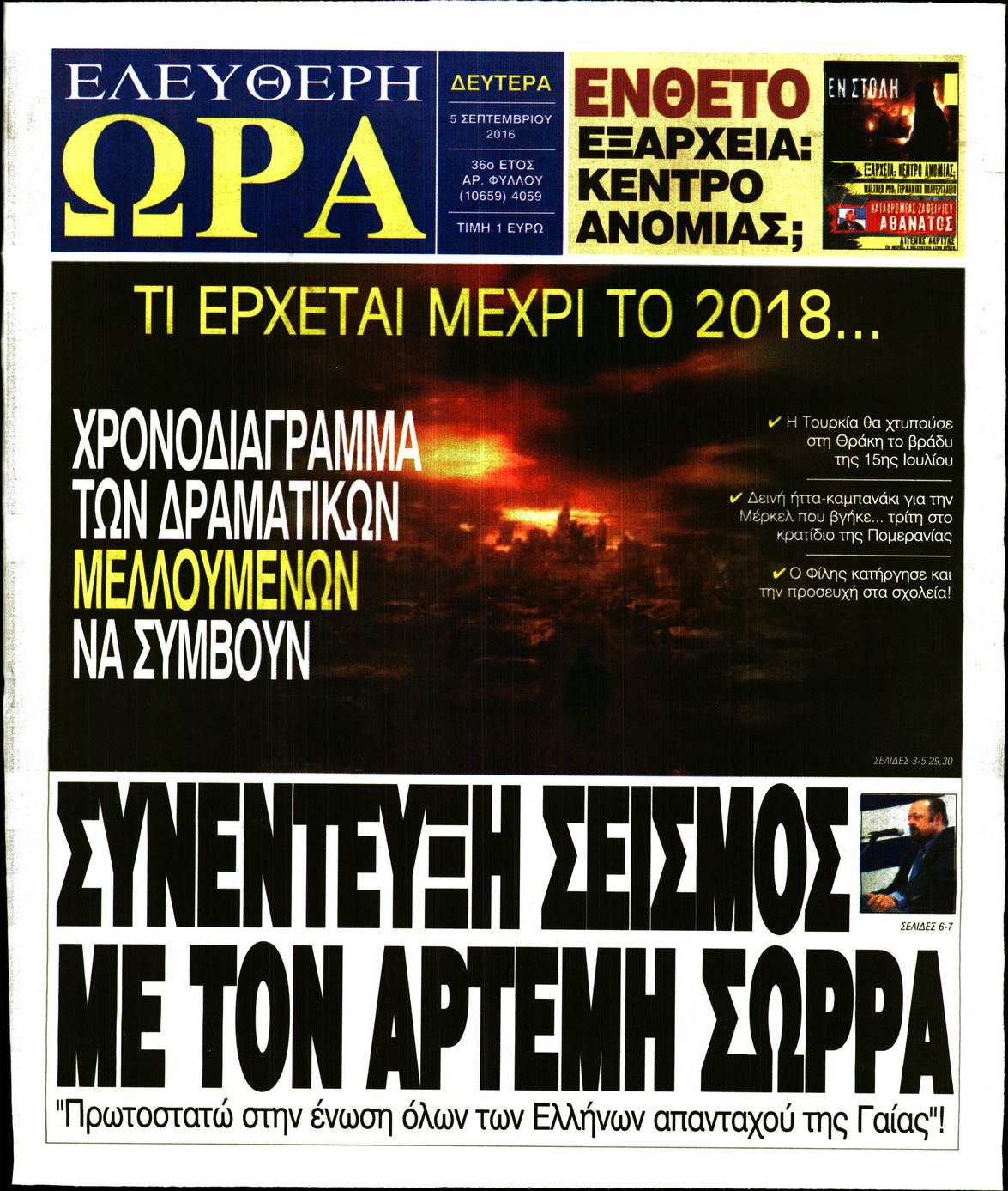 Οι πολιτικές εφημερίδες 5-9-2016 Enikos Newsroom 05:58, Δευτέρα 05 Σεπτεμβρίου 2016 Media Διαβάστε τα σημερινά πρωτοσέλιδα των πολιτικών εφημερίδων: ΠΟΛΙΤΙΚΕΣ ΕΦΗΜΕΡΙΔΕΣ ΠΡΩΤΟΣΕΛΙΔΑ Μοιράσου το: σχολίασε κι εσύ (0 σχόλια) Ακολουθήστε το enikos.gr στο Google News και μάθετε πρώτοι όλες τις ειδήσεις Δείτε όλες τις τελευταίες ειδήσεις από την Ελλάδα και τον Κόσμο στο enikos.gr Ειδήσεις Ροή Ειδήσεων 49 λεπτά πριν Ευρωπαϊκή Ένωση: Συμφωνία για δάνειο 90 δισ. ευρώ στην Ουκρανία τη διετία 2026-2027 5 ώρες πριν ΟΠΕΚΕΠΕ: Προφυλακιστέος ο φερόμενος αρχηγός και ο λογιστής της εγκληματικής οργάνωσης 6 ώρες πριν Αυξάνουν την πίεση προς την κυβέρνηση οι αγρότες: Κλείνουν παρακαμπτήριους και ανοίγουν διόδια – Τι θα γίνει τις γιορτές 6 ώρες πριν Φοινικούντα: Το Σάββατο απολογείται ο 30χρονος γιος γνωστού επιχειρηματία της Πλάκας που παραδόθηκε – Όσα είπε στους αστυνομικούς και ο ρόλος του στο έγκλημα 5 ώρες πριν ΑΕΚ – Κραϊόβα 3-2: Επική ανατροπή και πρόκριση στους «16» του Conference League η Ένωση 6 ώρες πριν Αρχαιολόγοι ανακάλυψαν ρωμαϊκά τεχνουργήματα από μια πόλη που δεν υπήρξε ποτέ – Τα τρία εντυπωσιακά κτίρια και ο αμφορέας με τις… σαρδέλες 7 ώρες πριν Ύπνος: Η απλή βραδινή ρουτίνα για να προστατεύσετε τα μαλλιά σας από το κρύο κατά τη διάρκεια του χειμώνα 8 ώρες πριν Manifesting: Πώς να συναντήσετε τον σύντροφο της ζωής σας, ανάλογα με τον μήνα γέννησής σας 2 ημέρες πριν 20 χρόνια τα Χριστούγεννα ξεκινούν στα Public με μεγάλη ποικιλία σε δώρα! 12 λεπτά πριν Αυστραλία: Κήρυξε την Κυριακή (21/12) ημέρα εθνικού πένθους για τη φονική επίθεση στην παραλία Μπόνταϊ 22 λεπτά πριν Ρόδος: Δάσκαλος καράτε καταδικάστηκε για ασέλγεια σε ανήλικες αθλήτριες – Μαρτυρίες για αγγίγματα σε ευαίσθητα σημεία 37 λεπτά πριν Γουατεμάλα: Εξαρθρώθηκε κύκλωμα διακίνησης μεταναστών προς τις ΗΠΑ – Συνελήφθησαν 14 άτομα 41 λεπτά πριν Βουλγαρία: Χιλιάδες πολίτες στους δρόμους κατά της απερχόμενης κυβέρνησης και της διαφθοράς 49 λεπτά πριν Ευρωπαϊκή Ένωση: Συμφωνία για δάνειο 90 δισ. ευρώ στην Ουκρανία τη διετία 2026-2027 ENIKOS NETWORK Σε περίοδο αυξημένης δραστηριότητας η γρίπη στην Ελλάδα-Μέτρα προστασίας από τον ΕΟΔΥ Σκέφτεστε συνέχεια συζητήσεις που έχετε κάνει; Τι σημαίνει αυτό, σύμφωνα με ειδικό Στεγαστικό: Τι λέει η ΠΟΜΙΔΑ για τα νέα μέτρα που ανακοίνωσε ο Κυριάκος Μητσοτάκης Λαγκάρντ: Αισιόδοξη για την ανάπτυξη της Ευρωζώνης, αβέβαιη για τον πληθωρισμό Χαρτογραφώντας το «σημείο χωρίς επιστροφή»: Για πρώτη φορά αποκαλύπτεται με λεπτομέρεια το ακανθώδες όριο της ατμόσφαιρας τ... Η Google καταργεί τη λειτουργία «dark web report» – Πώς θα μπορούν οι χρήστες να διαγράφουν τα δεδομένα τους περισσότερα 02:50 , Παρασκευή 19 Δεκεμβρίου 2025 GNTM: «Κλείδωσαν» οι τέσσερις φιναλίστ – Μεγάλη ανατροπή στις τελευταίες αποχωρήσεις Για προτελευταία φορά εμφανίστηκαν στο πλατό του GNTM οι φιναλίστ του φετινού κύκλου, το βράδυ... 17:45 , Πέμπτη 18 Δεκεμβρίου 2025 ROUK ZOUK: Εορταστικό επεισόδιο με καλεσμένους τους πρωταγωνιστές του «Γιατί ρε πατέρα» Το Σάββατο 20 Δεκεμβρίου στις 21:00, η Ζέτα Μακρυπούλια υποδέχεται εκλεκτούς ηθοποιούς που όλο... 17:20 , Πέμπτη 18 Δεκεμβρίου 2025 Άγιος έρωτας: Η Χριστίνα εξομολογείται στον πατέρα Νικόλαο, απόψε στις 21:00 στον Alpha Η Νότα αποφασίζει να εκδικηθεί τον Πέτρο και τον Στέφανο, για χάρη του Λούη, όμως τα πράγματα ... 16:50 , Πέμπτη 18 Δεκεμβρίου 2025 Να μ’ αγαπάς: Ζωή και Φωτεινή συμφιλιώνονται ως μάνα με κόρη, απόψε στις 20:00 Η ταυτότητα του Άγγελου αποκαλύπτεται στ