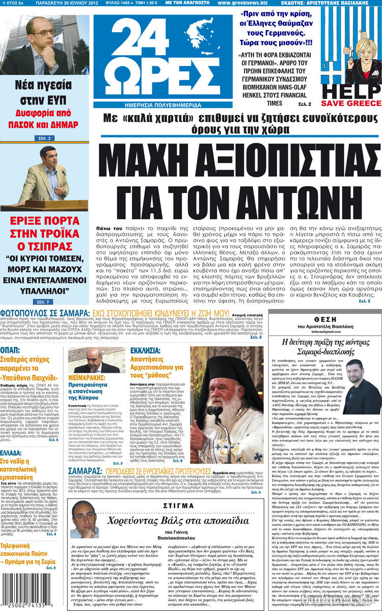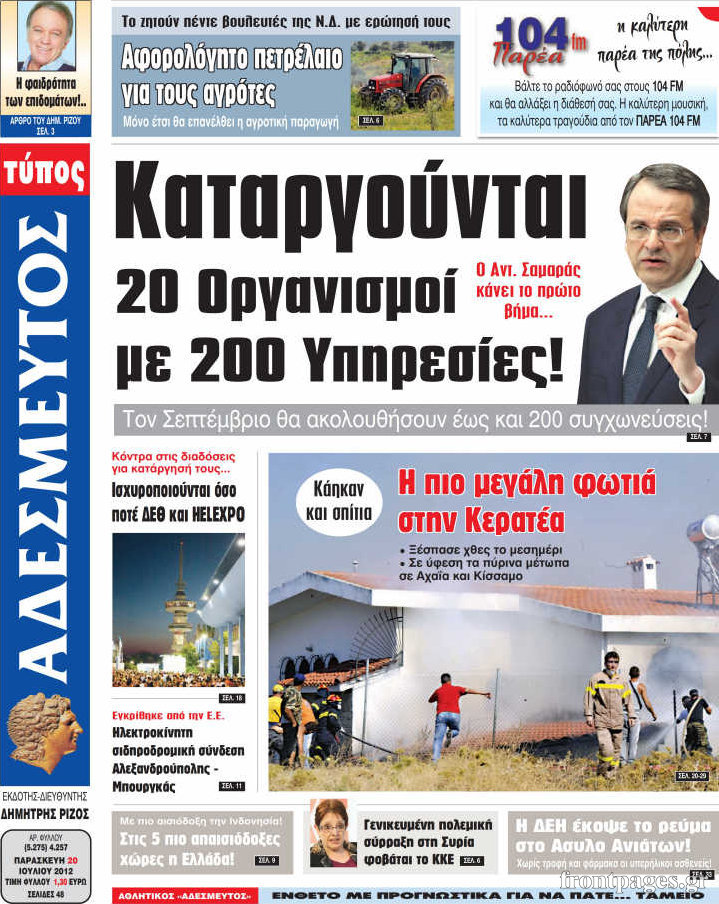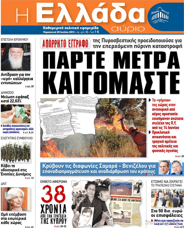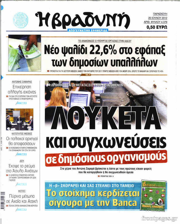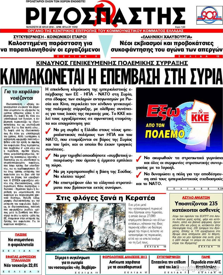 Τα σημερινά πρωτοσέλιδα των πολιτικών εφημερίδων.