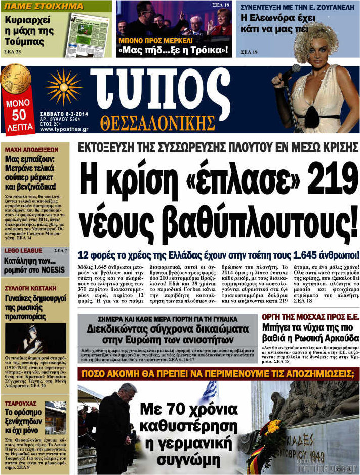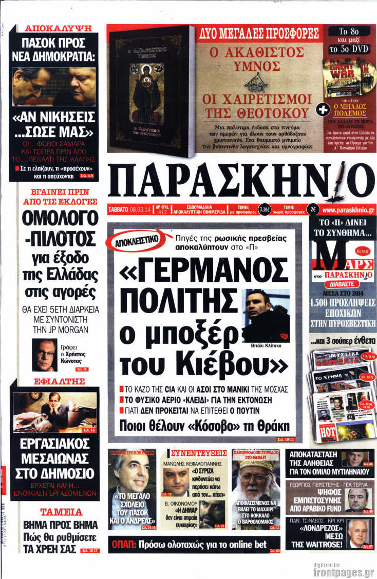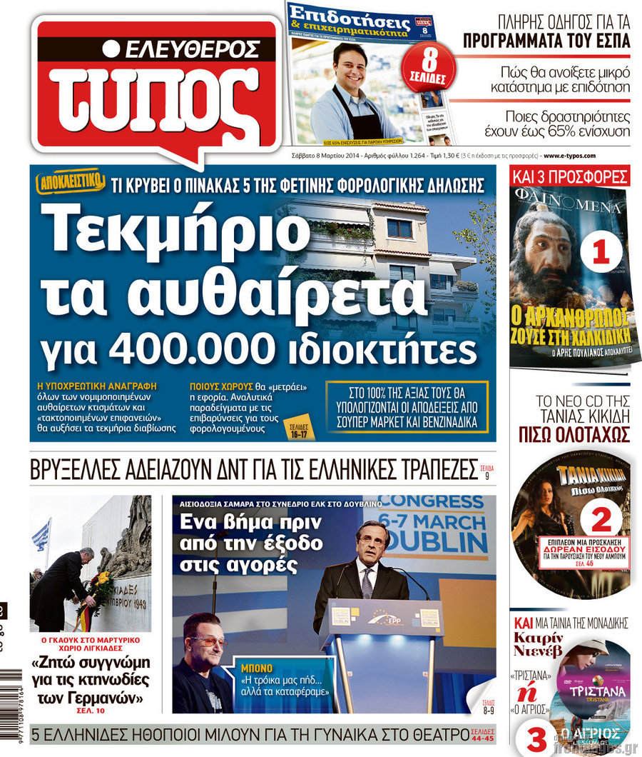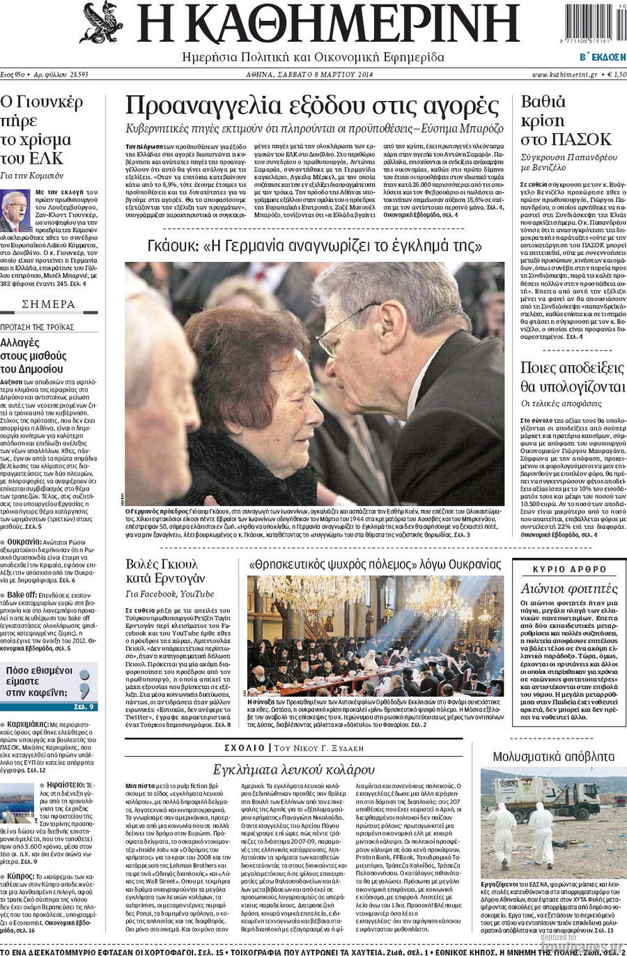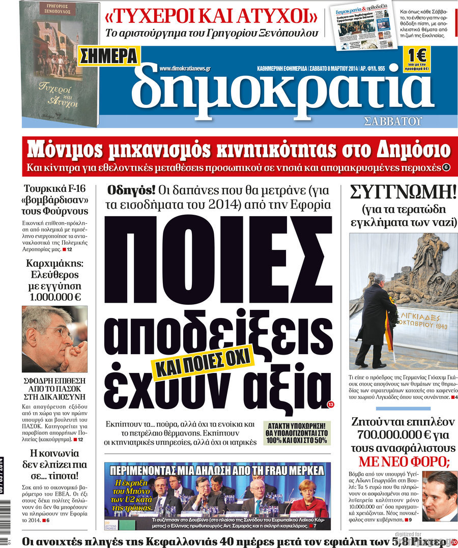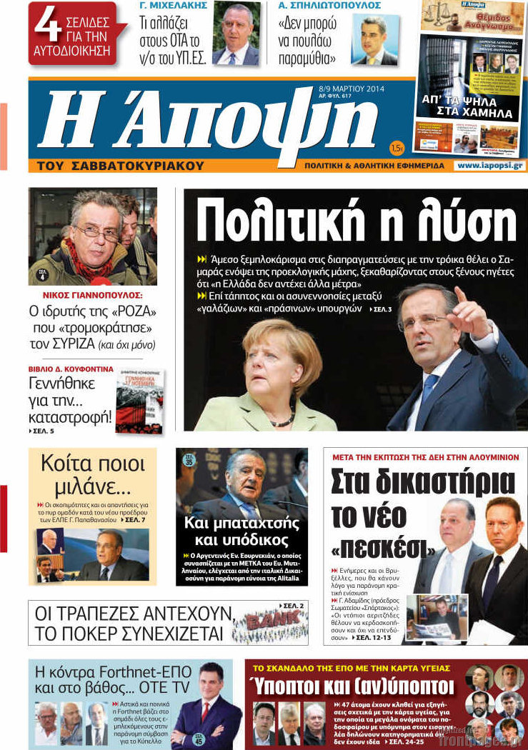 Οι πολιτικές εφημερίδες Enikos Newsroom 07:58, Σάββατο 08 Μαρτίου 2014 Media Οι πολιτικές εφημερίδες Διαβάστε τα πρωτοσέλιδα των πολιτικών εφημερίδων: ΕΦΗΜΕΡΙΔΕΣ ΠΟΛΙΤΙΚΕΣ ΕΦΗΜΕΡΙΔΕΣ ΠΡΩΤΟΣΕΛΙΔΑ Μοιράσου το: σχολίασε κι εσύ (0 σχόλια) Ακολουθήστε το enikos.gr στο Google News και μάθετε πρώτοι όλες τις ειδήσεις Δείτε όλες τις τελευταίες ειδήσεις από την Ελλάδα και τον Κόσμο στο enikos.gr Ειδήσεις Ροή Ειδήσεων 1 ώρα πριν Η κοινή διακήρυξη Ελλάδας – Κύπρου – Ισραήλ: Ενίσχυση αμυντικής συνεργασίας, δέσμευση για τον Great Sea Inteconnector – Τα μηνύματα της τριμερούς Συνόδου 1 ώρα πριν Αγρότες: Bάζουν στην άκρη τα τρακτέρ ενόψει Χριστουγέννων, θέμα ασφαλείας εγείρει η αστυνομία – Οι αναδιατάξεις που θα γίνουν από την Τρίτη 2 ώρες πριν Νεκρός ο άνδρας που έπεσε στις ράγες του Ηλεκτρικού στα Κάτω Πατήσια 4 ώρες πριν Αλεξανδρούπολη: Μήνυση υπέβαλε ο παππούς του 3χρονου που πέθανε από ασιτία – Αναζητούνται οι δράστες που τον ξυλοκόπησαν 5 ώρες πριν Προκλήσεις: Έστειλαν πάλι οπλισμένα F-16 στο Αιγαίο οι Τούρκοι – Παραβιάσεις και αερομαχίες 55 λεπτά πριν Το «μαγικό» υλικό της Αρχαιότητας βρίσκεται ακόμα ανάμεσά μας – Η επιστήμη έλυσε το μυστήριο 3 ώρες πριν Αριθμολογία: Η λέξη που σας χαρακτηρίζει, με βάση την ημερομηνία γέννησής σας – «Είναι η αύρα που εκπέμπετε πριν καν μιλήσετε» 2 ώρες πριν Ύπνος: Γιατρός μοιράζεται τα σημάδια που δείχνουν ότι μπορεί να πάσχετε από «ορμονική αϋπνία» 3 ημέρες πριν Enerwave: Το νέο «ρεύμα» στη λιανική ενέργειας που αλλάζει την εμπειρία του καταναλωτή 3 λεπτά πριν Μεγαλόπολη: Εξαρθρώθηκε συμμορία που είχε «ρημάξει» το Λιγνιτικό Κέντρο της ΔΕΗ – Έκλεβαν εξοπλισμό και καλώδια, πάνω από 400.000 ευρώ η ζημιά 13 λεπτά πριν Αλβανία: Επεισόδια σε αντικυβερνητική διαδήλωση στα Τίρανα – «Ανεχτήκαμε αρκετά» – ΒΙΝΤΕΟ 23 λεπτά πριν Ολυμπιακός: Έως και τρεις εβδομάδες εκτός ο Λορέντσο Πιρόλα 37 λεπτά πριν Επεισόδιο ξυλοδαρμού με ρόπαλα στην Πάτρα – Συνελήφθη 40χρονος 48 λεπτά πριν Γιώργος Λιάγκας για την προσωπική ζωή του: «Είμαι λίγο πιο εξωστρεφής, γιατί μεγάλωσαν τα παιδιά» ENIKOS NETWORK Στέλνετε ακόμα Χριστουγεννιάτικες κάρτες; Τι μπορεί να δείχνει για την προσωπικότητά σας Ενεργειακή αναβάθμιση του νοσοκομείου Πατρών «Ο Άγιος Ανδρέας» ΔΕΔΔΗΕ: Τάσεις αποκλιμάκωσης των ρευματοκλοπών αλλά παραμένουν σε υψηλά επίπεδα – Τι δείχνουν τα τελευταία στοιχεία ΥΠΑΑΤ – Ελληνική Αναπτυξιακή Τράπεζα: Συμφωνία για 3 νέα χρηματοδοτικά εργαλεία με μόχλευση πόρων 365 εκατ. ευρώ Ο Google Assistant θα παραμείνει λίγο περισσότερο για ορισμένους χρήστες Android Τεστ προσωπικότητας: Το βάζο που θα επιλέξετε αποκαλύπτει πώς λύνετε προβλήματα στη ζωή σας περισσότερα 20:16 , Δευτέρα 22 Δεκεμβρίου 2025 «Το παιδί από την αρχή»: Special edition επεισόδια της επιτυχημένης σειράς αρχίζουν από σήμερα στην ΕΡΤ1 «Το παιδί», η ξεχωριστή σειρά της ΕΡΤ1 με στοιχεία μαύρης κωμωδίας, που φέρει την υπογραφή του... 19:41 , Δευτέρα 22 Δεκεμβρίου 2025 Porto Leone: Στη γειτονιά με τα κόκκινα φανάρια – Η Αλεξάνδρα ανακαλύπτει το μυστικό της Γαλήνης και της στήνει παγίδα Απόψε στις 22:30 στον Alpha η συγκλονιστική συνέχεια της δραματικής σειράς του Apha «Porto Leo... 19:16 , Δευτέρα 22 Δεκεμβρίου 2025 Άγιος έρωτας: Η Πετρούλα αφήνει την τελευταία της πνοή Καθηλώνει το προτελευταίο επεισόδιο της χρονιάς της σειράς “Άγιος Έρωτας” απόψε στ... 18:39 , Δευτέρα 22 Δεκεμβρίου 2025 Να μ’αγαπάς: Ο Θεόφιλος απειλεί να καταστρέψει τη Ζωή Σοκαριστικές αποκαλύψεις έρχονται στο νέο επε