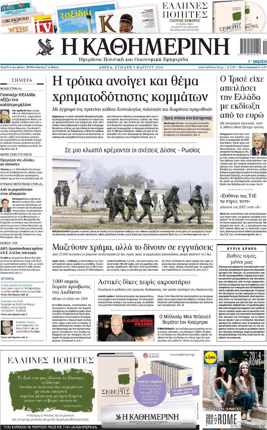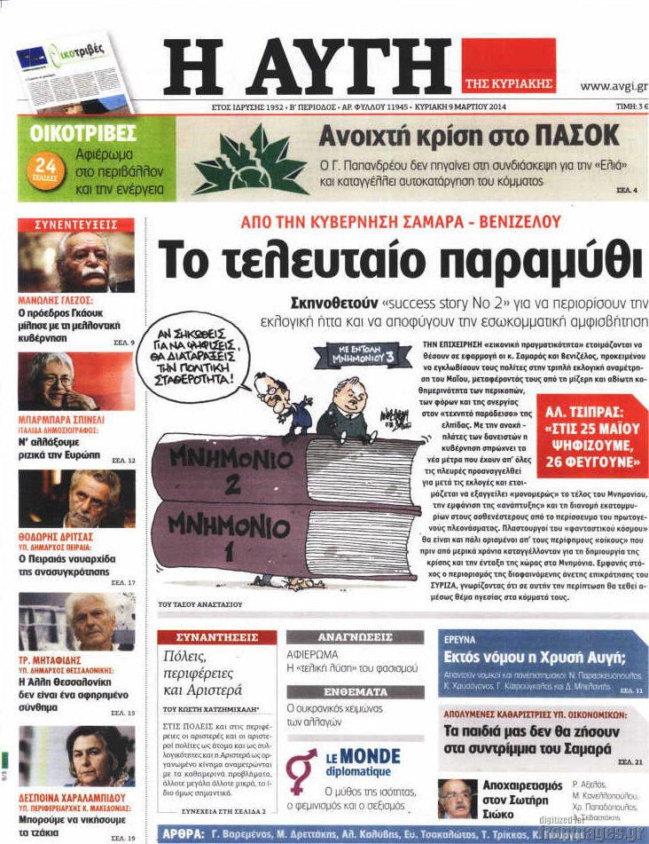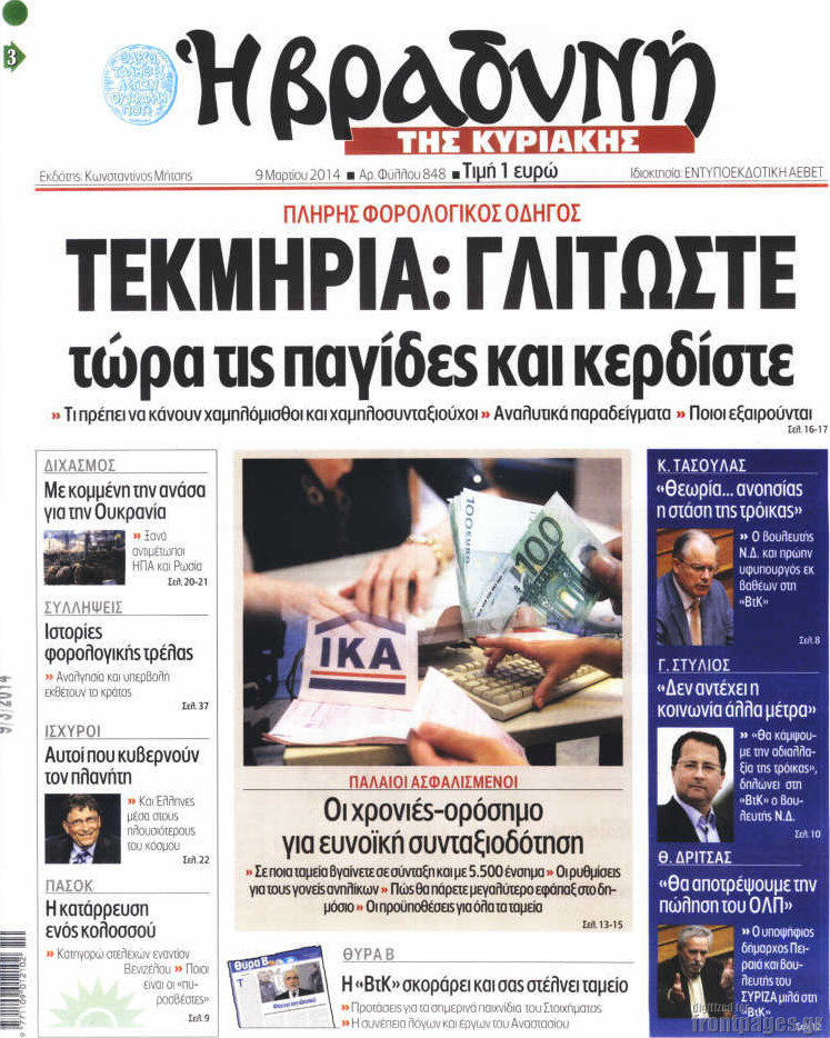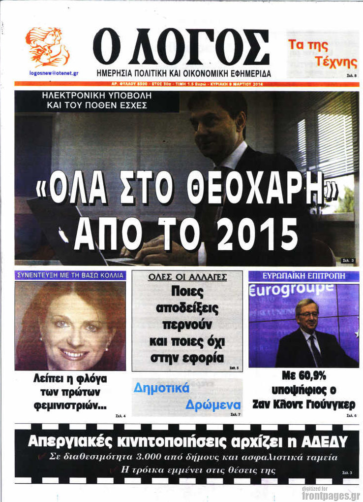 Οι πολιτικές εφημερίδες Enikos Newsroom 08:36, Κυριακή 09 Μαρτίου 2014 Media Οι πολιτικές εφημερίδες Διαβάστε τα πρωτοσέλιδα των πολιτικών εφημερίδων: ΕΦΗΜΕΡΙΔΕΣ ΠΟΛΙΤΙΚΕΣ ΕΦΗΜΕΡΙΔΕΣ ΠΡΩΤΟΣΕΛΙΔΑ Μοιράσου το: σχολίασε κι εσύ (0 σχόλια) Ακολουθήστε το enikos.gr στο Google News και μάθετε πρώτοι όλες τις ειδήσεις Δείτε όλες τις τελευταίες ειδήσεις από την Ελλάδα και τον Κόσμο στο enikos.gr Ειδήσεις Ροή Ειδήσεων 51 λεπτά πριν Με εκτροπές η έξοδος των εκδρομέων για τις γιορτές – Τι ισχύει με τα μπλόκα των αγροτών, άνοιξαν 2 λωρίδες προς Αθήνα στα Μάλγαρα 3 ώρες πριν Μητσοτάκης στο Υπουργικό Συμβούλιο για αγροτικές κινητοποιήσεις: Η κυβέρνηση δεν πρόκειται να υποκύψει σε εκβιασμούς 37 λεπτά πριν Μπλόκα της Τροχαίας: «Λερναία Ύδρα» τα γκρουπ στο Viber που προειδοποιούν για ελέγχους – Το «γκρίζο» νομικό τοπίο και οι νόμιμες εφαρμογές 54 λεπτά πριν ΗΠΑ: Δημοσιεύθηκαν επιπλέον 8.000 έγγραφα του φακέλου Έπσταϊν – Ορισμένοι σύνδεσμοι δεν οδηγούν πουθενά 2 ώρες πριν Ιλίσια: Έπεσε ασανσέρ σε σούπερ μάρκετ – Σοβαρά τραυματισμένος ο συντηρητής 5 ώρες πριν Αυτά τα 4 ζώδια έχουν πολλά να περιμένουν μετά τη σημερινή ημέρα – «Έρχονται υπέροχα νέα» 4 ώρες πριν Αν πίνετε τον καφέ σας σκέτο, πιθανότατα διαθέτετε αυτά τα 7 ισχυρά χαρακτηριστικά 3 ώρες πριν Απώλεια βάρους: Γυναίκα που έχασε 10 κιλά λίπους μοιράζεται 4 «ρεαλιστικές» συμβουλές – «Δώστε προτεραιότητα στον ύπνο» 6 ώρες πριν Η Coca-Cola και ο Ελληνικός Ερυθρός Σταυρός μαζί αυτά τα Χριστούγεννα: Μια μεγάλη αγκαλιά για τους συνανθρώπους μας που έχουν ανάγκη 2 λεπτά πριν Μυστήριο στο Διάστημα: Επιστήμονες εντόπισαν ένα «πρωτοφανές φαινόμενο» γύρω από το «Μάτι του Σάουρον», μόλις 25 έτη φωτός από τη Γη 9 λεπτά πριν Mega χριστουγεννιάτικη φορολοταρία: Μπείτε εδώ να δείτε εάν κερδίσατε 100.000 ευρώ 16 λεπτά πριν ΚΚΕ: Η αθλιότητα της κυβέρνησης έχει ξεπεράσει κάθε όριο – Κλείνει τους δρόμους που αφήνουν ανοιχτούς οι αγρότες 24 λεπτά πριν Ηράκλειο: Έπεσε σοβάς από το κτίριο του Εργατικού Κέντρου – «Κινδυνεύουν ανθρώπινες ζωές» 31 λεπτά πριν Ευρωκοινοβούλιο: Έβγαλε ταυτότητα στον… Άγιο Βασίλη – Εξηγεί με χιουμοριστικό τρόπο τα οφέλη της Σένγκεν ENIKOS NETWORK Μπορεί η σοκολάτα να επιβραδύνει τη γήρανση; Τι ρόλο παίζει η θεοβρωμίνη Θεμιστοκλέους: Δεν υφίσταται λόγος ανησυχίας για την εποχική γρίπη Mega χριστουγεννιάτικη φορολοταρία: Μπείτε εδώ να δείτε εάν κερδίσατε 100.000 ευρώ Μητσοτάκης: Δύο παραδείγματα για τα οφέλη που θα έχουν οι συνταξιούχοι από την πολιτική της κυβέρνησης- Τι είπε για κατώτατ... Ο Google Assistant θα παραμείνει λίγο περισσότερο για ορισμένους χρήστες Android Τεστ προσωπικότητας: Το βάζο που θα επιλέξετε αποκαλύπτει πώς λύνετε προβλήματα στη ζωή σας περισσότερα 14:03 , Τρίτη 23 Δεκεμβρίου 2025 Έξοδος εκδρομέων για τα Χριστούγεννα: Στείλε βίντεο ή φωτογραφίες στο enikos.gr – Αποθήκευσε τον αριθμό 6944 05 05 05 Πολλοί έχουν επιλέξει να περάσουν τις γιορτές εκτός πόλης, ωστόσο και φέτος η μαζική έξοδος απ... 10:34 , Τρίτη 23 Δεκεμβρίου 2025 Την Κυριακή με τη Realnews: Ό,τι και αν αγοράσεις, σκανάρεις και κερδίζεις! Την Κυριακή με τη Realnews: Ό,τι και αν αγοράσεις, σκανάρεις και κερδίζεις! Με το PADU app, το... 07:01 , Τρίτη 23 Δεκεμβρίου 2025 Την Κυριακή με τη Realnews: Δωροεπιταγή 10€ Την Κυριακή με τη Realnews: Δωροεπιταγή 10€ Δωροεπιταγή αξίας 10€ για αγορές άνω των 60€ από τ... 20:16 , Δευτέρα 22 Δεκεμβρίου 2025 «Το παιδί από την αρχή»: Special edition επεισόδια της επιτυχημένης σειράς αρχίζουν από σήμερα στην ΕΡΤ1 «Το