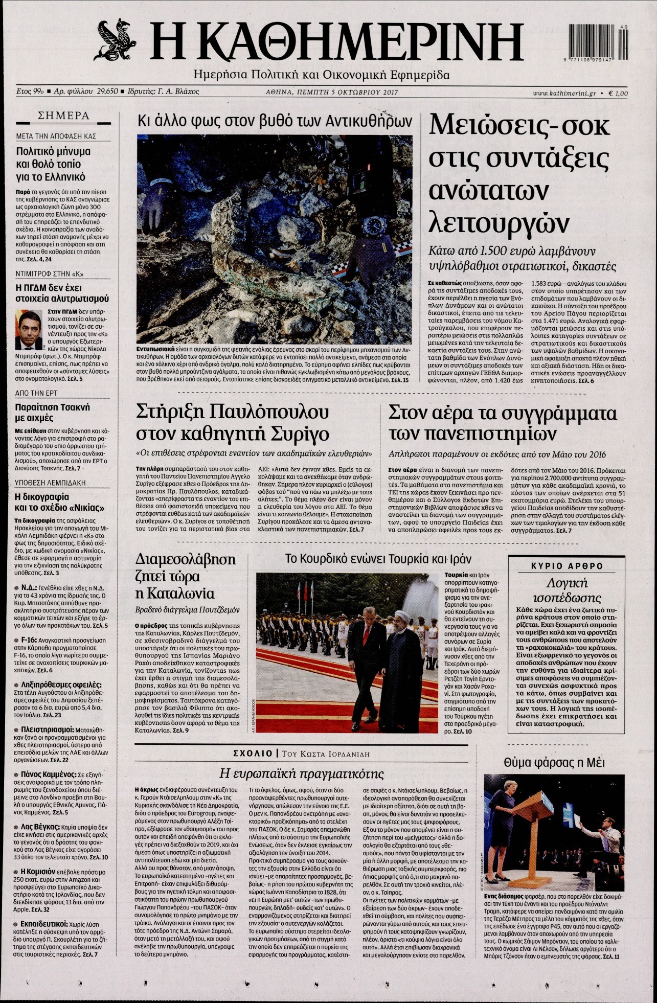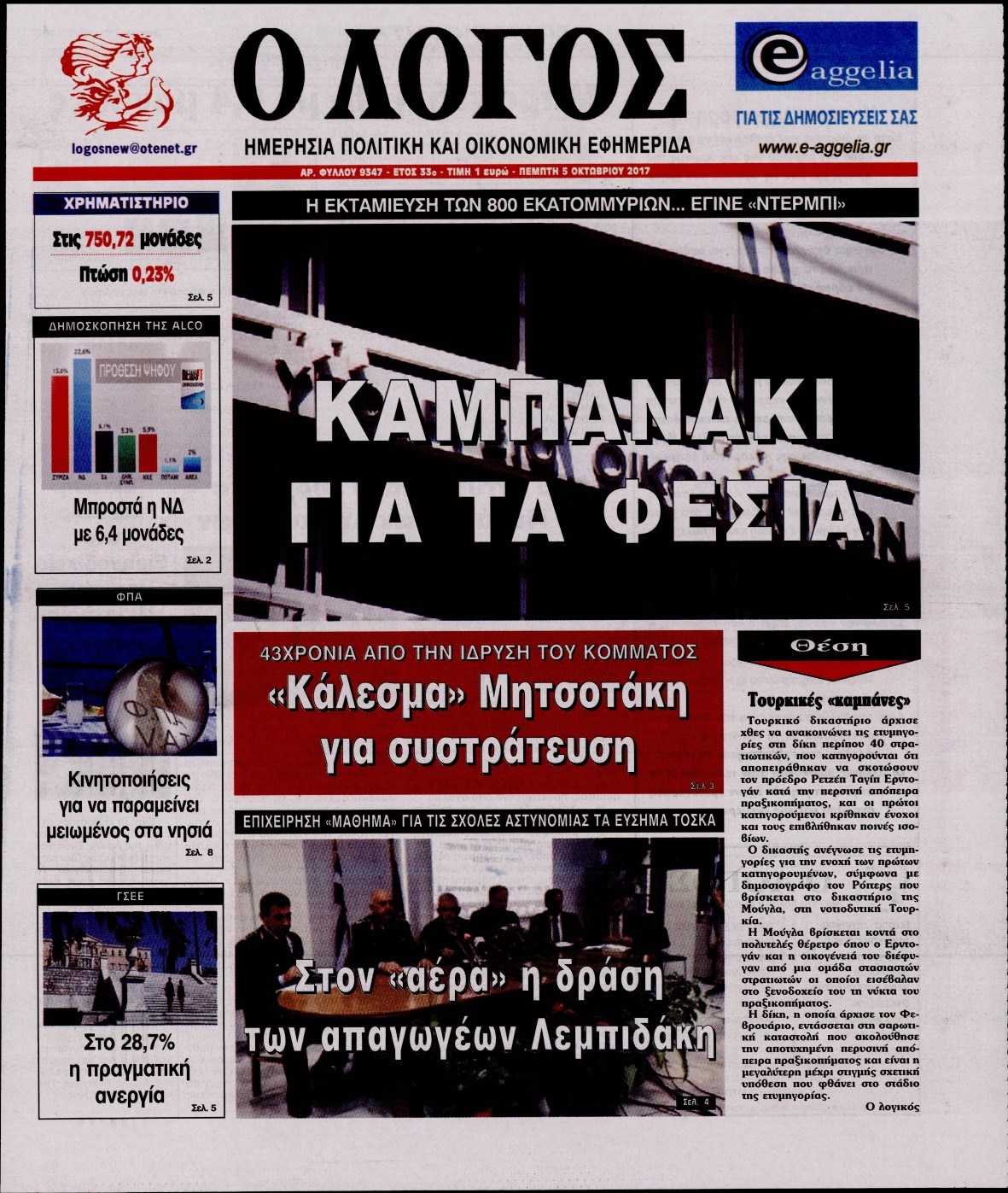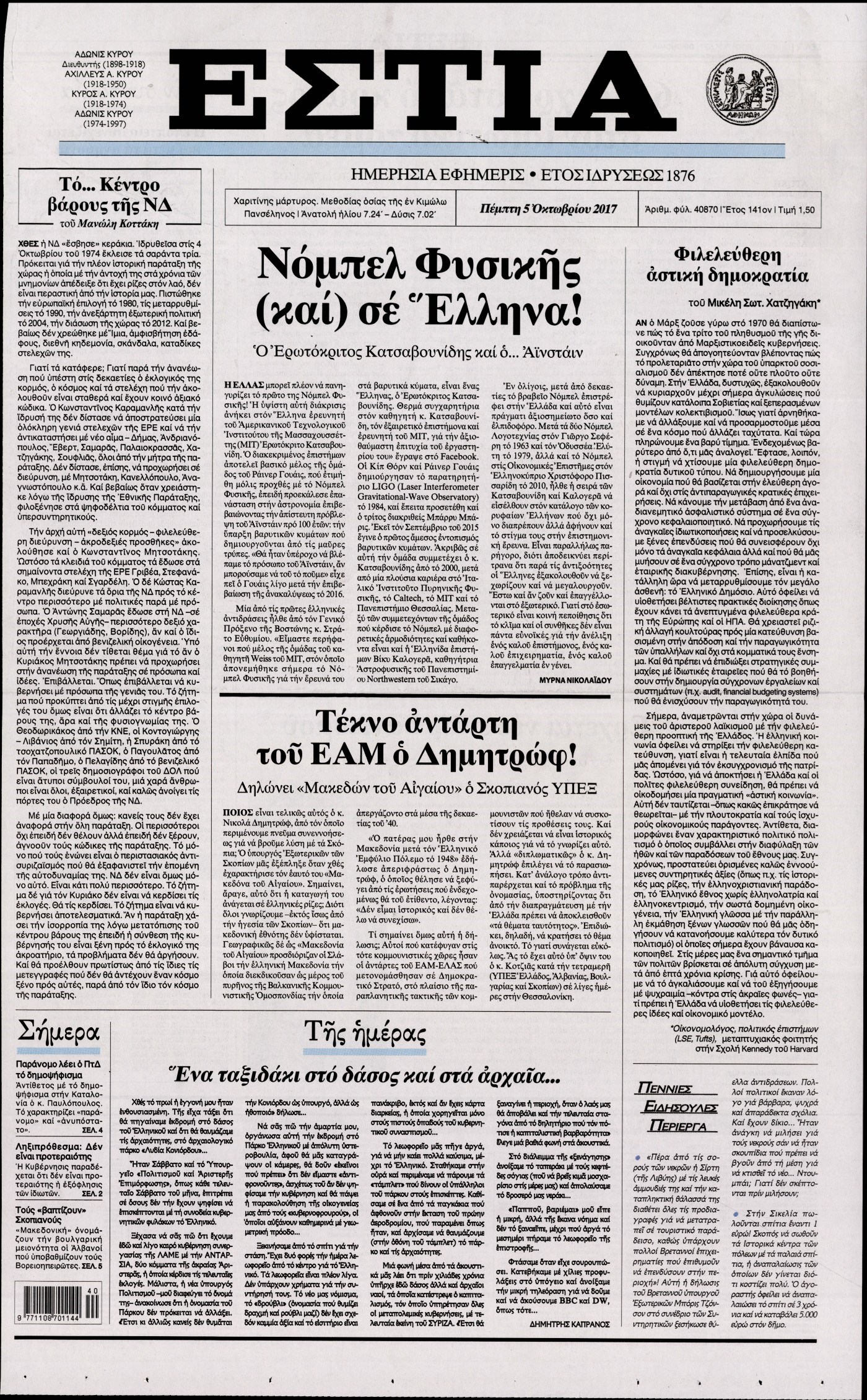 Οι πολιτικές εφημερίδες 5/10/2017 Enikos Newsroom 07:54, Πέμπτη 05 Οκτωβρίου 2017 Media Διαβάστε τα σημερινά πρωτοσέλιδα των πολιτικών εφημερίδων: ΠΟΛΙΤΙΚΕΣ ΕΦΗΜΕΡΙΔΕΣ ΠΡΩΤΟΣΕΛΙΔΑ Μοιράσου το: σχολίασε κι εσύ (0 σχόλια) Ακολουθήστε το enikos.gr στο Google News και μάθετε πρώτοι όλες τις ειδήσεις Δείτε όλες τις τελευταίες ειδήσεις από την Ελλάδα και τον Κόσμο στο enikos.gr Ειδήσεις Ροή Ειδήσεων 34 λεπτά πριν Μεσόγειος: Η διαδρομή του ρωσικού τάνκερ «Qendil» και η στοχευμένη επίθεση της Ουκρανίας με drone – Ο Πούτιν προειδοποίησε για αντίποινα 28 λεπτά πριν Αττική: Θρίλερ με νεκρό βρέφος 5 μηνών – Κοιμόταν στο ίδιο κρεβάτι με τους γονείς του 1 ώρα πριν Από το Ορμένιο ως τα Μάλγαρα κι από τη Σιάτιστα μέχρι τη Νίκαια: Μπλόκα σε όλη την Ελλάδα – Το Σάββατο ανοίγουν τα διόδια οι αγρότες 1 ώρα πριν «Έλληνας Εσκομπάρ»: Φωτογραφίες με τους 4 τόνους κοκαΐνης που κατασχέθηκαν από το σκάφος «Ουρανία» 3 ώρες πριν Πούτιν: Σαρκαστικά μηνύματα, παράπονα και απρόοπτα στη συνέντευξη Τύπου – Η πρόταση γάμου on air και οι ερωτήσεις για τα αγγούρια και τους… εξωγήινους 2 ώρες πριν Τα 5 ζώδια που ευνοούνται στην ερωτική ζωή τους την επόμενη εβδομάδα – «Η ενέργεια του Αιγόκερου φέρνει αγάπη και σταθερότητα» 6 ώρες πριν Ειδικός μοιράζεται 6 κόλπα για να διατηρείστε σε φόρμα με πάνω από 40 ώρες εργασίας την εβδομάδα: «Προπονηθείτε πριν από τη δουλειά, όχι μετά» 3 ώρες πριν Αυτό το έξυπνο μαθηματικό κόλπο θα μπορούσε να αλλάξει τον τρόπο με τον οποίο οι επιστήμονες μελετούν τους σεισμούς 1 ώρα πριν Κουίζ για την παλιά Αθήνα: Αναγνωρίζετε την περιοχή; Έχετε περάσει 100% από εκεί 3 λεπτά πριν Επίσημη η «βόμβα»: Ο ΠΑΟΚ ανακοίνωσε την απόκτηση του Πάτρικ Μπέβερλι 7 λεπτά πριν Θεσσαλονίκη: Πατέρας εγκαλεί τον Ιατρικό Σύλλογο για ποινές «χάδι» σε γιατρό που κατηγορείται για τον θάνατο του παιδιού του 14 λεπτά πριν Κερατσίνι: Αστυνομικός εκτός υπηρεσίας απέτρεψε κλοπή μηχανών – Συνελήφθησαν τρεις ανήλικοι 17 λεπτά πριν Το σόι σου: Ο Άρης έρχεται στην Ελλάδα για τις γιορτές των Χριστουγέννων – Τι θα δούμε στο αποψινό εορταστικό επεισόδιο 24 λεπτά πριν ΠΑΣΟΚ σε Μαρινάκη: Δεν νομιμοποιούμε πολιτικές επιλογές που μεταφέρουν το πρόβλημα από υπηρεσία σε υπηρεσία ENIKOS NETWORK «Η σούπερ» γρίπη εξαπλώνεται στην Ευρώπη-Στοιχεία για την αποτελεσματικότητα του εμβολίου από το ECDC ΕΛΣΤΑΤ: Αύξηση κατά 1,7% των επαγγελματιών υγείας το 2024 Η απάντηση της κυβέρνησης στα αιτήματα των αγροτών: 16 έχουν ικανοποιηθεί, 4 βρίσκονται υπό επεξεργασία και 7 δεν είναι εφι... Μισθολογική διαφάνεια: Το 68% των εργαζομένων αγνοεί τη νέα οδηγία – Αναλυτικά τα στοιχεία έρευνας Χαρτογραφώντας το «σημείο χωρίς επιστροφή»: Για πρώτη φορά αποκαλύπτεται με λεπτομέρεια το ακανθώδες όριο της ατμόσφαιρας τ... Η Google καταργεί τη λειτουργία «dark web report» – Πώς θα μπορούν οι χρήστες να διαγράφουν τα δεδομένα τους περισσότερα 18:11 , Παρασκευή 19 Δεκεμβρίου 2025 Το σόι σου: Ο Άρης έρχεται στην Ελλάδα για τις γιορτές των Χριστουγέννων – Τι θα δούμε στο αποψινό εορταστικό επεισόδιο Ένα απολαυστικό, εορταστικό επεισόδιο της σειράς “Το σόι σου”, γεμάτο ευτράπελα αλ... 15:15 , Παρασκευή 19 Δεκεμβρίου 2025 Την Κυριακή με τη Realnews: Ό,τι και αν αγοράσεις, σκανάρεις και κερδίζεις! Την Κυριακή με τη Realnews: Ό,τι και αν αγοράσεις, σκανάρεις και κερδίζεις! Με το PADU app, το... 08:00 , Παρασκευή 19 Δεκεμβρίου 2025 Την Κυριακή με τη Realnews: Δωροεπιταγή 10€ Δωροεπιταγή αξίας 10€ για αγορές άνω των 60€ από τα πολυκαταστήμ