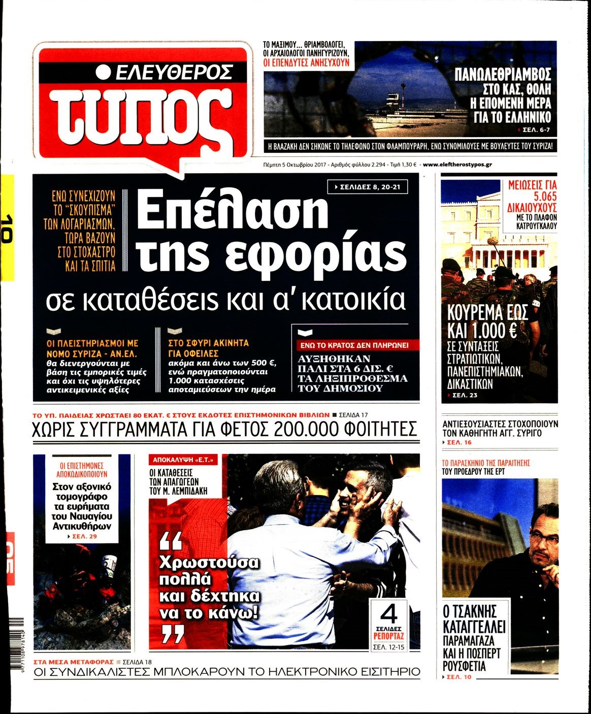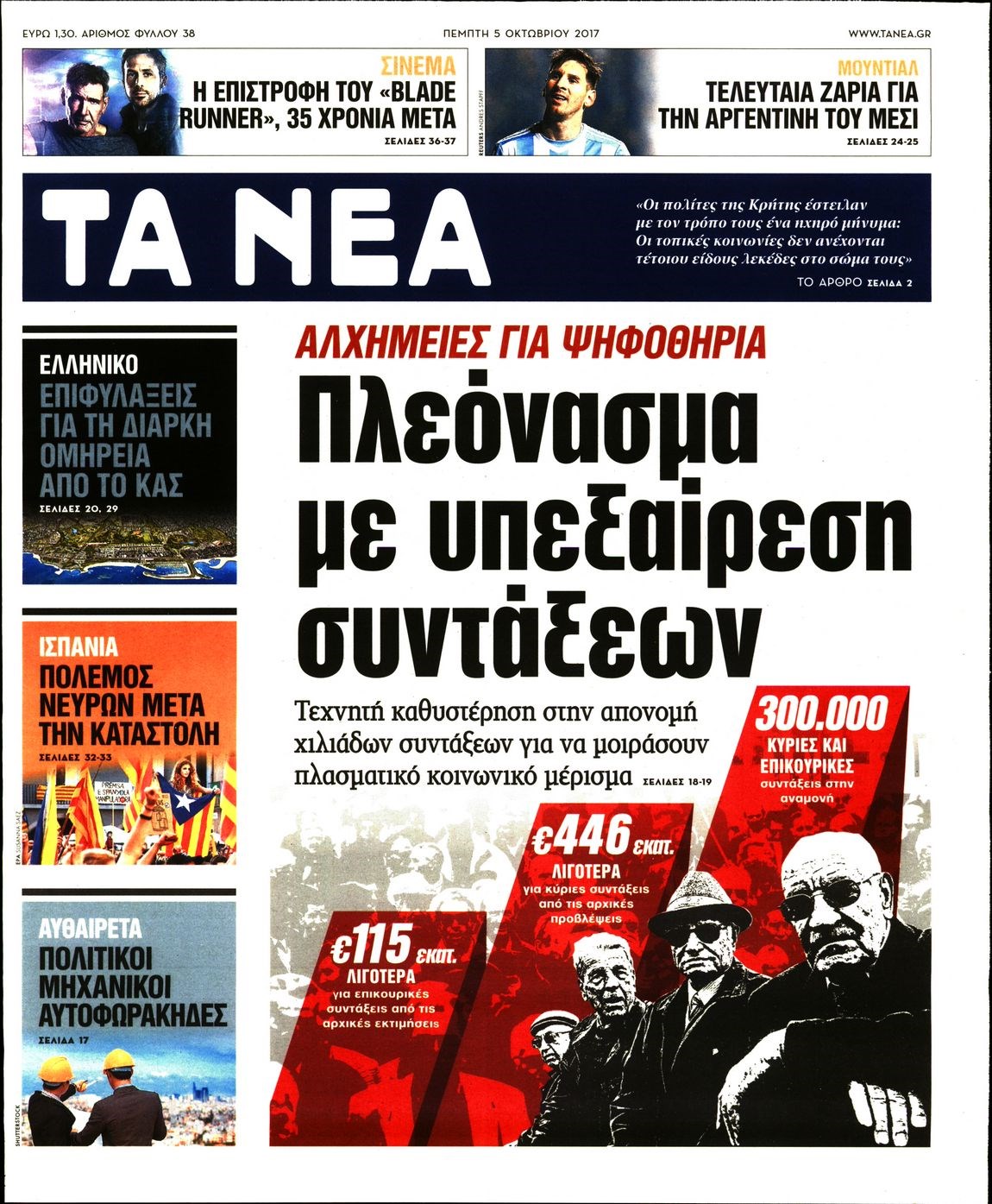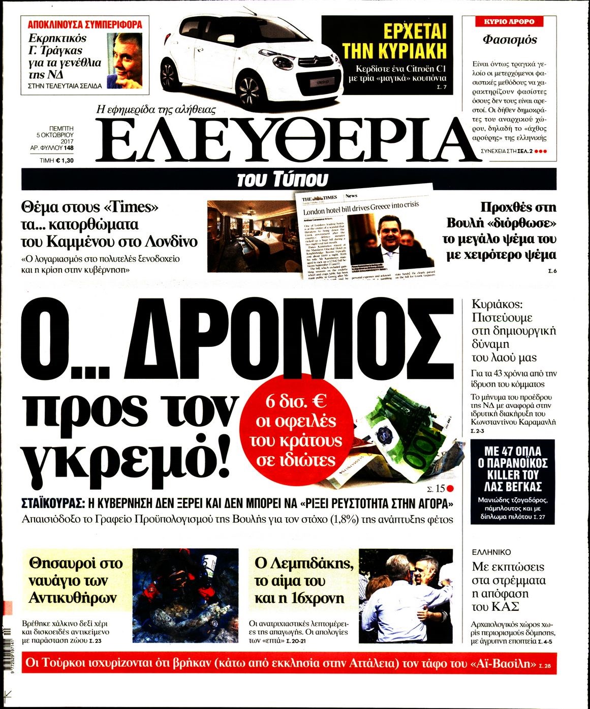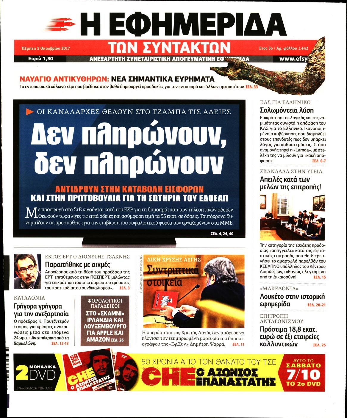 Οι πολιτικές εφημερίδες 5/10/2017 Enikos Newsroom 07:54, Πέμπτη 05 Οκτωβρίου 2017 Media Διαβάστε τα σημερινά πρωτοσέλιδα των πολιτικών εφημερίδων: ΠΟΛΙΤΙΚΕΣ ΕΦΗΜΕΡΙΔΕΣ ΠΡΩΤΟΣΕΛΙΔΑ Μοιράσου το: σχολίασε κι εσύ (0 σχόλια) Ακολουθήστε το enikos.gr στο Google News και μάθετε πρώτοι όλες τις ειδήσεις Δείτε όλες τις τελευταίες ειδήσεις από την Ελλάδα και τον Κόσμο στο enikos.gr Ειδήσεις Ροή Ειδήσεων 34 λεπτά πριν Μεσόγειος: Η διαδρομή του ρωσικού τάνκερ «Qendil» και η στοχευμένη επίθεση της Ουκρανίας με drone – Ο Πούτιν προειδοποίησε για αντίποινα 28 λεπτά πριν Αττική: Θρίλερ με νεκρό βρέφος 5 μηνών – Κοιμόταν στο ίδιο κρεβάτι με τους γονείς του 1 ώρα πριν Από το Ορμένιο ως τα Μάλγαρα κι από τη Σιάτιστα μέχρι τη Νίκαια: Μπλόκα σε όλη την Ελλάδα – Το Σάββατο ανοίγουν τα διόδια οι αγρότες 1 ώρα πριν «Έλληνας Εσκομπάρ»: Φωτογραφίες με τους 4 τόνους κοκαΐνης που κατασχέθηκαν από το σκάφος «Ουρανία» 3 ώρες πριν Πούτιν: Σαρκαστικά μηνύματα, παράπονα και απρόοπτα στη συνέντευξη Τύπου – Η πρόταση γάμου on air και οι ερωτήσεις για τα αγγούρια και τους… εξωγήινους 2 ώρες πριν Τα 5 ζώδια που ευνοούνται στην ερωτική ζωή τους την επόμενη εβδομάδα – «Η ενέργεια του Αιγόκερου φέρνει αγάπη και σταθερότητα» 6 ώρες πριν Ειδικός μοιράζεται 6 κόλπα για να διατηρείστε σε φόρμα με πάνω από 40 ώρες εργασίας την εβδομάδα: «Προπονηθείτε πριν από τη δουλειά, όχι μετά» 3 ώρες πριν Αυτό το έξυπνο μαθηματικό κόλπο θα μπορούσε να αλλάξει τον τρόπο με τον οποίο οι επιστήμονες μελετούν τους σεισμούς 1 ώρα πριν Κουίζ για την παλιά Αθήνα: Αναγνωρίζετε την περιοχή; Έχετε περάσει 100% από εκεί 3 λεπτά πριν Επίσημη η «βόμβα»: Ο ΠΑΟΚ ανακοίνωσε την απόκτηση του Πάτρικ Μπέβερλι 7 λεπτά πριν Θεσσαλονίκη: Πατέρας εγκαλεί τον Ιατρικό Σύλλογο για ποινές «χάδι» σε γιατρό που κατηγορείται για τον θάνατο του παιδιού του 14 λεπτά πριν Κερατσίνι: Αστυνομικός εκτός υπηρεσίας απέτρεψε κλοπή μηχανών – Συνελήφθησαν τρεις ανήλικοι 17 λεπτά πριν Το σόι σου: Ο Άρης έρχεται στην Ελλάδα για τις γιορτές των Χριστουγέννων – Τι θα δούμε στο αποψινό εορταστικό επεισόδιο 24 λεπτά πριν ΠΑΣΟΚ σε Μαρινάκη: Δεν νομιμοποιούμε πολιτικές επιλογές που μεταφέρουν το πρόβλημα από υπηρεσία σε υπηρεσία ENIKOS NETWORK «Η σούπερ» γρίπη εξαπλώνεται στην Ευρώπη-Στοιχεία για την αποτελεσματικότητα του εμβολίου από το ECDC ΕΛΣΤΑΤ: Αύξηση κατά 1,7% των επαγγελματιών υγείας το 2024 Η απάντηση της κυβέρνησης στα αιτήματα των αγροτών: 16 έχουν ικανοποιηθεί, 4 βρίσκονται υπό επεξεργασία και 7 δεν είναι εφι... Μισθολογική διαφάνεια: Το 68% των εργαζομένων αγνοεί τη νέα οδηγία – Αναλυτικά τα στοιχεία έρευνας Χαρτογραφώντας το «σημείο χωρίς επιστροφή»: Για πρώτη φορά αποκαλύπτεται με λεπτομέρεια το ακανθώδες όριο της ατμόσφαιρας τ... Η Google καταργεί τη λειτουργία «dark web report» – Πώς θα μπορούν οι χρήστες να διαγράφουν τα δεδομένα τους περισσότερα 18:11 , Παρασκευή 19 Δεκεμβρίου 2025 Το σόι σου: Ο Άρης έρχεται στην Ελλάδα για τις γιορτές των Χριστουγέννων – Τι θα δούμε στο αποψινό εορταστικό επεισόδιο Ένα απολαυστικό, εορταστικό επεισόδιο της σειράς “Το σόι σου”, γεμάτο ευτράπελα αλ... 15:15 , Παρασκευή 19 Δεκεμβρίου 2025 Την Κυριακή με τη Realnews: Ό,τι και αν αγοράσεις, σκανάρεις και κερδίζεις! Την Κυριακή με τη Realnews: Ό,τι και αν αγοράσεις, σκανάρεις και κερδίζεις! Με το PADU app, το... 08:00 , Παρασκευή 19 Δεκεμβρίου 2025 Την Κυριακή με τη Realnews: Δωροεπιταγή 10€ Δωροεπιταγή αξίας 10€ για αγορές άνω των 60€ από τα πολυκαταστήμ