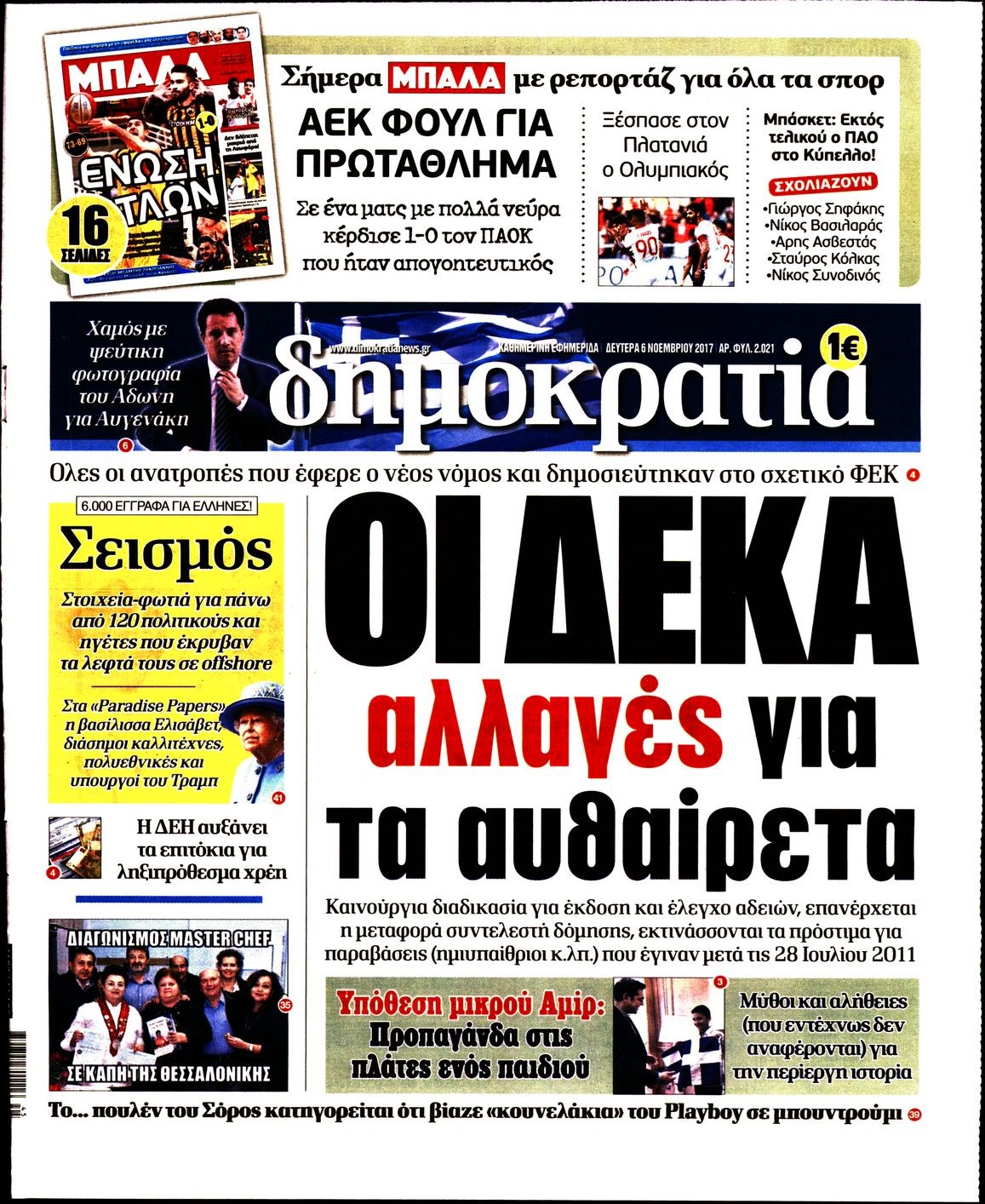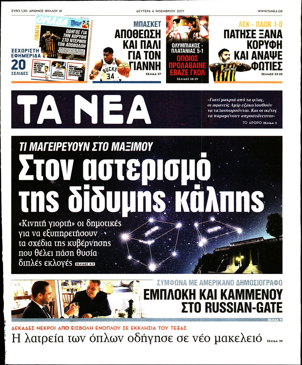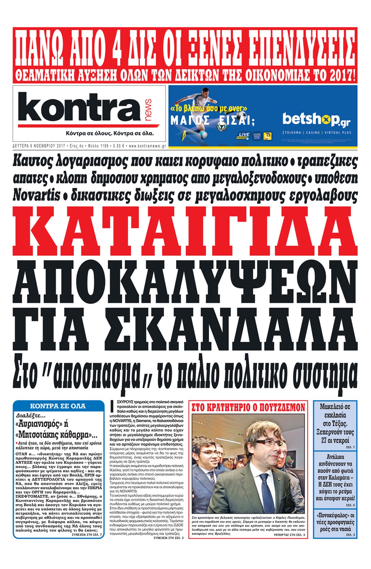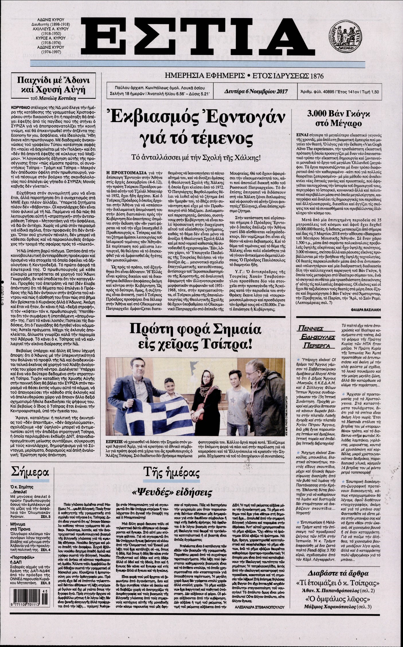 Οι πολιτικές εφημερίδες 5/11/2017 Enikos Newsroom 07:37, Δευτέρα 06 Νοεμβρίου 2017 Media Διαβάστε τα σημερινά πρωτοσέλιδα των πολιτικών εφημερίδων: ΠΟΛΙΤΙΚΕΣ ΕΦΗΜΕΡΙΔΕΣ ΠΡΩΤΟΣΕΛΙΔΑ Μοιράσου το: σχολίασε κι εσύ (0 σχόλια) Ακολουθήστε το enikos.gr στο Google News και μάθετε πρώτοι όλες τις ειδήσεις Δείτε όλες τις τελευταίες ειδήσεις από την Ελλάδα και τον Κόσμο στο enikos.gr Ειδήσεις Ροή Ειδήσεων 6 ώρες πριν Χριστούγεννα στα μπλόκα: Επιμένουν στις κινητοποιήσεις τους οι αγρότες – Ανοίγουν τα διόδια το Σαββατοκύριακο 7 ώρες πριν Ουκρανία: Η άνευ προηγουμένου επίθεση σε ρωσικό τάνκερ στη Μεσόγειο και το μήνυμα προς στον Πούτιν – Το «μακρύ χέρι» του Κιέβου 6 ώρες πριν Πούτιν: Τα μηνύματα σε Ευρώπη και ΝΑΤΟ από το μαραθώνιο «σόου» του – Η απαίτηση για «σεβασμό» και η ειρήνη «με τους όρους» της Μόσχας 7 ώρες πριν Τραμπ: Δεν αποκλείει την πιθανότητα ενός πολέμου στη Βενεζουέλα – «Ο Μαδούρο ξέρει καλύτερα από τον καθένα τι ακριβώς θέλω» 8 ώρες πριν Συνεχίζει να προκαλεί ο Μίτσκοσκι: «Για μένα το όνομα Μακεδονία είναι ιερό» 6 ώρες πριν Ανακαλύφθηκαν αρχαία χρυσά νομίσματα 2.200 ετών που απεικονίζουν τον θεό Απόλλωνα – Η άγνωστη σύνδεση με τον Φίλιππο Β΄ της Μακεδονίας 7 ώρες πριν Ύπνος: Μια κρυφή κατάσταση του εγκεφάλου πριν από τον ύπνο μπορεί να είναι το “κλειδί” για υψηλή ευφυΐα και δημιουργικότητα 8 ώρες πριν Αριθμολογία: Οι άνθρωποι που έχουν γεννηθεί αυτές τις 4 ημερομηνίες, συχνά παρεξηγούνται – «Η καλοσύνη τους κρύβει τεράστια δύναμη» 9 ώρες πριν Ξεχάστε το καθάρισμα το Σαββατοκύριακο: Ο «κανόνας των 20 λεπτών» που θα σας λύσει τα χέρια 10 λεπτά πριν Μοχάμεντ Σαλάχ: Ζήτησε «συγγνώμη» από τους συμπαίκτες του στη Λίβερπουλ για το ξέσπασμά του 25 λεπτά πριν Μάρκο Ρούμπιο: Ανθρωπιστική κατάπαυση του πυρός στο Σουδάν ζητά ο Αμερικανός υπουργός Εξωτερικών 40 λεπτά πριν Αγγελική Νικολούλη: Τα συλλυπητήρια για την απώλεια της Ειρήνης Μαρινάκη 55 λεπτά πριν Βολιβία: Μαζική διαδηλώσεις εναντίον της κατάργησης των επιδοτήσεων των τιμών των καυσίμων 1 ώρα πριν Φως στο Τούνελ: Έφτασε η ώρα της αλήθειας για την δολοφονία της χήρας του πρώην υπουργού στο Κολωνάκι ENIKOS NETWORK Το ΕΚΑΒ τιμήθηκε από την Ακαδημία Αθηνών για τα 40 χρόνια προσφοράς του Έχετε πραγματικά μεγάλη καρδιά; 10 χαρακτηριστικά όσων έχουν καλοσύνη Αναστολή μέτρων αναγκαστικής εκτέλεσης για κτηνοτρόφους που πλήττονται από την ευλογιά των αιγοπροβάτων Πλήρης επάρκεια προϊόντων στις λαϊκές της Αττικής, παρά τις αγροτικές κινητοποιήσεις – Τι απαντούν οι πωλητές Χαρτογραφώντας το «σημείο χωρίς επιστροφή»: Για πρώτη φορά αποκαλύπτεται με λεπτομέρεια το ακανθώδες όριο της ατμόσφαιρας τ... Η Google καταργεί τη λειτουργία «dark web report» – Πώς θα μπορούν οι χρήστες να διαγράφουν τα δεδομένα τους περισσότερα 04:20 , Σάββατο 20 Δεκεμβρίου 2025 Αγγελική Νικολούλη: Τα συλλυπητήρια για την απώλεια της Ειρήνης Μαρινάκη Τα συλληπητήρια στον πρόεδρο του Mega, τον Βαγγέλη Μαρινάκη, για την απώλεια της μητέρας του Ε... 02:50 , Σάββατο 20 Δεκεμβρίου 2025 GNTM: Η Ξένια Τσίρκοβα αναδείχθηκε μεγάλη νικήτρια και πήρε τις 50.000 ευρώ – Ποιος βρέθηκε σε απόσταση αναπνοής; Με φαντασμαγορικό τρόπο ολοκληρώθηκε το βράδυ της Παρασκευής ο μεγάλος τελικός του GNTM, μέσα ... 22:42 , Παρασκευή 19 Δεκεμβρίου 2025 Γιώργος Γιαννόπουλος για “Το σόι σου”: “Είναι ευτυχία και ευλογία αυτή η σειρά” «Είναι ευτυχία και ευλογία η συγκυρία αυτής της σειράς», θα πει ο Γιώργος Γιαννόπουλος -ο αγαπ... 20:3