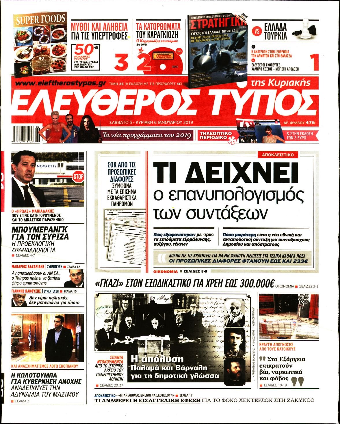 Οι πολιτικές εφημερίδες 5/1/19 Enikos Newsroom 06:24, Σάββατο 05 Ιανουαρίου 2019 Media Διαβάστε τα πρωτοσέλιδα των πολιτικών εφημερίδων: ΠΡΩΤΟΣΕΛΙΔΑ Μοιράσου το: σχολίασε κι εσύ (0 σχόλια) Ακολουθήστε το enikos.gr στο Google News και μάθετε πρώτοι όλες τις ειδήσεις Δείτε όλες τις τελευταίες ειδήσεις από την Ελλάδα και τον Κόσμο στο enikos.gr Ειδήσεις Ροή Ειδήσεων 4 ώρες πριν «Τεστ» υπομονής η χριστουγεννιάτικη έξοδος: Οι ουρές χιλιομέτρων και η απόφαση να ανοίξουν επιπλέον λωρίδες – Εν αναμονή των επόμενων κινήσεων των αγροτών 3 ώρες πριν Τραγωδία στην Τουρκία: Νεκρός ο αρχηγός του Γενικού Επιτελείου της Λιβύης – Συνετρίβη λίγο μετά την απογείωση το ιδιωτικό τζετ που τον μετέφερε – ΦΩΤΟ και ΒΙΝΤΕΟ 4 ώρες πριν Θάνατος 3χρονου στην Αλεξανδρούπολη: «Το παιδί είχε φάει το προηγούμενο βράδυ» υποστηρίζει η μητέρα του – Στο νοσοκομείο τα αδελφάκια του 4 ώρες πριν Σύλληψη 35χρονου στα Καλύβια: Πιθανή σχέση του με τον σεσημασμένο 37χρονο Κρητικό αναζητούν οι Αρχές – Τα συμβόλαια θανάτου και το σενάριο για νέο χτύπημα 7 ώρες πριν Ιλίσια: Διασωληνωμένος και σε σοβαρή κατάσταση ο συντηρητής του ασανσέρ – Πώς έγινε το ατύχημα στο σούπερ μάρκετ 4 ώρες πριν Ανακαλύφθηκε τεράστιος κυκλικός λαβύρινθος που «οδηγεί» στην… Αρχαία Ρώμη – Τα ευρήματα με «άρωμα« Κρήτης 5 ώρες πριν Ύπνος: Ειδικός μοιράζεται 6 απλές συνήθειες που θα σας βοηθήσουν να κοιμάστε πιο γρήγορα κάθε βράδυ 6 ώρες πριν Αριθμολογία: Οι άνθρωποι με αυτές τις 4 ημερομηνίες γέννησης, διαθέτουν ένα σπάνιο χάρισμα -«Διαβάζουν τις ψυχές των άλλων» 17 ώρες πριν Η Coca-Cola και ο Ελληνικός Ερυθρός Σταυρός μαζί αυτά τα Χριστούγεννα: Μια μεγάλη αγκαλιά για τους συνανθρώπους μας που έχουν ανάγκη 11 λεπτά πριν ΗΠΑ: Κυρώσεις σε πέντε Ευρωπαίους αξιωματούχους για τη ρύθμιση των ψηφιακών υπηρεσιών – Σφοδρές αντιδράσεις 33 λεπτά πριν Νίκος Ανδρουλάκης: Η Σύλβα Ακρίτα ήταν μια σπουδαία προσωπικότητα της Δημοκρατικής Παράταξης 56 λεπτά πριν Επική στιγμή στο reunion του Παρά Πέντε: Η Ελισάβετ Κωνσταντινίδου τραγούδησε ξανά Τάμτα πάνω σε… σκάλα – ΒΙΝΤΕΟ 1 ώρα πριν Λιόν: Ανακοινώθηκε ο δανεισμός του Έντρικ από την Ρεάλ Μαδρίτης 1 ώρα πριν ΗΠΑ: Εντολές εκκένωσης σε περιοχές του Λος Άντζελες ενόψει καταιγίδας που ενδέχεται να προκαλέσει σαρωτικές πλημμύρες ENIKOS NETWORK Πώς μας επηρεάζει η Χριστουγεννιάτικη μουσική; Τι μπορεί να σημαίνει αν δεν σας αρέσει Συμβουλές για να αποφευχθούν παιδικά ατυχήματα τα Χριστούγεννα Εορταστικό ωράριο: Ανοιχτά τα καταστήματα την τελευταία Κυριακή του χρόνου Αυξήσεις στις συντάξεις: Πόσα θα κερδίσετε από τον Ιανουάριο Ο Google Assistant θα παραμείνει λίγο περισσότερο για ορισμένους χρήστες Android Τεστ προσωπικότητας: Το βάζο που θα επιλέξετε αποκαλύπτει πώς λύνετε προβλήματα στη ζωή σας περισσότερα 01:55 , Τετάρτη 24 Δεκεμβρίου 2025 Επική στιγμή στο reunion του Παρά Πέντε: Η Ελισάβετ Κωνσταντινίδου τραγούδησε ξανά Τάμτα πάνω σε… σκάλα – ΒΙΝΤΕΟ Το cast και η παραγωγή του Παρά Πέντε επανενώθηκαν το βράδυ της Τρίτης για μοναδικό επετειακό ... 23:21 , Τρίτη 23 Δεκεμβρίου 2025 Παρά Πέντε: Συγκίνηση και ενθουσιασμός στο «X» με το reunion – «Σαν να μην πέρασε μια μέρα…» Το «Παρά Πέντε» επέστρεψε το βράδυ της Τρίτης (23/12) με ένα επετειακό επεισόδιο. Η θρυλική σε... 23:12 , Τρίτη 23 Δεκεμβρίου 2025 Ο Χριστουγεννιάτικος Τηλεμαραθώνιος του ΑΝΤ1 συγκέντρωσε 3.330.000 ευρώ και θα στηρίξει 300.000 παιδιά Με μεγάλη επιτυχία, πραγματοποιήθηκε τη Δευτέρα 22 Δεκεμβρίου ο Χριστου