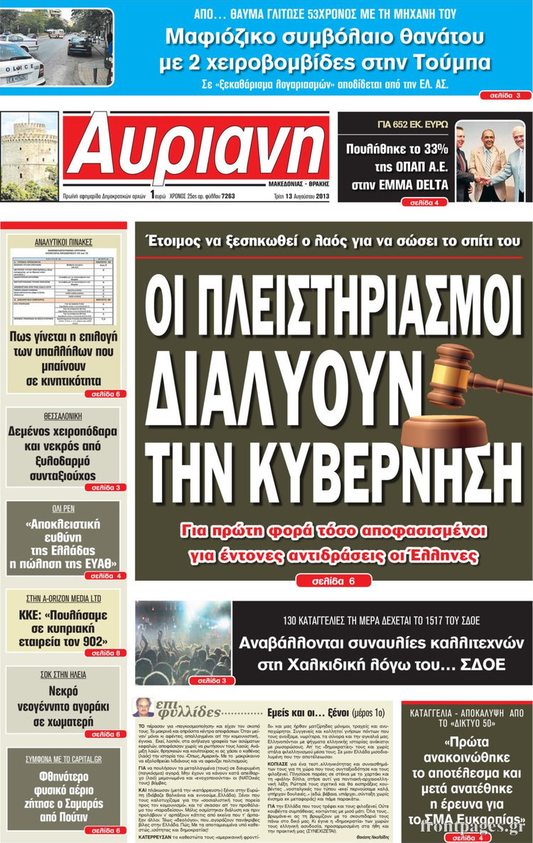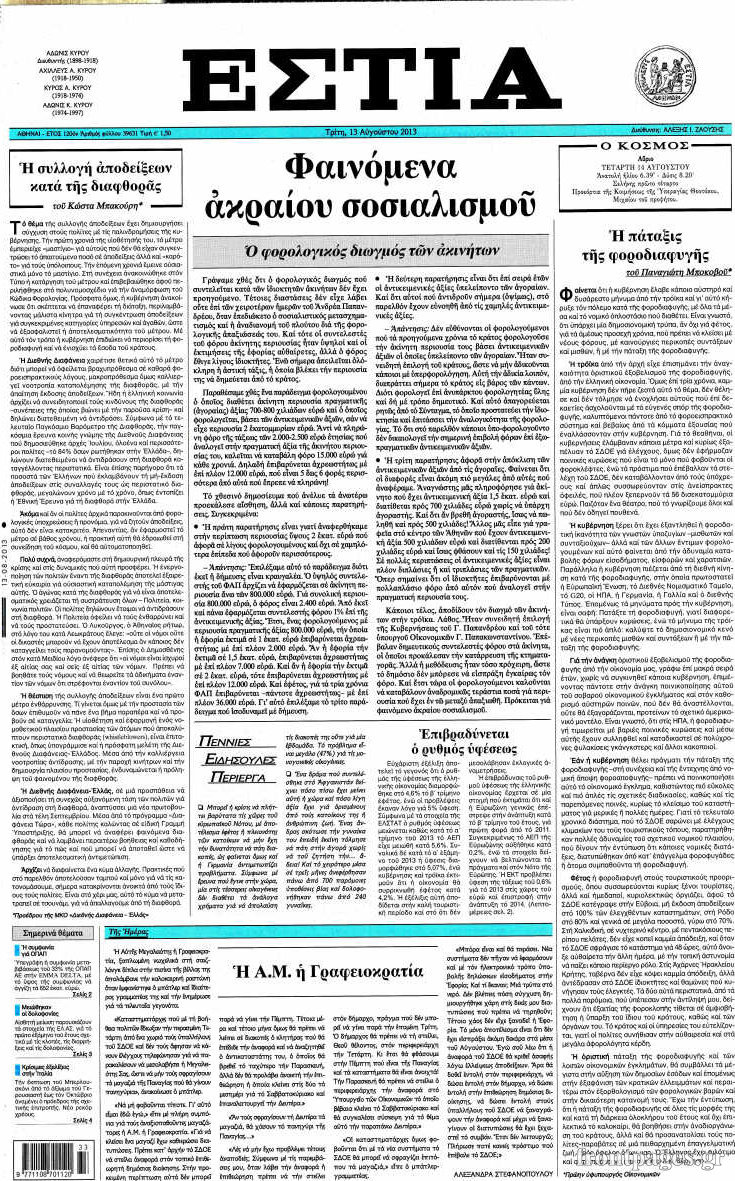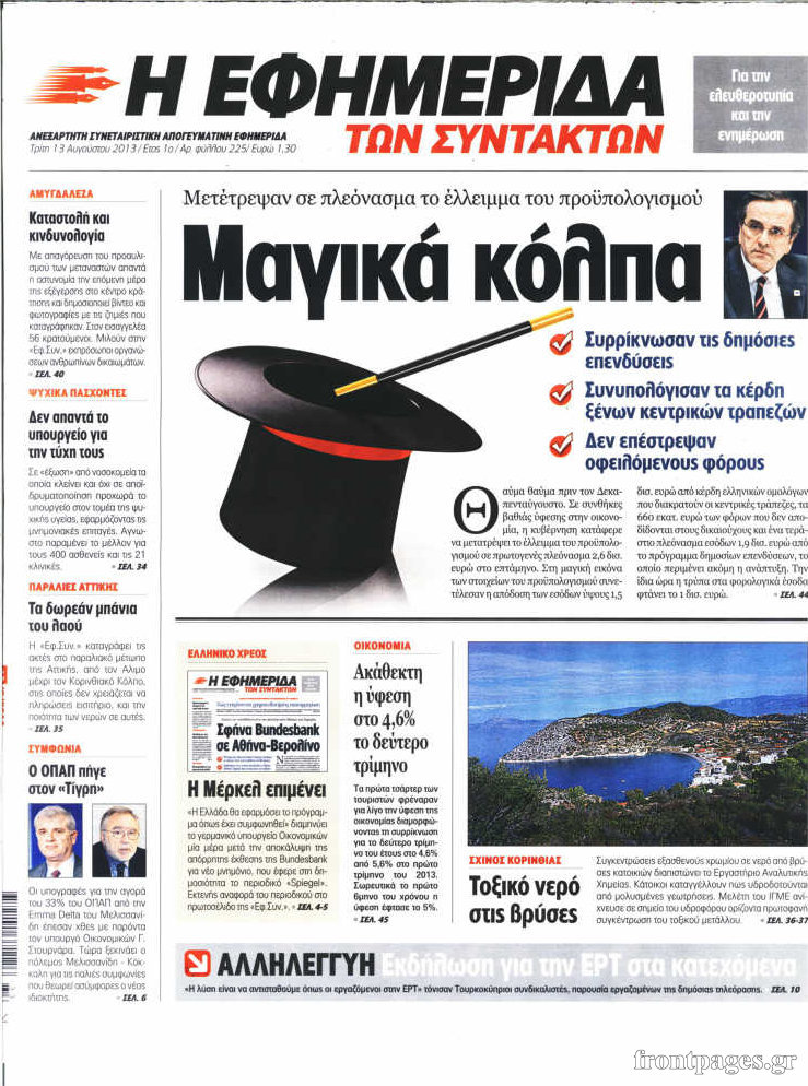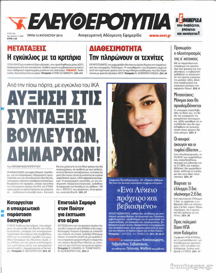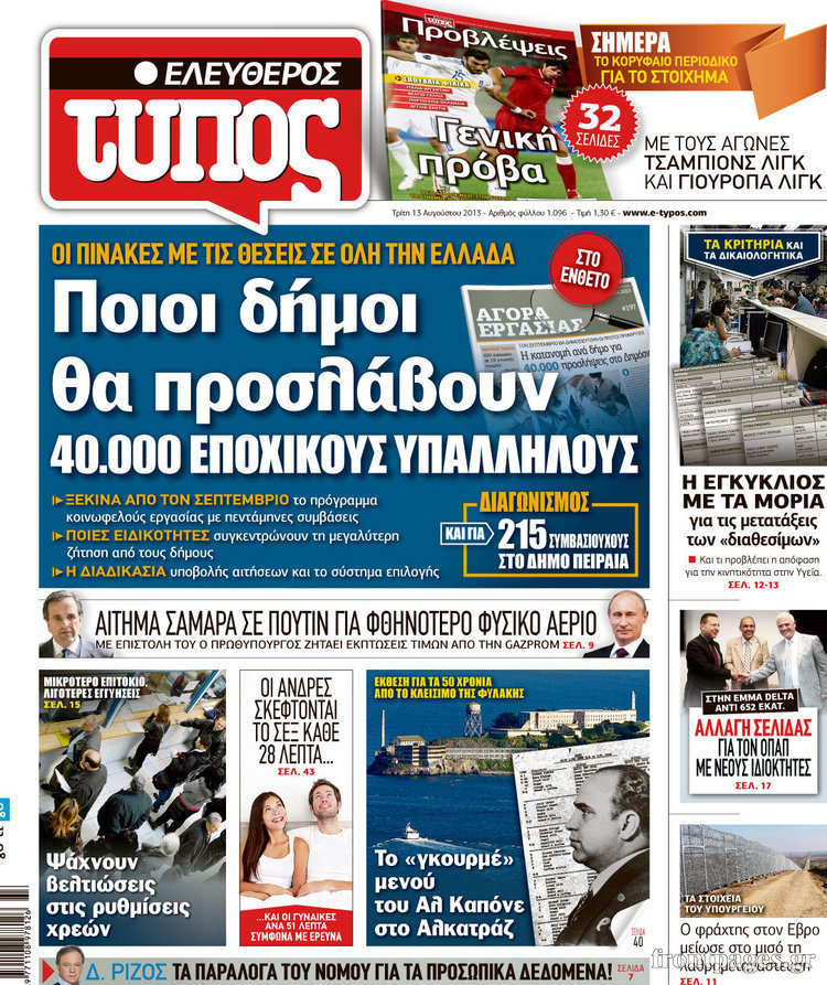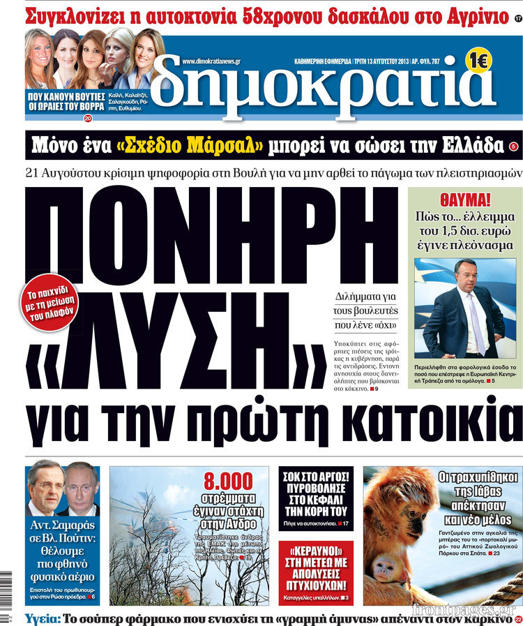 Oι πολιτικές εφημερίδες Enikos Newsroom 09:37, Τρίτη 13 Αυγούστου 2013 Media Oι πολιτικές εφημερίδες ΕΦΗΜΕΡΙΔΕΣ ΠΟΛΙΤΙΚΕΣ ΕΦΗΜΕΡΙΔΕΣ Μοιράσου το: σχολίασε κι εσύ (0 σχόλια) Ακολουθήστε το enikos.gr στο Google News και μάθετε πρώτοι όλες τις ειδήσεις Δείτε όλες τις τελευταίες ειδήσεις από την Ελλάδα και τον Κόσμο στο enikos.gr Ειδήσεις Ροή Ειδήσεων 9 ώρες πριν Χριστούγεννα στα μπλόκα: Επιμένουν στις κινητοποιήσεις τους οι αγρότες – Ανοίγουν τα διόδια το Σαββατοκύριακο 1 ώρα πριν Σαρωτικοί οι έλεγχοι στους δρόμους ενόψει εορτών – Μπλόκα της τροχαίας σε κεντρικές αρτηρίες της Αττικής 8 ώρες πριν Πούτιν: Τα μηνύματα σε Ευρώπη και ΝΑΤΟ από το μαραθώνιο «σόου» του – Η απαίτηση για «σεβασμό» και η ειρήνη «με τους όρους» της Μόσχας 8 ώρες πριν ΗΠΑ: Η κυβέρνηση του Ντόναλντ Τραμπ άρχισε να δημοσιοποιεί τα αρχεία Έπσταϊν 8 ώρες πριν Άνω Λιόσια: Πυροβολισμοί σε επιχείρηση με χαλιά – Εντοπίστηκαν 10 κάλυκες 1 ώρα πριν Αυγά: Πόσα μπορείτε να τρώτε την ημέρα με ασφάλεια για μέγιστη πρόσληψη πρωτεΐνης 2 ώρες πριν Τα ζώδια σήμερα, Σάββατο 20 Δεκεμβρίου: Παρθένοι, το σύμπαν σας δίνει το κλειδί 8 ώρες πριν Ανακαλύφθηκαν αρχαία χρυσά νομίσματα 2.200 ετών που απεικονίζουν τον θεό Απόλλωνα – Η άγνωστη σύνδεση με τον Φίλιππο Β΄ της Μακεδονίας 1 ώρα πριν Οπτική ψευδαίσθηση: Μόνο αν είσαι ο Σέρλοκ Χολμς θα βρεις τον αριθμό «87» σε 7 δευτερόλεπτα 53 δευτερόλεπτα πριν Φοινικούντα: Σήμερα απολογείται ο 30χρονος γιος γνωστού επιχειρηματία της Πλάκας 8 λεπτά πριν Οι αθλητικές μεταδόσεις 20/12/2025 18 λεπτά πριν Εορτολόγιο: Ποιοι γιορτάζουν σήμερα 20 Δεκεμβρίου 26 λεπτά πριν Συρία: Μπαράζ αμερικανικών επιδρομών εναντίον του ISIS – «Πλήττουμε δυνατά οχυρά του ΙΚ» λέει ο Ντόναλντ Τραμπ 34 λεπτά πριν Αναβολή συμφωνίας ΕΕ-Mercosur: Ο χρόνος «δεν είναι απεριόριστος» προειδοποιεί η Παραγουάη ENIKOS NETWORK Πρέπει να αποδέχεστε ή να απορρίπτετε όλα τα cookies; Ένας ειδικός εξηγεί Η αγαπημένη λιχουδιά των πόνι που μπορεί να ενισχύσει όραση, εγκέφαλο και ανοσοποιητικό Αναστολή μέτρων αναγκαστικής εκτέλεσης για κτηνοτρόφους που πλήττονται από την ευλογιά των αιγοπροβάτων Πλήρης επάρκεια προϊόντων στις λαϊκές της Αττικής, παρά τις αγροτικές κινητοποιήσεις – Τι απαντούν οι πωλητές Χαρτογραφώντας το «σημείο χωρίς επιστροφή»: Για πρώτη φορά αποκαλύπτεται με λεπτομέρεια το ακανθώδες όριο της ατμόσφαιρας τ... Η Google καταργεί τη λειτουργία «dark web report» – Πώς θα μπορούν οι χρήστες να διαγράφουν τα δεδομένα τους περισσότερα 05:48 , Σάββατο 20 Δεκεμβρίου 2025 Οι οικονομικές εφημερίδες 20/12/2025 Διαβάστε τα πρωτοσέλιδα από τις οικονομικές εφημερίδες, σήμερα 20/12/2025. 05:43 , Σάββατο 20 Δεκεμβρίου 2025 Οι αθλητικές εφημερίδες 20/12/2025 Διαβάστε τα πρωτοσέλιδα από τις αθλητικές εφημερίδες, σήμερα 20/12/2025. 05:38 , Σάββατο 20 Δεκεμβρίου 2025 Οι πολιτικές εφημερίδες 20/12/2025 Διαβάστε τα πρωτοσέλιδα από τις πολιτικές εφημερίδες, σήμερα 20/12/2025. 04:20 , Σάββατο 20 Δεκεμβρίου 2025 Αγγελική Νικολούλη: Τα συλλυπητήρια για την απώλεια της Ειρήνης Μαρινάκη Τα συλληπητήρια στον πρόεδρο του Mega, τον Βαγγέλη Μαρινάκη, για την απώλεια της μητέρας του Ε... ΤΕΛΕΥΤΑΙΕΣ ΕΙΔΗΣΕΙΣ 8 λεπτά πριν Οι αθλητικές μεταδόσεις 20/12/2025 18 λεπτά πριν Εορτολόγιο: Ποιοι γιορτάζουν σήμερα 20 Δεκεμβρίου 26 λεπτά πριν Συρία: Μπαράζ αμερικανικών επιδρομών εναντίον του ISIS... 34 λεπτά πριν Αναβολή συμφωνίας ΕΕ-Mercosur: Ο χρόνος «δεν είναι... 49 λεπτά πριν Κίριλ Ντμίτριεφ: Στις ΗΠΑ ο απεσταλμένος της Ρωσίας... 56 λεπτά πριν ΔΕΔΔΗΕ: Διακο
