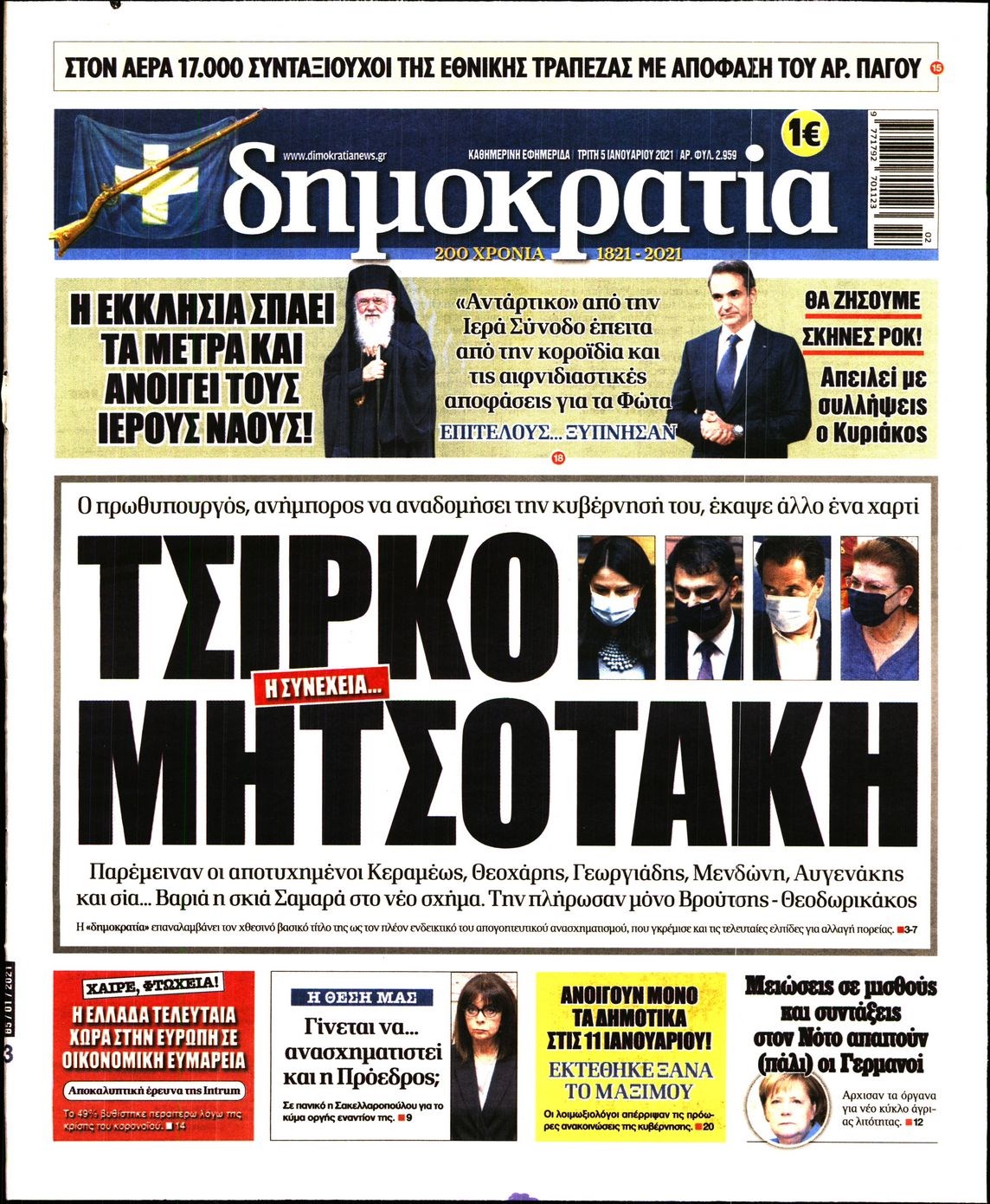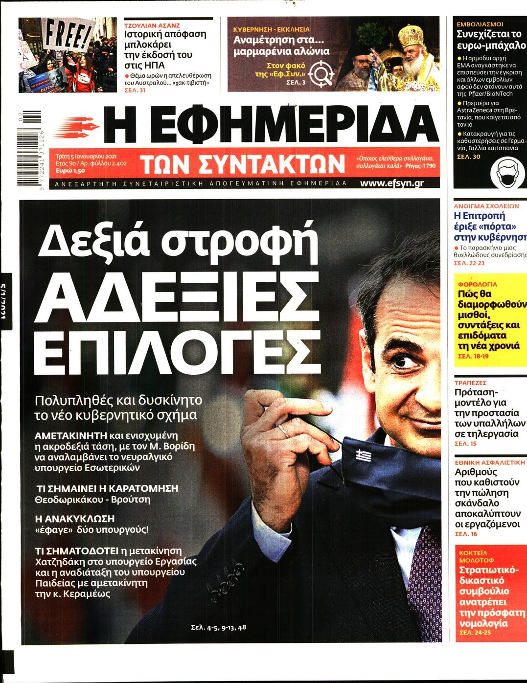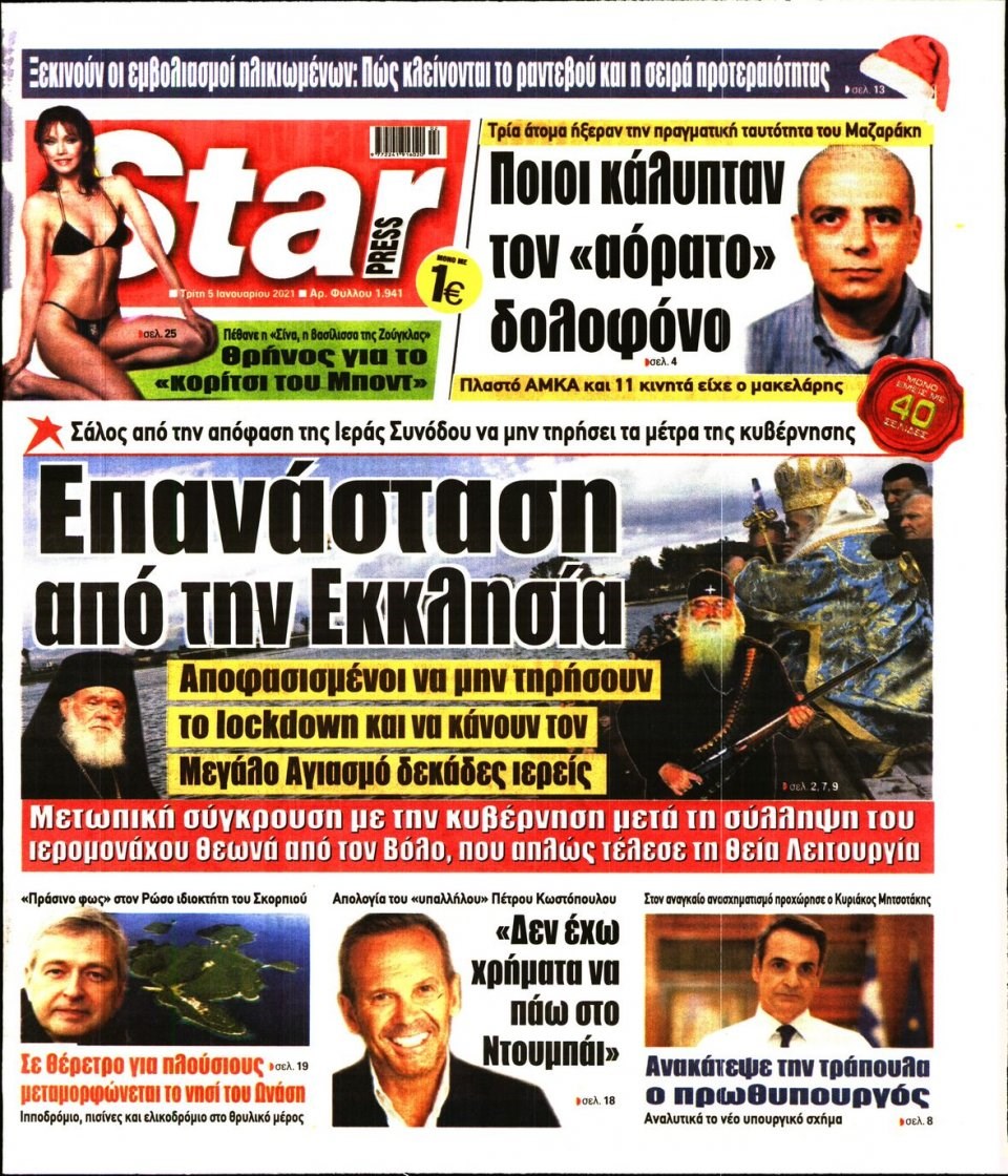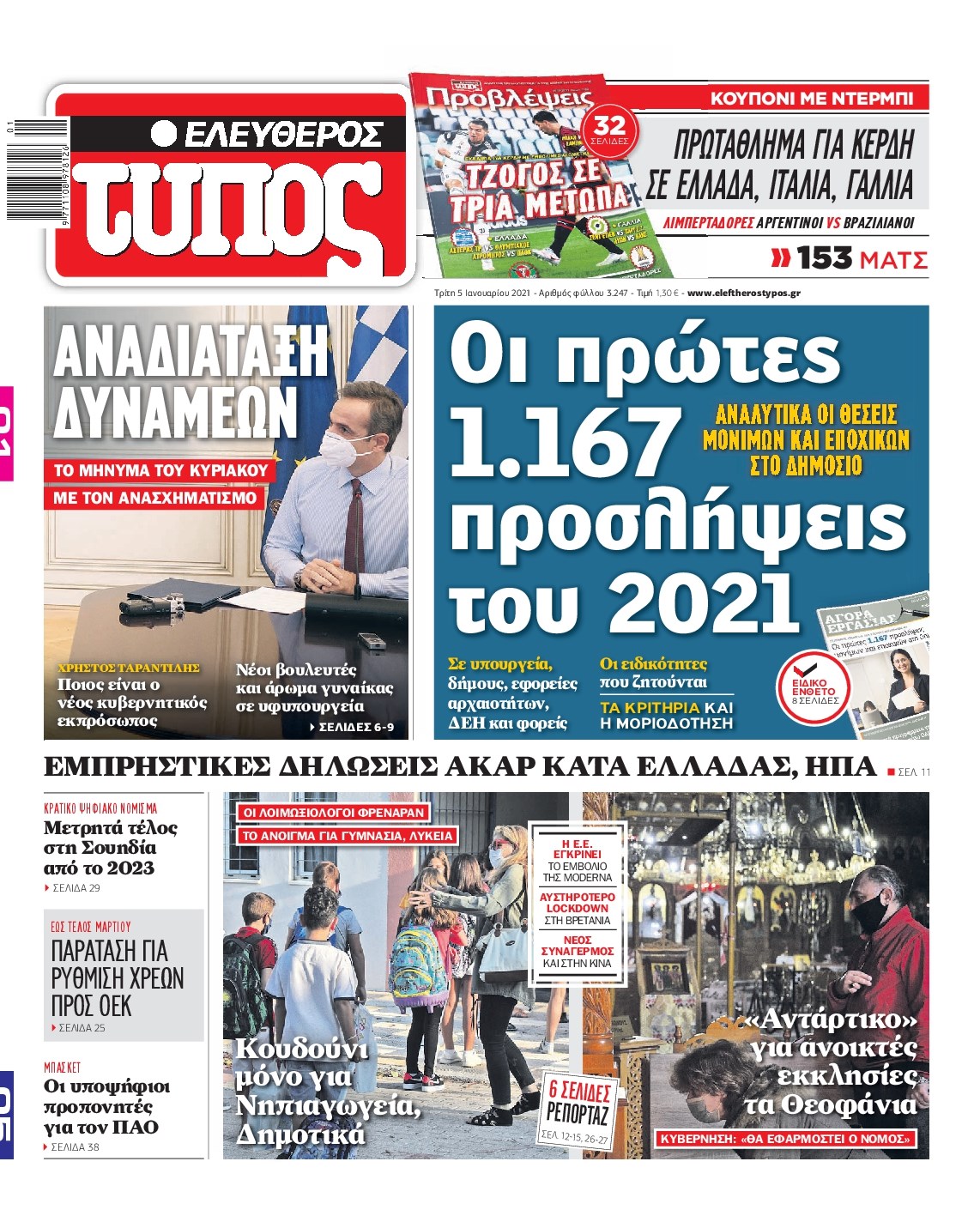 Οι πολιτικές εφημερίδες 5/1/2021 Διονύσης Νίκκας 06:14, Τρίτη 05 Ιανουαρίου 2021 Media Διαβάστε τα πρωτοσέλιδα των πολιτικών εφημερίδων… ΕΦΗΜΕΡΙΔΕΣ ΠΟΛΙΤΙΚΕΣ ΕΦΗΜΕΡΙΔΕΣ ΠΡΩΤΟΣΕΛΙΔΑ Μοιράσου το: σχολίασε κι εσύ (0 σχόλια) Ακολουθήστε το enikos.gr στο Google News και μάθετε πρώτοι όλες τις ειδήσεις Δείτε όλες τις τελευταίες ειδήσεις από την Ελλάδα και τον Κόσμο στο enikos.gr Ειδήσεις Ροή Ειδήσεων 3 ώρες πριν Υπόθεση Έπσταϊν: Το Υπουργείο Δικαιοσύνης δημοσιοποίησε μια σειρά από εξαιρετικά επεξεργασμένα αρχεία – «Λείπουν τα πιο σημαντικά έγγραφα», λένε οι Δημοκρατικοί 22 λεπτά πριν Γιορτές με μπλόκα για τους αγρότες: Ανοίγουν διόδια και μοιράζουν προϊόντα στους ταξιδιώτες 54 λεπτά πριν Εξαφάνιση 33χρονου γιατρού στην Κρήτη: «Άναψα τα φώτα, τρόμαξε και άρχισε να τρέχει στα χωράφια» – Η τελευταία διαδρομή και η μαρτυρία «κλειδί» 2 ώρες πριν Ο «χάρτης» με τις αυξήσεις και τις φοροελαφρύνσεις του 2026 – Ποιοι και πόσα κερδίζουν 38 λεπτά πριν Τα αρχεία του Έπσταϊν αποκαλύπτουν φωτογραφία του έκπτωτου πρίγκιπα Άντριου – Είναι ξαπλωμένος στην αγκαλιά 5 γυναικών 45 λεπτά πριν Μία νέα «χρυσή» περίοδος αρχίζει για 3 ζώδια από σήμερα – «Μία αναπάντεχη ευκαιρία οδηγεί στην επιτυχία» 5 ώρες πριν Αυγά: Πόσα μπορείτε να τρώτε την ημέρα με ασφάλεια για μέγιστη πρόσληψη πρωτεΐνης 3 ώρες πριν Αρχαιολόγοι ανακάλυψαν σε χωράφι απεικόνιση 600 ετών ενός Αγίου – Τα στοιχεία που δείχνουν ότι μαρτύρησε 2 ώρες πριν Αγχώνεται για το χριστουγεννιάτικο δώρο που πήρε στην πλούσια σύντροφό του – «Φοβάμαι πως θα το βρει φθηνιάρικο, φοράει βραχιόλια Cartier» 6 λεπτά πριν Πώς η κλιματική αλλαγή επηρεάζει εγκύους και βρέφη – Οι επιπτώσεις των υψηλών θερμοκρασιών 14 λεπτά πριν e-ΕΦΚΑ και ΔΥΠΑ: Οι πληρωμές από 22 έως 24 Δεκεμβρίου – Ποιοι θα δουν χρήματα στους λογαριασμούς τους 22 λεπτά πριν Συνελήφθη οδηγός μηχανής που έτρεχε με 161 χλμ στη Συγγρού – Τον έπιασε το ραντάρ της Τροχαίας 22 λεπτά πριν Γιορτές με μπλόκα για τους αγρότες: Ανοίγουν διόδια και μοιράζουν προϊόντα στους ταξιδιώτες 30 λεπτά πριν Τηλεθέαση (19/12): Κυριάρχησε η σειρά «Το σόι σου» – Τι νούμερα έκανε ο τελικός του GNTM ENIKOS NETWORK Είστε μόνιμα απρόσεκτοι; 3 σημάδια που δείχνουν ότι μπορεί να είναι σύμπτωμα πάθησης Πόσα κιλά παίρνουμε πραγματικά τα Χριστούγεννα, σύμφωνα με την επιστήμη – Πώς να το αποτρέψουμε; Επίδομα παιδιού: Τι αλλάζει από το 2026 – Το όφελος από τις φορολογικές ελαφρύνσεις Mega χριστουγεννιάτικη φορολοταρία: «Κλείδωσε» η ημερομηνία για την κλήρωση – Ερωτήσεις και απαντήσεις Χαρτογραφώντας το «σημείο χωρίς επιστροφή»: Για πρώτη φορά αποκαλύπτεται με λεπτομέρεια το ακανθώδες όριο της ατμόσφαιρας τ... Η Google καταργεί τη λειτουργία «dark web report» – Πώς θα μπορούν οι χρήστες να διαγράφουν τα δεδομένα τους περισσότερα 09:30 , Σάββατο 20 Δεκεμβρίου 2025 «Porto Leone: Στη γειτονιά με τα κόκκινα φανάρια» – Ο Χρόνης αποκαλύπτει στην Αλεξάνδρα το μυστικό για το παιδί της Λένας Η μεγάλη δραματική σειρά του Apha «Porto Leone: Στη γειτονιά με τα κόκκινα φανάρια» μας μεταφέ... 08:14 , Σάββατο 20 Δεκεμβρίου 2025 Τρομεροί γονείς: Η Μαρία Καβογιάννη εισβάλλει στο σπίτι της οικογένειας Στεφανίδη Όσα θα δούμε στο νέο διπλό επεισόδιο της σειράς «Τρομεροί γονείς», σήμερα Σάββατο 20 Δεκεμβρίο... 05:48 , Σάββατο 20 Δεκεμβρίου 2025 Οι οικονομικές εφημερίδες 20/12/2025 Διαβάστε τα πρωτοσέλιδα από τις οικονομικές εφημερίδες, σήμερα 20/12/2025. 05:43 , Σάββατο 20 Δεκεμβρίου 2025 Οι αθλητικές εφημερίδες 20/12/20