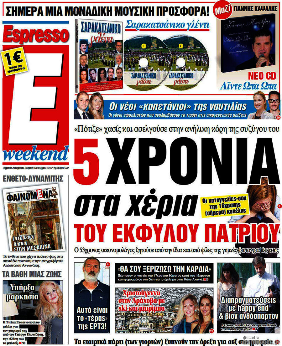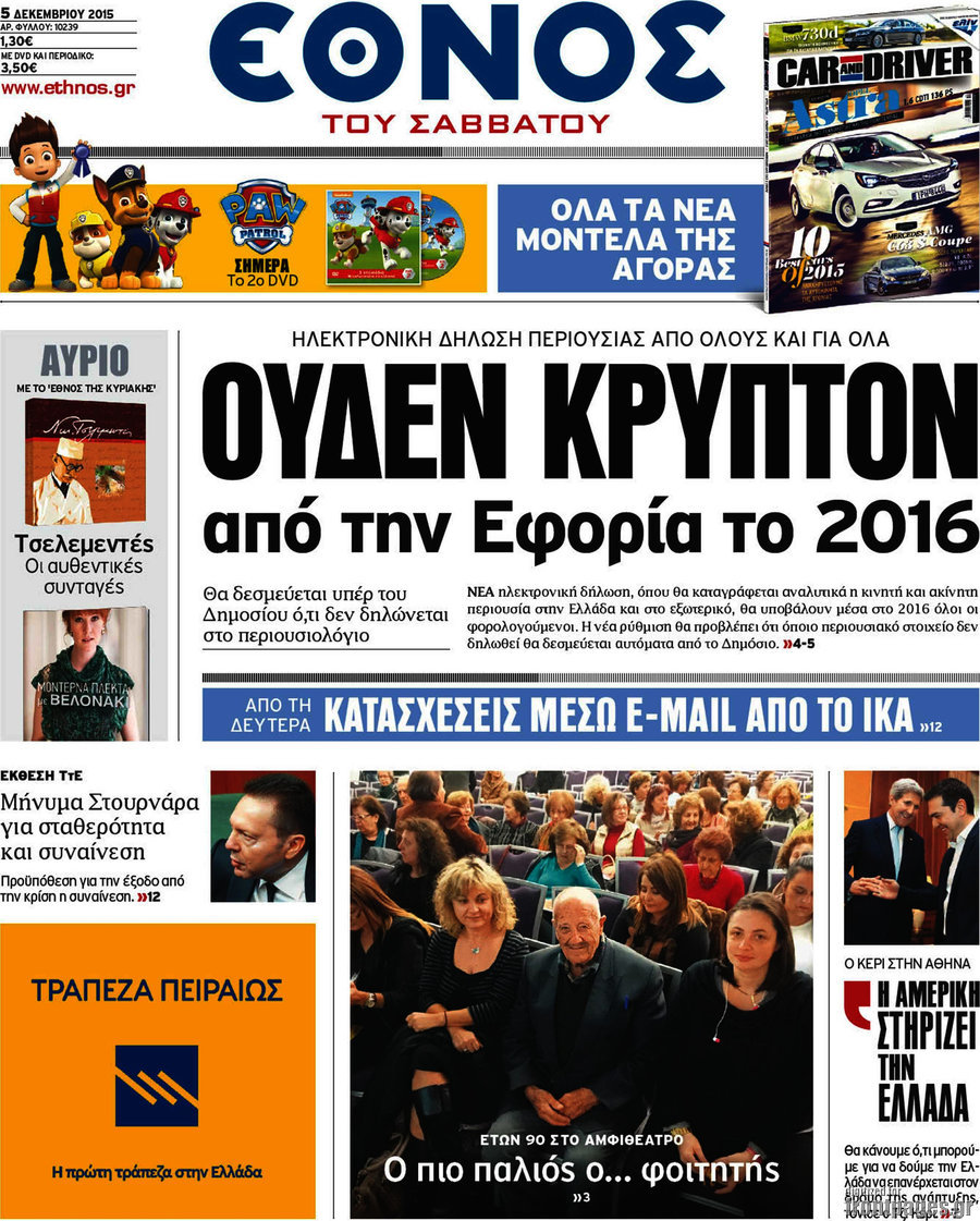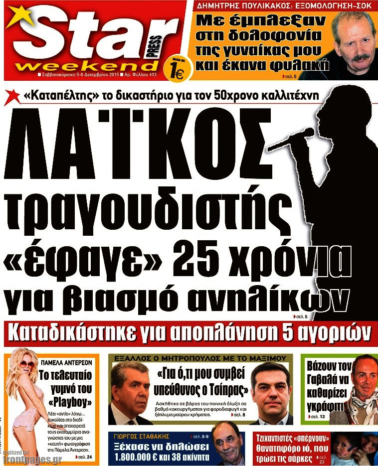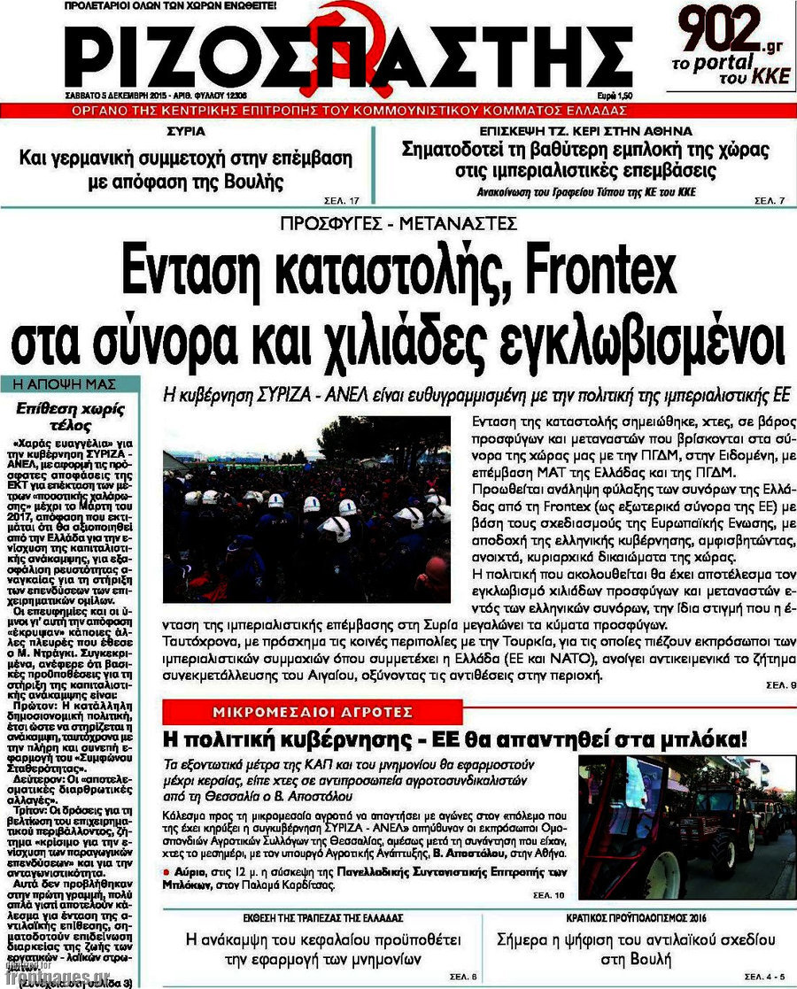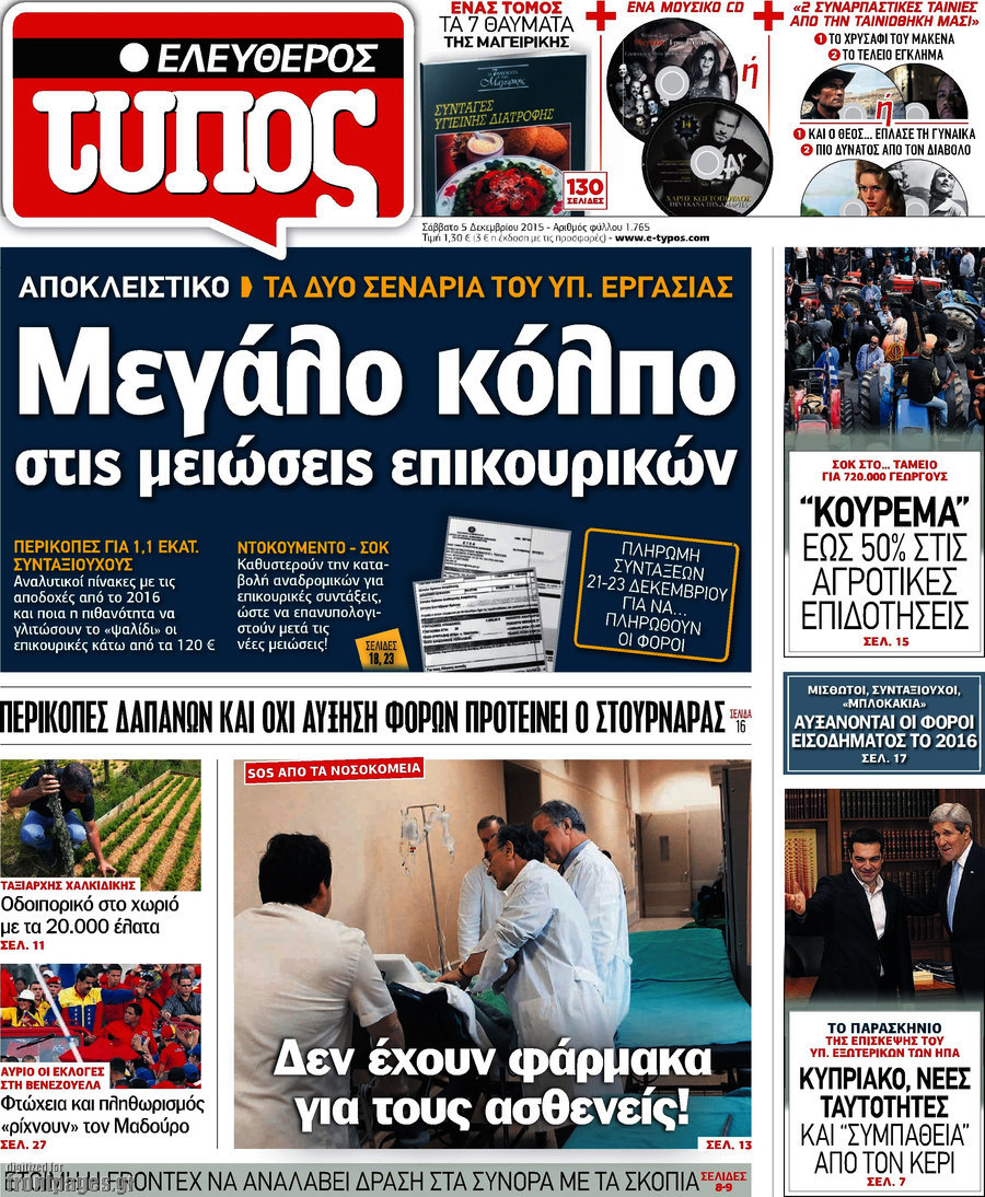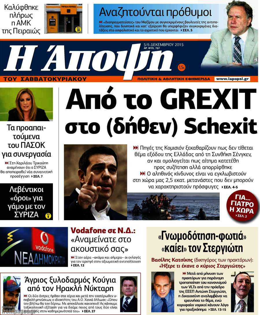 Οι πολιτικές εφημερίδες 5/12/2015 Enikos Newsroom 07:53, Σάββατο 05 Δεκεμβρίου 2015 Media Διαβάστε τα σημερινά πρωτοσέλιδα των πολιτικών εφημερίδων: ΠΟΛΙΤΙΚΕΣ ΕΦΗΜΕΡΙΔΕΣ Μοιράσου το: σχολίασε κι εσύ (0 σχόλια) Ακολουθήστε το enikos.gr στο Google News και μάθετε πρώτοι όλες τις ειδήσεις Δείτε όλες τις τελευταίες ειδήσεις από την Ελλάδα και τον Κόσμο στο enikos.gr Ειδήσεις Ροή Ειδήσεων 2 ώρες πριν Χριστούγεννα στα μπλόκα: Επιμένουν στις κινητοποιήσεις τους οι αγρότες – Ανοίγουν τα διόδια το Σαββατοκύριακο 2 ώρες πριν Ουκρανία: Η άνευ προηγουμένου επίθεση σε ρωσικό τάνκερ στη Μεσόγειο και το μήνυμα προς στον Πούτιν – Το «μακρύ χέρι» του Κιέβου 2 ώρες πριν Πούτιν: Τα μηνύματα σε Ευρώπη και ΝΑΤΟ από το μαραθώνιο «σόου» του – Η απαίτηση για «σεβασμό» και η ειρήνη «με τους όρους» της Μόσχας 3 ώρες πριν Τραμπ: Δεν αποκλείει την πιθανότητα ενός πολέμου στη Βενεζουέλα – «Ο Μαδούρο ξέρει καλύτερα από τον καθένα τι ακριβώς θέλω» 3 ώρες πριν Συνεχίζει να προκαλεί ο Μίτσκοσκι: «Για μένα το όνομα Μακεδονία είναι ιερό» 2 ώρες πριν Ανακαλύφθηκαν αρχαία χρυσά νομίσματα 2.200 ετών που απεικονίζουν τον θεό Απόλλωνα – Η άγνωστη σύνδεση με τον Φίλιππο Β΄ της Μακεδονίας 3 ώρες πριν Ύπνος: Μια κρυφή κατάσταση του εγκεφάλου πριν από τον ύπνο μπορεί να είναι το “κλειδί” για υψηλή ευφυΐα και δημιουργικότητα 4 ώρες πριν Αριθμολογία: Οι άνθρωποι που έχουν γεννηθεί αυτές τις 4 ημερομηνίες, συχνά παρεξηγούνται – «Η καλοσύνη τους κρύβει τεράστια δύναμη» 5 ώρες πριν Ξεχάστε το καθάρισμα το Σαββατοκύριακο: Ο «κανόνας των 20 λεπτών» που θα σας λύσει τα χέρια 13 λεπτά πριν Φαίη Σκορδά: «Παλιότερα τα κομπλιμέντα τα προσπερνούσα, τώρα τα έχω ανάγκη» 29 λεπτά πριν Βασίλης Σπανούλης: Δεν εμφανίστηκε ούτε ένας δημοσιογράφος στην συνέντευξη Τύπου – «Καλησπέρα στον… κανέναν», δείτε βίντεο 40 λεπτά πριν Πόλεμος στην Ουκρανία: Εφτά νεκροί από ρωσική πυραυλική επίθεση στο λιμάνι της Οδησσού 43 λεπτά πριν ΗΠΑ: Η κυβέρνηση του Ντόναλντ Τραμπ άρχισε να δημοσιοποιεί τα αρχεία Έπσταϊν 55 λεπτά πριν Σάμος: Άνοιξε το μπλόκο των αγροτών στον κόμβο Κοκκαρίου – Σε νέα συνεδρίαση θα καθορίσουν την στάση τους ENIKOS NETWORK Το ΕΚΑΒ τιμήθηκε από την Ακαδημία Αθηνών για τα 40 χρόνια προσφοράς του Έχετε πραγματικά μεγάλη καρδιά; 10 χαρακτηριστικά όσων έχουν καλοσύνη Αναστολή μέτρων αναγκαστικής εκτέλεσης για κτηνοτρόφους που πλήττονται από την ευλογιά των αιγοπροβάτων Πλήρης επάρκεια προϊόντων στις λαϊκές της Αττικής, παρά τις αγροτικές κινητοποιήσεις – Τι απαντούν οι πωλητές Χαρτογραφώντας το «σημείο χωρίς επιστροφή»: Για πρώτη φορά αποκαλύπτεται με λεπτομέρεια το ακανθώδες όριο της ατμόσφαιρας τ... Η Google καταργεί τη λειτουργία «dark web report» – Πώς θα μπορούν οι χρήστες να διαγράφουν τα δεδομένα τους περισσότερα 22:42 , Παρασκευή 19 Δεκεμβρίου 2025 Γιώργος Γιαννόπουλος για “Το σόι σου”: “Είναι ευτυχία και ευλογία αυτή η σειρά” «Είναι ευτυχία και ευλογία η συγκυρία αυτής της σειράς», θα πει ο Γιώργος Γιαννόπουλος -ο αγαπ... 20:37 , Παρασκευή 19 Δεκεμβρίου 2025 Don’t Forget The Lyrics: Η Έλλη Κοκκίνου υποδέχεται 4 παίκτες που θα κάνουν τα πάντα για να μη χάσουν ούτε… μισή λέξη από τους στίχους Το «Don’t Forget The Lyrics» επιστρέφει απόψε, Παρασκευή 19 Δεκεμβρίου, στις 21:00 με νέο επει... 19:31 , Παρασκευή 19 Δεκεμβρίου 2025 GNTM: Απόψε ο μεγάλος τελικός για τους 4 φιναλίστ Έπειτα από μήνες γεμάτους μόδα, δημιουργία και έντονες αναμετρήσεις, το GNTM 2025 κορυφώνεται,... 18:11 , Παρασκευή 19 Δ