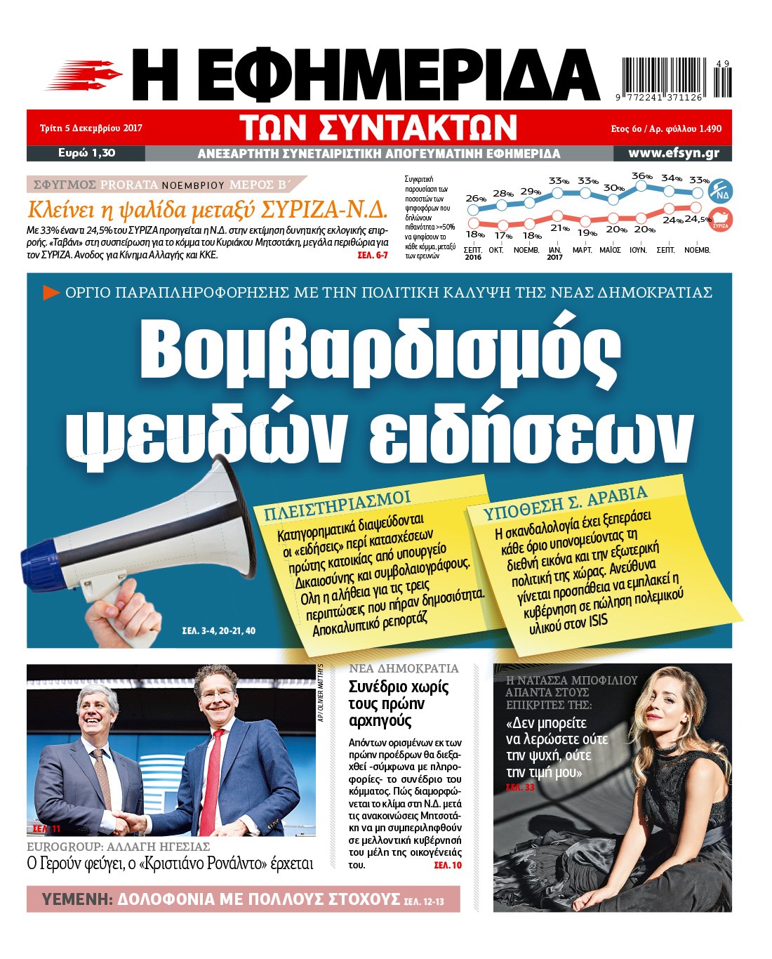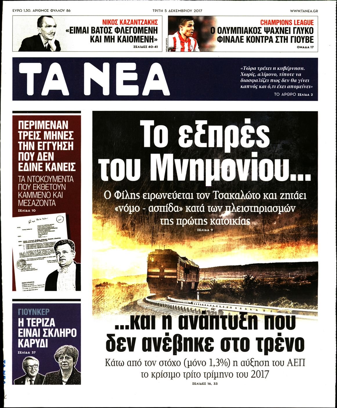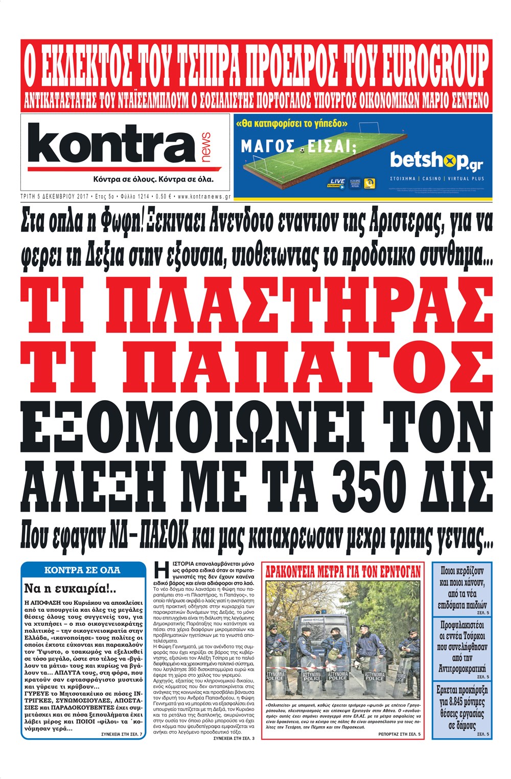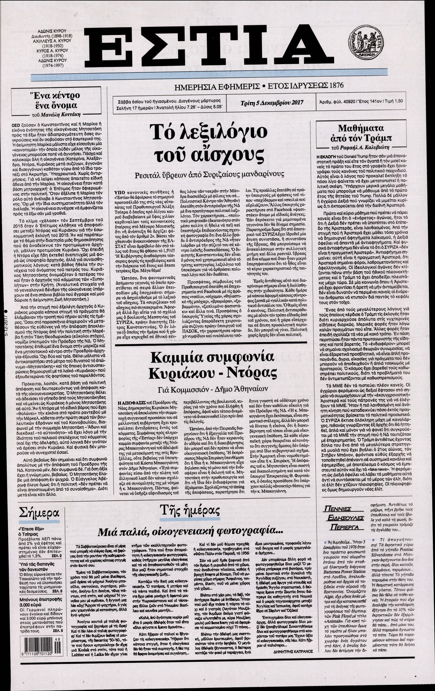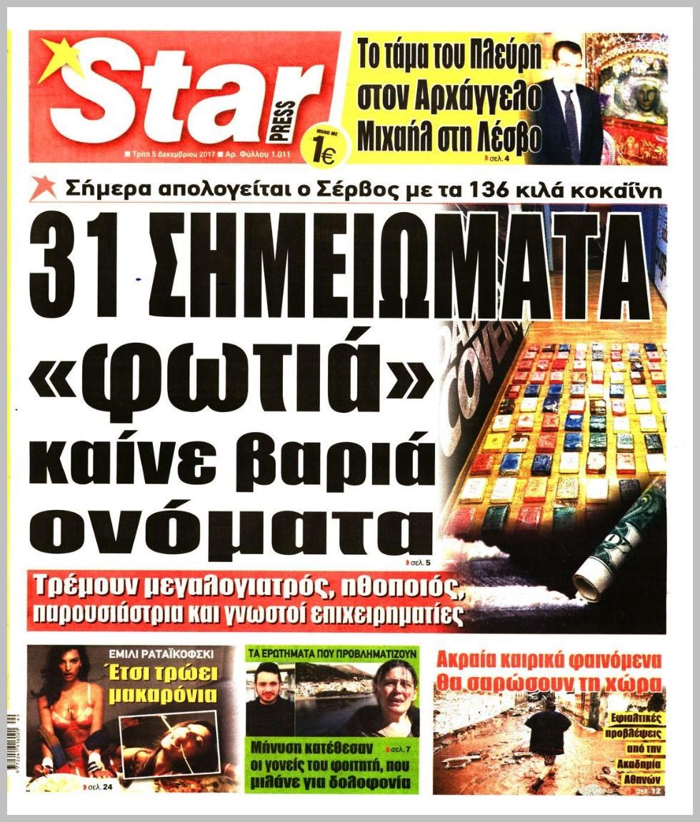Οι πολιτικές εφημερίδες 5/12/2017 Κώστας Τεό 06:32, Τρίτη 05 Δεκεμβρίου 2017 Media Διαβάστε τα σημερινά πρωτοσέλιδα των πολιτικών εφημερίδων: ΠΟΛΙΤΙΚΕΣ ΕΦΗΜΕΡΙΔΕΣ ΠΡΩΤΟΣΕΛΙΔΑ Μοιράσου το: σχολίασε κι εσύ (0 σχόλια) Ακολουθήστε το enikos.gr στο Google News και μάθετε πρώτοι όλες τις ειδήσεις Δείτε όλες τις τελευταίες ειδήσεις από την Ελλάδα και τον Κόσμο στο enikos.gr Ειδήσεις Ροή Ειδήσεων 3 ώρες πριν Χριστούγεννα στα μπλόκα: Επιμένουν στις κινητοποιήσεις τους οι αγρότες – Ανοίγουν τα διόδια το Σαββατοκύριακο 3 ώρες πριν Ουκρανία: Η άνευ προηγουμένου επίθεση σε ρωσικό τάνκερ στη Μεσόγειο και το μήνυμα προς στον Πούτιν – Το «μακρύ χέρι» του Κιέβου 2 ώρες πριν Πούτιν: Τα μηνύματα σε Ευρώπη και ΝΑΤΟ από το μαραθώνιο «σόου» του – Η απαίτηση για «σεβασμό» και η ειρήνη «με τους όρους» της Μόσχας 3 ώρες πριν Τραμπ: Δεν αποκλείει την πιθανότητα ενός πολέμου στη Βενεζουέλα – «Ο Μαδούρο ξέρει καλύτερα από τον καθένα τι ακριβώς θέλω» 4 ώρες πριν Συνεχίζει να προκαλεί ο Μίτσκοσκι: «Για μένα το όνομα Μακεδονία είναι ιερό» 2 ώρες πριν Ανακαλύφθηκαν αρχαία χρυσά νομίσματα 2.200 ετών που απεικονίζουν τον θεό Απόλλωνα – Η άγνωστη σύνδεση με τον Φίλιππο Β΄ της Μακεδονίας 3 ώρες πριν Ύπνος: Μια κρυφή κατάσταση του εγκεφάλου πριν από τον ύπνο μπορεί να είναι το “κλειδί” για υψηλή ευφυΐα και δημιουργικότητα 4 ώρες πριν Αριθμολογία: Οι άνθρωποι που έχουν γεννηθεί αυτές τις 4 ημερομηνίες, συχνά παρεξηγούνται – «Η καλοσύνη τους κρύβει τεράστια δύναμη» 5 ώρες πριν Ξεχάστε το καθάρισμα το Σαββατοκύριακο: Ο «κανόνας των 20 λεπτών» που θα σας λύσει τα χέρια 5 λεπτά πριν Συρία: Μαζικά πλήγματα των ΗΠΑ σε θέσεις του Ισλαμικού Κράτους – Χέγκσεθ: «Δεν είναι αρχή πολέμου, είναι μια δήλωση εκδίκησης» για το θάνατο των στρατιωτών μας 17 λεπτά πριν Ουκρανία: Ολοκληρώθηκαν οι συνομιλίες με τους Αμερικανούς κι Ευρωπαίους διαπραγματευτές 32 λεπτά πριν Μπαρτσελόνα – Μπασκόνια 134-124: Οι «μπλαουγκράνα» πήραν το ματς της χρονιάς ύστερα από τρεις παρατάσεις 47 λεπτά πριν Φαίη Σκορδά: «Παλιότερα τα κομπλιμέντα τα προσπερνούσα, τώρα τα έχω ανάγκη» 1 ώρα πριν Βασίλης Σπανούλης: Δεν εμφανίστηκε ούτε ένας δημοσιογράφος στην συνέντευξη Τύπου – «Καλησπέρα στον… κανέναν», δείτε βίντεο ENIKOS NETWORK Το ΕΚΑΒ τιμήθηκε από την Ακαδημία Αθηνών για τα 40 χρόνια προσφοράς του Έχετε πραγματικά μεγάλη καρδιά; 10 χαρακτηριστικά όσων έχουν καλοσύνη Αναστολή μέτρων αναγκαστικής εκτέλεσης για κτηνοτρόφους που πλήττονται από την ευλογιά των αιγοπροβάτων Πλήρης επάρκεια προϊόντων στις λαϊκές της Αττικής, παρά τις αγροτικές κινητοποιήσεις – Τι απαντούν οι πωλητές Χαρτογραφώντας το «σημείο χωρίς επιστροφή»: Για πρώτη φορά αποκαλύπτεται με λεπτομέρεια το ακανθώδες όριο της ατμόσφαιρας τ... Η Google καταργεί τη λειτουργία «dark web report» – Πώς θα μπορούν οι χρήστες να διαγράφουν τα δεδομένα τους περισσότερα 22:42 , Παρασκευή 19 Δεκεμβρίου 2025 Γιώργος Γιαννόπουλος για “Το σόι σου”: “Είναι ευτυχία και ευλογία αυτή η σειρά” «Είναι ευτυχία και ευλογία η συγκυρία αυτής της σειράς», θα πει ο Γιώργος Γιαννόπουλος -ο αγαπ... 20:37 , Παρασκευή 19 Δεκεμβρίου 2025 Don’t Forget The Lyrics: Η Έλλη Κοκκίνου υποδέχεται 4 παίκτες που θα κάνουν τα πάντα για να μη χάσουν ούτε… μισή λέξη από τους στίχους Το «Don’t Forget The Lyrics» επιστρέφει απόψε, Παρασκευή 19 Δεκεμβρίου, στις 21:00 με νέο επει... 19:31 , Παρασκευή 19 Δεκεμβρίου 2025 GNTM: Απόψε ο μεγάλος τελικός για τους 4 φιναλίστ Έπειτα από μήνες γε