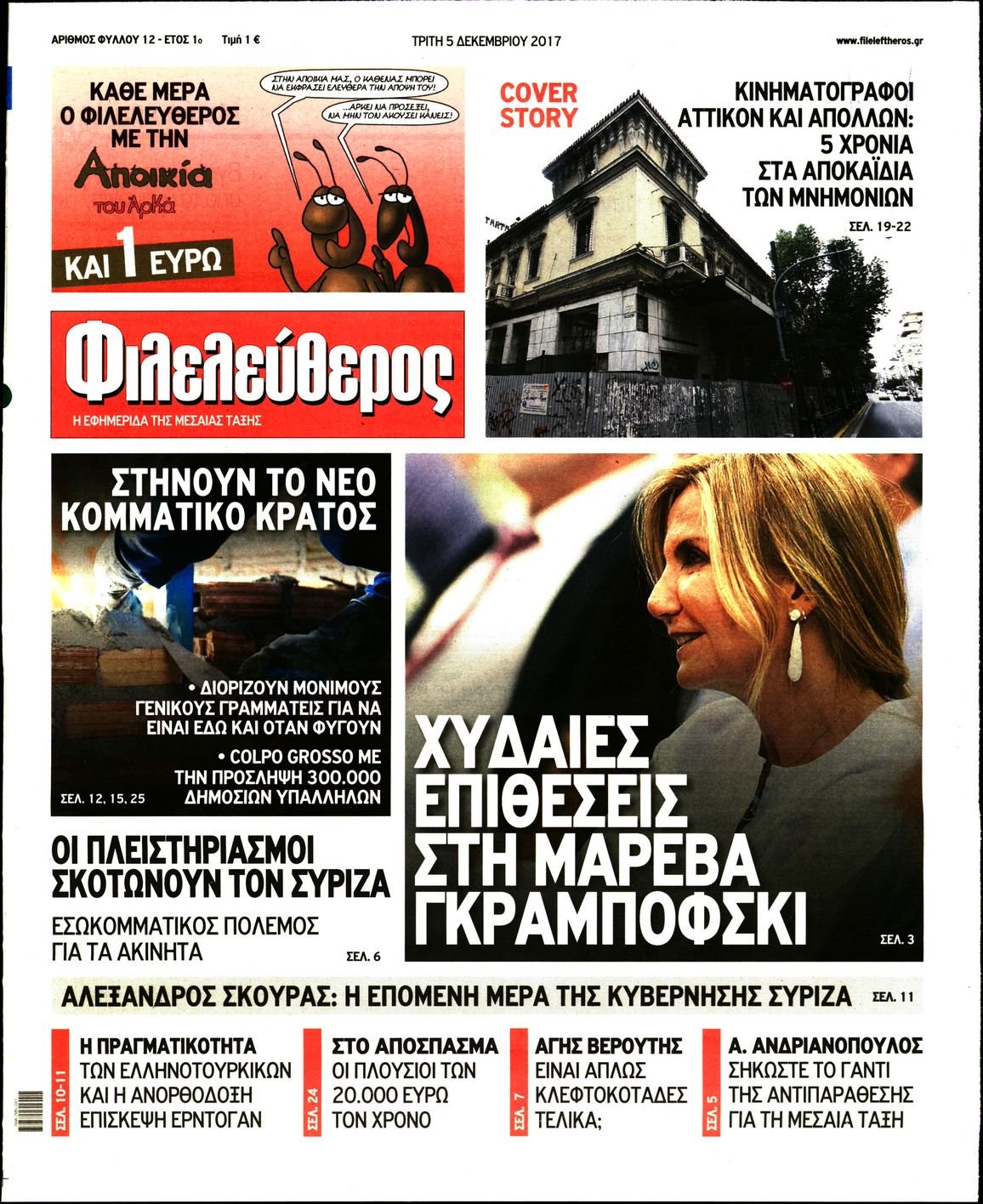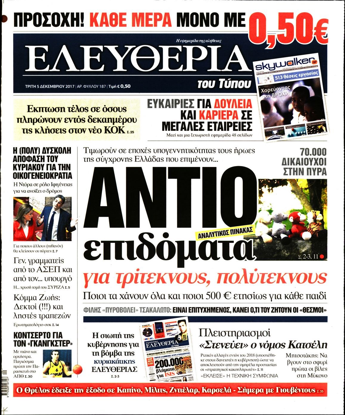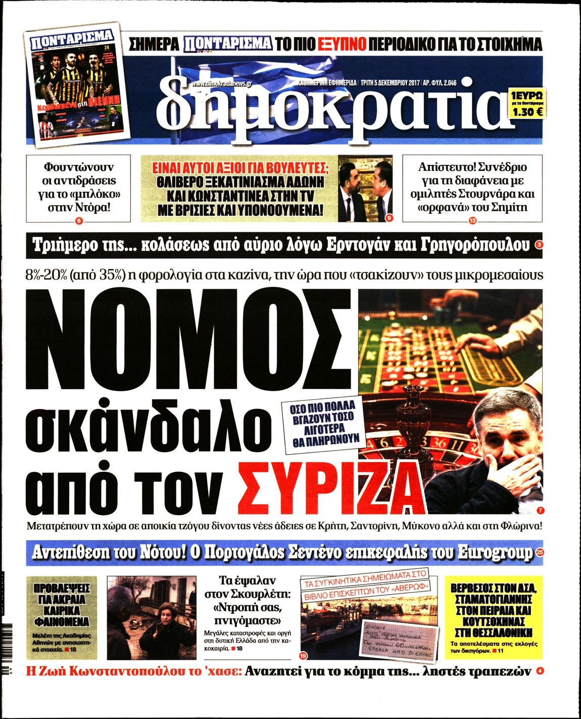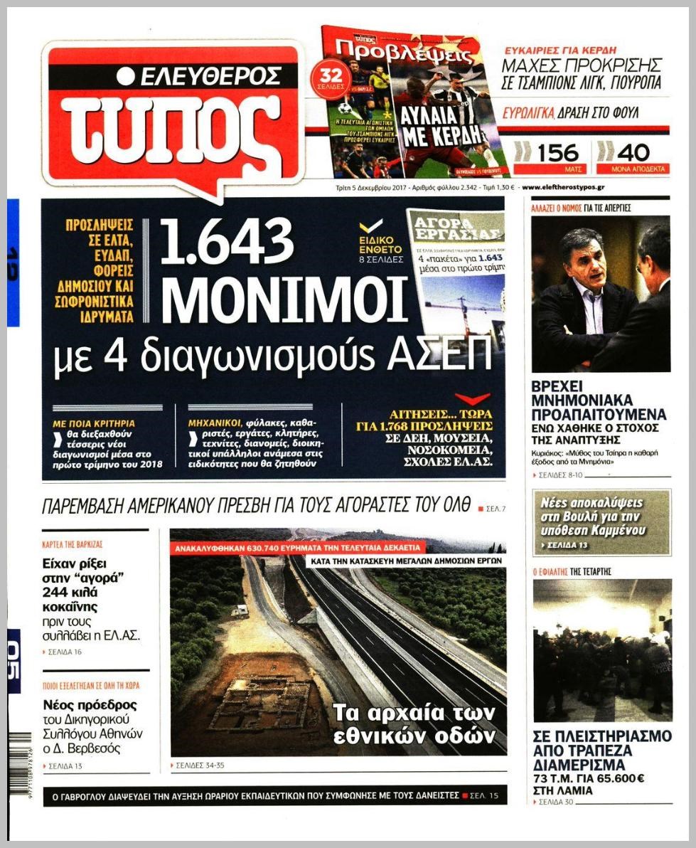 Οι πολιτικές εφημερίδες 5/12/2017 Κώστας Τεό 06:32, Τρίτη 05 Δεκεμβρίου 2017 Media Διαβάστε τα σημερινά πρωτοσέλιδα των πολιτικών εφημερίδων: ΠΟΛΙΤΙΚΕΣ ΕΦΗΜΕΡΙΔΕΣ ΠΡΩΤΟΣΕΛΙΔΑ Μοιράσου το: σχολίασε κι εσύ (0 σχόλια) Ακολουθήστε το enikos.gr στο Google News και μάθετε πρώτοι όλες τις ειδήσεις Δείτε όλες τις τελευταίες ειδήσεις από την Ελλάδα και τον Κόσμο στο enikos.gr Ειδήσεις Ροή Ειδήσεων 3 ώρες πριν Χριστούγεννα στα μπλόκα: Επιμένουν στις κινητοποιήσεις τους οι αγρότες – Ανοίγουν τα διόδια το Σαββατοκύριακο 3 ώρες πριν Ουκρανία: Η άνευ προηγουμένου επίθεση σε ρωσικό τάνκερ στη Μεσόγειο και το μήνυμα προς στον Πούτιν – Το «μακρύ χέρι» του Κιέβου 2 ώρες πριν Πούτιν: Τα μηνύματα σε Ευρώπη και ΝΑΤΟ από το μαραθώνιο «σόου» του – Η απαίτηση για «σεβασμό» και η ειρήνη «με τους όρους» της Μόσχας 3 ώρες πριν Τραμπ: Δεν αποκλείει την πιθανότητα ενός πολέμου στη Βενεζουέλα – «Ο Μαδούρο ξέρει καλύτερα από τον καθένα τι ακριβώς θέλω» 4 ώρες πριν Συνεχίζει να προκαλεί ο Μίτσκοσκι: «Για μένα το όνομα Μακεδονία είναι ιερό» 2 ώρες πριν Ανακαλύφθηκαν αρχαία χρυσά νομίσματα 2.200 ετών που απεικονίζουν τον θεό Απόλλωνα – Η άγνωστη σύνδεση με τον Φίλιππο Β΄ της Μακεδονίας 3 ώρες πριν Ύπνος: Μια κρυφή κατάσταση του εγκεφάλου πριν από τον ύπνο μπορεί να είναι το “κλειδί” για υψηλή ευφυΐα και δημιουργικότητα 4 ώρες πριν Αριθμολογία: Οι άνθρωποι που έχουν γεννηθεί αυτές τις 4 ημερομηνίες, συχνά παρεξηγούνται – «Η καλοσύνη τους κρύβει τεράστια δύναμη» 5 ώρες πριν Ξεχάστε το καθάρισμα το Σαββατοκύριακο: Ο «κανόνας των 20 λεπτών» που θα σας λύσει τα χέρια 5 λεπτά πριν Συρία: Μαζικά πλήγματα των ΗΠΑ σε θέσεις του Ισλαμικού Κράτους – Χέγκσεθ: «Δεν είναι αρχή πολέμου, είναι μια δήλωση εκδίκησης» για το θάνατο των στρατιωτών μας 17 λεπτά πριν Ουκρανία: Ολοκληρώθηκαν οι συνομιλίες με τους Αμερικανούς κι Ευρωπαίους διαπραγματευτές 32 λεπτά πριν Μπαρτσελόνα – Μπασκόνια 134-124: Οι «μπλαουγκράνα» πήραν το ματς της χρονιάς ύστερα από τρεις παρατάσεις 47 λεπτά πριν Φαίη Σκορδά: «Παλιότερα τα κομπλιμέντα τα προσπερνούσα, τώρα τα έχω ανάγκη» 1 ώρα πριν Βασίλης Σπανούλης: Δεν εμφανίστηκε ούτε ένας δημοσιογράφος στην συνέντευξη Τύπου – «Καλησπέρα στον… κανέναν», δείτε βίντεο ENIKOS NETWORK Το ΕΚΑΒ τιμήθηκε από την Ακαδημία Αθηνών για τα 40 χρόνια προσφοράς του Έχετε πραγματικά μεγάλη καρδιά; 10 χαρακτηριστικά όσων έχουν καλοσύνη Αναστολή μέτρων αναγκαστικής εκτέλεσης για κτηνοτρόφους που πλήττονται από την ευλογιά των αιγοπροβάτων Πλήρης επάρκεια προϊόντων στις λαϊκές της Αττικής, παρά τις αγροτικές κινητοποιήσεις – Τι απαντούν οι πωλητές Χαρτογραφώντας το «σημείο χωρίς επιστροφή»: Για πρώτη φορά αποκαλύπτεται με λεπτομέρεια το ακανθώδες όριο της ατμόσφαιρας τ... Η Google καταργεί τη λειτουργία «dark web report» – Πώς θα μπορούν οι χρήστες να διαγράφουν τα δεδομένα τους περισσότερα 22:42 , Παρασκευή 19 Δεκεμβρίου 2025 Γιώργος Γιαννόπουλος για “Το σόι σου”: “Είναι ευτυχία και ευλογία αυτή η σειρά” «Είναι ευτυχία και ευλογία η συγκυρία αυτής της σειράς», θα πει ο Γιώργος Γιαννόπουλος -ο αγαπ... 20:37 , Παρασκευή 19 Δεκεμβρίου 2025 Don’t Forget The Lyrics: Η Έλλη Κοκκίνου υποδέχεται 4 παίκτες που θα κάνουν τα πάντα για να μη χάσουν ούτε… μισή λέξη από τους στίχους Το «Don’t Forget The Lyrics» επιστρέφει απόψε, Παρασκευή 19 Δεκεμβρίου, στις 21:00 με νέο επει... 19:31 , Παρασκευή 19 Δεκεμβρίου 2025 GNTM: Απόψε ο μεγάλος τελικός για τους 4 φιναλίστ Έπειτα από μήνες γε